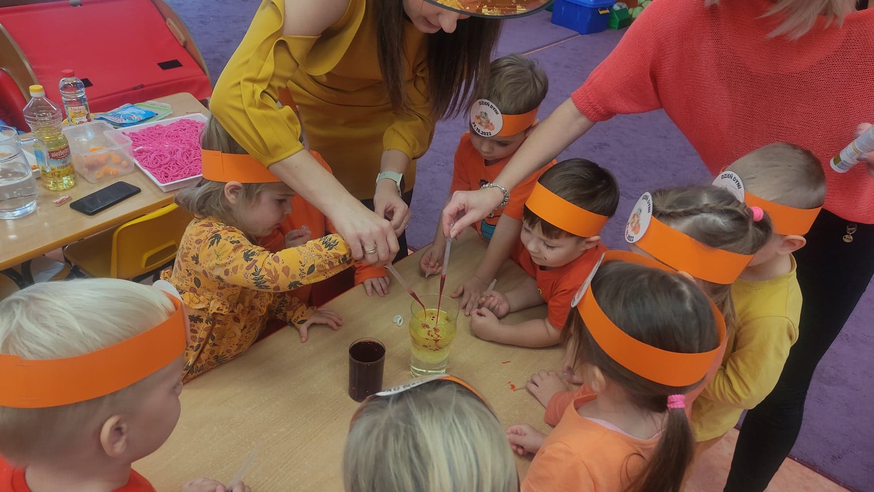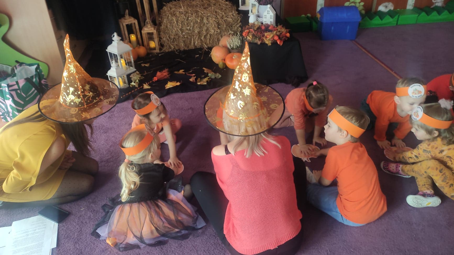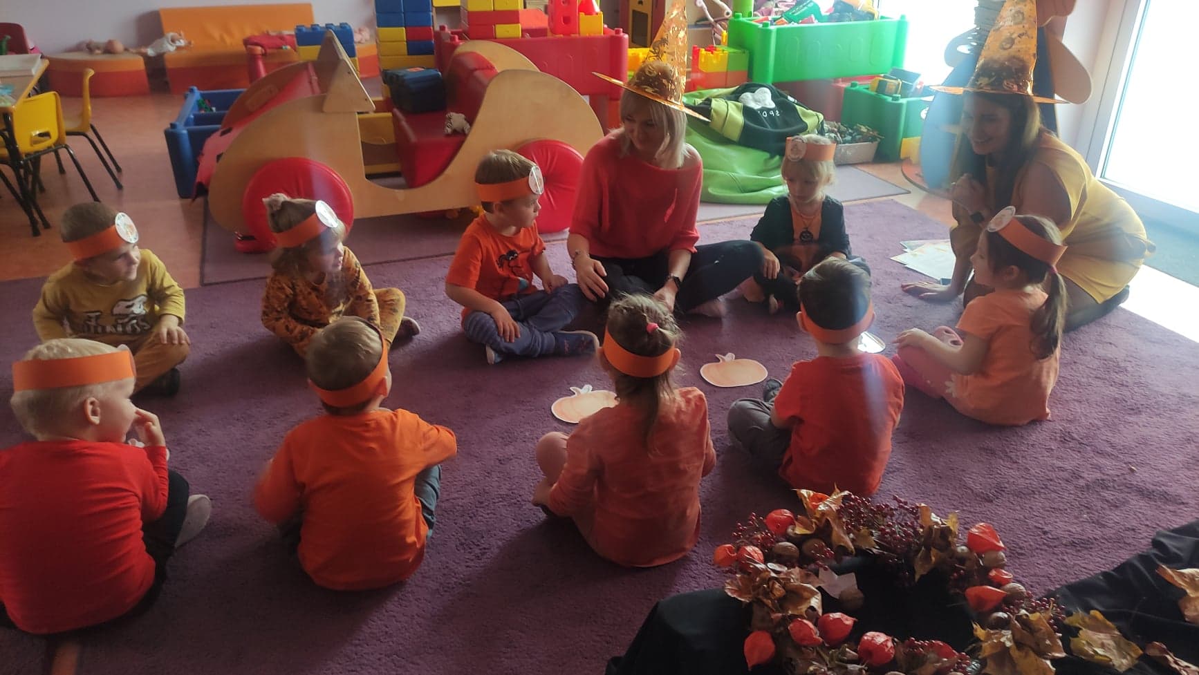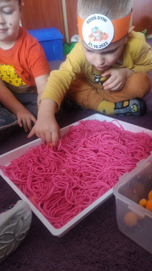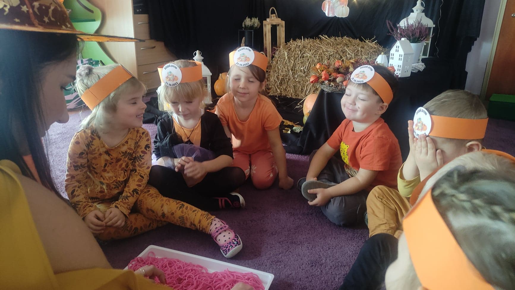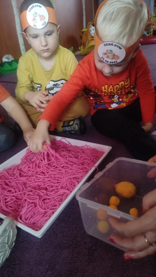 Dynia jest warzywem, które zachwyca swoim wyjątkowym wyglądem i smakiem, a przekonały się o tym Krasnale z naszego przedszkola uczestnicząc 31 października w Święcie Dyni. Tego dnia obowiązywał kolor pomarańczowy w ubiorze. Przedszkolaki mogły oglądać, dotykać różnej wielkości i różnego ubarwienia dynie. Poznały także jej cykl rozwoju:) Dowiedziały się, że dynia jest bardzo zdrowym warzywem i, że można z niej przygotować wiele dań tj.: pieczywo, zupę, dżem, ciasto. Dynia stała się również popularna jako ozdoba przed wejściem do domu. Przedszkolaki odkryły, co ukrywa się w środku dyni i wspólnie z paniami wyciągały pestki. Ponadto panie przygotowały eksperymenty tj. wybuchowa dynia, lampa lawa oraz zabawy sensoryczne z zabarwionym makaronem. Ogromną atrakcją była również ścianka do zdjęć, z dynią w rolu głównej oczywiście. Ten dzień był przepełniony zajęciami plastycznymi, zabawami i tańcami. A zwieńczeniem były pyszne placuszki dyniowe, które przygotowały panie na kucharki na obiad.