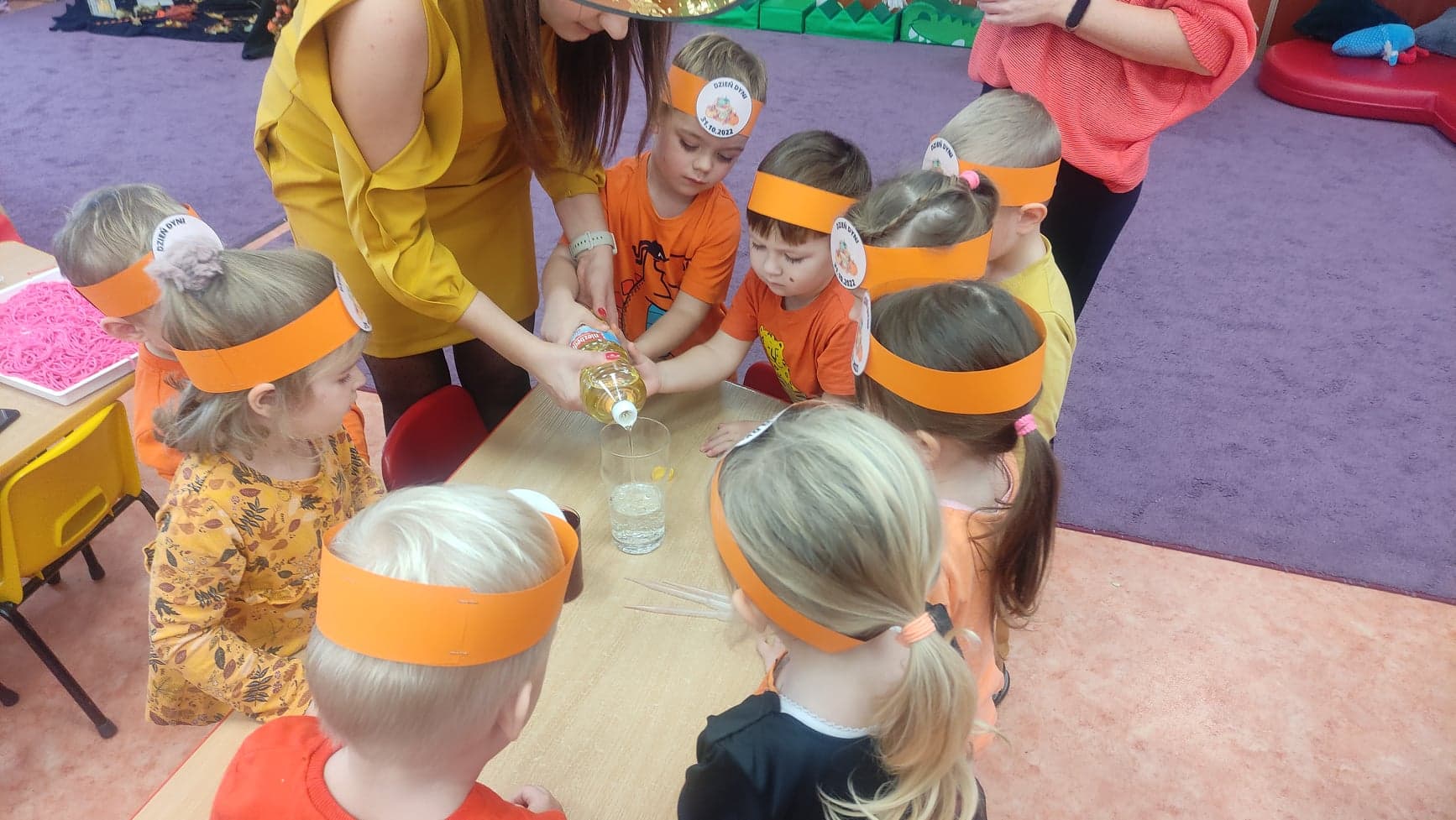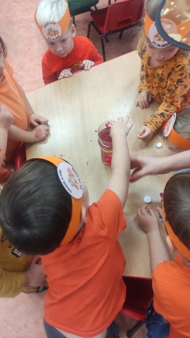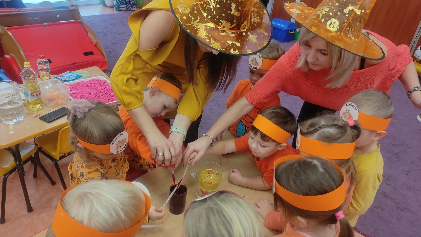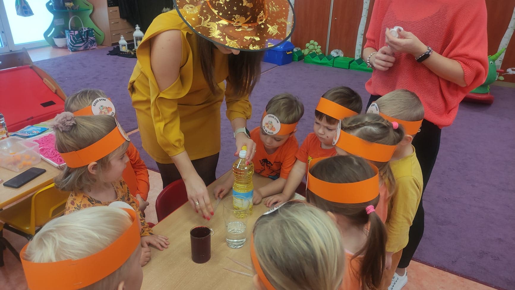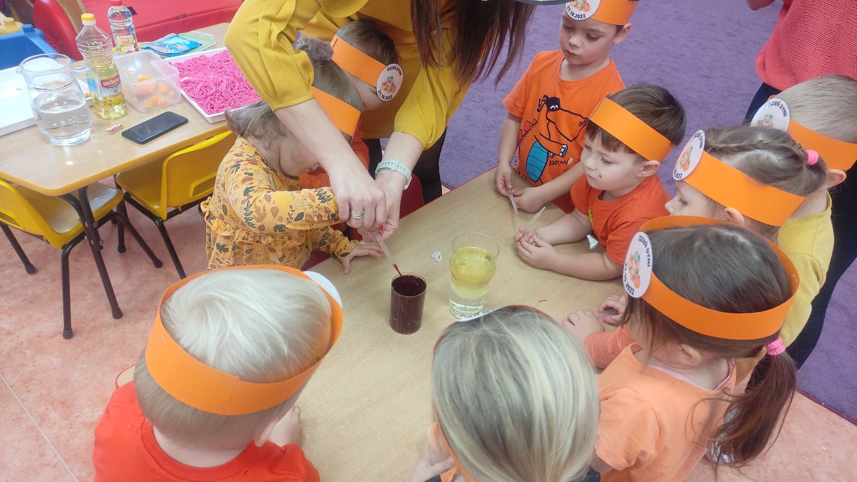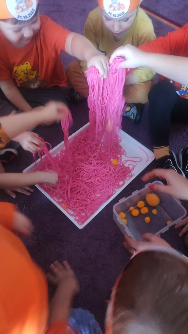 Dynia jest warzywem, które zachwyca swoim wyjątkowym wyglądem i smakiem, a przekonały się o tym Krasnale z naszego przedszkola uczestnicząc 31 października w Święcie Dyni. Tego dnia obowiązywał kolor pomarańczowy w ubiorze. Przedszkolaki mogły oglądać, dotykać różnej wielkości i różnego ubarwienia dynie. Poznały także jej cykl rozwoju:) Dowiedziały się, że dynia jest bardzo zdrowym warzywem i, że można z niej przygotować wiele dań tj.: pieczywo, zupę, dżem, ciasto. Dynia stała się również popularna jako ozdoba przed wejściem do domu. Przedszkolaki odkryły, co ukrywa się w środku dyni i wspólnie z paniami wyciągały pestki. Ponadto panie przygotowały eksperymenty tj. wybuchowa dynia, lampa lawa oraz zabawy sensoryczne z zabarwionym makaronem. Ogromną atrakcją była również ścianka do zdjęć, z dynią w rolu głównej oczywiście. Ten dzień był przepełniony zajęciami plastycznymi, zabawami i tańcami. A zwieńczeniem były pyszne placuszki dyniowe, które przygotowały panie na kucharki na obiad.