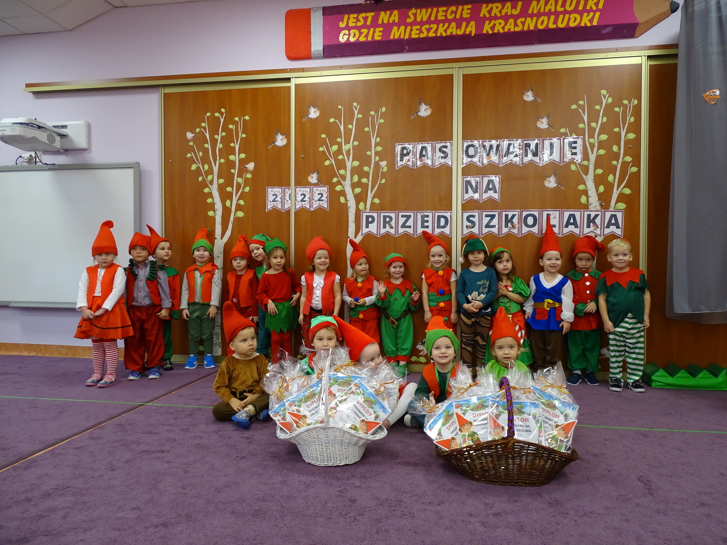 „Pasowanie na przedszkolaka” to pierwsza i jakże wyjątkowa uroczystość w życiu każdego dziecka, które po raz pierwszy rozpoczyna swoją przygodę z edukacją. 16 listopada dzieci z grupy Krasnale oficjalnie zostali przyjęci do grona przedszkolaków. Dla najmłodszych było to ogromne przeżycie, ale dzieci trzymały się bardzo dzielnie. Z uśmiechami na twarzach recytowały wierszyki, śpiewały piosenki, tańczyły. Po części artystycznej, dzieci złożyły ślubowanie, w którym obiecały: zgodnie bawić się w przedszkolu, przychodzić każdego dnia z uśmiechem, słuchać Pani, pomagać kolegom, być dzielnym przedszkolakiem. Następnie Pani Dyrektor za pomocą „czarodziejskiego ołówka” dokonała uroczystego „Aktu pasowania”. Nie zabrakło dyplomów i prezentów dla każdego przedszkolaka. Tuż po pasowaniu, dzieci wesoło bawiły się razem z Animatorkami. Ponadto naszych Krasnali odwiedził bohater bajkowy- Minionek, który ruszył do wspólnej zabawy. Na pewno był to niezapomniany dzień, pełen emocji i miłych wrażeń. Dziękujemy rodzicom za pomoc w przygotowaniu tej pierwszej uroczystości w naszej grupie😃😃
