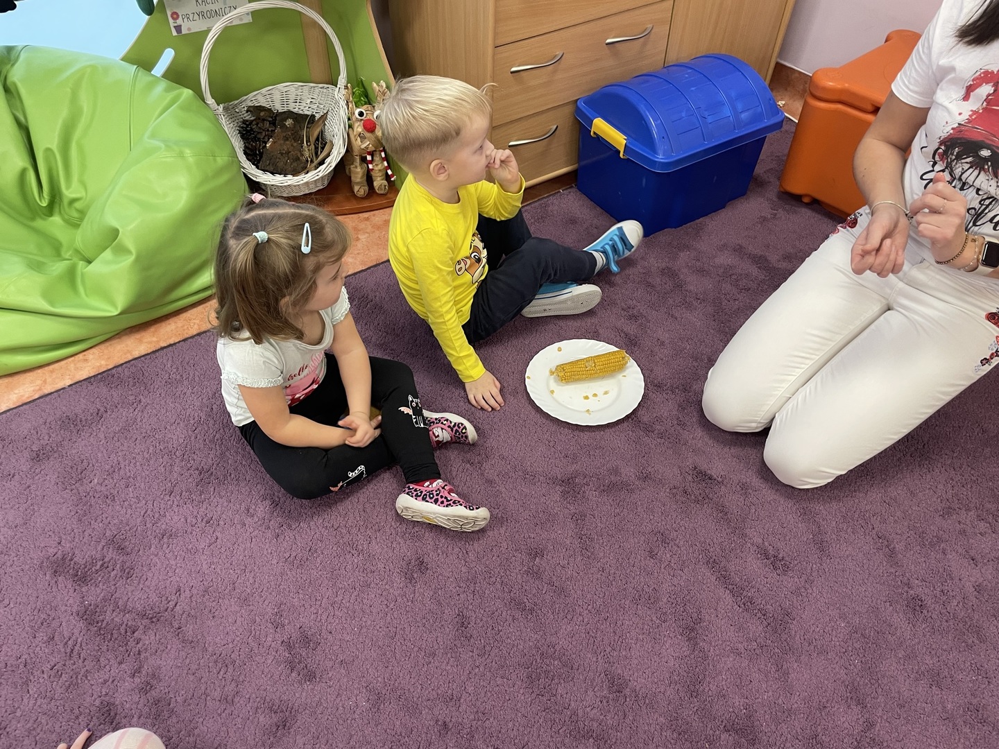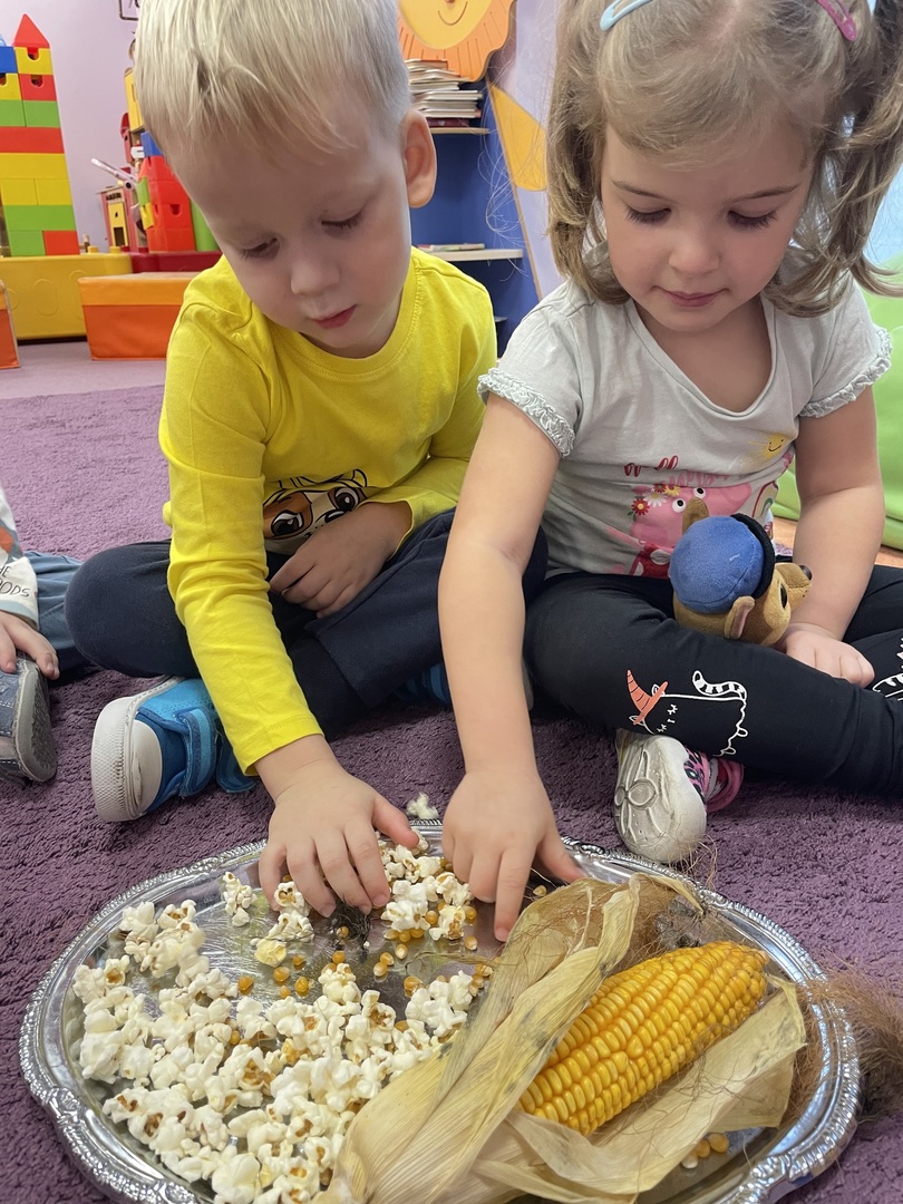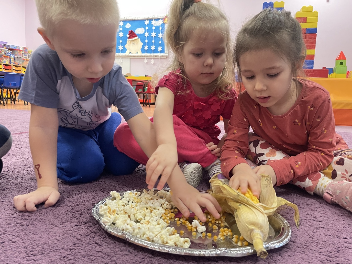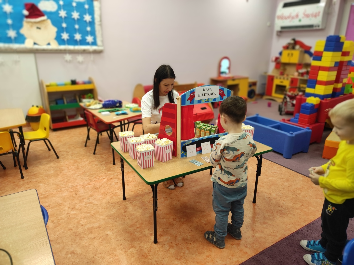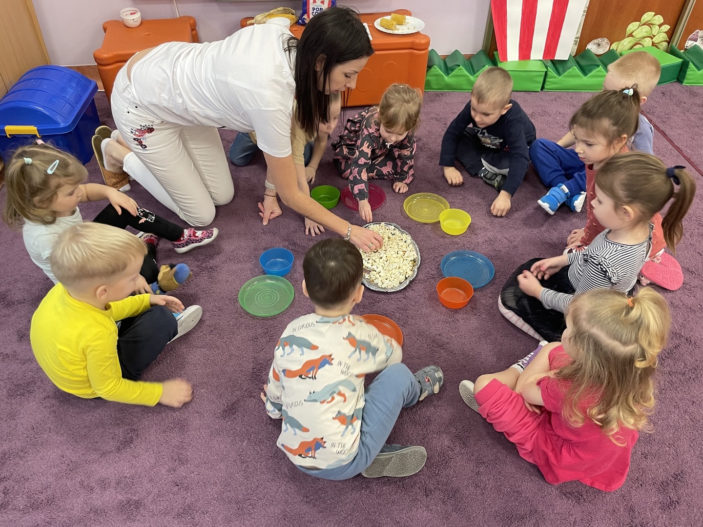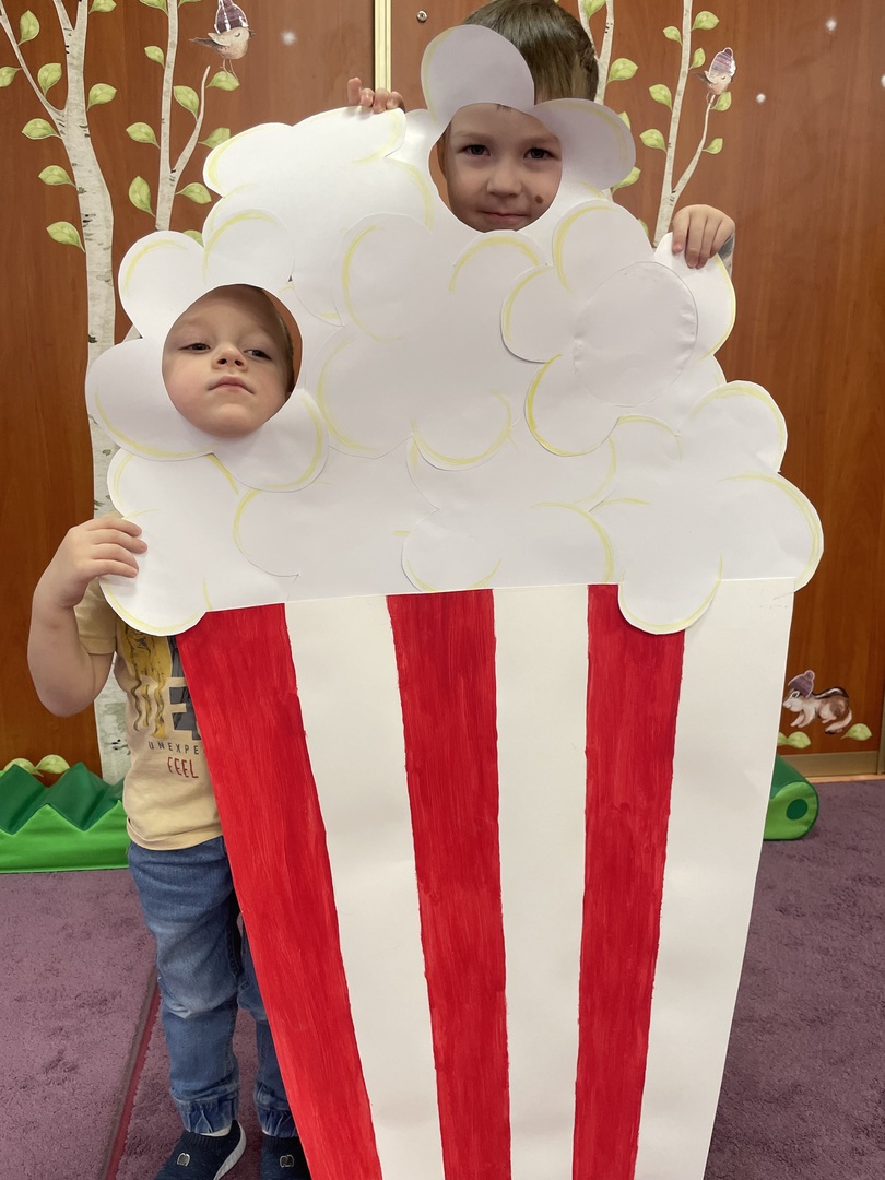 19 stycznia w grupie „Krasnoludki” odbył się Dzień Popcornu. Przedszkolaki dowiedziały się jak powstaje ten przysmak. Mogły na własne oczy zobaczyć, dotknąć ziarna oraz kolbę kukurydzy, a także posmakować gotowaną kukurydzę. Obejrzały również krótki film na ten temat tego jak powstaje popcorn oraz zrobiły go samodzielnie w specjalnej maszynie do popcornu. Świetnie również dały sobie radę z segregowaniem ziarenek kukurydzy i popcornu. Jednak największą atrakcją była wycieczka do kina. Każdy dzielny przedszkolak mógł samodzielnie kupić bilet na seans pt. "Nowe przygody Kubusia Puchatka", popcorn oraz soczek. Było fantastycznie! Na koniec każdy wykonał pamiątkowe zdjęcie w "popcornowej fotobudce".