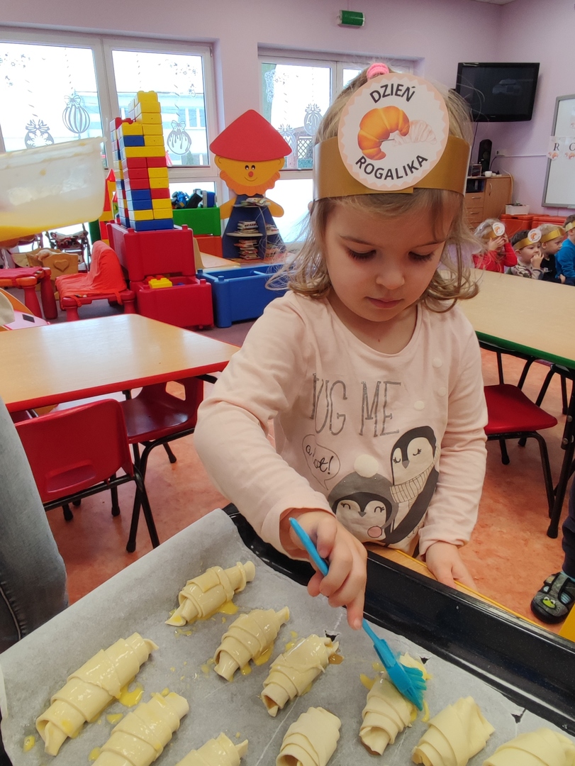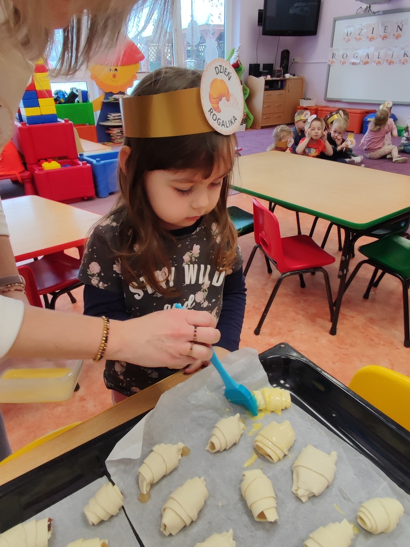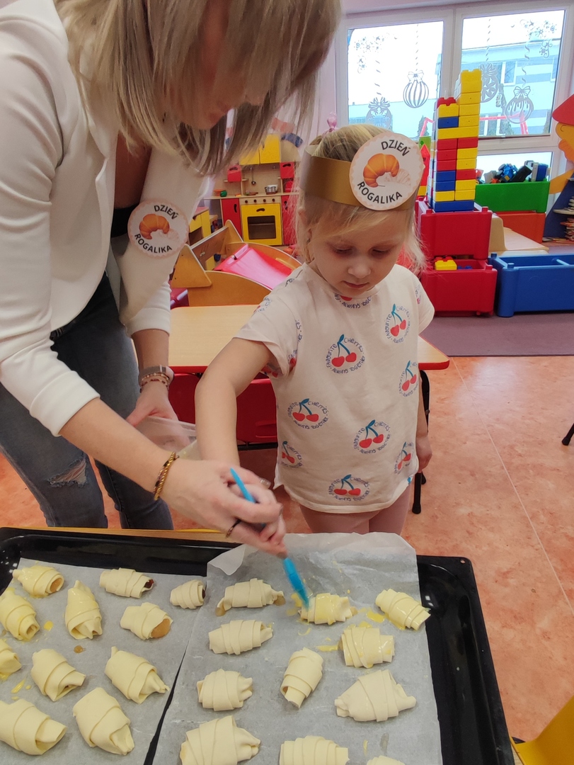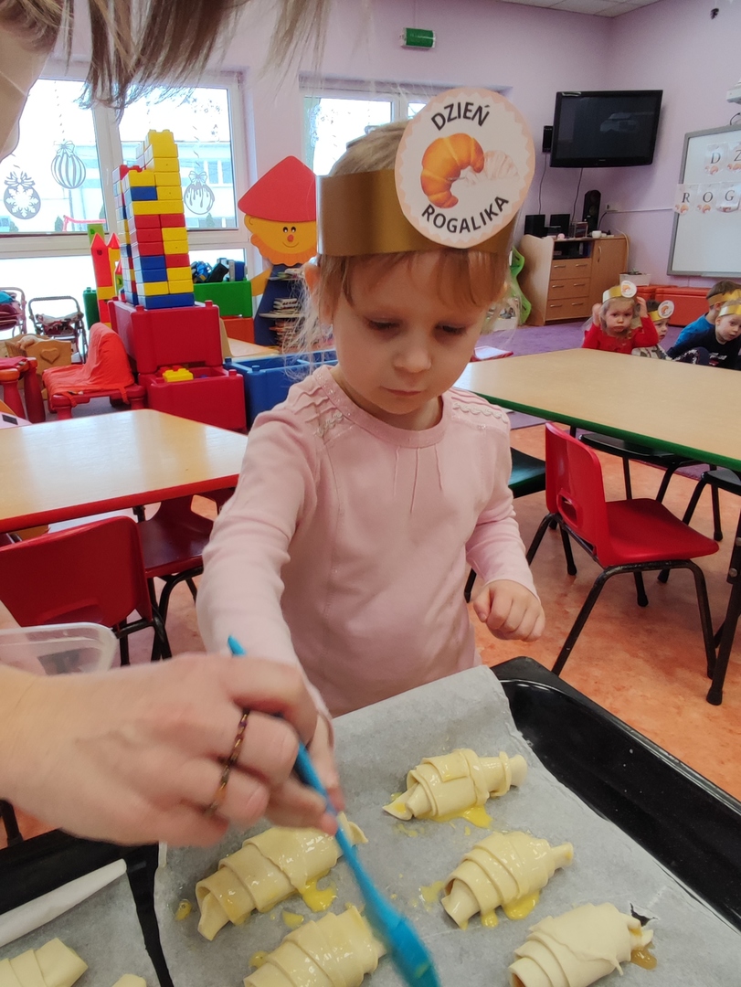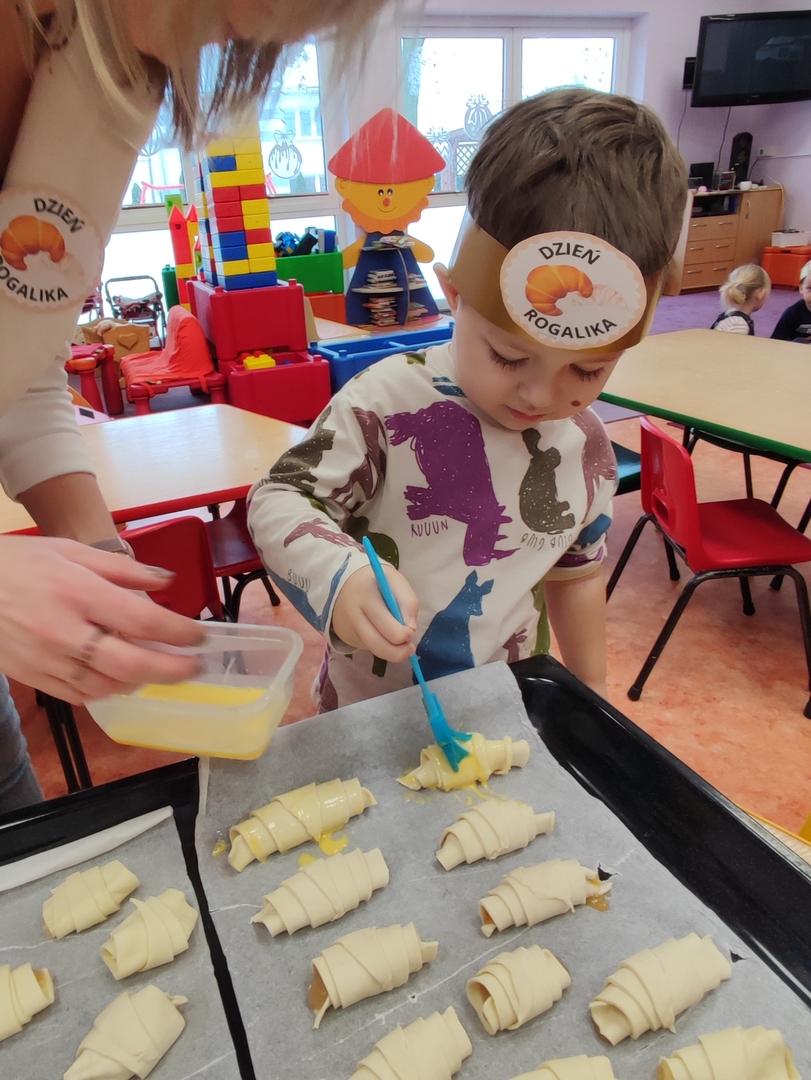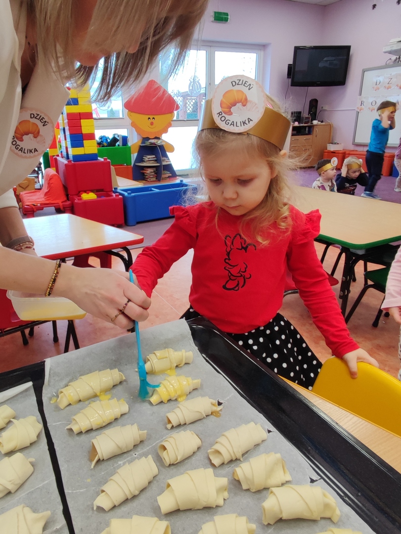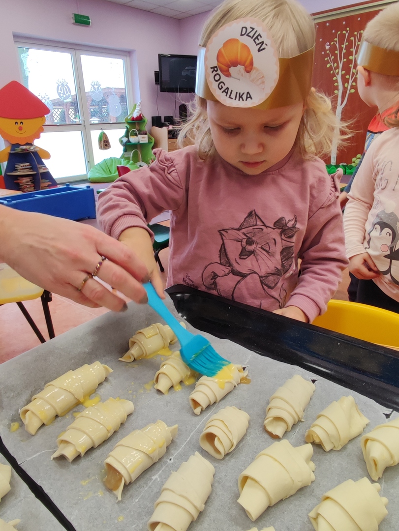 Charakterystyczny kształt półksiężyca, spieczona skórka i przeróżne nadzienia. Tak, mowa oczywiście o rogalikach🥐🥐. A w poniedziałek 30 stycznia, Dzień Rogalika obchodziła najmłodsza grupa przedszkolaków! Na początku dzieci poznały kształt rogala oraz jakiego rodzaju jest to produkt spożywczy. Krasnoludki oglądały różnego rodzaju rogaliki i wymieniały różnice między nimi. Ćwiczyły spostrzegawczość poprzez dopasowanie cienia do właściwego rogalika, a na zakończenie z pomocą pań, przygotowały pyszne rogaliki🥐🥐🥐. Nie zabrakło również zabaw ruchowych przy muzyce.