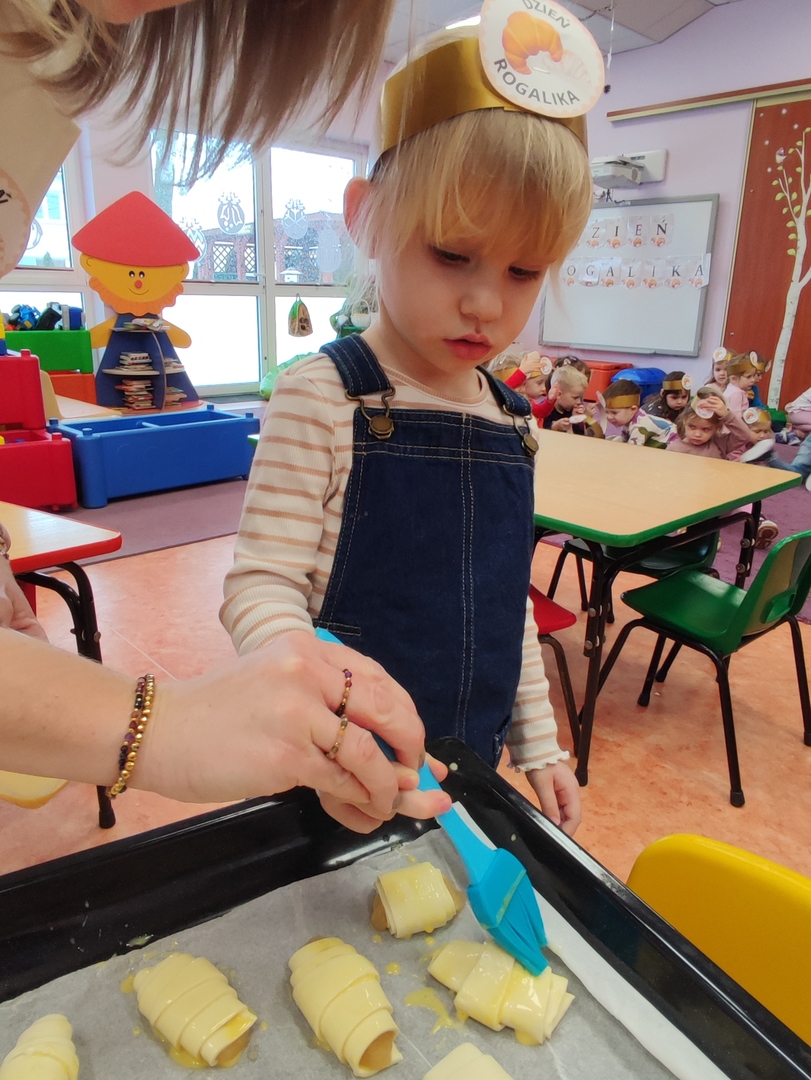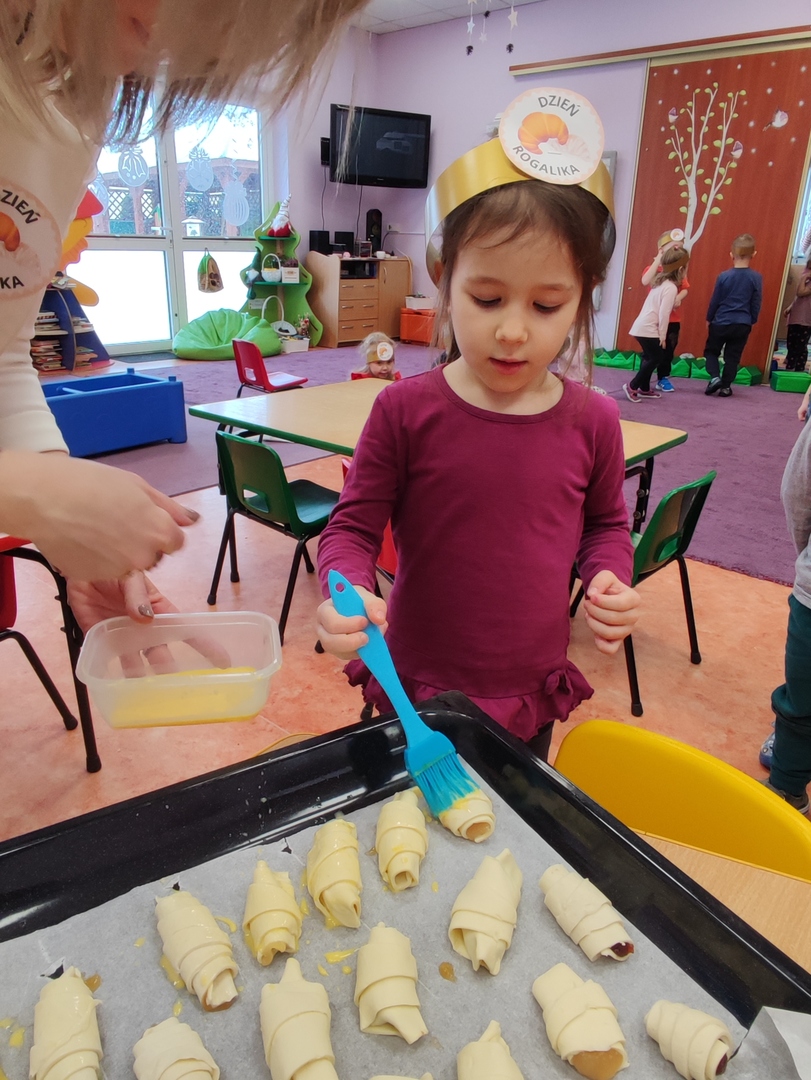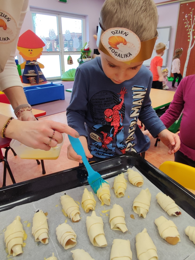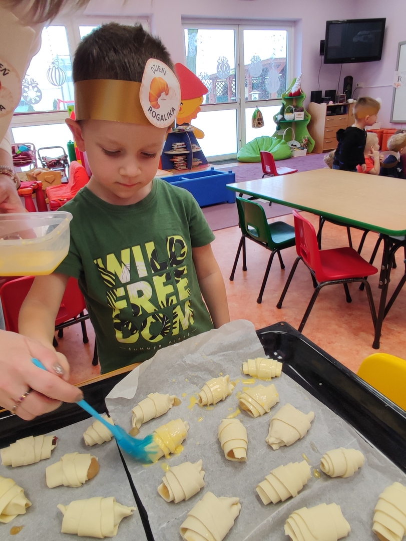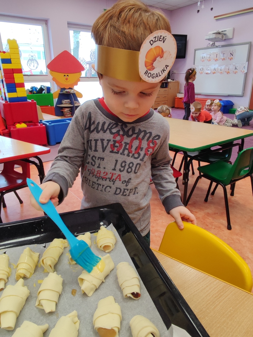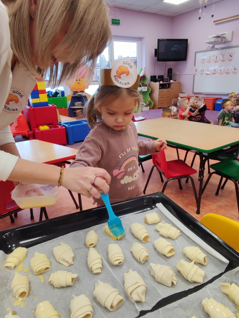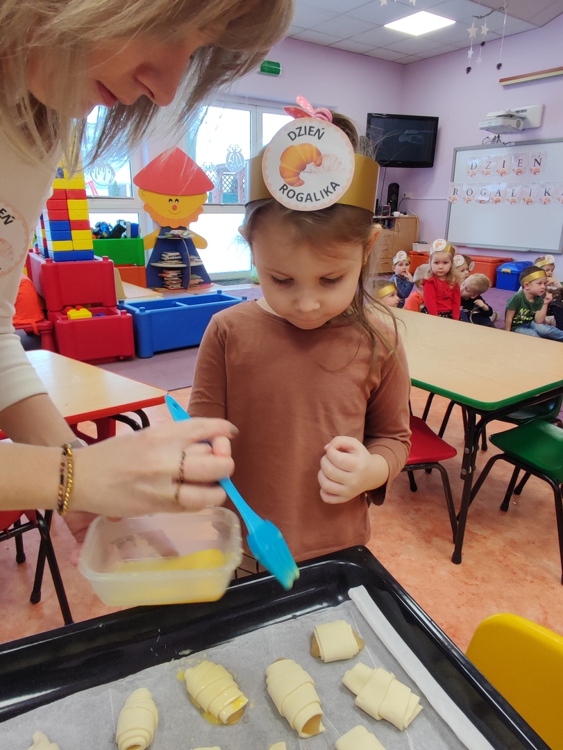 Charakterystyczny kształt półksiężyca, spieczona skórka i przeróżne nadzienia. Tak, mowa oczywiście o rogalikach🥐🥐. A w poniedziałek 30 stycznia, Dzień Rogalika obchodziła najmłodsza grupa przedszkolaków! Na początku dzieci poznały kształt rogala oraz jakiego rodzaju jest to produkt spożywczy. Krasnoludki oglądały różnego rodzaju rogaliki i wymieniały różnice między nimi. Ćwiczyły spostrzegawczość poprzez dopasowanie cienia do właściwego rogalika, a na zakończenie z pomocą pań, przygotowały pyszne rogaliki🥐🥐🥐. Nie zabrakło również zabaw ruchowych przy muzyce.