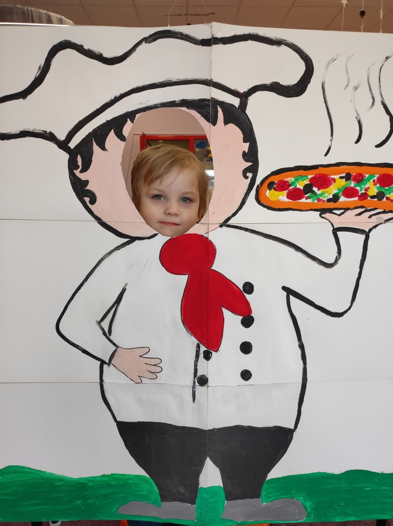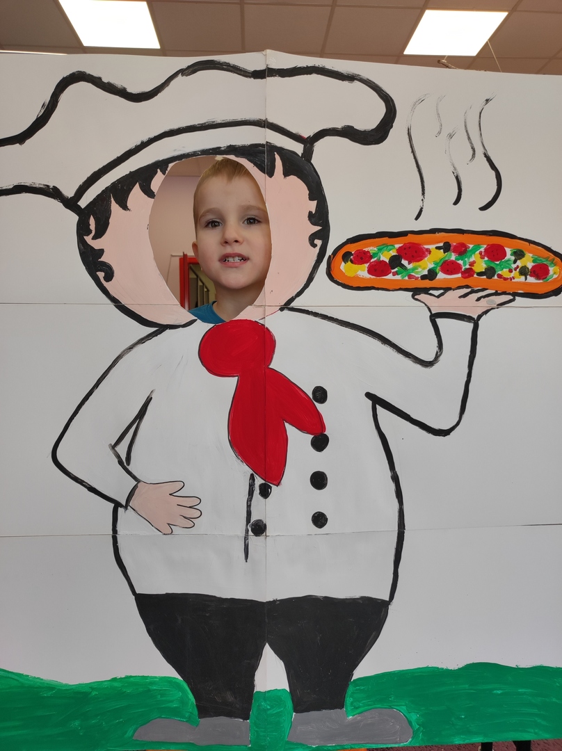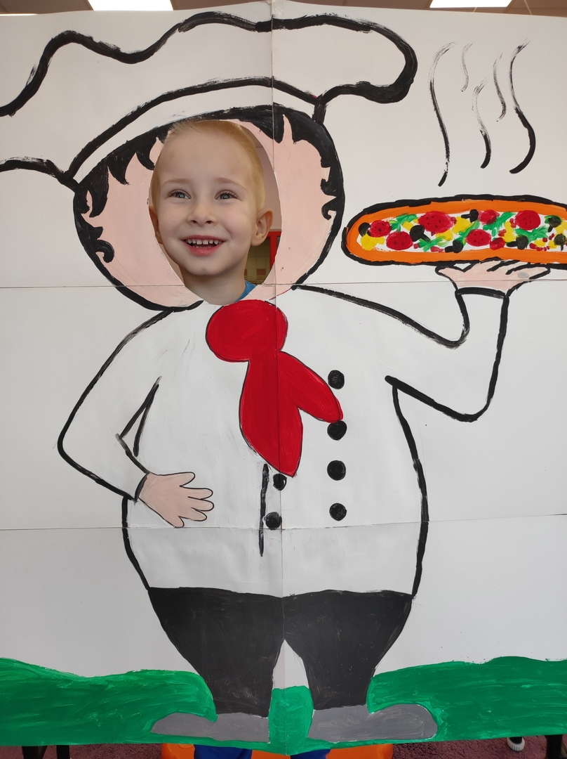 Nie zabrakło również fotobudki oraz zabaw ruchowych, a w tym zabawa w "kelnerkę i kelnera w pizzerii”. Dzieci świetnie się spisały w tej roli, gdyż żaden placek nie wylądował na podłodze ;)