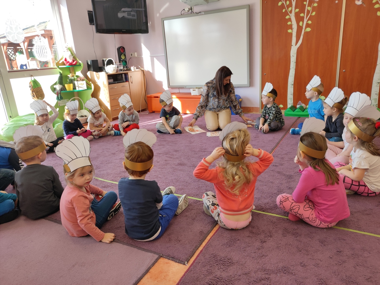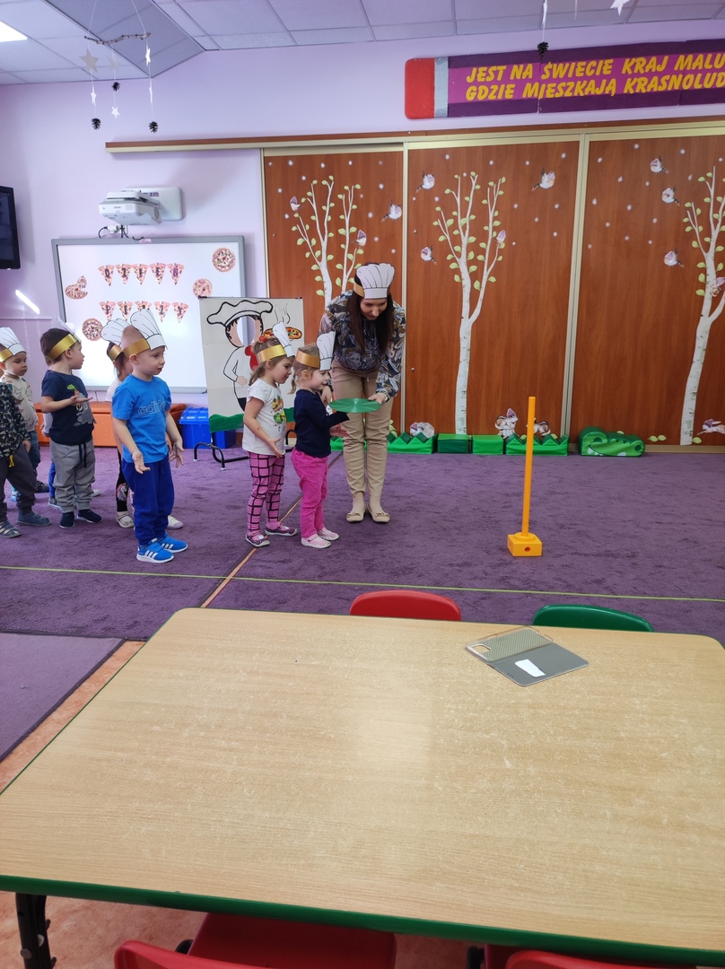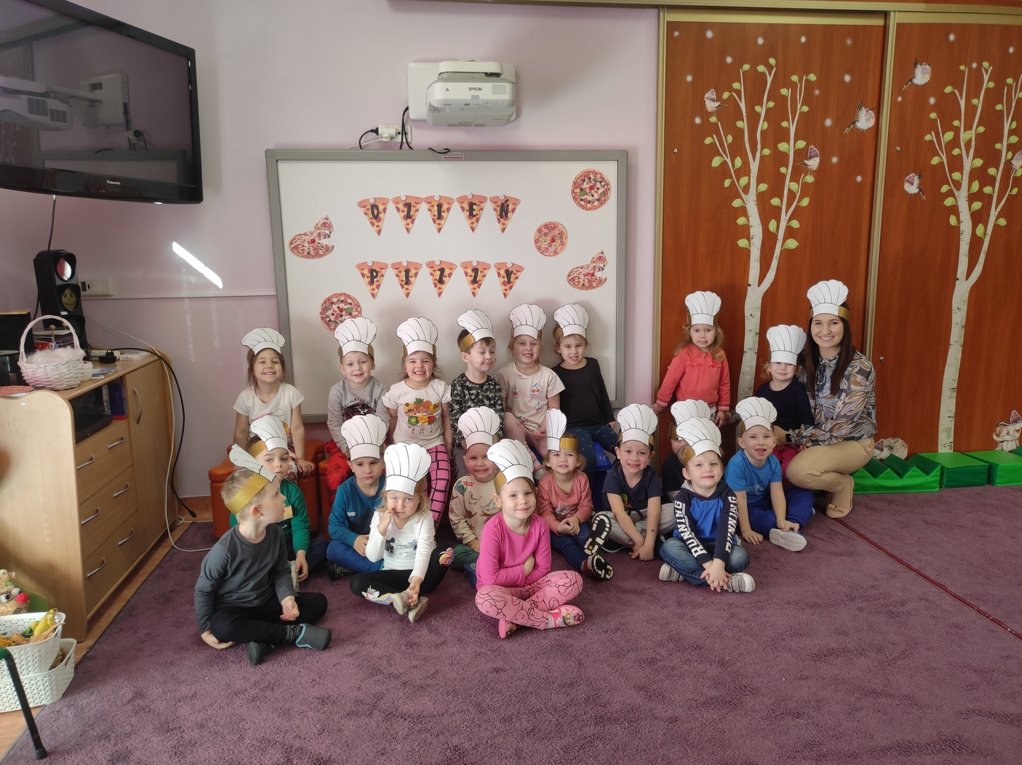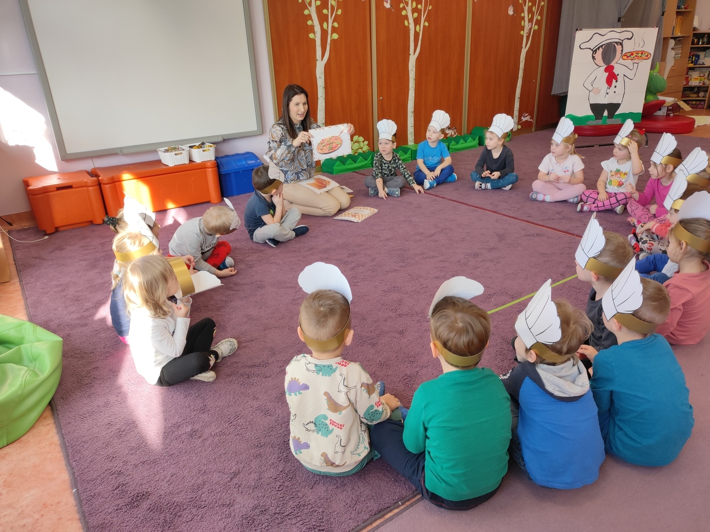 Podczas zajęć dzieci poznały krótką historię pizzy, dowiedziały się, z jakiego kraju pochodzi oraz poznały składniki, które są niezbędne do jej przygotowania.