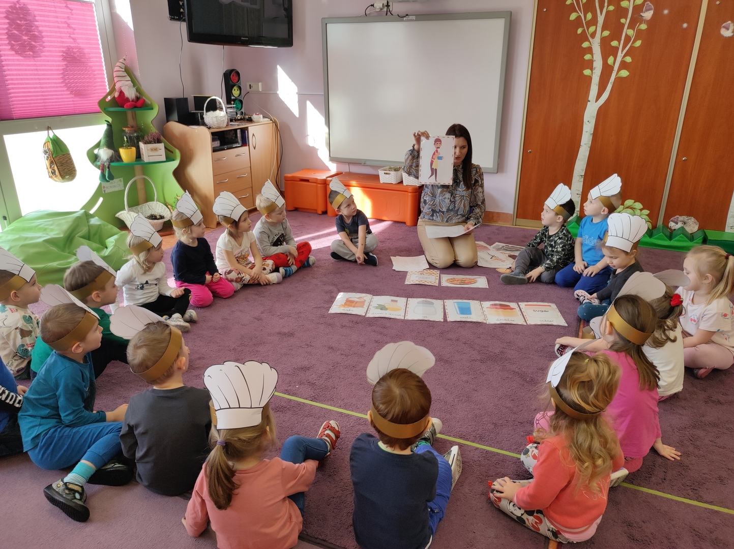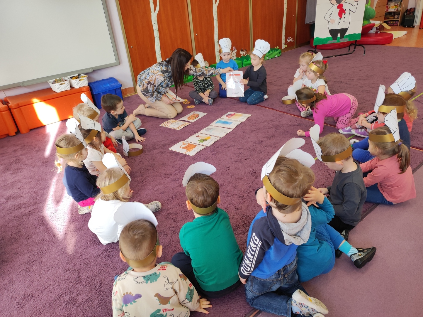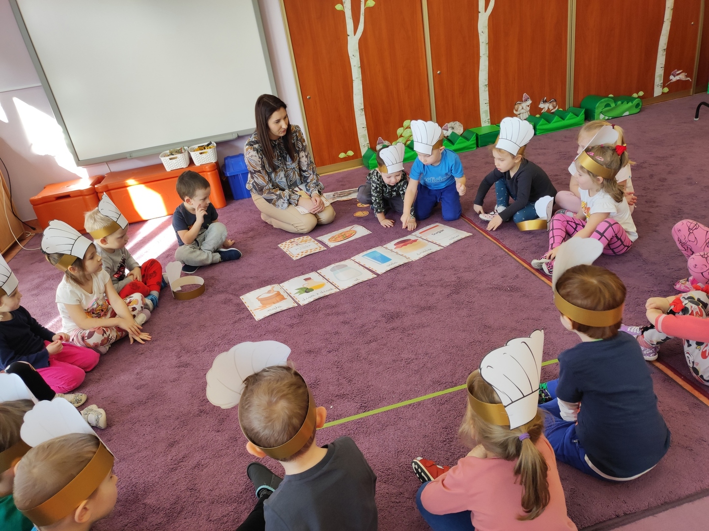 Podczas zajęć dzieci poznały krótką historię pizzy, dowiedziały się, z jakiego kraju pochodzi oraz poznały składniki, które są niezbędne do jej przygotowania.