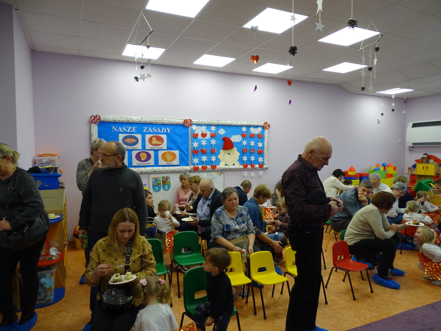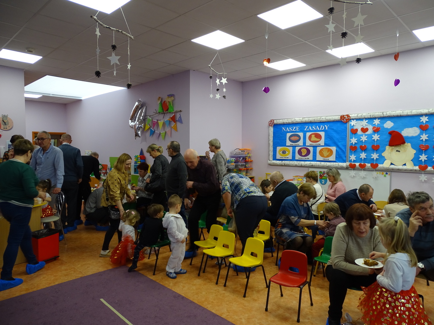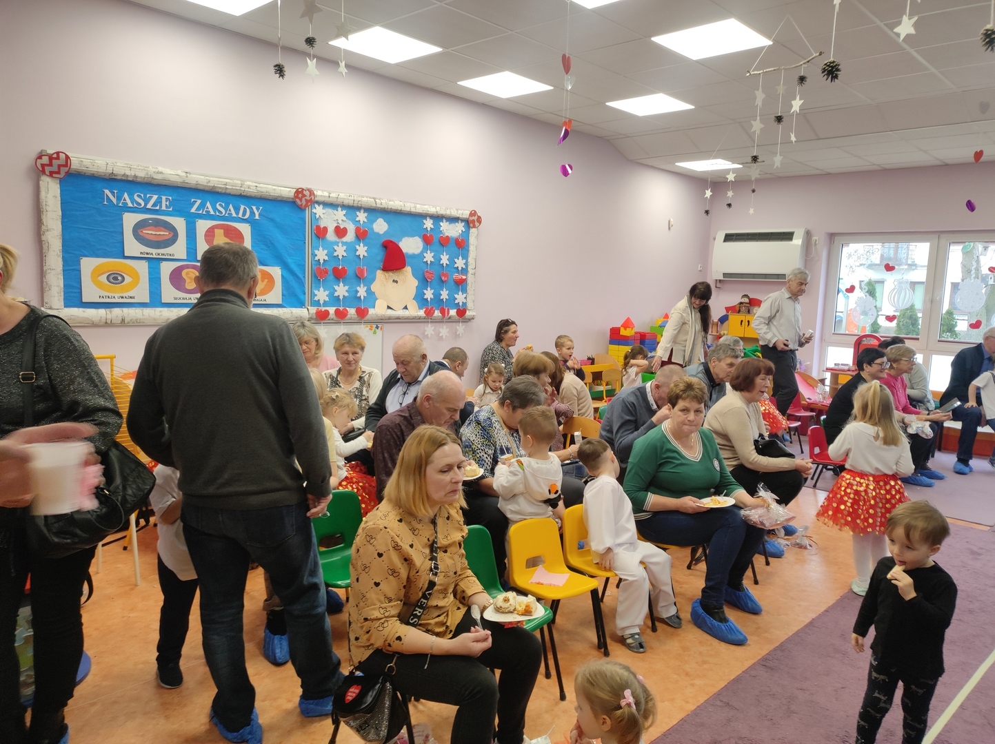 Dziadkowie to wielki skarb dla wnuków, oni czynią ich dzieciństwo bardziej pełnym, udanym i szczęśliwym. Babcia i dziadek mają zawsze dla nich czas, umieją pocieszyć, są cierpliwi, zawsze rozumieją ich dziecięce rozterki, ale przede wszystkim bezgranicznie je kochają. Wnuczęta są dla nich radością życia. Dlatego, w podzięce za ich wielkie serce, w dniu 15 lutego odbyło się uroczyste spotkanie, które stało się tradycją w naszym przedszkolu. Pani Dyrektor witała ciepłymi słowami szanownych gości, składając im serdeczne życzenia. Seniorzy mogli podziwiać umiejętności swoich wnuków prezentujących wiersze, piosenki i tańce. Mali artyści z dużym przejęciem i zaangażowaniem odtwarzali swoje role. Na koniec wszystkie wnuczęta obdarowały swoich bliskich przygotowanymi prezentami. Goście ze wzruszeniem patrzyli na swoje pociechy i brawami dziękowali za występy. Dopełnieniem uroczystego spotkania były gry i zabawy z dziadkami oraz słodki poczęstunek.