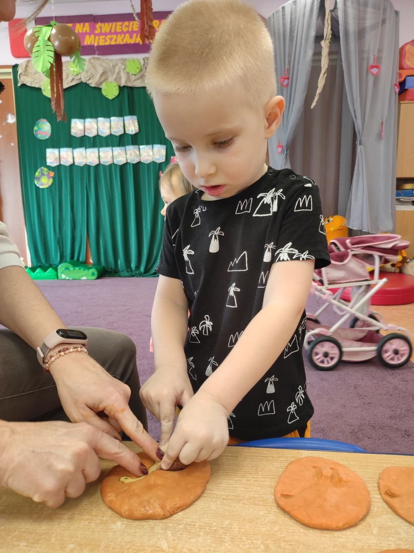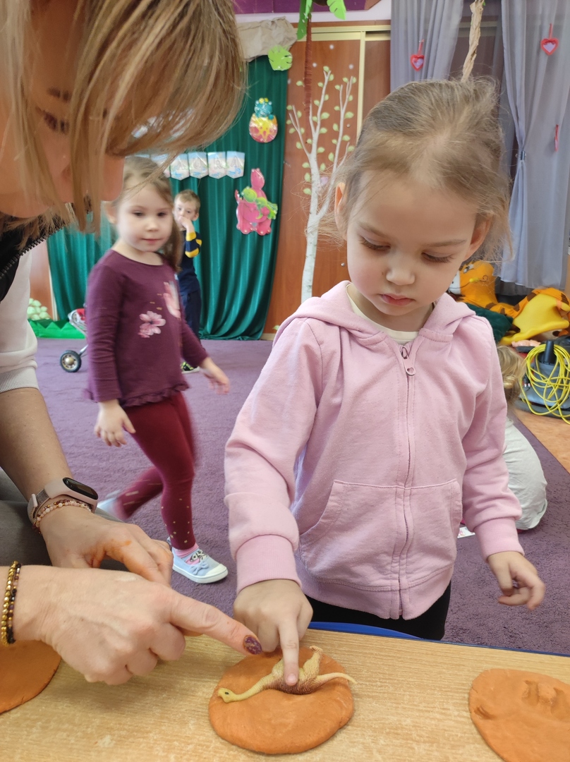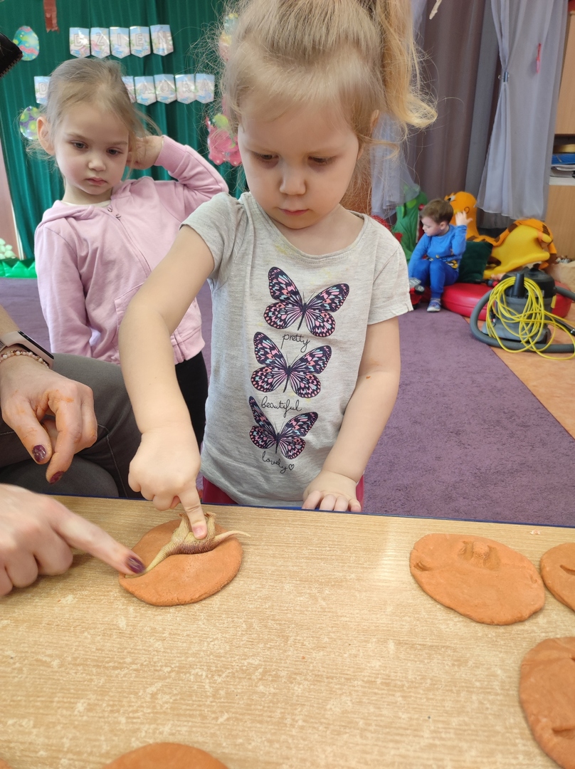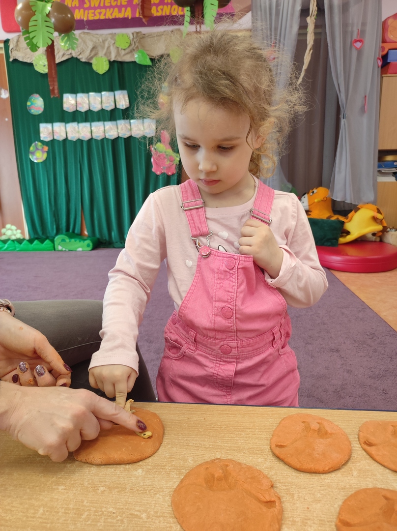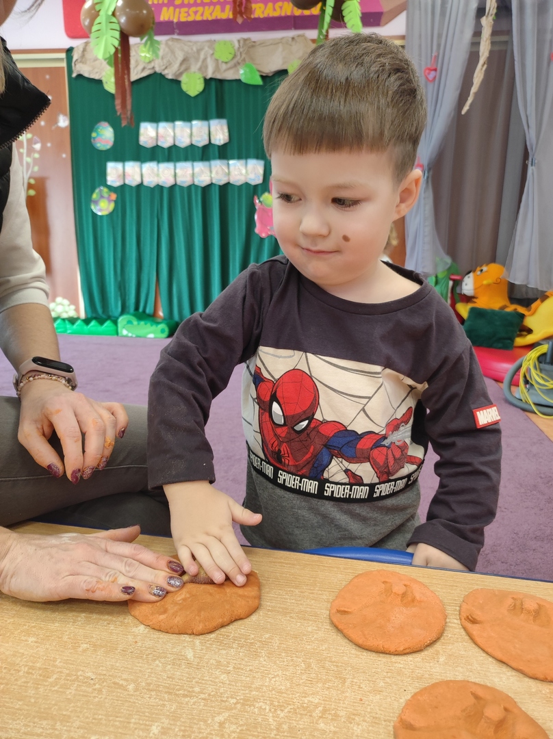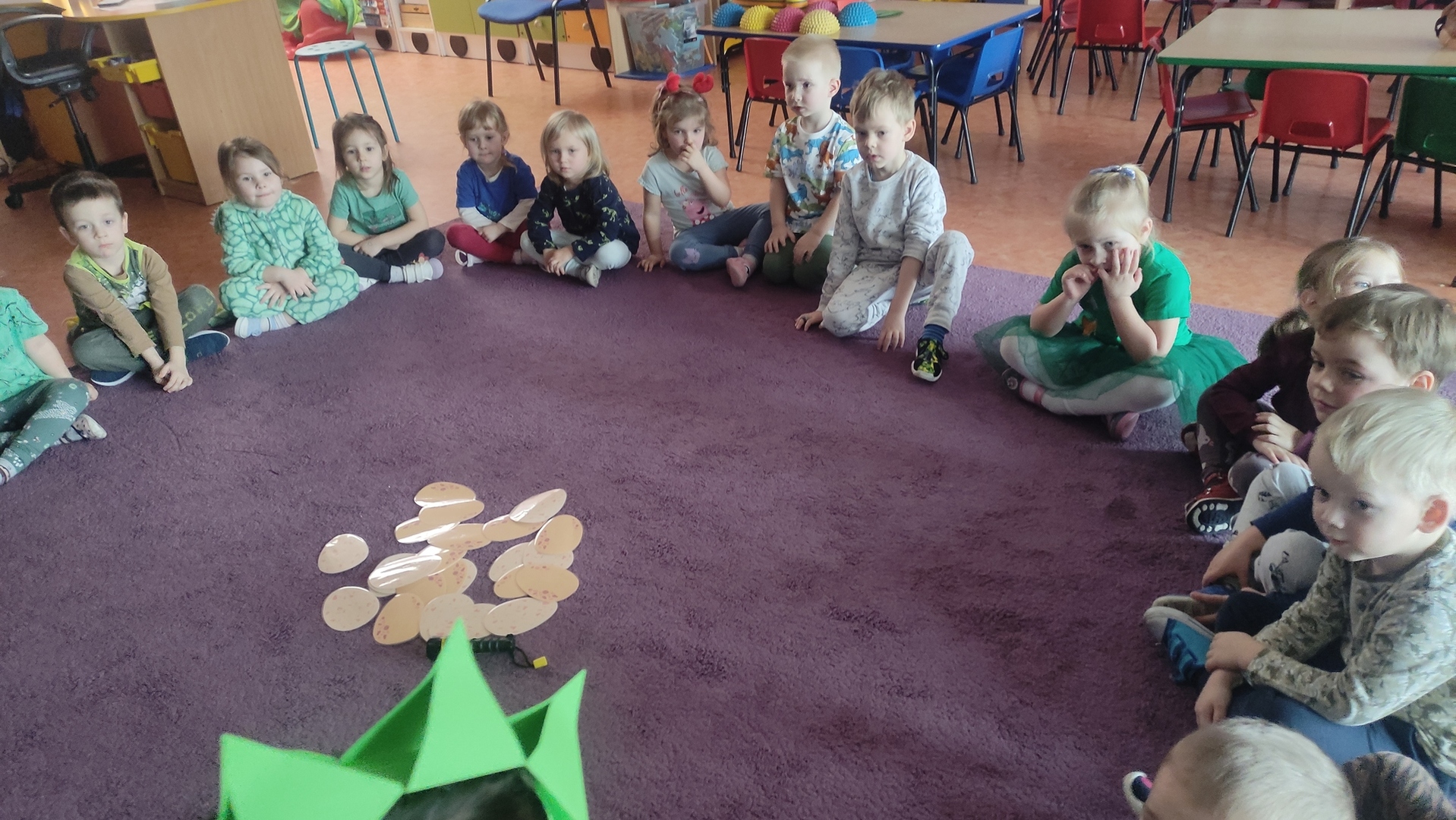 24 lutego w najmłodszej grupie obchodzono Dzień Dinozaura. Te stworzenia fascynują dzieci, kryją wiele tajemnic, zaskakują swoim wyglądem i wielkością. Dlatego też przedszkolaki poznały historię dinozaurów, dowiedziały się jak wyglądały, czym się żywiły oraz jak wyginęły - wykonując proste doświadczenie. Na początku podglądały jakie dinozaury znajdują się w niewyklutych jeszcze jajach, po czym przydzielały je do konkretnej dinozaurowej mamy. Nie zabrakło tego dnia zabaw ruchowych oraz sensorycznych. Ponadto.... przedszkolaków odwiedzili goście specjalni, a mianowicie Triceratops i T-rex, którzy pozowali razem z dziećmi do zdjęć :) Na zakończenie na małych Dinoznawców czekał słodki poczęstunek, przygotowany przez rodziców, za który serdecznie dziękujemy. Był to szczególny dzień, pełen radosnych wrażeń.