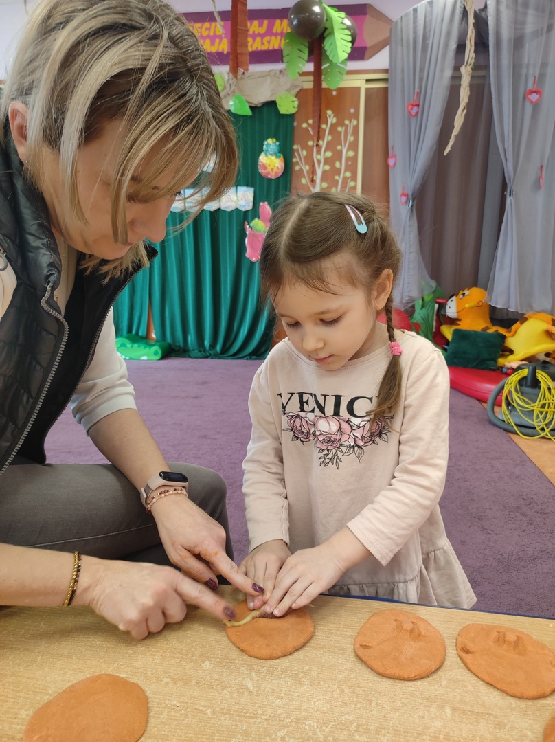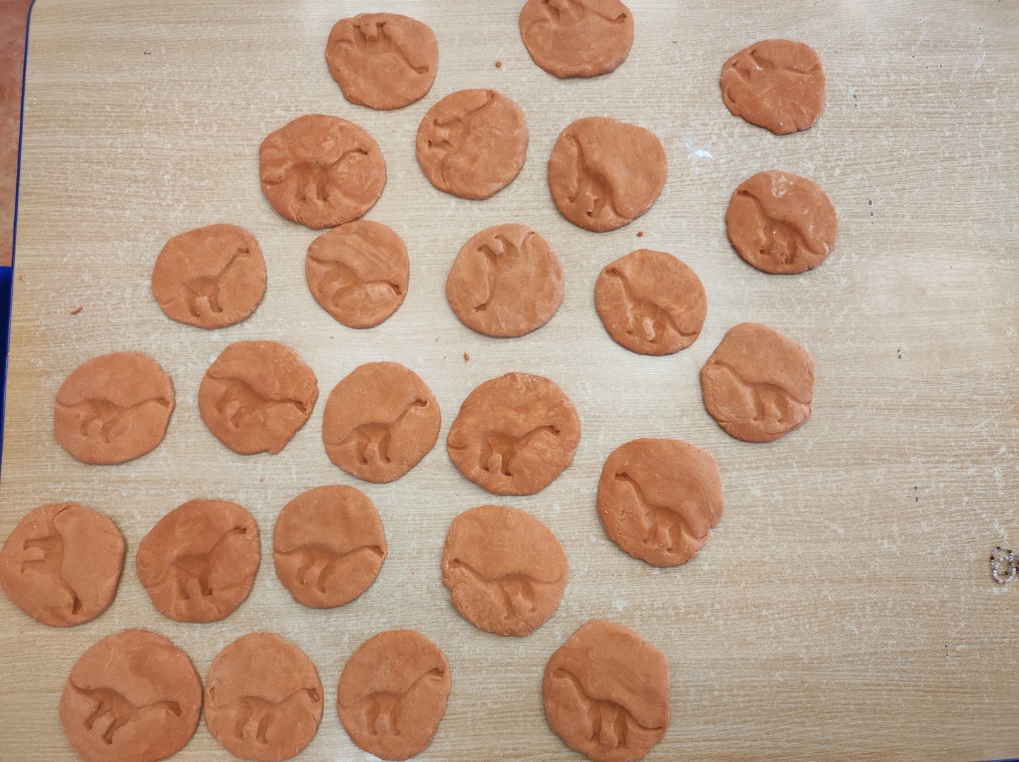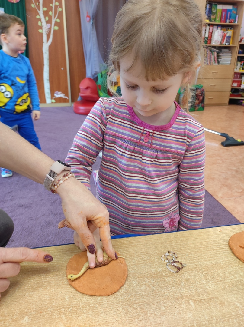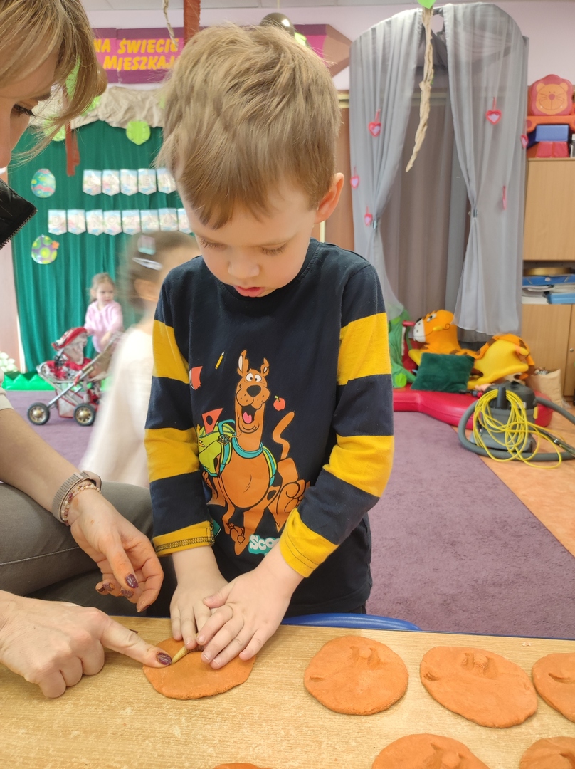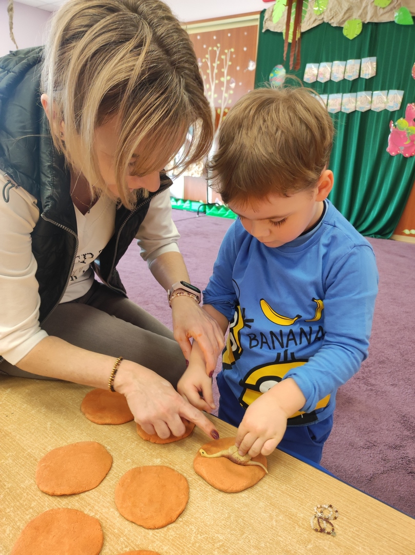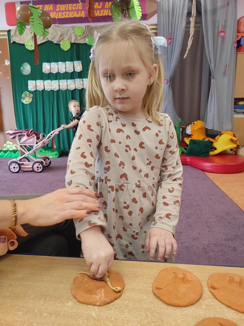 24 lutego w najmłodszej grupie obchodzono Dzień Dinozaura. Te stworzenia fascynują dzieci, kryją wiele tajemnic, zaskakują swoim wyglądem i wielkością. Dlatego też przedszkolaki poznały historię dinozaurów, dowiedziały się jak wyglądały, czym się żywiły oraz jak wyginęły - wykonując proste doświadczenie. Na początku podglądały jakie dinozaury znajdują się w niewyklutych jeszcze jajach, po czym przydzielały je do konkretnej dinozaurowej mamy. Nie zabrakło tego dnia zabaw ruchowych oraz sensorycznych. Ponadto.... przedszkolaków odwiedzili goście specjalni, a mianowicie Triceratops i T-rex, którzy pozowali razem z dziećmi do zdjęć :) Na zakończenie na małych Dinoznawców czekał słodki poczęstunek, przygotowany przez rodziców, za który serdecznie dziękujemy. Był to szczególny dzień, pełen radosnych wrażeń.