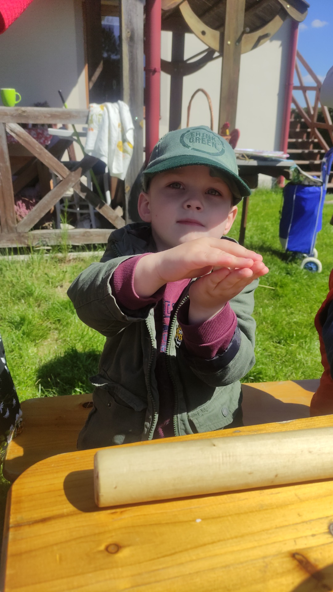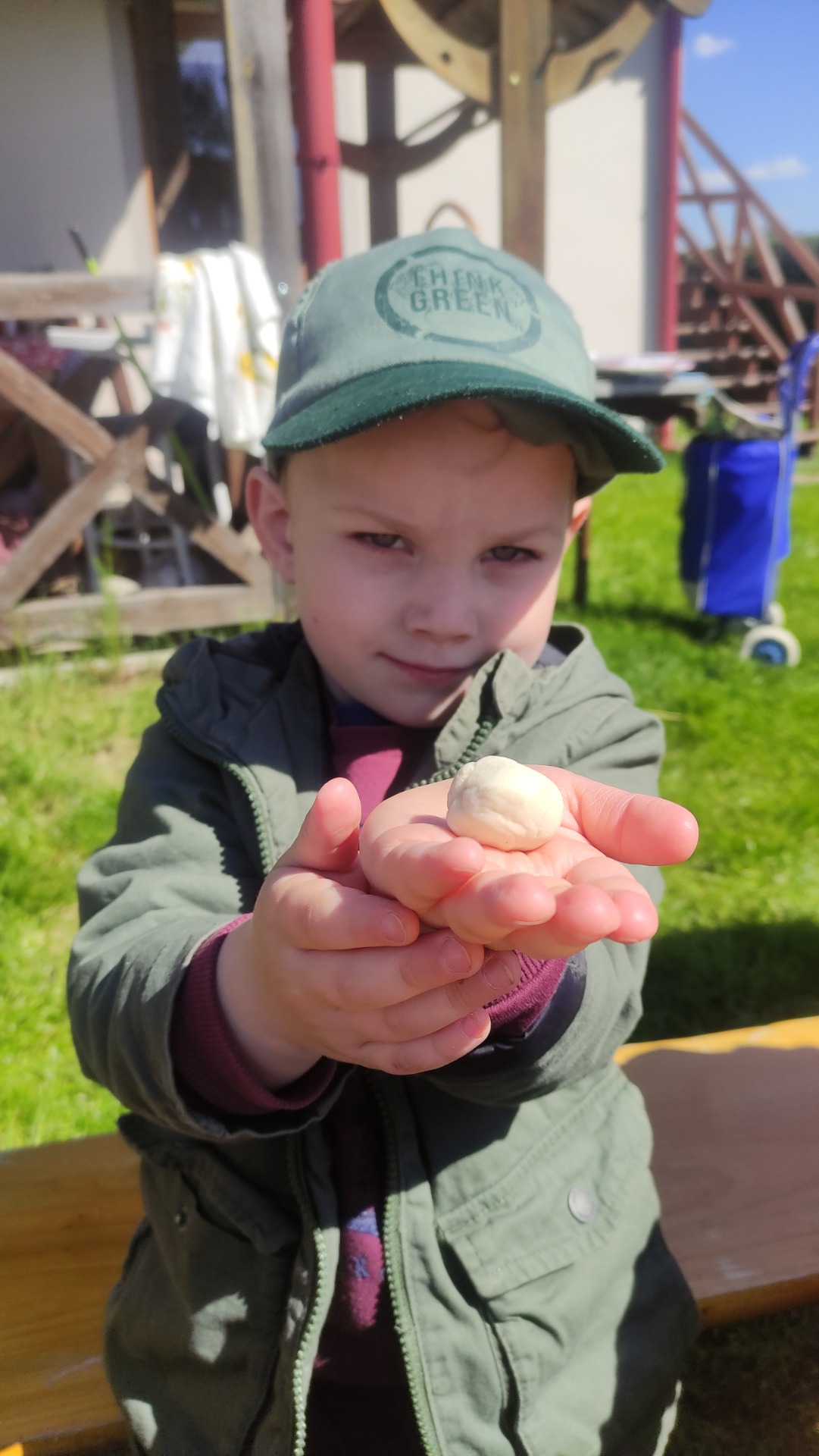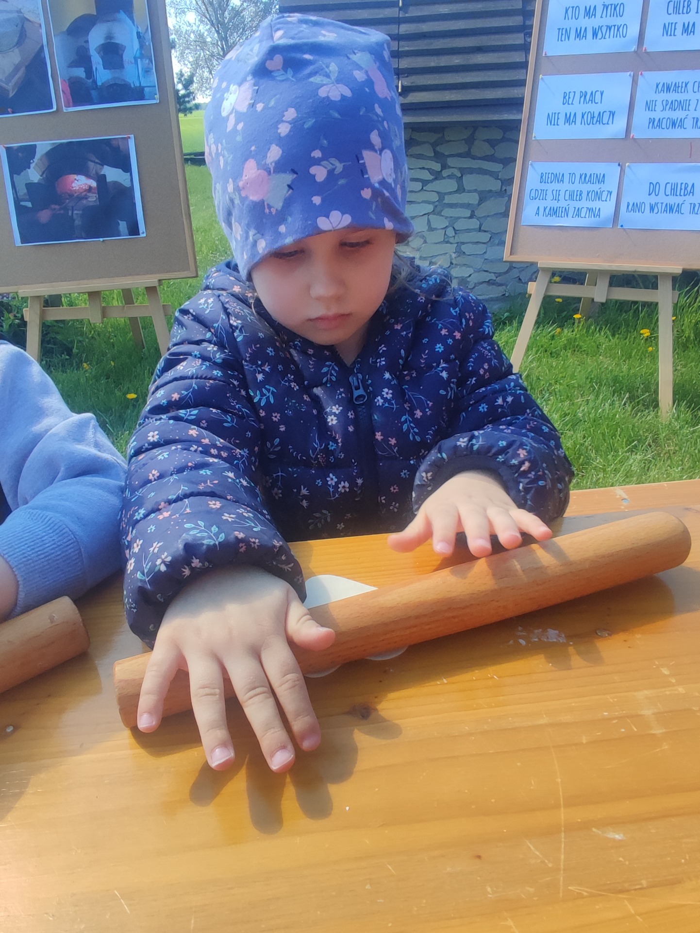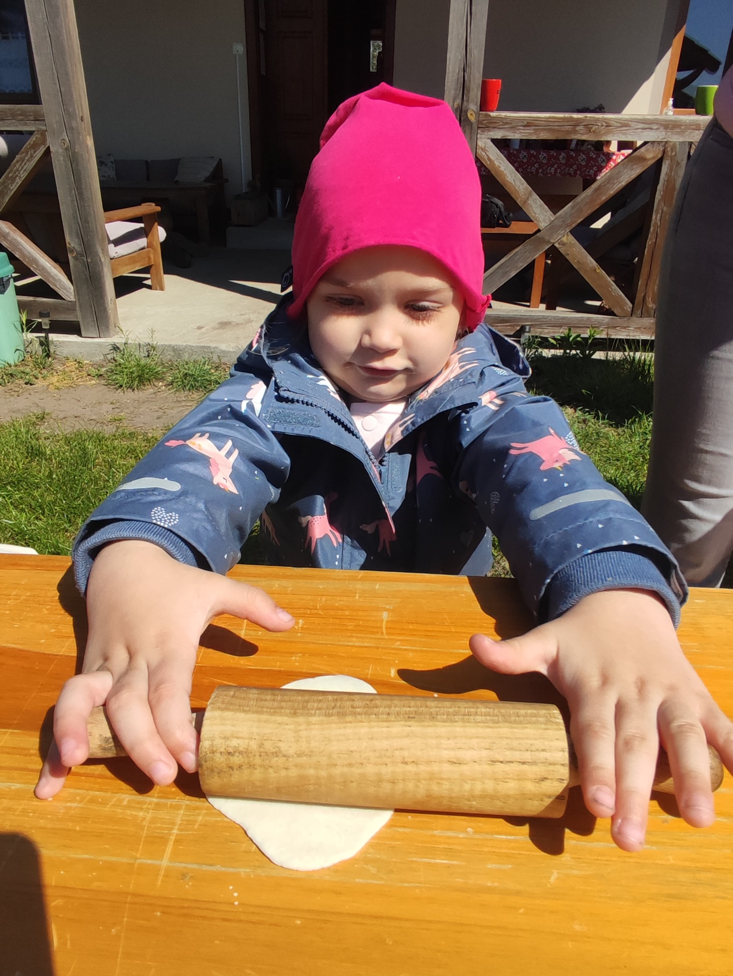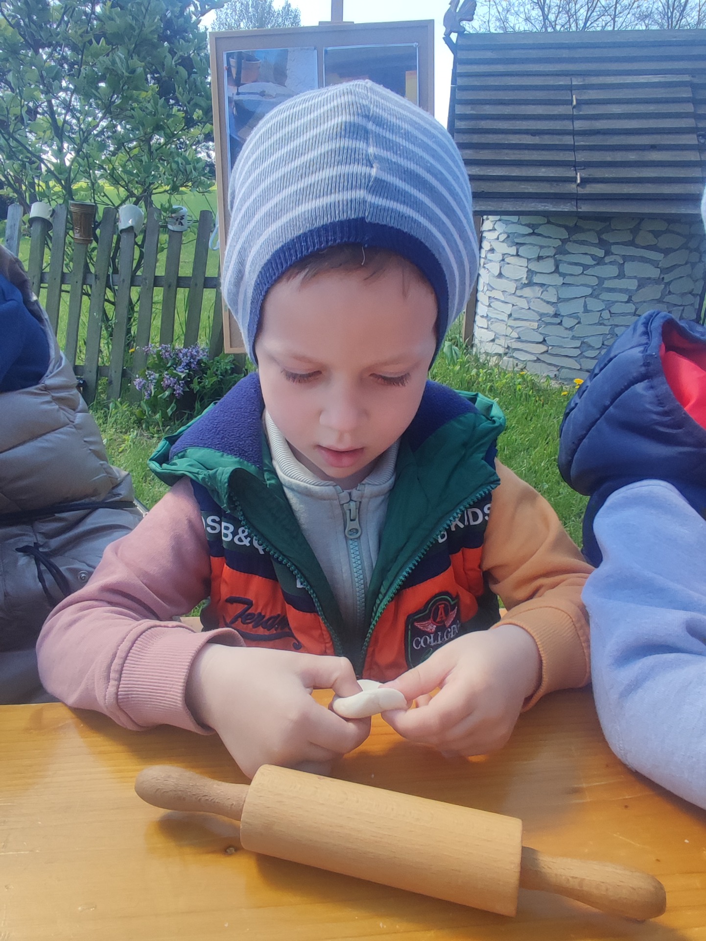 9 maja grupa Krasnali wybrała się na wycieczkę do Siedliska przy zamku w Besiekierach. Dzieci poznały proces pozyskiwania mąki w dawnych czasach i dziś, a następnie przygotowały własnoręcznie podpłomyki, które zostały upieczone przez panie na piecu i zjedzone ze smakiem przez dzieci w wybranej przez siebie formie (suchy, z masłem, z miodem lub pełen zestaw :). Odbył się piknik na świeżym powietrzu. Następnym punktem naszej wycieczki był udział w zabawie tropiącej podczas której maluchy miały okazję poznać legendę związaną z zamkiem oraz z diabłem Borutą. Następnie przedszkolaki sprawdziły swoje siły w różnych konkurencjach sportowych w pobliżu zamku, w tym, w: przeciąganiu liny, sadzeniu ziemniaków, rzucaniu wianuszkiem na kołeczek, przenoszeniu kukurydzy na drewnianej łyżce, czy wyścigach do palika. Nie zabrakło również spaceru wokół ruin i opowieści go dotyczących. Miejsce zaczarowało nas swoim urokiem :)