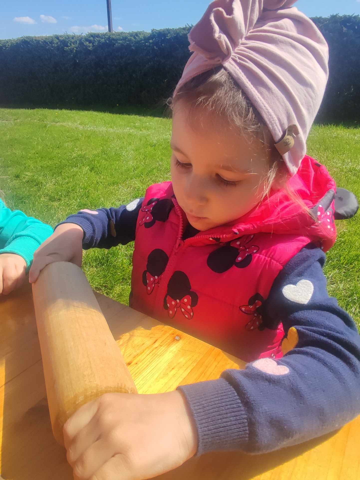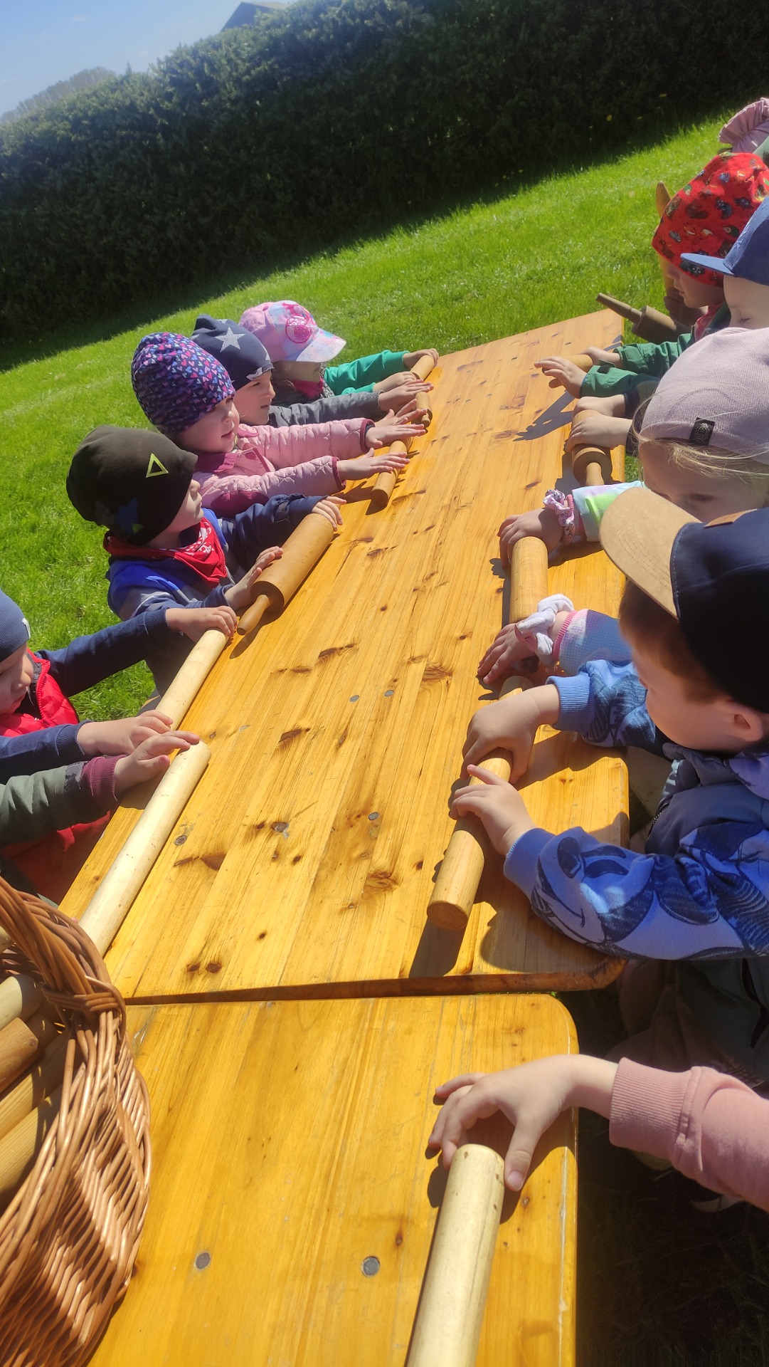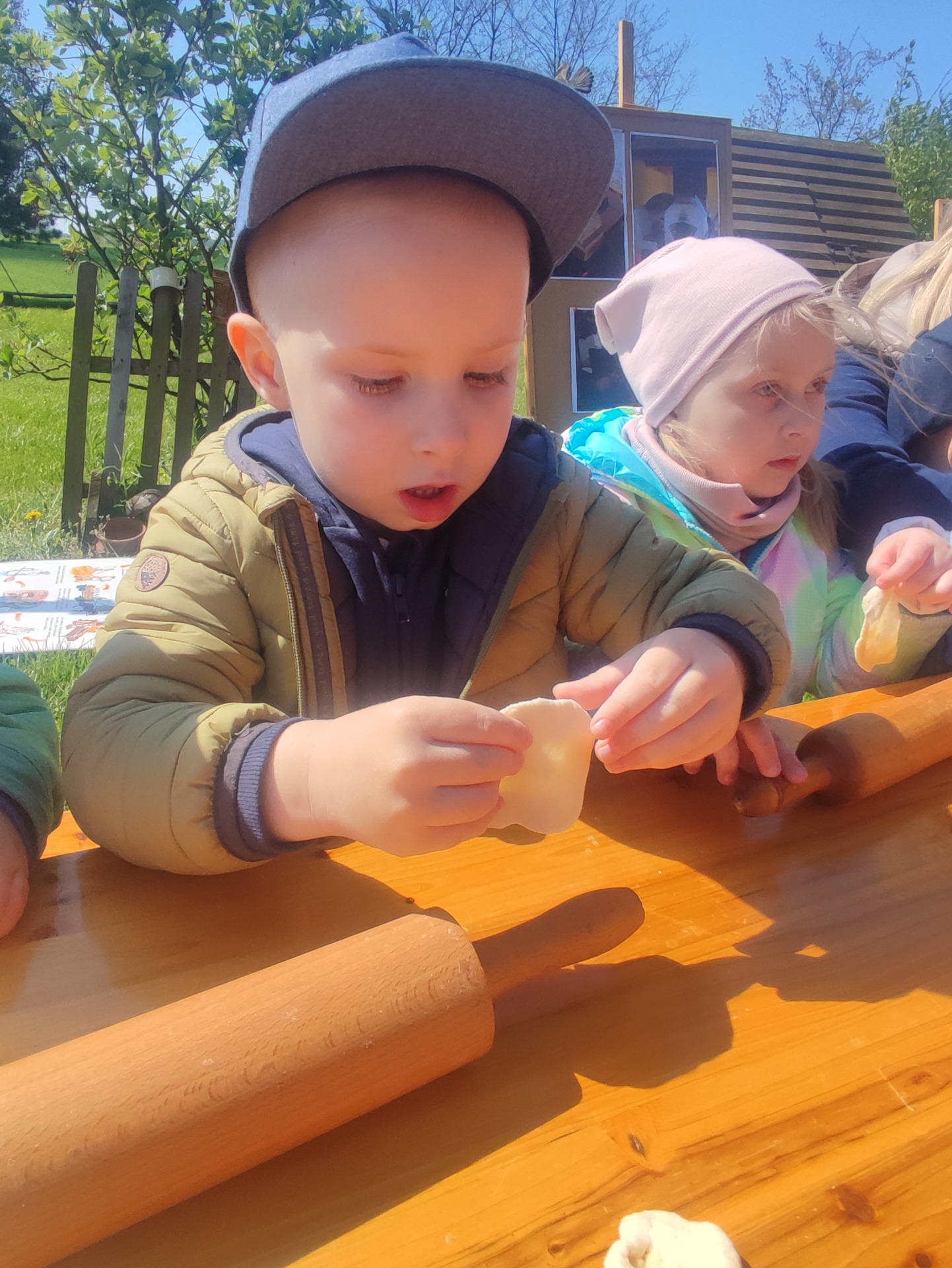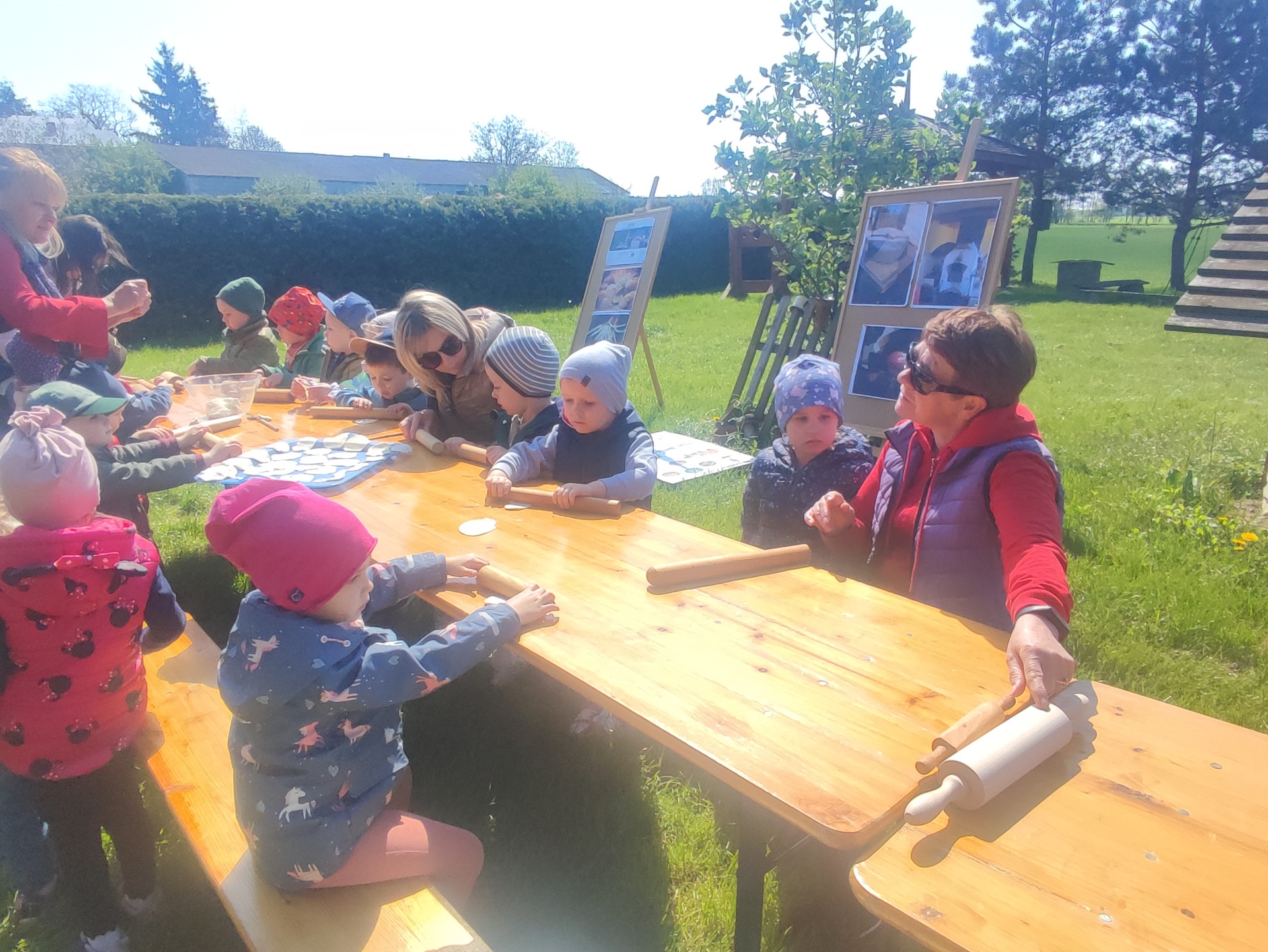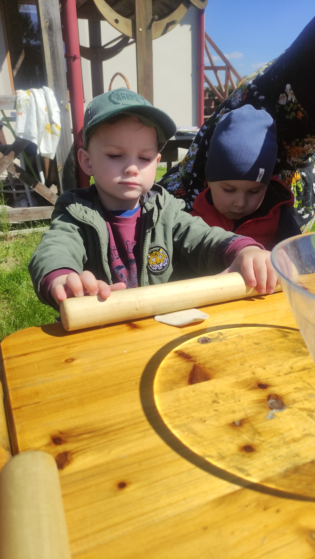 9 maja grupa Krasnali wybrała się na wycieczkę do Siedliska przy zamku w Besiekierach. Dzieci poznały proces pozyskiwania mąki w dawnych czasach i dziś, a następnie przygotowały własnoręcznie podpłomyki, które zostały upieczone przez panie na piecu i zjedzone ze smakiem przez dzieci w wybranej przez siebie formie (suchy, z masłem, z miodem lub pełen zestaw :). Odbył się piknik na świeżym powietrzu. Następnym punktem naszej wycieczki był udział w zabawie tropiącej podczas której maluchy miały okazję poznać legendę związaną z zamkiem oraz z diabłem Borutą. Następnie przedszkolaki sprawdziły swoje siły w różnych konkurencjach sportowych w pobliżu zamku, w tym, w: przeciąganiu liny, sadzeniu ziemniaków, rzucaniu wianuszkiem na kołeczek, przenoszeniu kukurydzy na drewnianej łyżce, czy wyścigach do palika. Nie zabrakło również spaceru wokół ruin i opowieści go dotyczących. Miejsce zaczarowało nas swoim urokiem :)