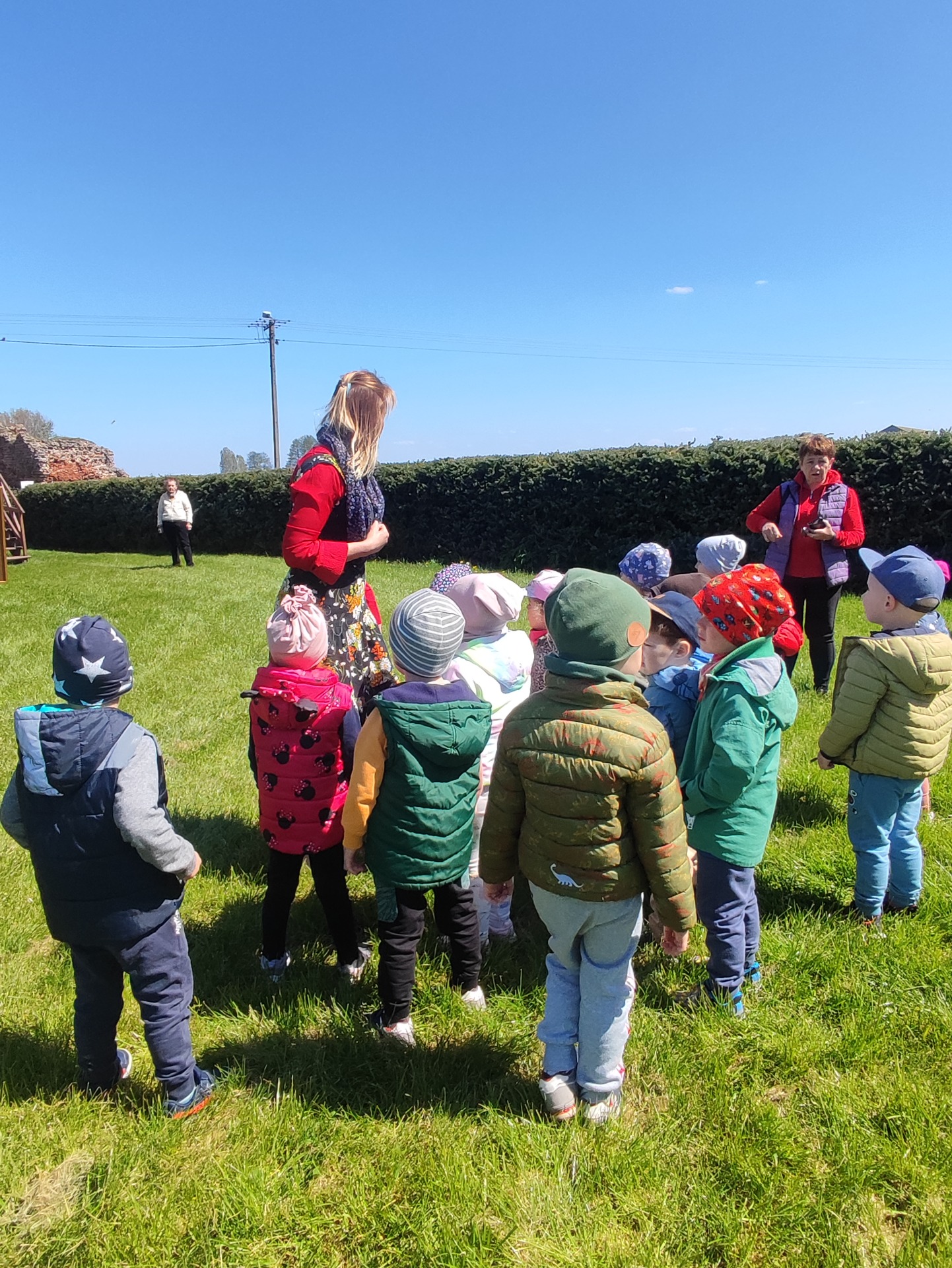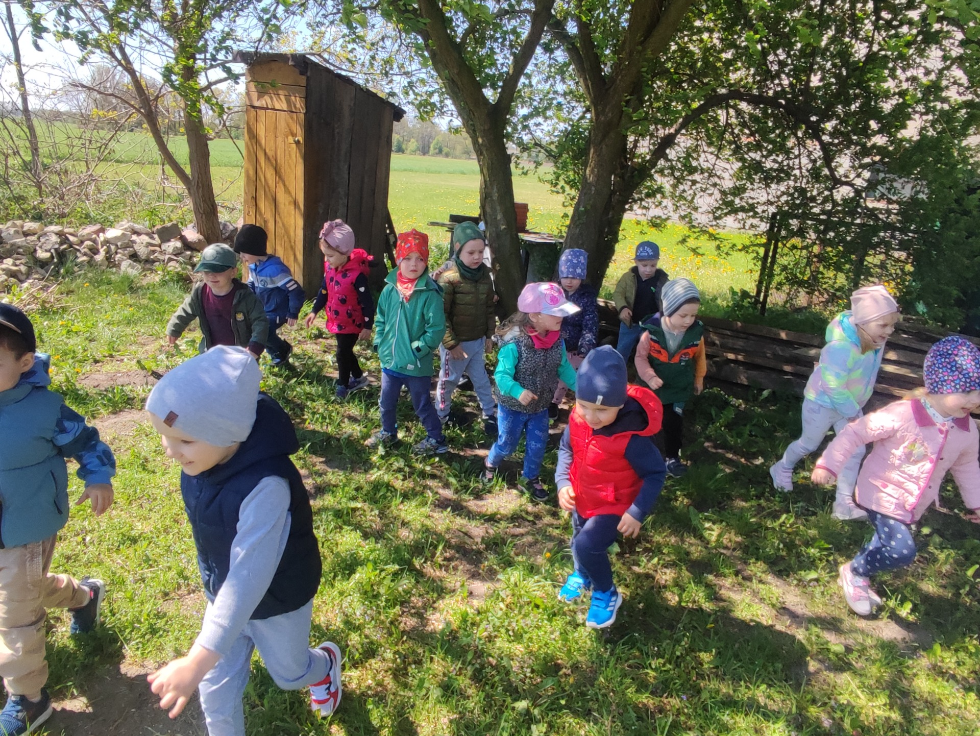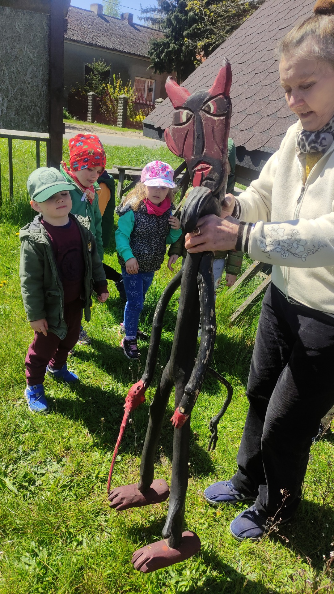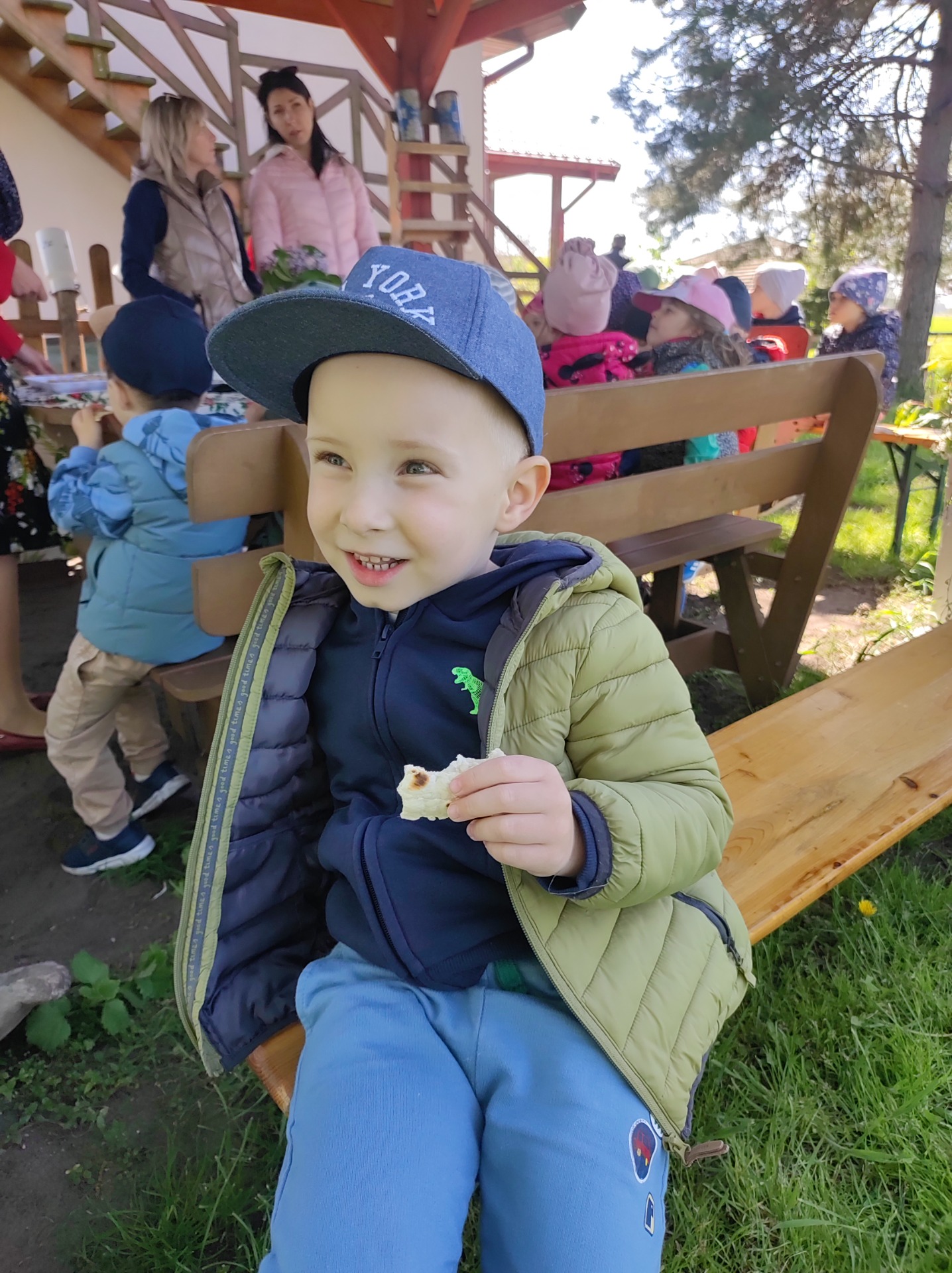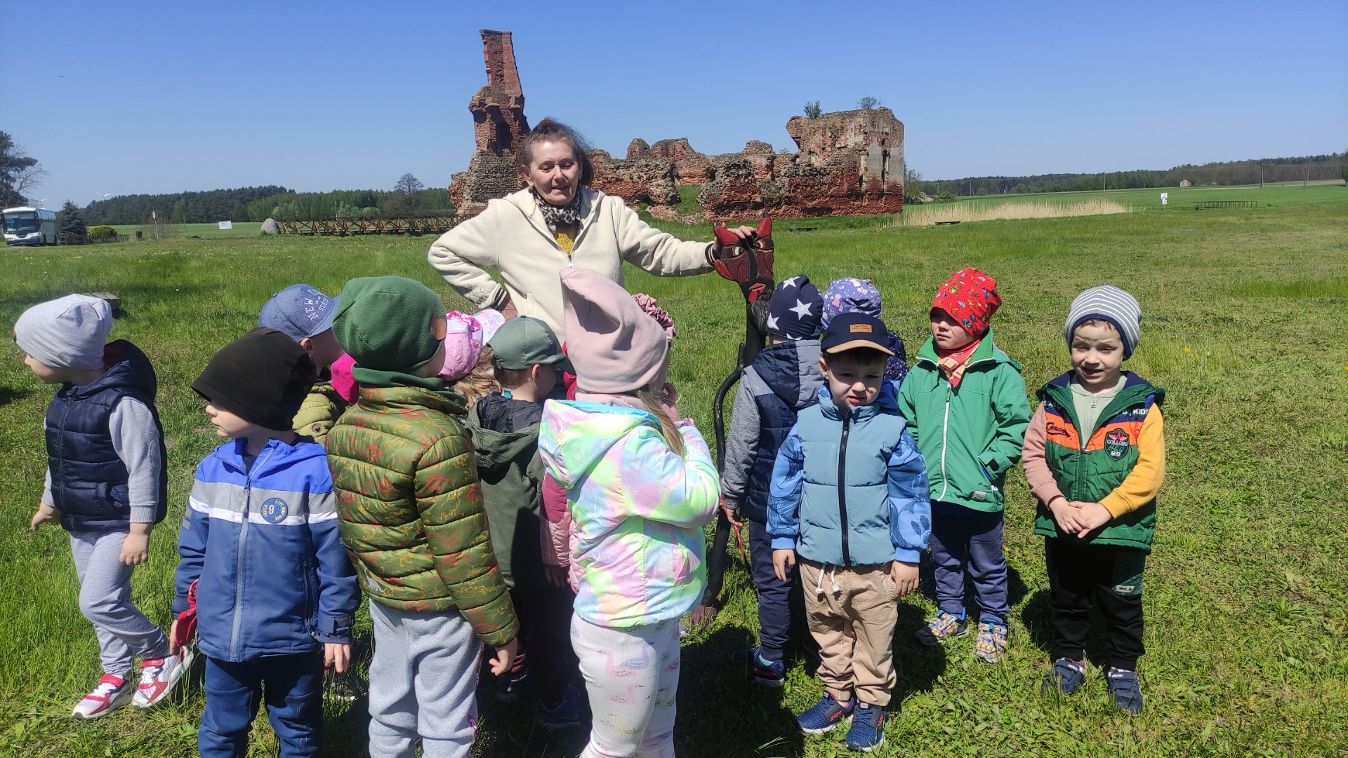 9 maja grupa Krasnali wybrała się na wycieczkę do Siedliska przy zamku w Besiekierach. Dzieci poznały proces pozyskiwania mąki w dawnych czasach i dziś, a następnie przygotowały własnoręcznie podpłomyki, które zostały upieczone przez panie na piecu i zjedzone ze smakiem przez dzieci w wybranej przez siebie formie (suchy, z masłem, z miodem lub pełen zestaw :). Odbył się piknik na świeżym powietrzu. Następnym punktem naszej wycieczki był udział w zabawie tropiącej podczas której maluchy miały okazję poznać legendę związaną z zamkiem oraz z diabłem Borutą. Następnie przedszkolaki sprawdziły swoje siły w różnych konkurencjach sportowych w pobliżu zamku, w tym, w: przeciąganiu liny, sadzeniu ziemniaków, rzucaniu wianuszkiem na kołeczek, przenoszeniu kukurydzy na drewnianej łyżce, czy wyścigach do palika. Nie zabrakło również spaceru wokół ruin i opowieści go dotyczących. Miejsce zaczarowało nas swoim urokiem :)