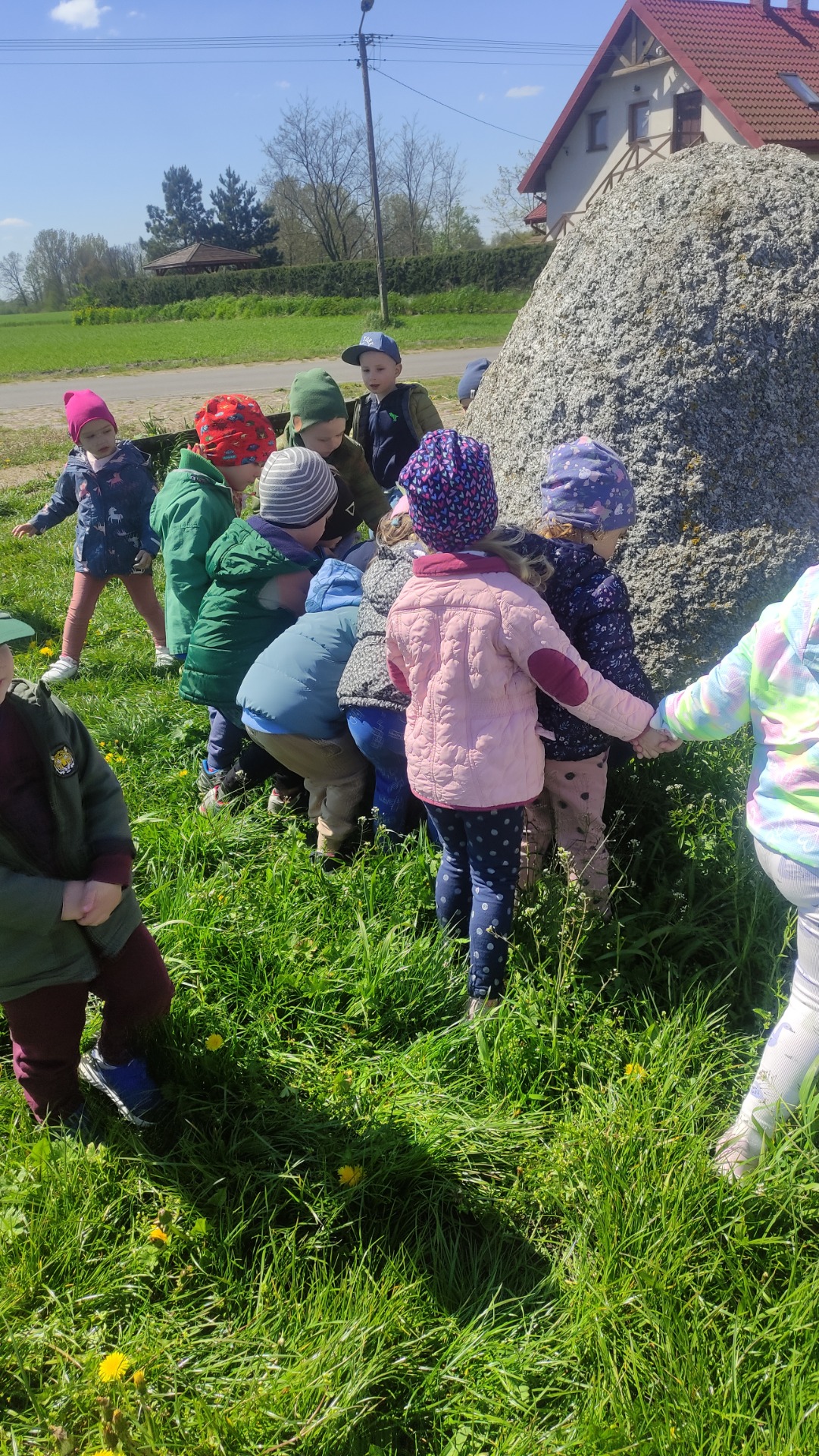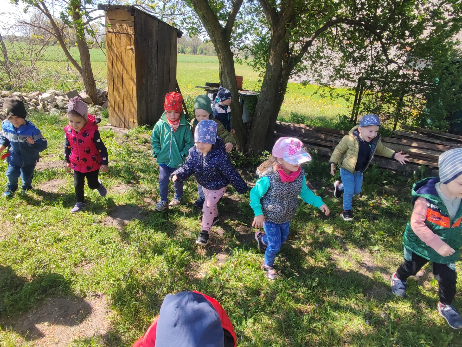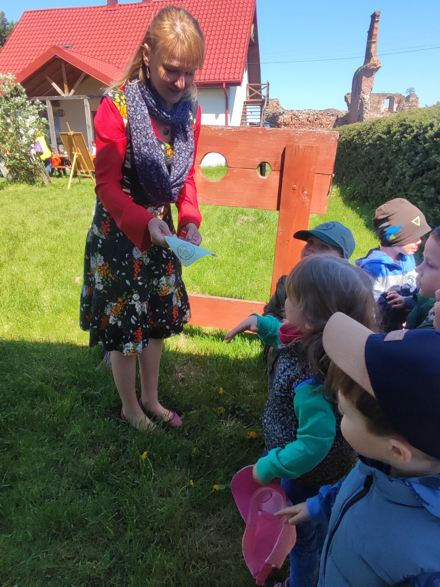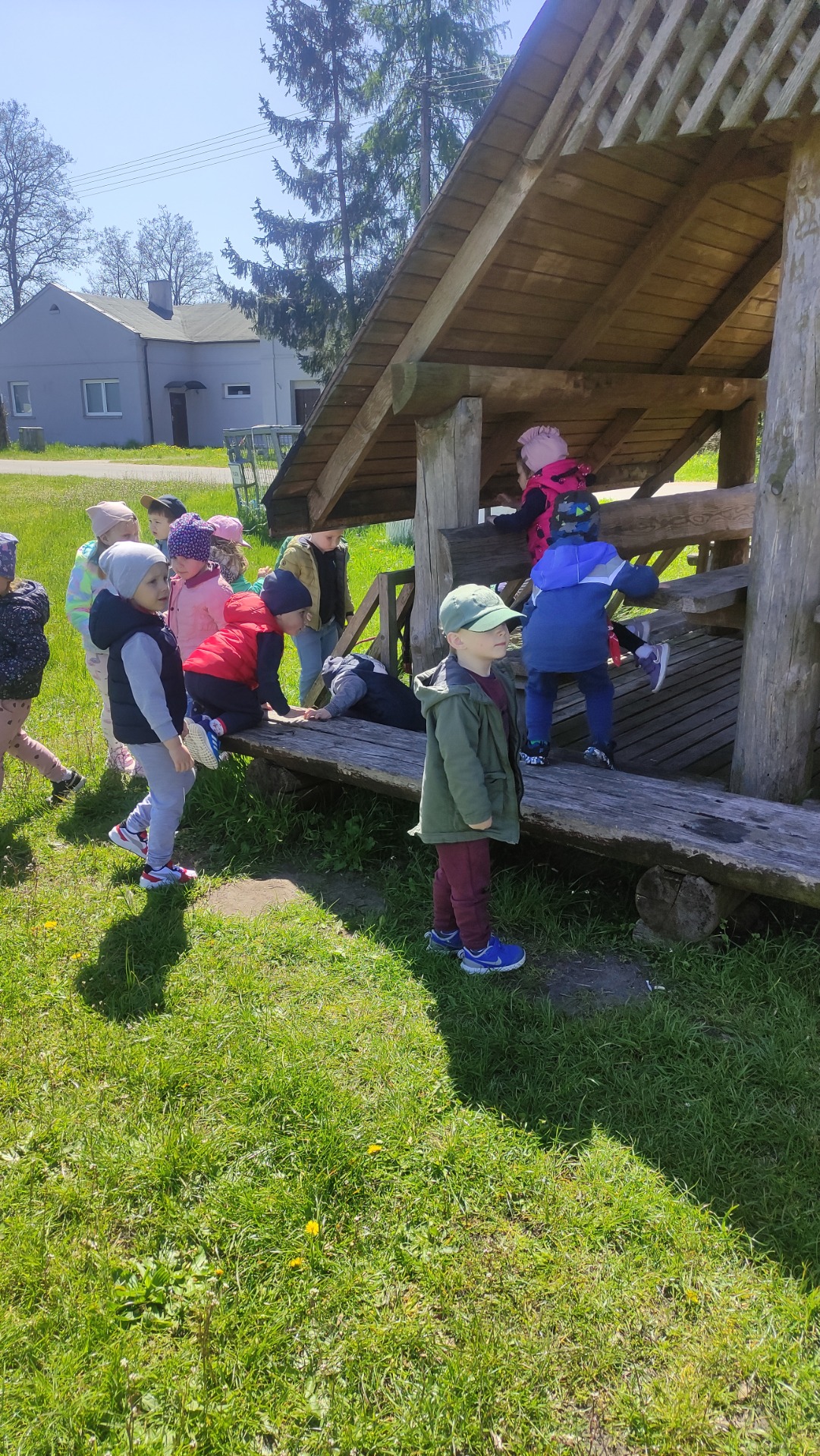 9 maja grupa Krasnali wybrała się na wycieczkę do Siedliska przy zamku w Besiekierach. Dzieci poznały proces pozyskiwania mąki w dawnych czasach i dziś, a następnie przygotowały własnoręcznie podpłomyki, które zostały upieczone przez panie na piecu i zjedzone ze smakiem przez dzieci w wybranej przez siebie formie (suchy, z masłem, z miodem lub pełen zestaw :). Odbył się piknik na świeżym powietrzu. Następnym punktem naszej wycieczki był udział w zabawie tropiącej podczas której maluchy miały okazję poznać legendę związaną z zamkiem oraz z diabłem Borutą. Następnie przedszkolaki sprawdziły swoje siły w różnych konkurencjach sportowych w pobliżu zamku, w tym, w: przeciąganiu liny, sadzeniu ziemniaków, rzucaniu wianuszkiem na kołeczek, przenoszeniu kukurydzy na drewnianej łyżce, czy wyścigach do palika. Nie zabrakło również spaceru wokół ruin i opowieści go dotyczących. Miejsce zaczarowało nas swoim urokiem :)