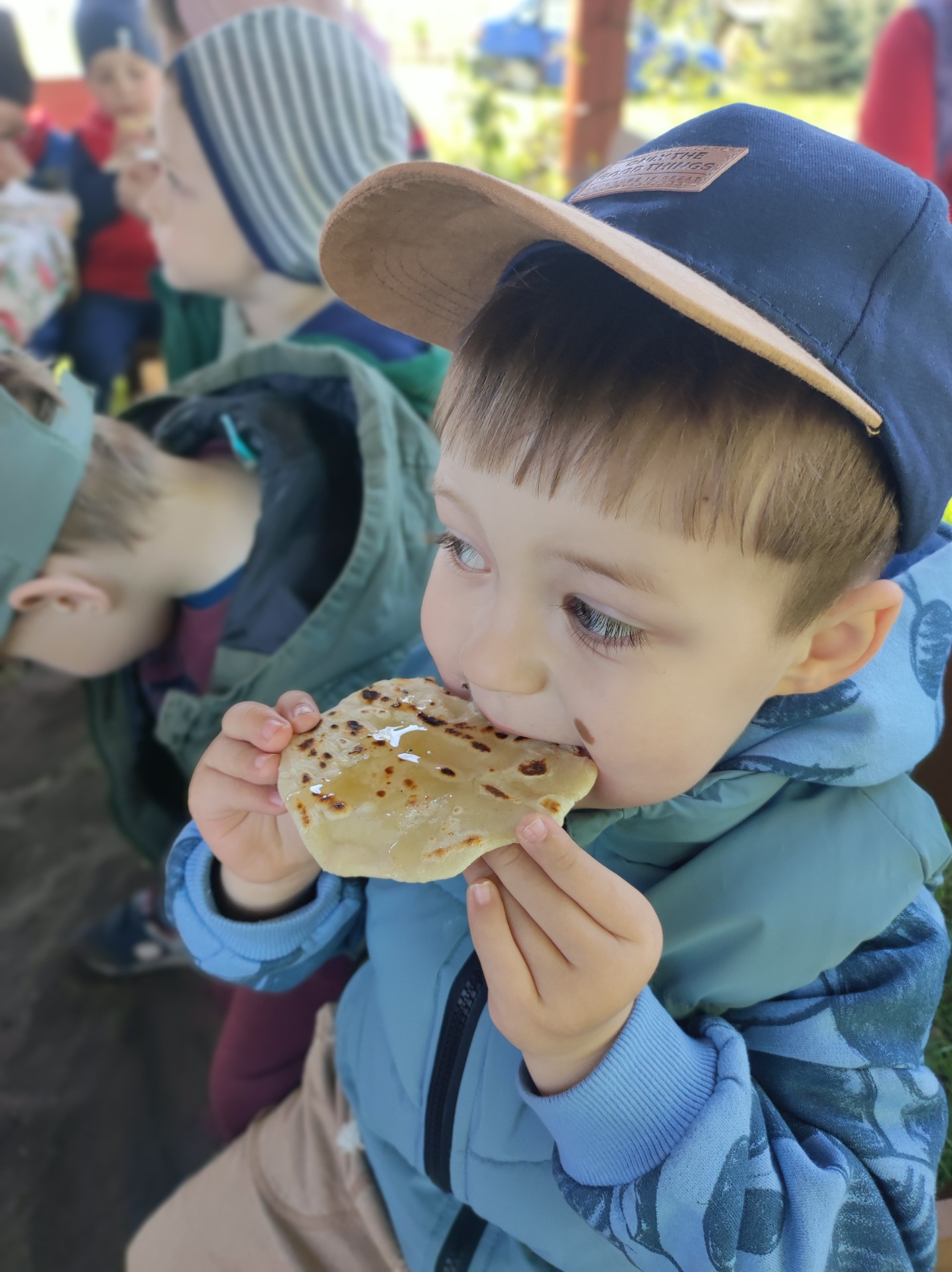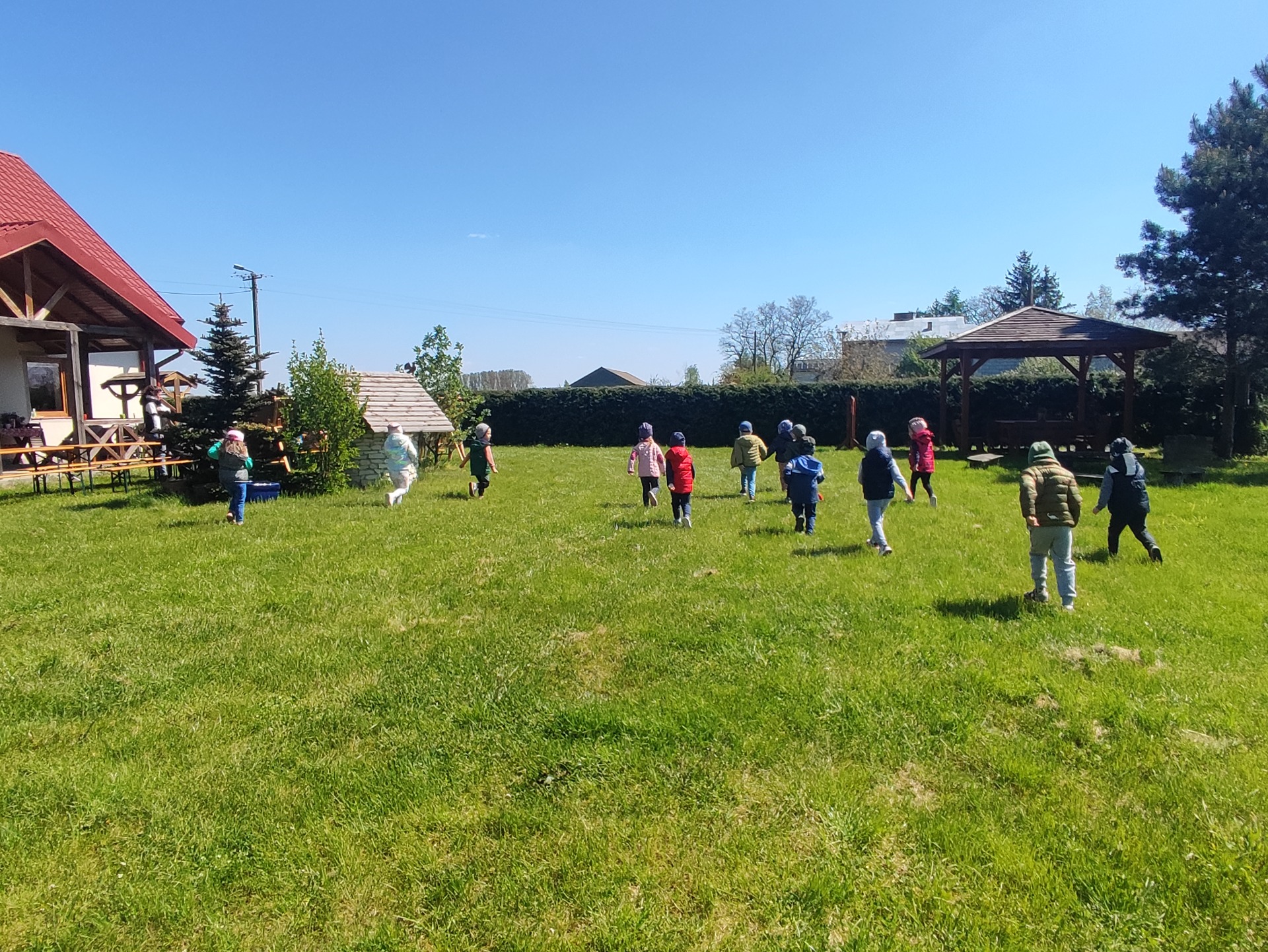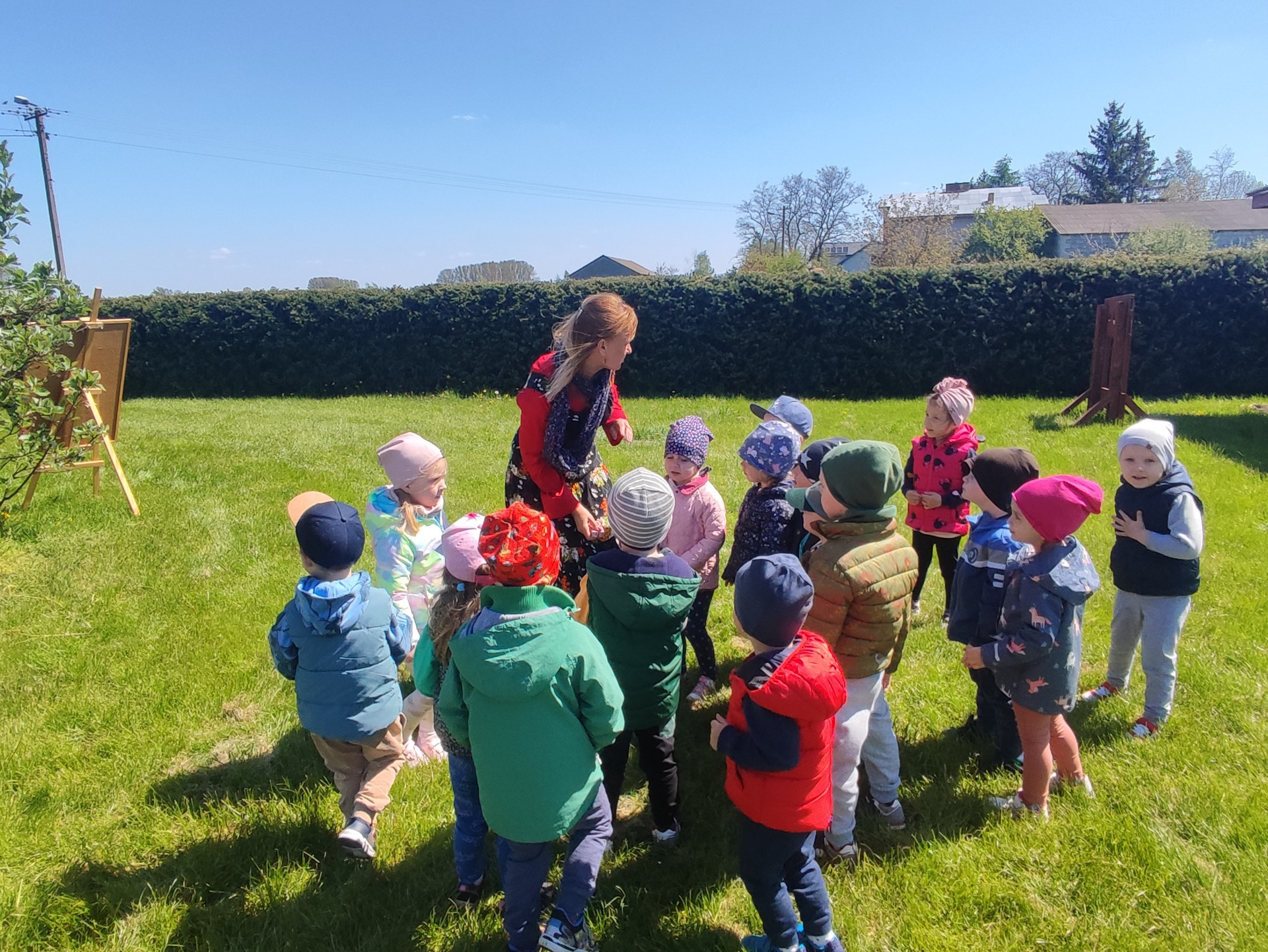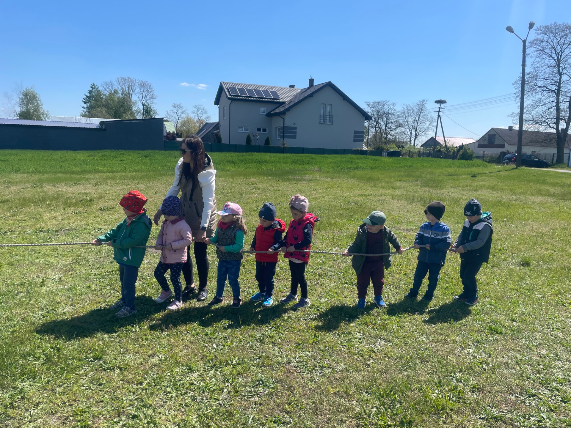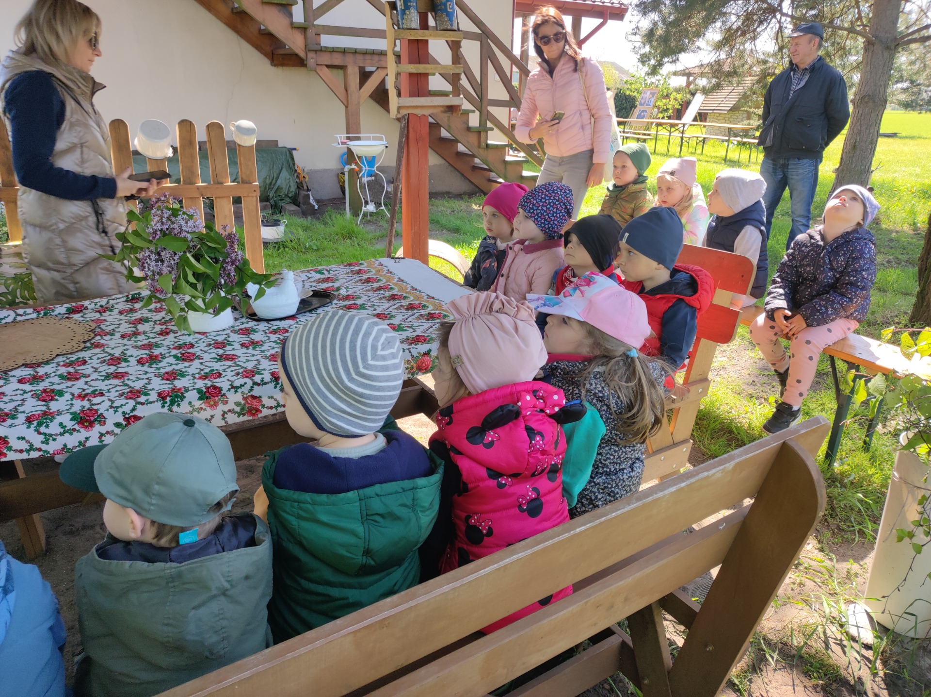 9 maja grupa Krasnali wybrała się na wycieczkę do Siedliska przy zamku w Besiekierach. Dzieci poznały proces pozyskiwania mąki w dawnych czasach i dziś, a następnie przygotowały własnoręcznie podpłomyki, które zostały upieczone przez panie na piecu i zjedzone ze smakiem przez dzieci w wybranej przez siebie formie (suchy, z masłem, z miodem lub pełen zestaw :). Odbył się piknik na świeżym powietrzu. Następnym punktem naszej wycieczki był udział w zabawie tropiącej podczas której maluchy miały okazję poznać legendę związaną z zamkiem oraz z diabłem Borutą. Następnie przedszkolaki sprawdziły swoje siły w różnych konkurencjach sportowych w pobliżu zamku, w tym, w: przeciąganiu liny, sadzeniu ziemniaków, rzucaniu wianuszkiem na kołeczek, przenoszeniu kukurydzy na drewnianej łyżce, czy wyścigach do palika. Nie zabrakło również spaceru wokół ruin i opowieści go dotyczących. Miejsce zaczarowało nas swoim urokiem :)
