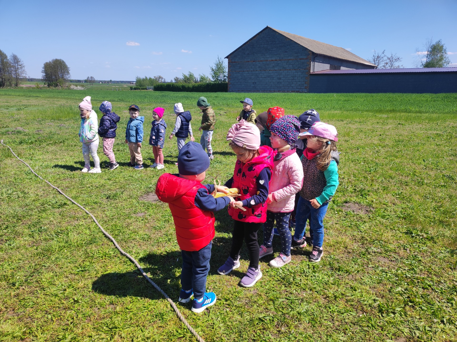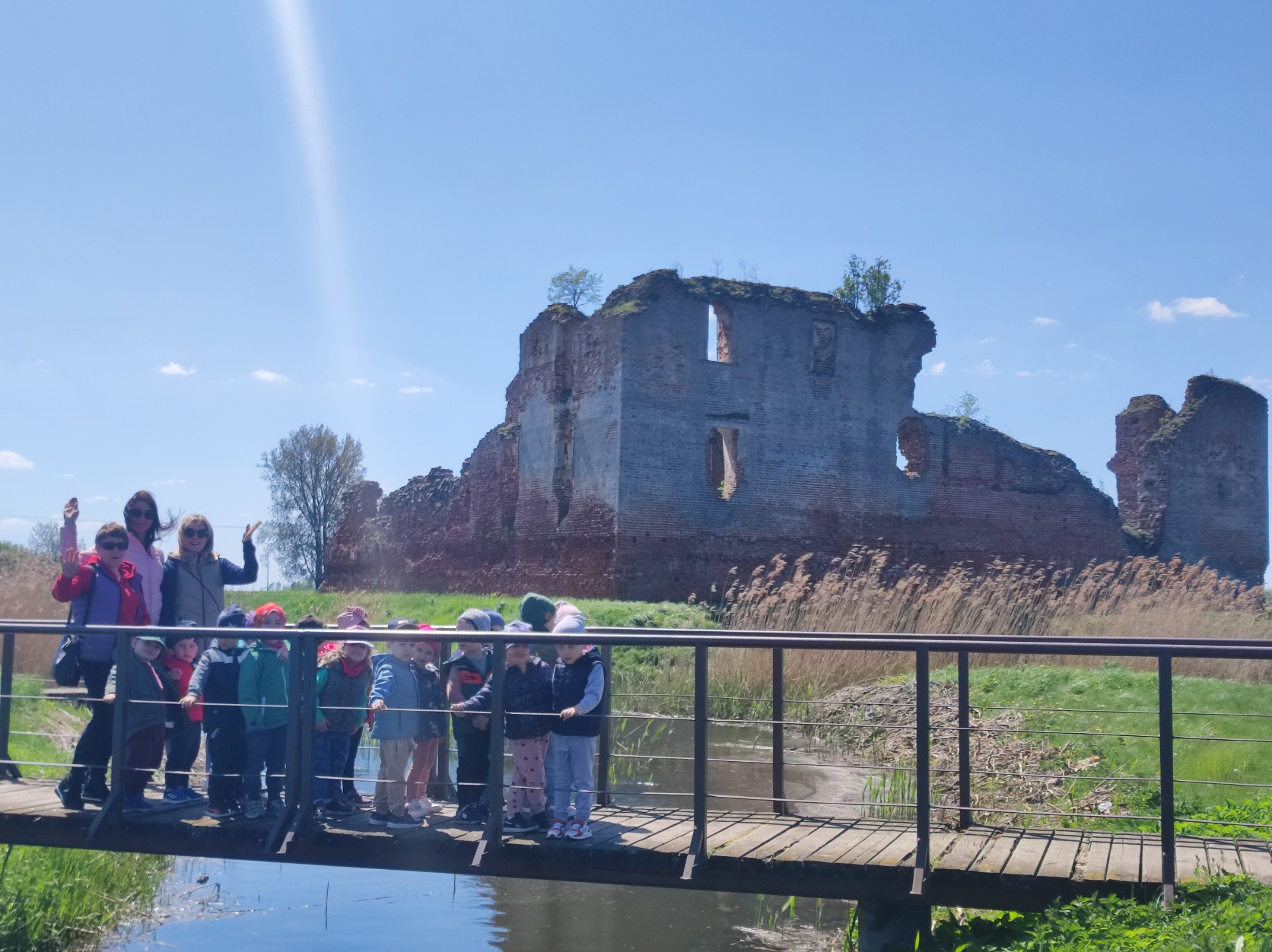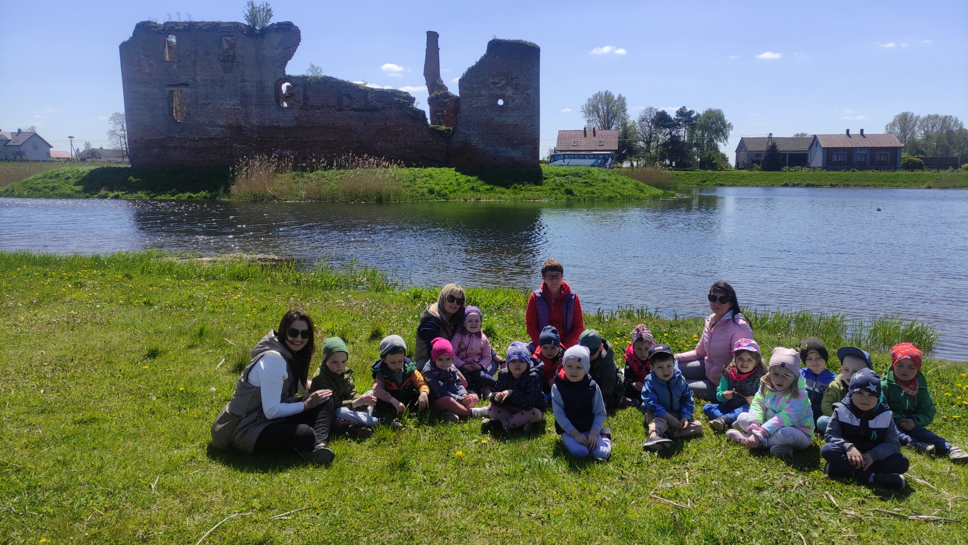 9 maja grupa Krasnali wybrała się na wycieczkę do Siedliska przy zamku w Besiekierach. Dzieci poznały proces pozyskiwania mąki w dawnych czasach i dziś, a następnie przygotowały własnoręcznie podpłomyki, które zostały upieczone przez panie na piecu i zjedzone ze smakiem przez dzieci w wybranej przez siebie formie (suchy, z masłem, z miodem lub pełen zestaw :). Odbył się piknik na świeżym powietrzu. Następnym punktem naszej wycieczki był udział w zabawie tropiącej podczas której maluchy miały okazję poznać legendę związaną z zamkiem oraz z diabłem Borutą. Następnie przedszkolaki sprawdziły swoje siły w różnych konkurencjach sportowych w pobliżu zamku, w tym, w: przeciąganiu liny, sadzeniu ziemniaków, rzucaniu wianuszkiem na kołeczek, przenoszeniu kukurydzy na drewnianej łyżce, czy wyścigach do palika. Nie zabrakło również spaceru wokół ruin i opowieści go dotyczących. Miejsce zaczarowało nas swoim urokiem :)