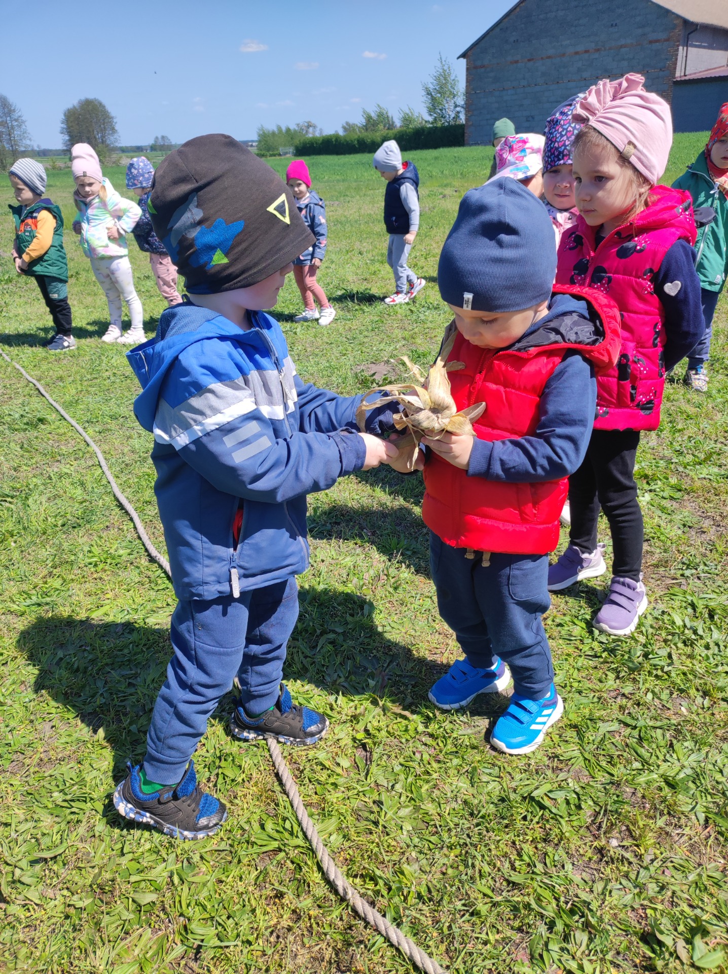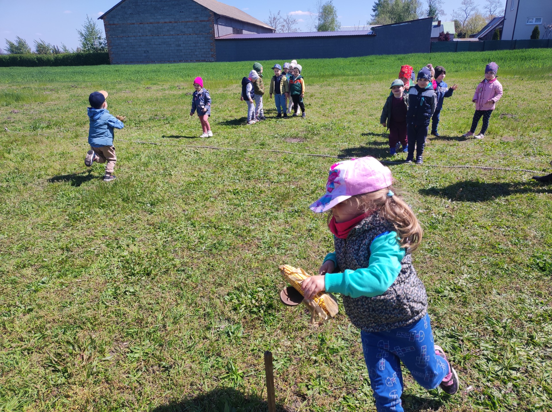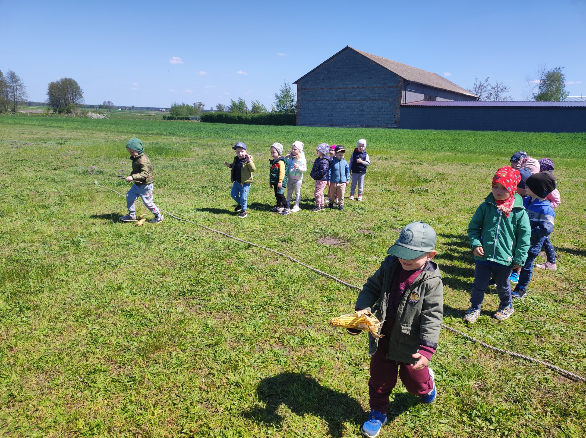 9 maja grupa Krasnali wybrała się na wycieczkę do Siedliska przy zamku w Besiekierach. Dzieci poznały proces pozyskiwania mąki w dawnych czasach i dziś, a następnie przygotowały własnoręcznie podpłomyki, które zostały upieczone przez panie na piecu i zjedzone ze smakiem przez dzieci w wybranej przez siebie formie (suchy, z masłem, z miodem lub pełen zestaw :). Odbył się piknik na świeżym powietrzu. Następnym punktem naszej wycieczki był udział w zabawie tropiącej podczas której maluchy miały okazję poznać legendę związaną z zamkiem oraz z diabłem Borutą. Następnie przedszkolaki sprawdziły swoje siły w różnych konkurencjach sportowych w pobliżu zamku, w tym, w: przeciąganiu liny, sadzeniu ziemniaków, rzucaniu wianuszkiem na kołeczek, przenoszeniu kukurydzy na drewnianej łyżce, czy wyścigach do palika. Nie zabrakło również spaceru wokół ruin i opowieści go dotyczących. Miejsce zaczarowało nas swoim urokiem :)