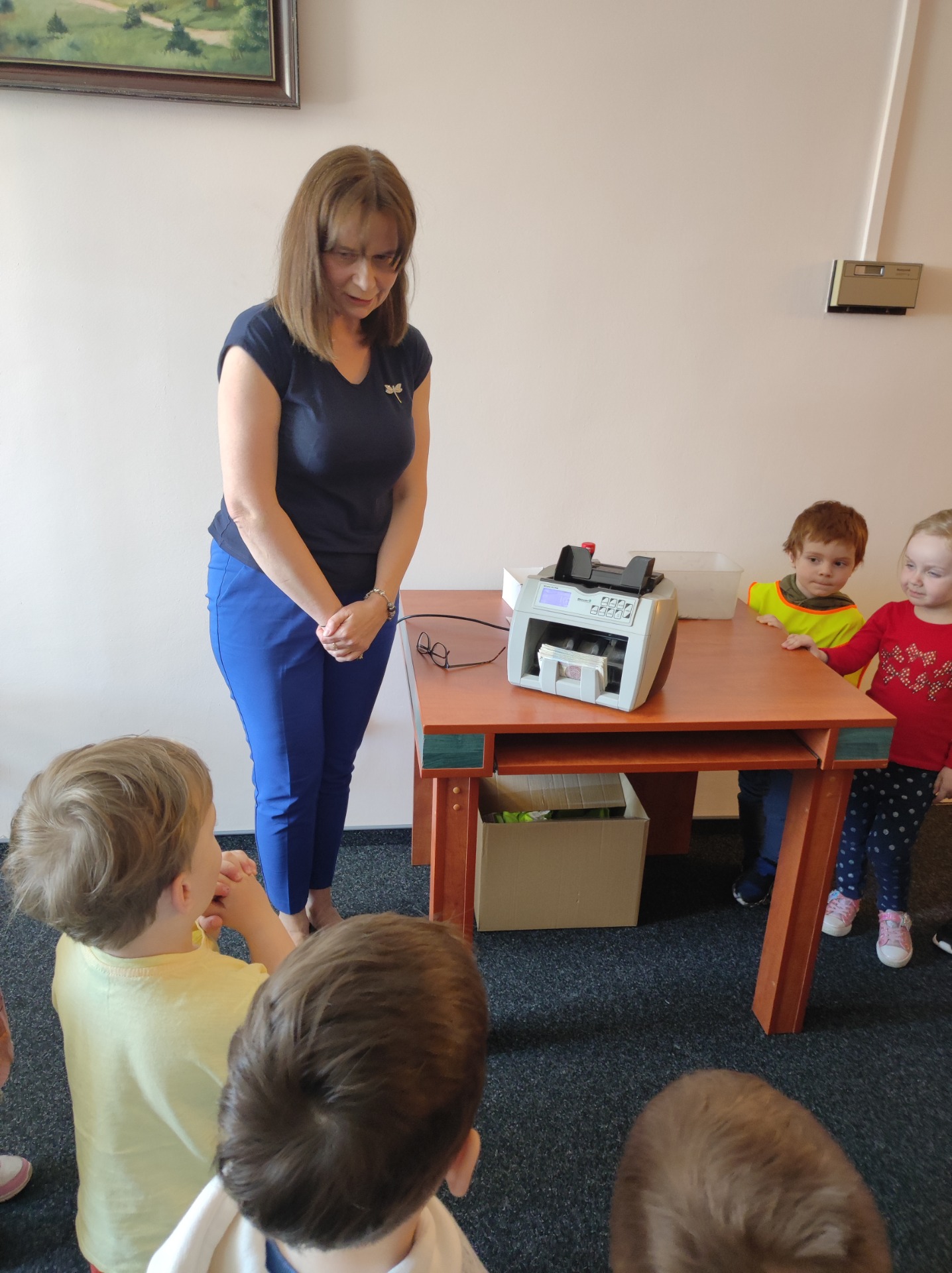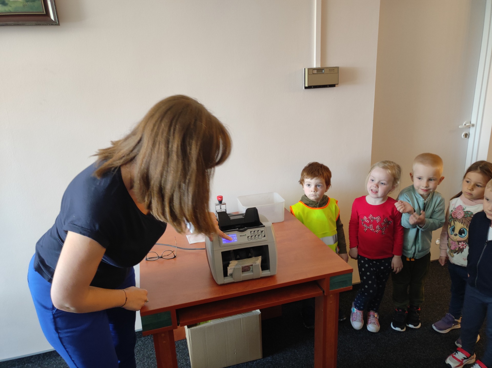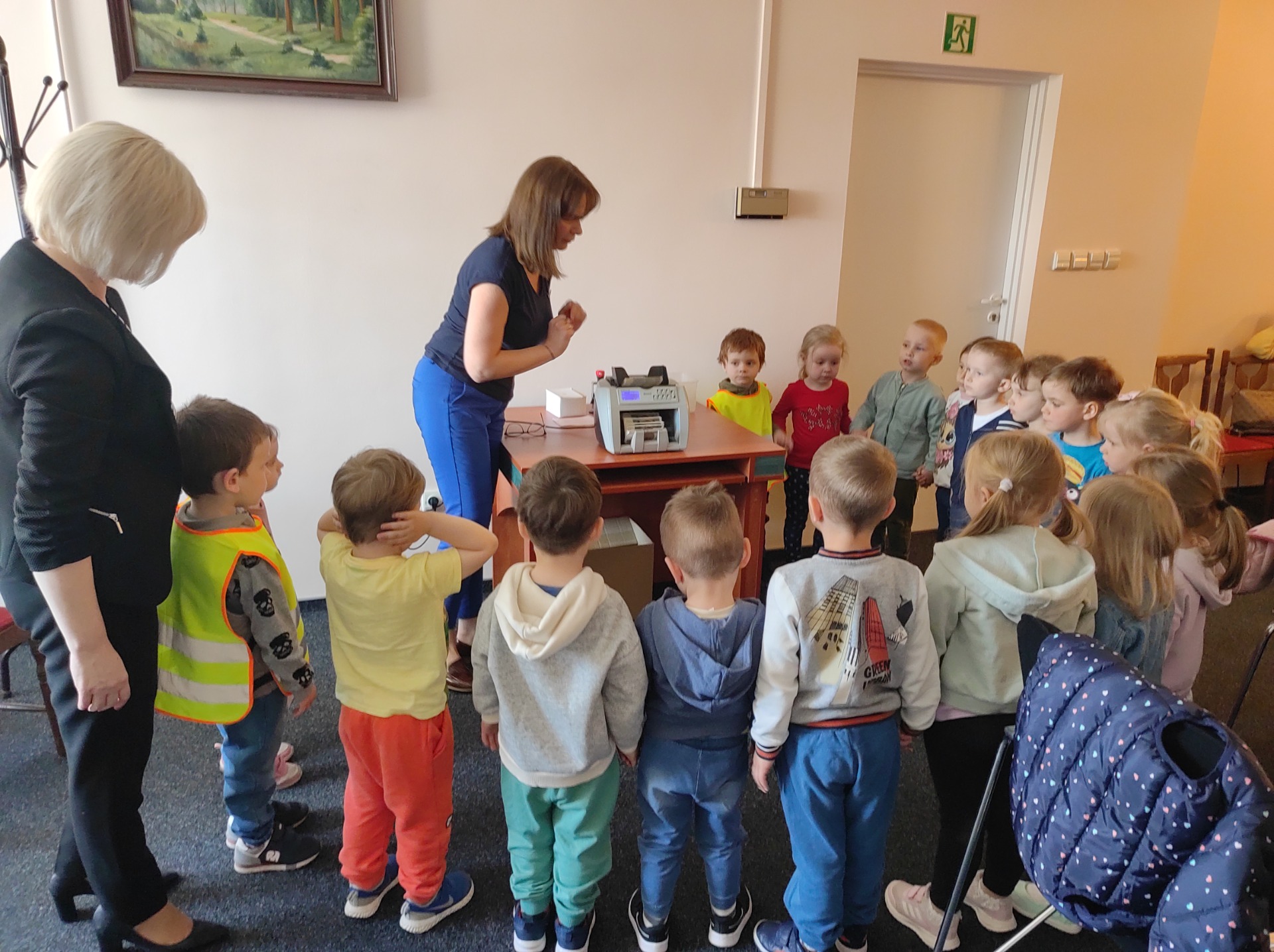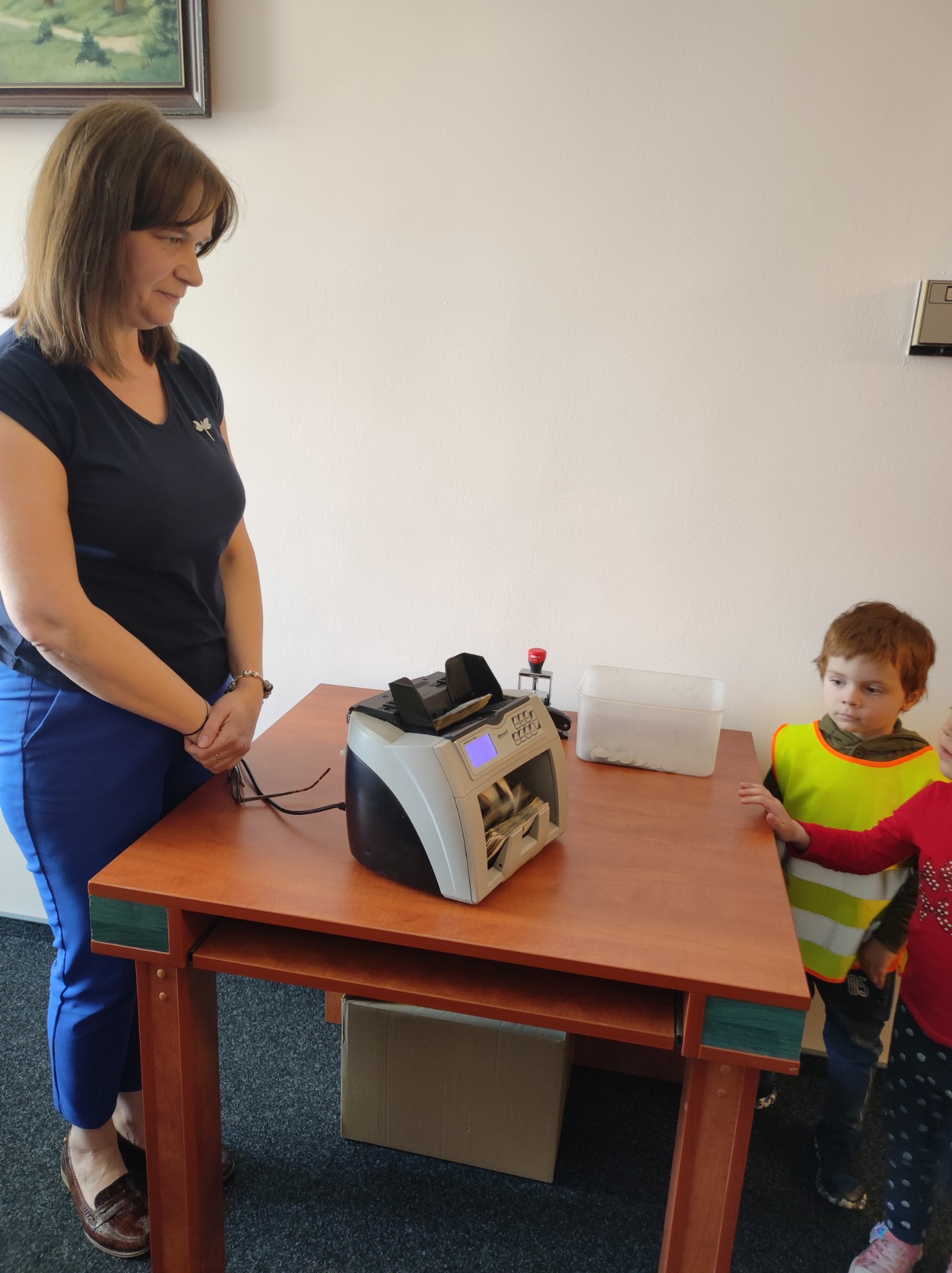12 maja grupa Krasnali odwiedziła Łódzki Bank Spółdzielczy w Strykowie, gdzie zapoznały się z działalnością tej instytucji. Podczas tej wycieczki przedszkolaki dowiedziały się czym polega praca w banku, za pomocą jakich urządzeń przelicza się banknoty oraz monety, jakie są formy płatności, podkreślono znaczenie konta bankowego i karty bankomatowej we współczesnym świecie oraz gdzie i w jaki sposób przechowuje się pieniądze. Przedszkolaki z zaciekawieniem zwiedzały pomieszczenia znajdujące się w placówce. Po bardzo ciekawej i interesującej wizycie dzieci udały się do przedszkola bogatsze o zdobytą wiedzę i nowe doświadczenia. Serdecznie dziękujemy Pracownikom Banku Spółdzielczego w Strykowie oraz mamie Stasia T. za umożliwienie wizyty, przekazaną wiedzę i niespodzianki dla dzieci 😄