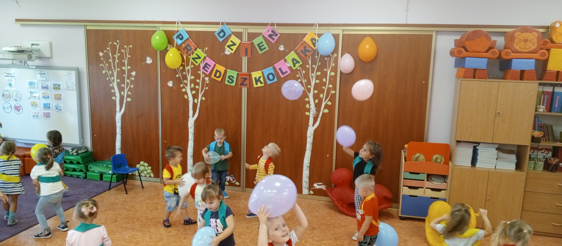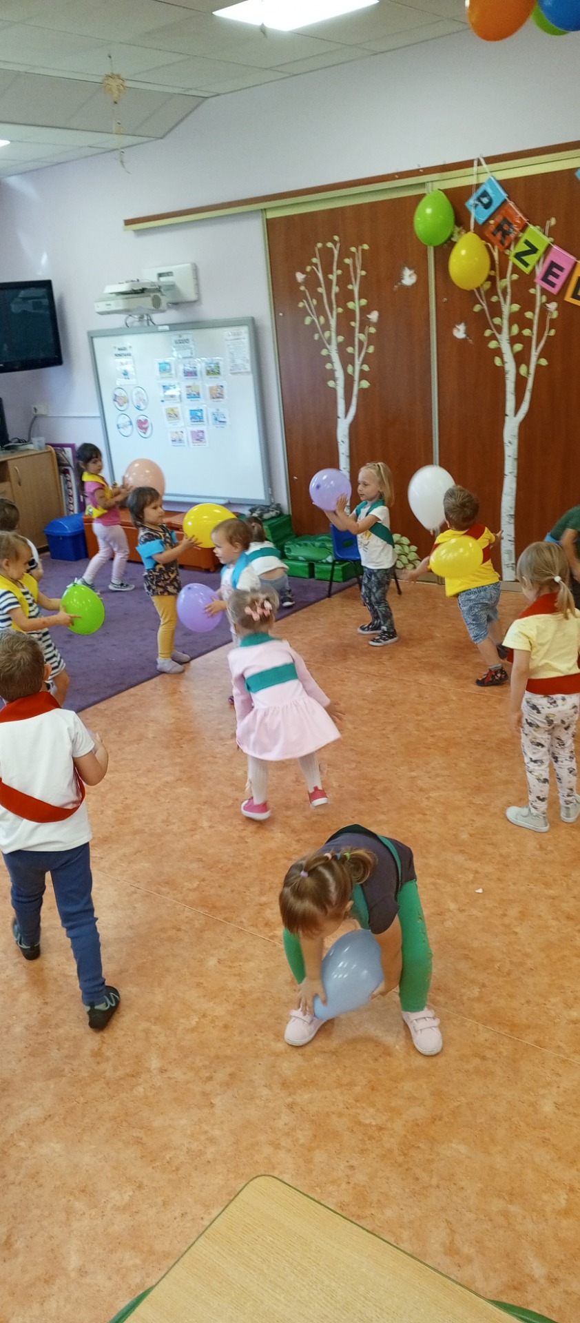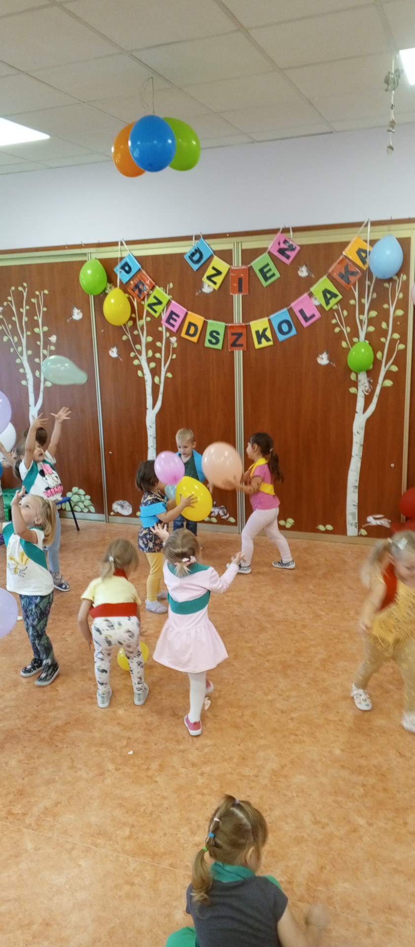 DZIEŃ PRZEDSZKOLAKA W środę 20.09.2023 r. w naszym przedszkolu uroczyście obchodziliśmy Dzień Przedszkolaka. Dzieci z grupy Krasnali odśpiewały „Hymn Przedszkolaka”, a następnie bawiły się przy muzyce z chustą animacyjną i balonami. Z okazji swojego święta wszystkie dzieci otrzymały pamiątkowy medal. Na zakończenie czekała na nich słodka niespodzianka- batonik i soczek.