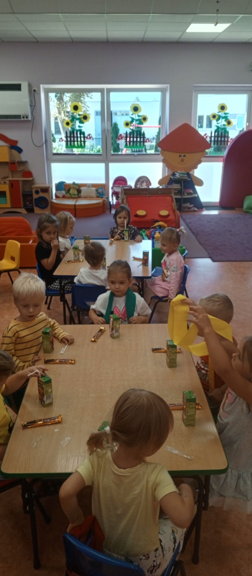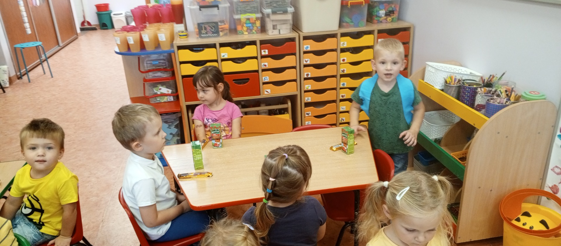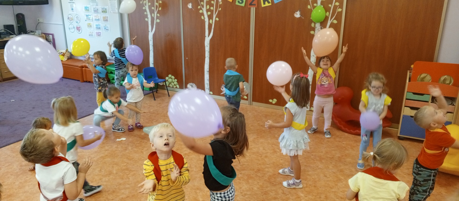 DZIEŃ PRZEDSZKOLAKA W środę 20.09.2023 r. w naszym przedszkolu uroczyście obchodziliśmy Dzień Przedszkolaka. Dzieci z grupy Krasnali odśpiewały „Hymn Przedszkolaka”, a następnie bawiły się przy muzyce z chustą animacyjną i balonami. Z okazji swojego święta wszystkie dzieci otrzymały pamiątkowy medal. Na zakończenie czekała na nich słodka niespodzianka- batonik i soczek.