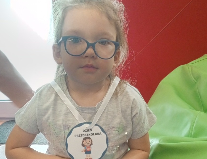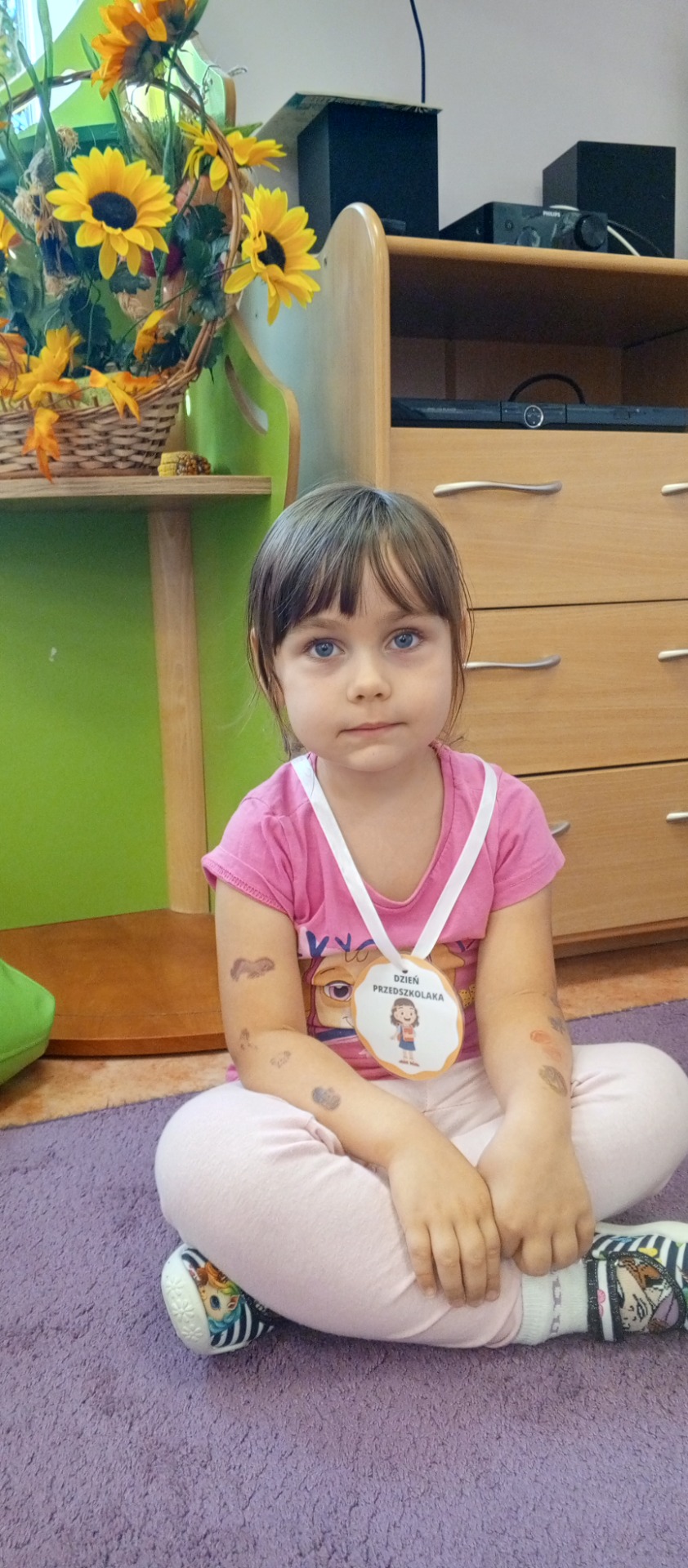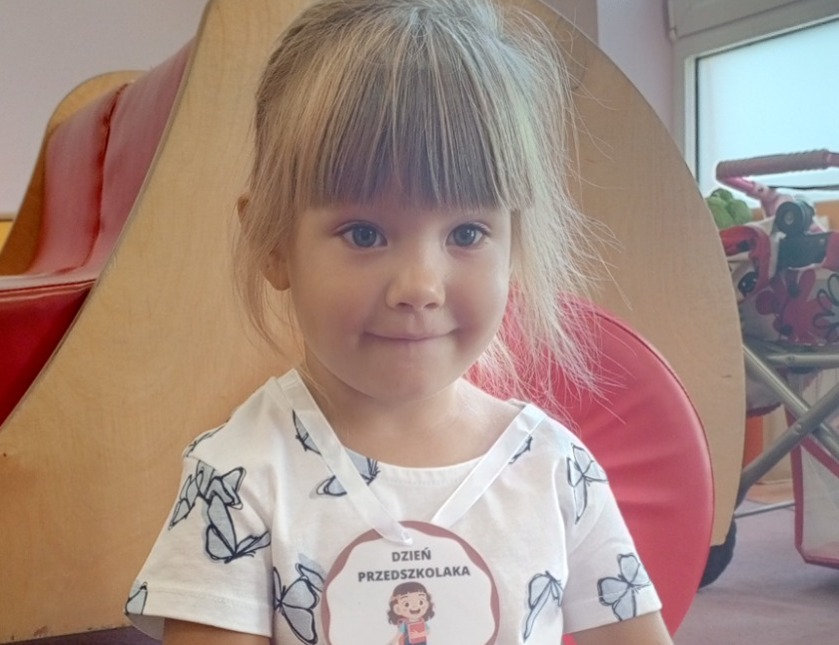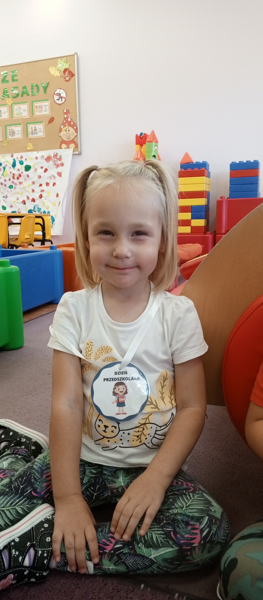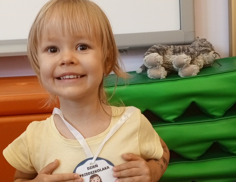Marysia z medalem z okazji Dnia Przedszkolaka