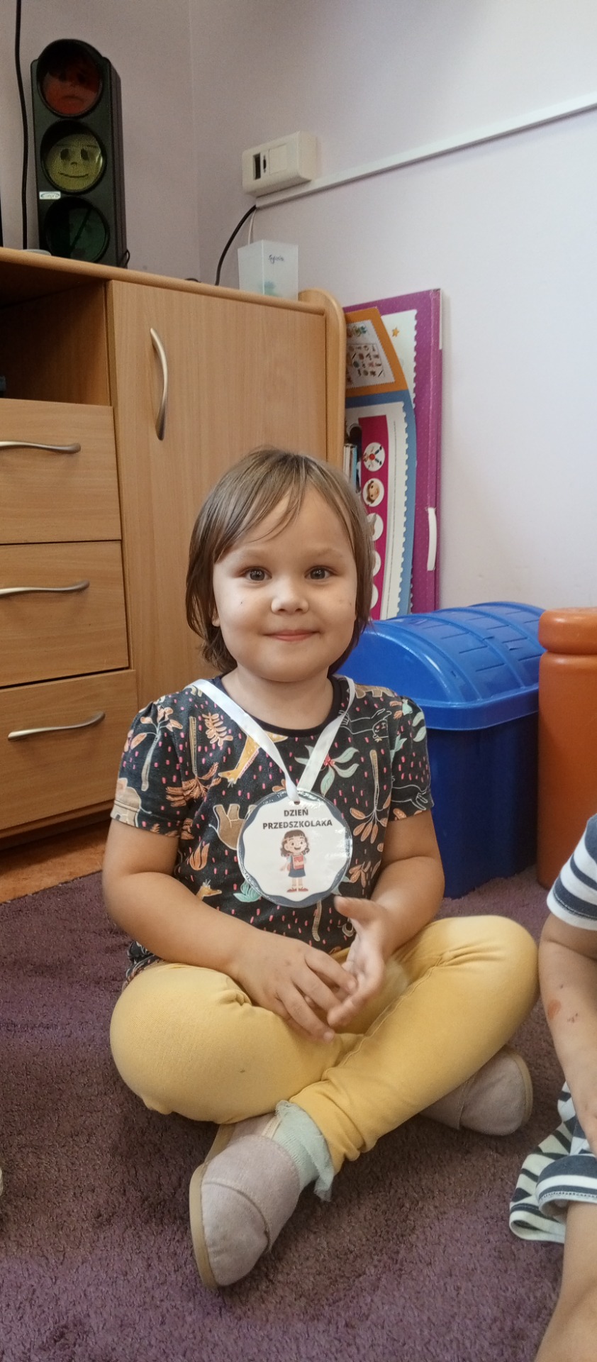 Wiktoria z medalem z okazji Dnia Przedszkolaka