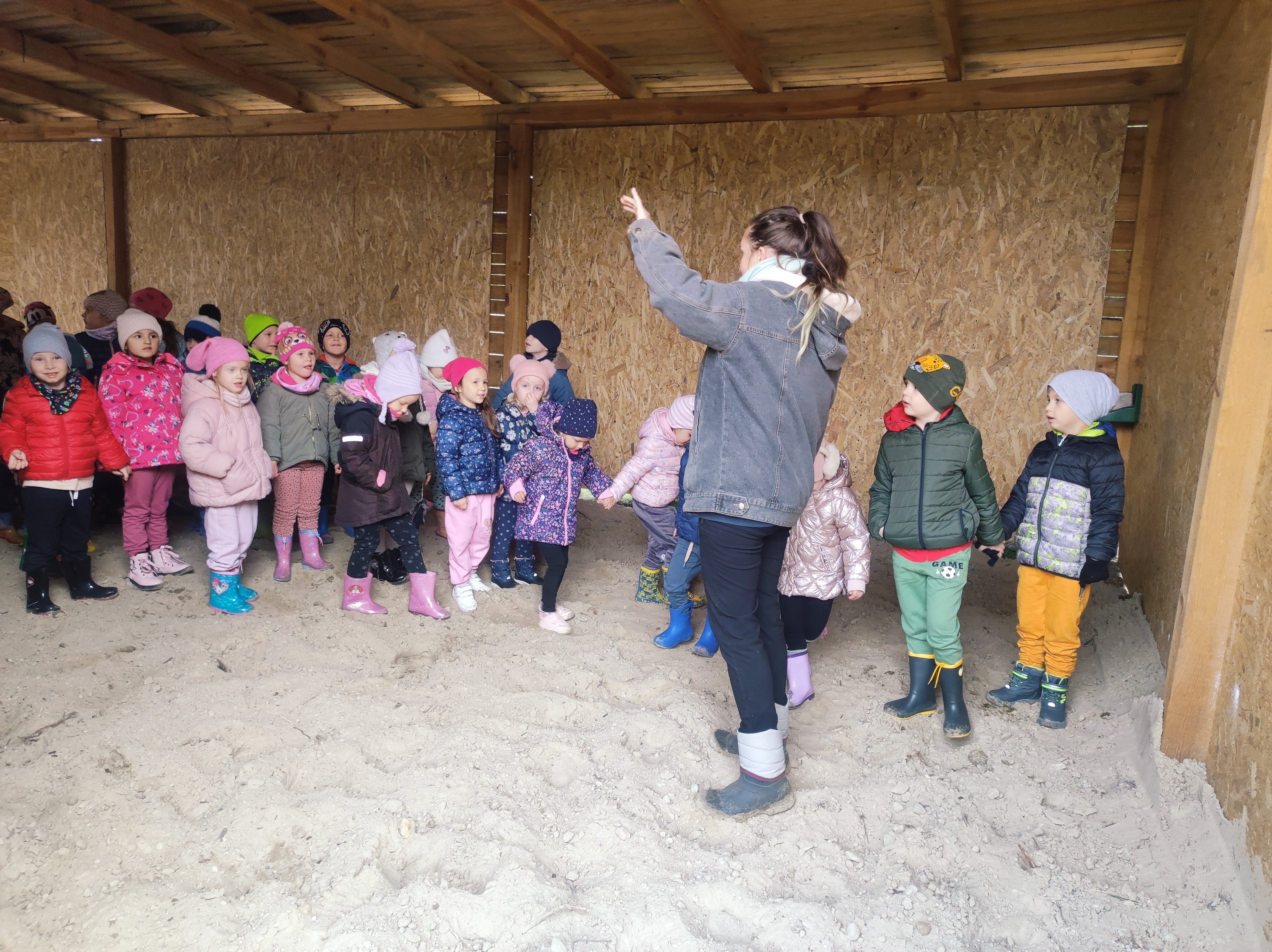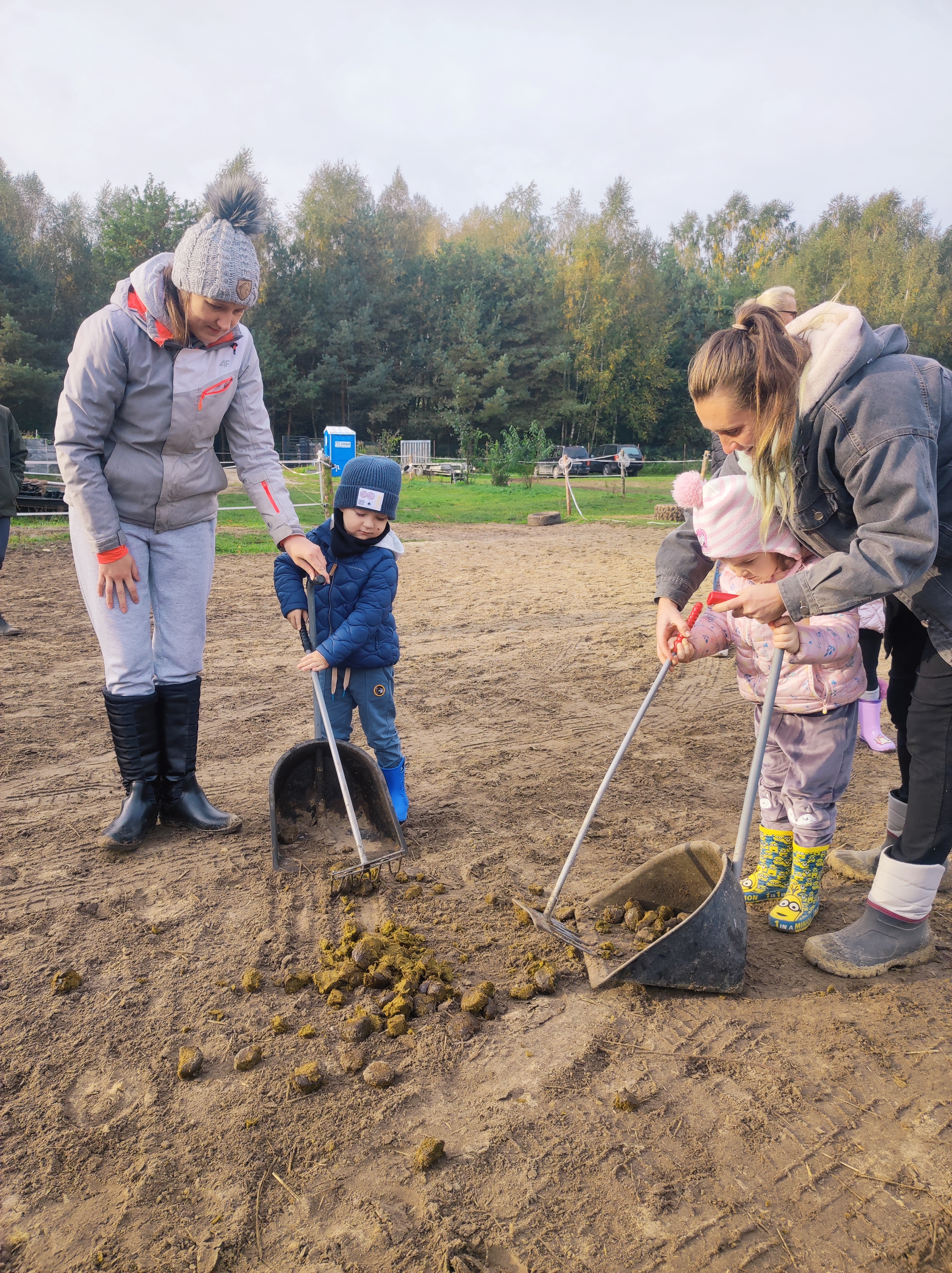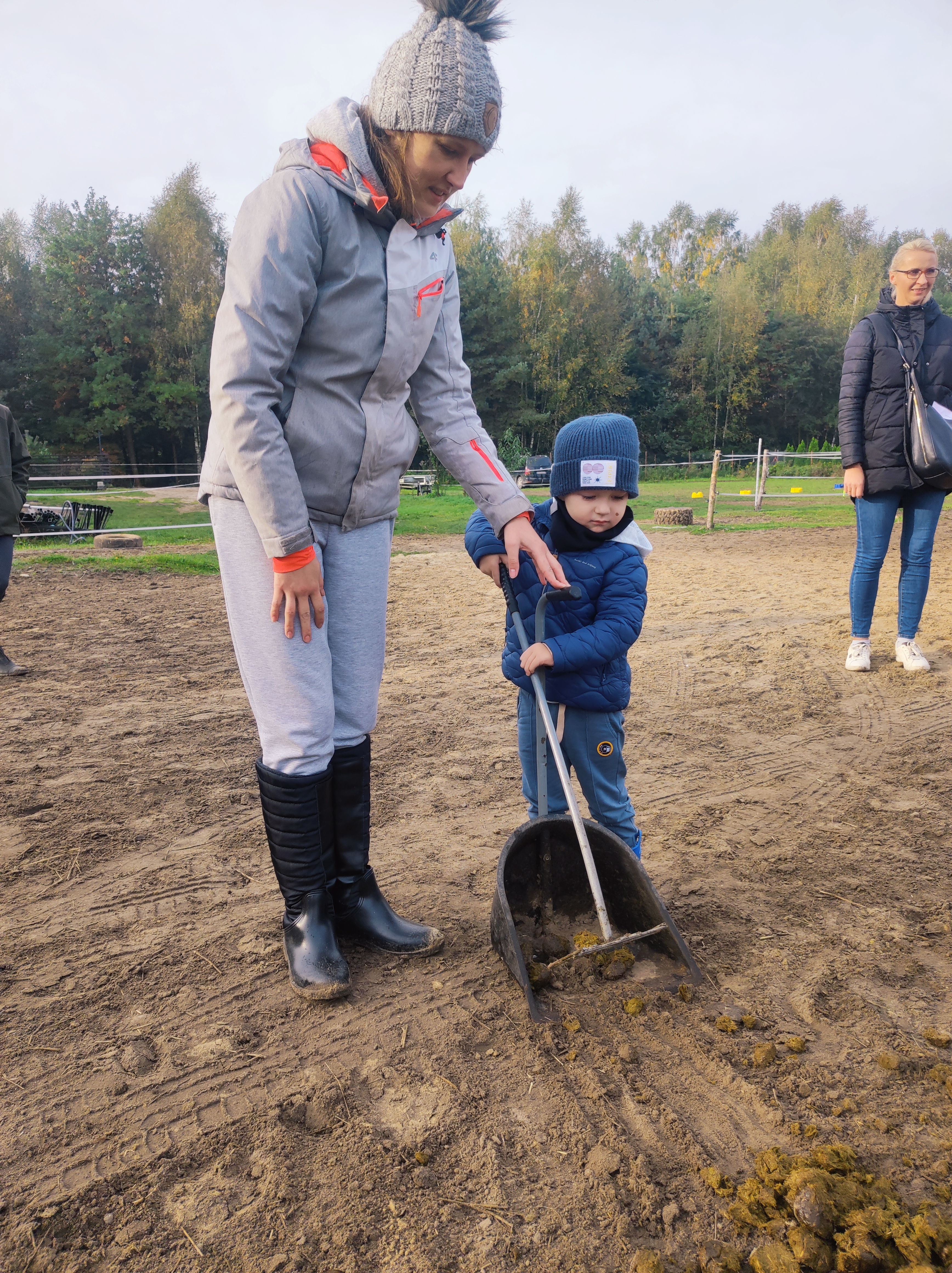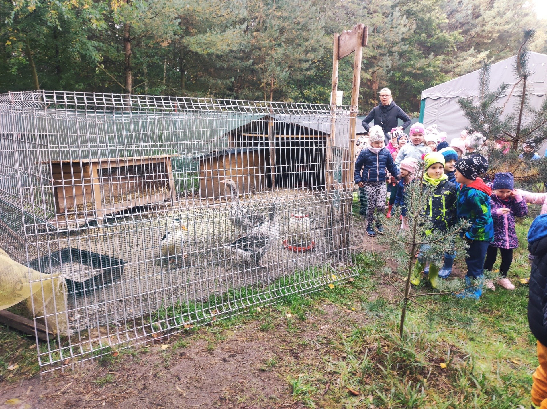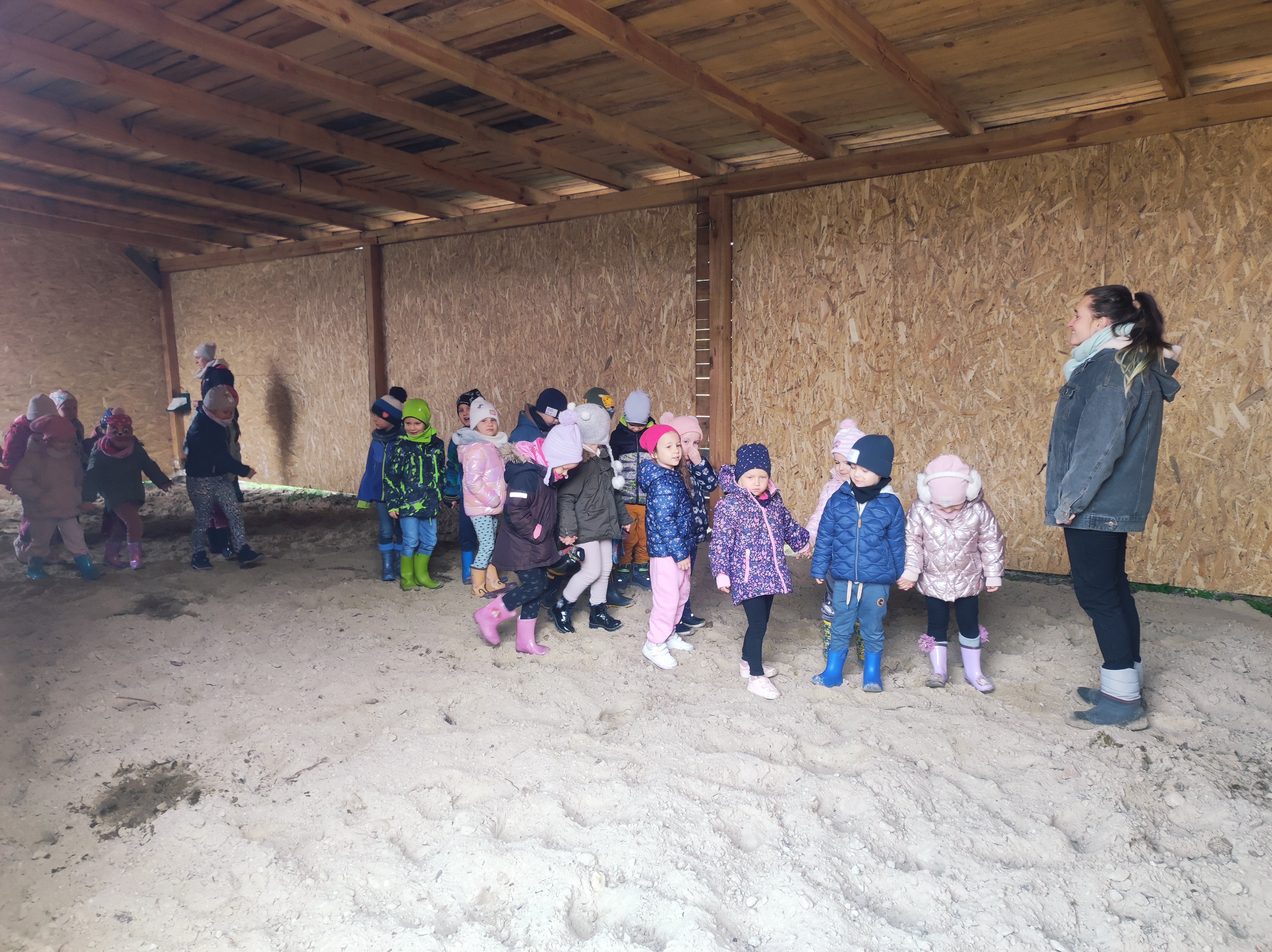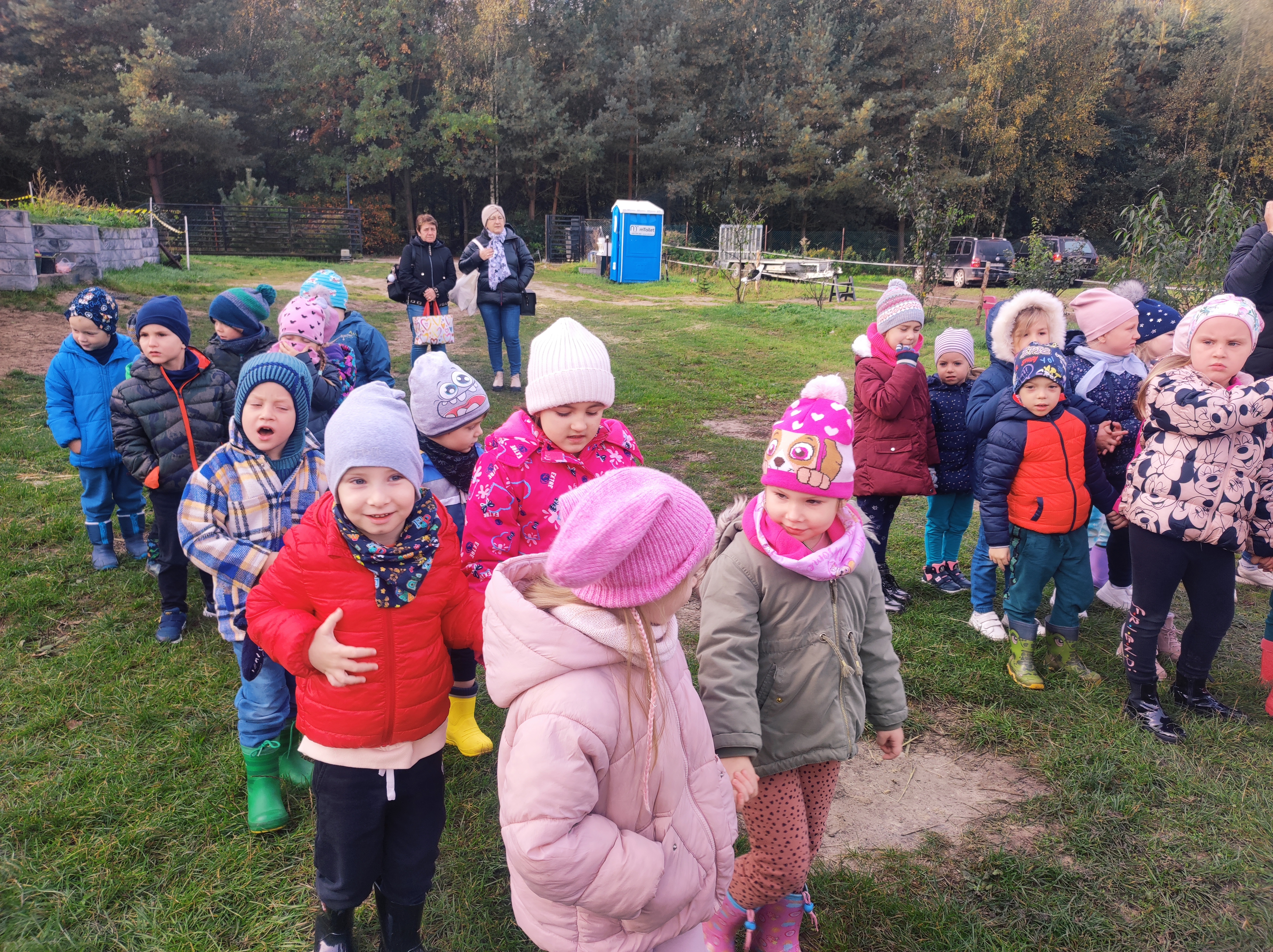 19 października grupa Podróżników odwiedziła Stajnię Freedom w Dąbrówce Wielkiej. Pani Kamila serdecznie przywitała przedszkolaków i oprowadziła po stajni. Dzieci dowiedziały się co to jest kupaczka (narzędzia do zbierania końskich odchodów) , lizawka (sól którą liżą konie), poidło oraz co lubią jeść konie:)) Chętni Podróżnicy wyczesali oraz pogłaskali konia Doratkę, kucyka Basię, a niektórzy nawet odważyli się wsiąść i obejść małą rundkę na Doratce i Chmurce. Nie zabrakło również aktywności ruchowej… dzieci pokonały przygotowany tor przeszkód w ramach sportowej rywalizacji "Hobby Horse" . Na koniec dzieci wybrały się na pastwisko po trawę dla koni, do którego prowadziła krótka leśna ścieżka. Ponadto mieszkańcami gospodarstwa były króliki, kaczki oraz gęsi, które również zostały nakarmione. To była prawdziwa końska dawka przygody!!:))