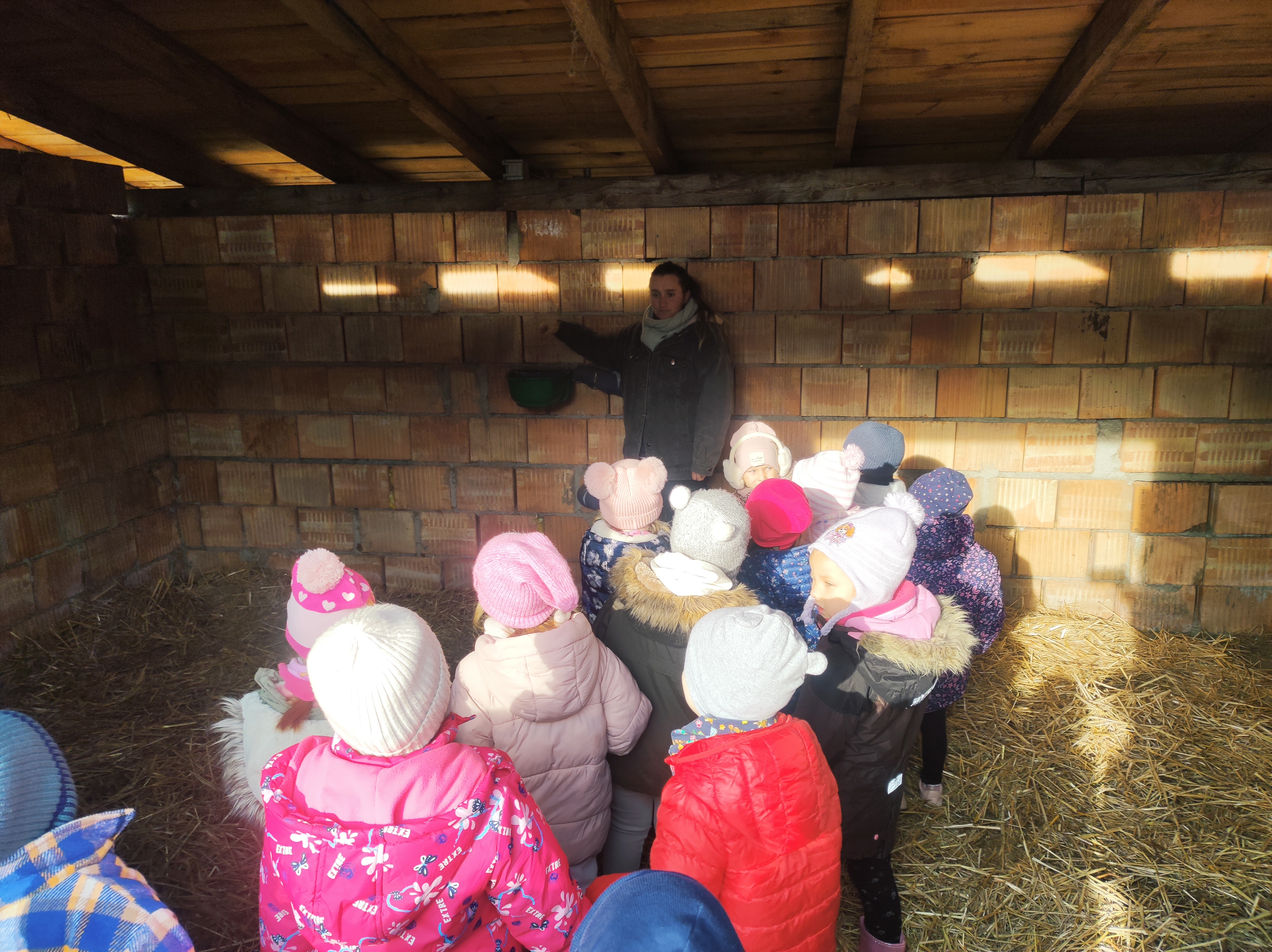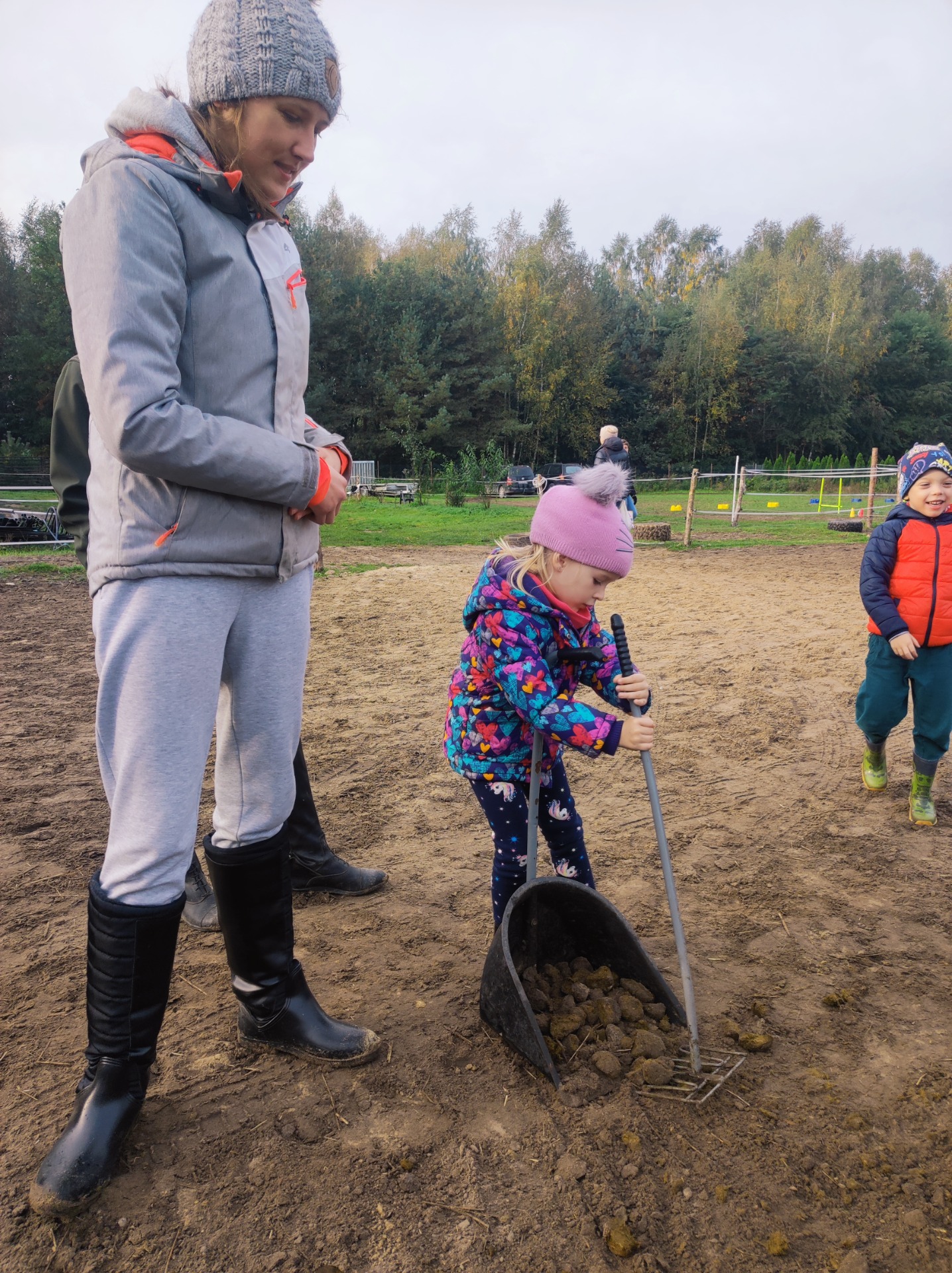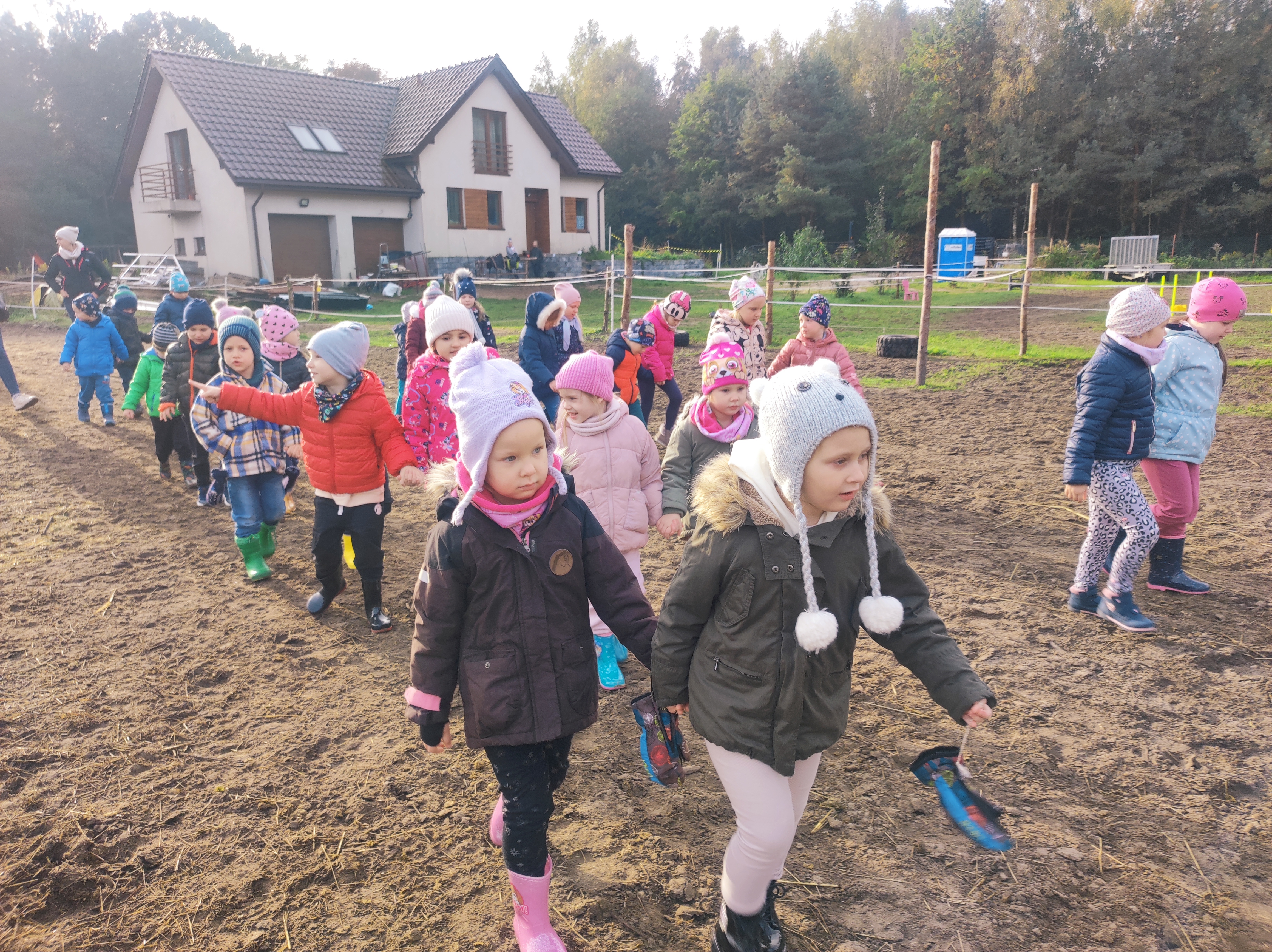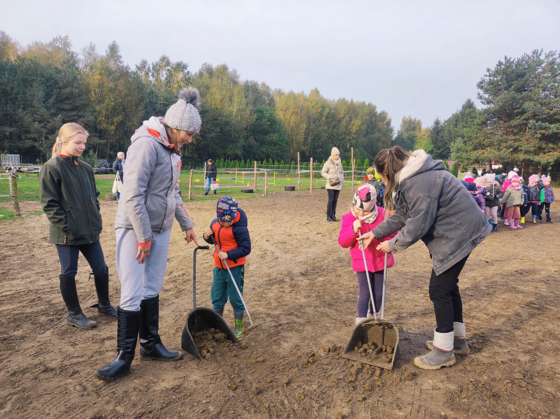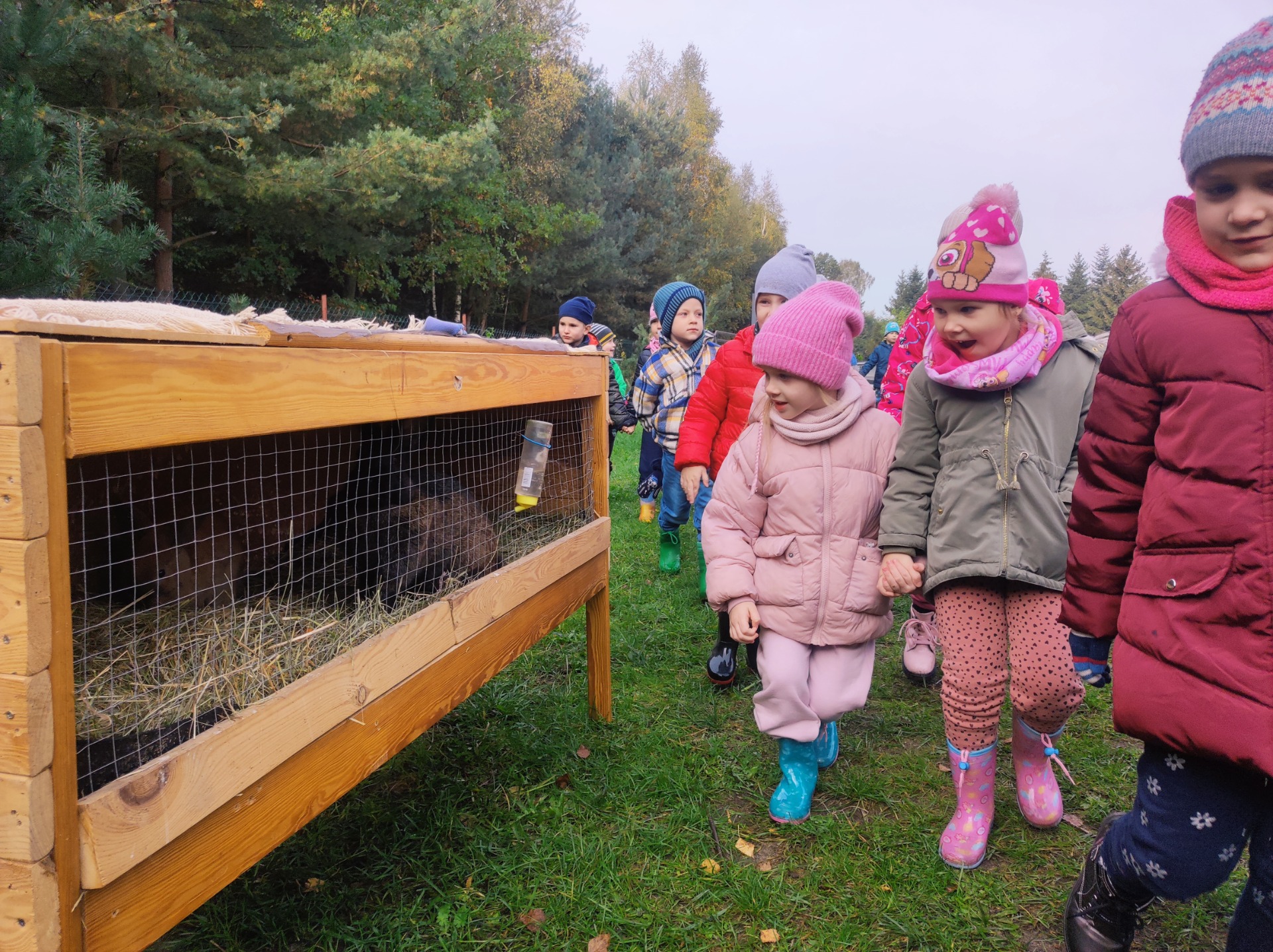 19 października grupa Podróżników odwiedziła Stajnię Freedom w Dąbrówce Wielkiej. Pani Kamila serdecznie przywitała przedszkolaków i oprowadziła po stajni. Dzieci dowiedziały się co to jest kupaczka (narzędzia do zbierania końskich odchodów) , lizawka (sól którą liżą konie), poidło oraz co lubią jeść konie:)) Chętni Podróżnicy wyczesali oraz pogłaskali konia Doratkę, kucyka Basię, a niektórzy nawet odważyli się wsiąść i obejść małą rundkę na Doratce i Chmurce. Nie zabrakło również aktywności ruchowej… dzieci pokonały przygotowany tor przeszkód w ramach sportowej rywalizacji "Hobby Horse" . Na koniec dzieci wybrały się na pastwisko po trawę dla koni, do którego prowadziła krótka leśna ścieżka. Ponadto mieszkańcami gospodarstwa były króliki, kaczki oraz gęsi, które również zostały nakarmione. To była prawdziwa końska dawka przygody!!:))