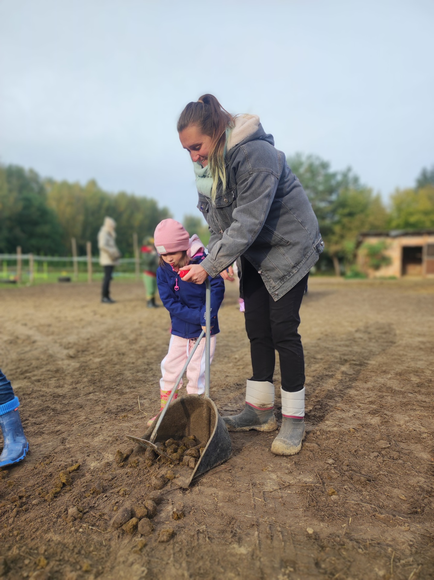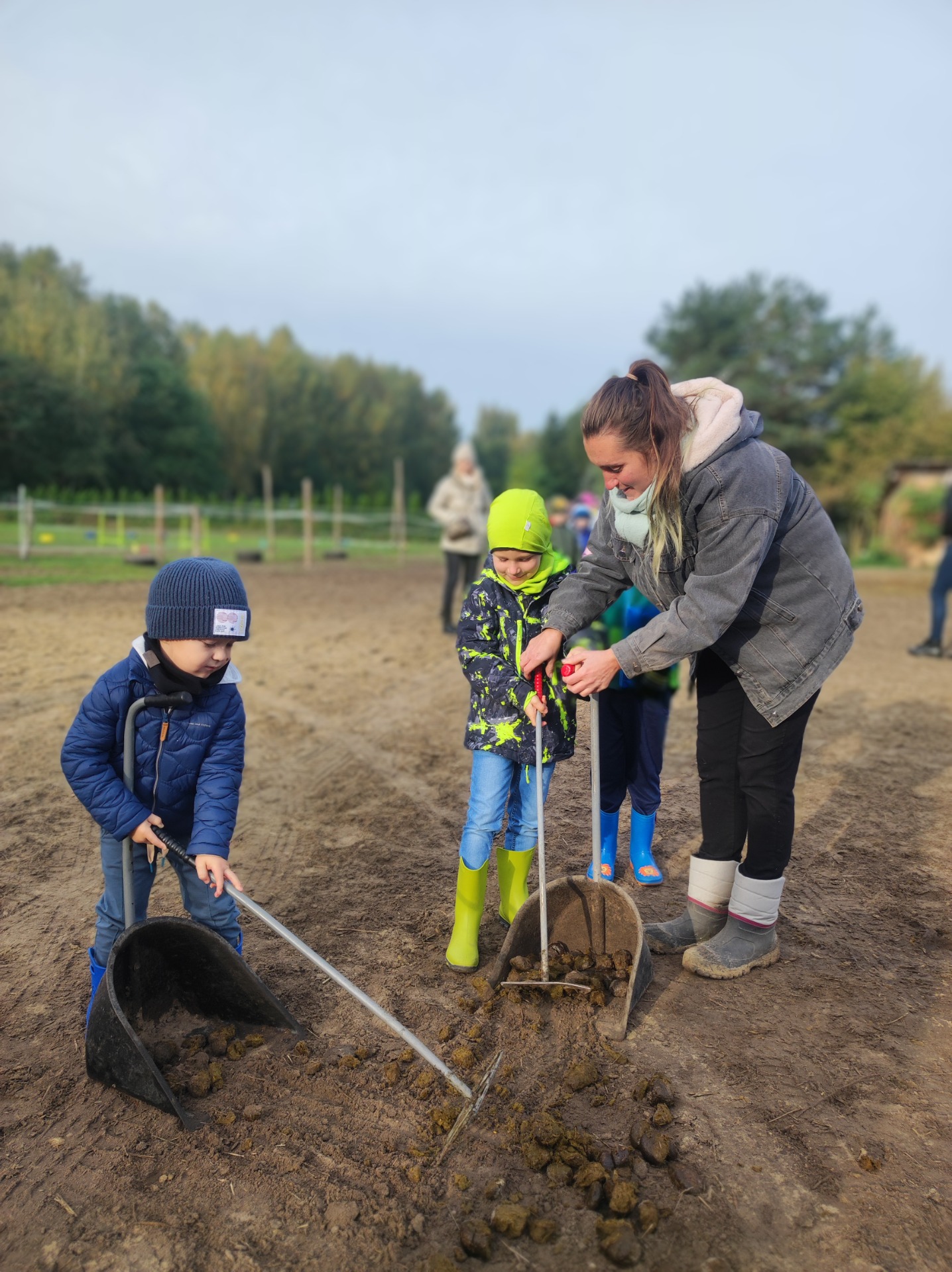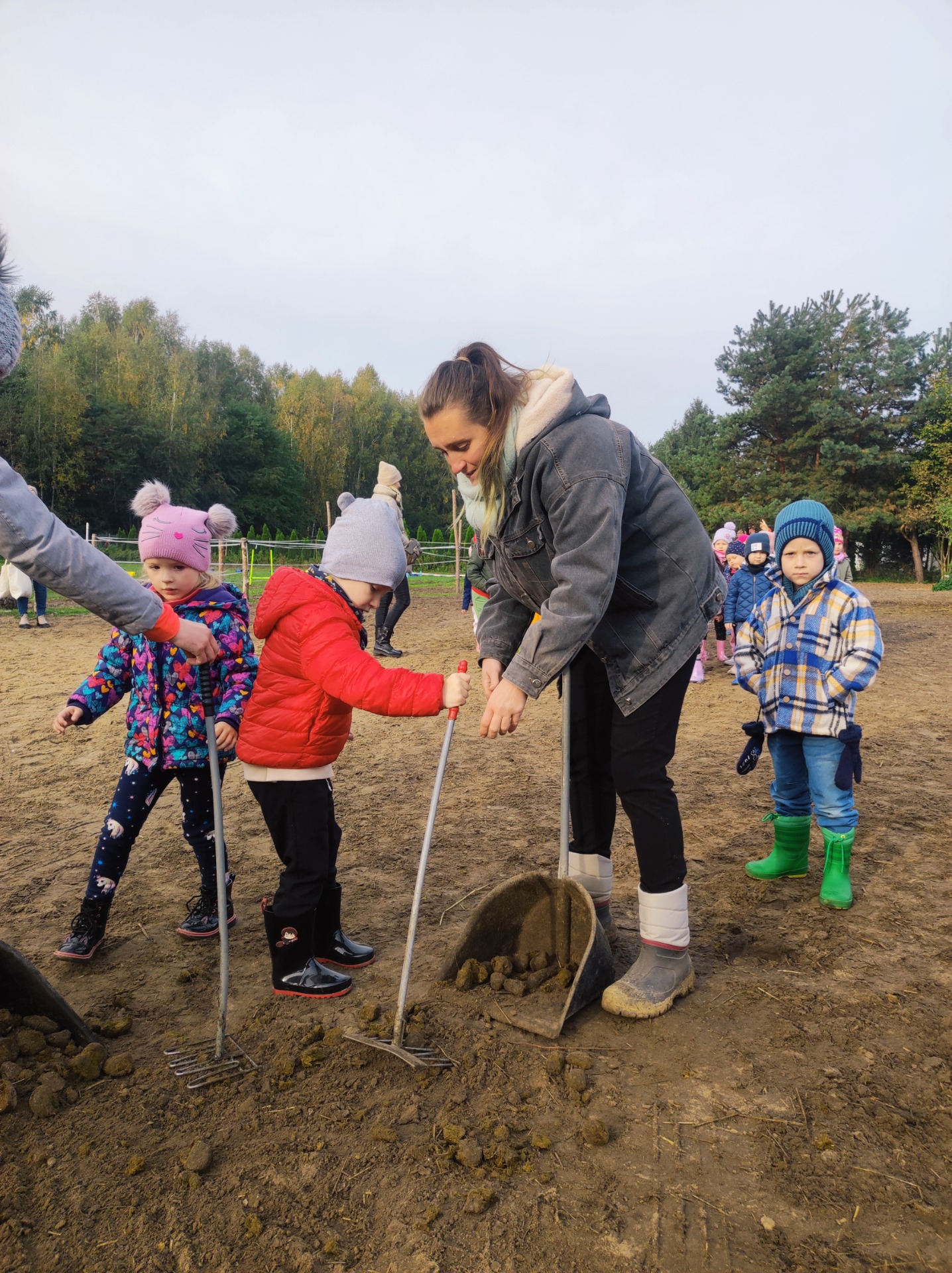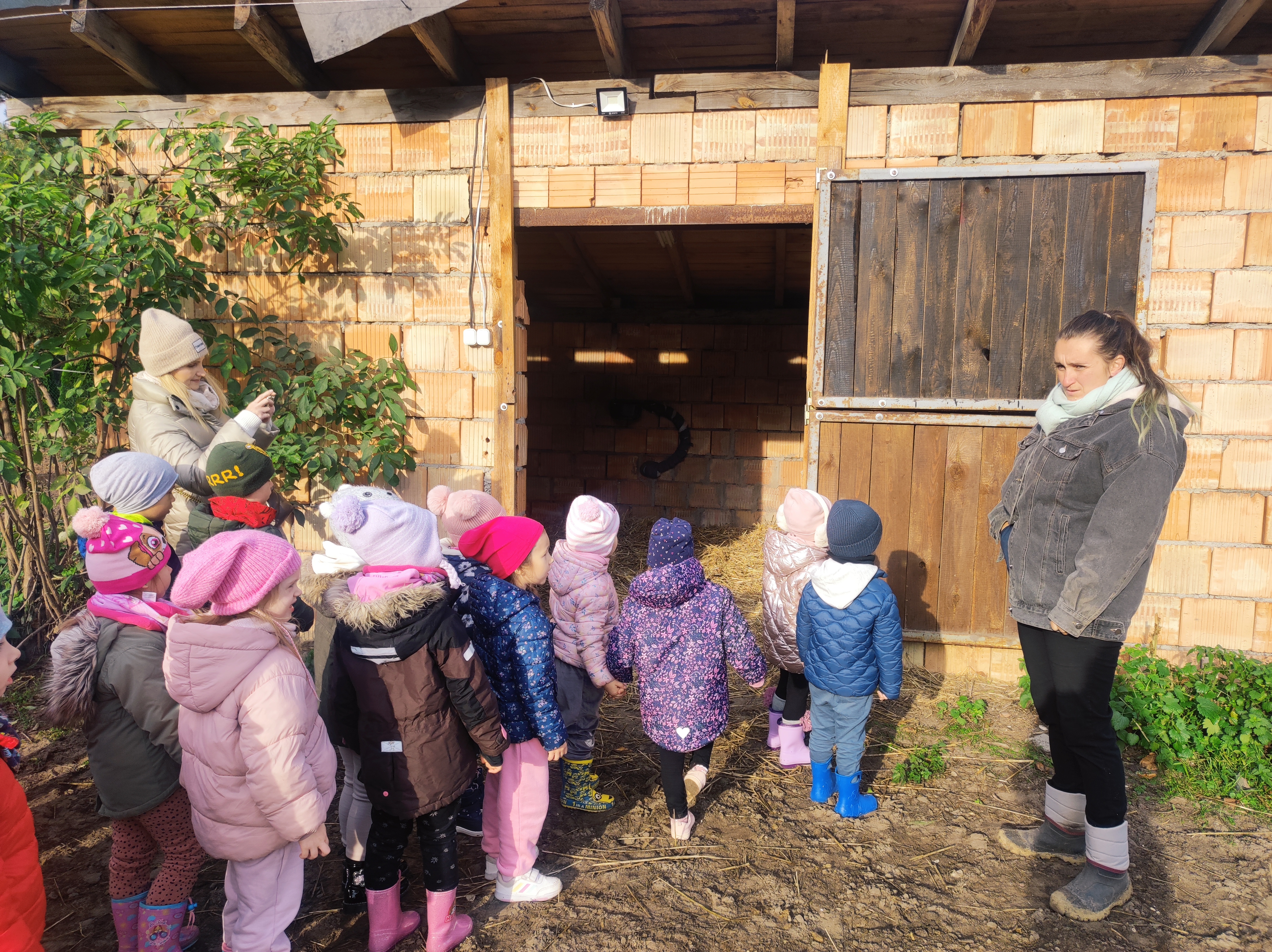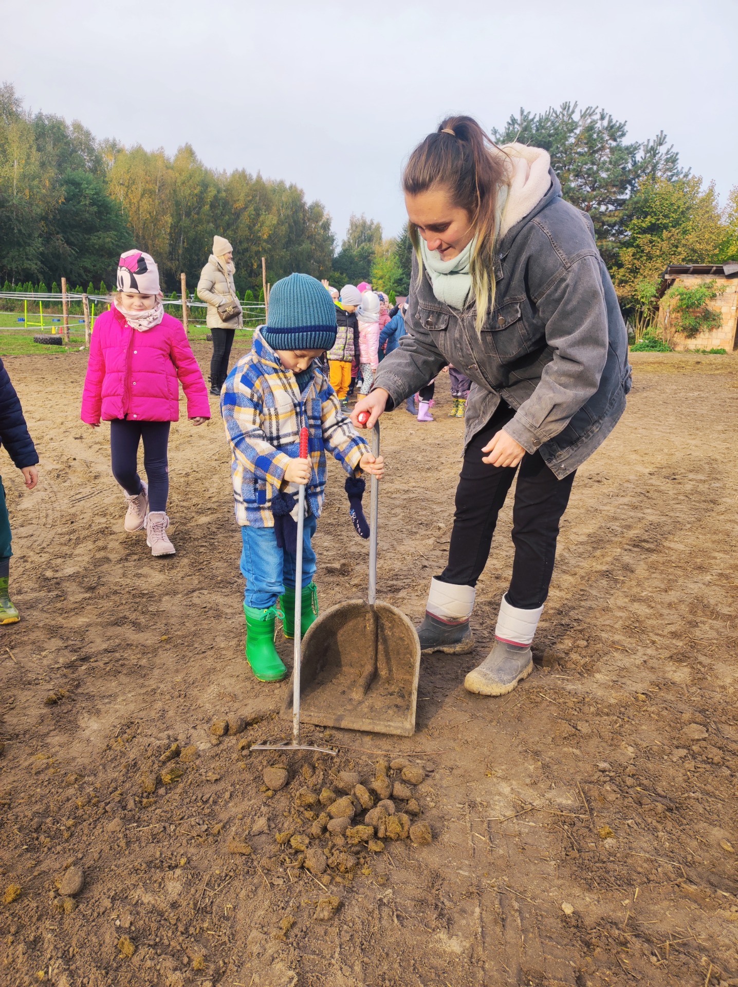 19 października grupa Podróżników odwiedziła Stajnię Freedom w Dąbrówce Wielkiej. Pani Kamila serdecznie przywitała przedszkolaków i oprowadziła po stajni. Dzieci dowiedziały się co to jest kupaczka (narzędzia do zbierania końskich odchodów) , lizawka (sól którą liżą konie), poidło oraz co lubią jeść konie:)) Chętni Podróżnicy wyczesali oraz pogłaskali konia Doratkę, kucyka Basię, a niektórzy nawet odważyli się wsiąść i obejść małą rundkę na Doratce i Chmurce. Nie zabrakło również aktywności ruchowej… dzieci pokonały przygotowany tor przeszkód w ramach sportowej rywalizacji "Hobby Horse" . Na koniec dzieci wybrały się na pastwisko po trawę dla koni, do którego prowadziła krótka leśna ścieżka. Ponadto mieszkańcami gospodarstwa były króliki, kaczki oraz gęsi, które również zostały nakarmione. To była prawdziwa końska dawka przygody!!:))