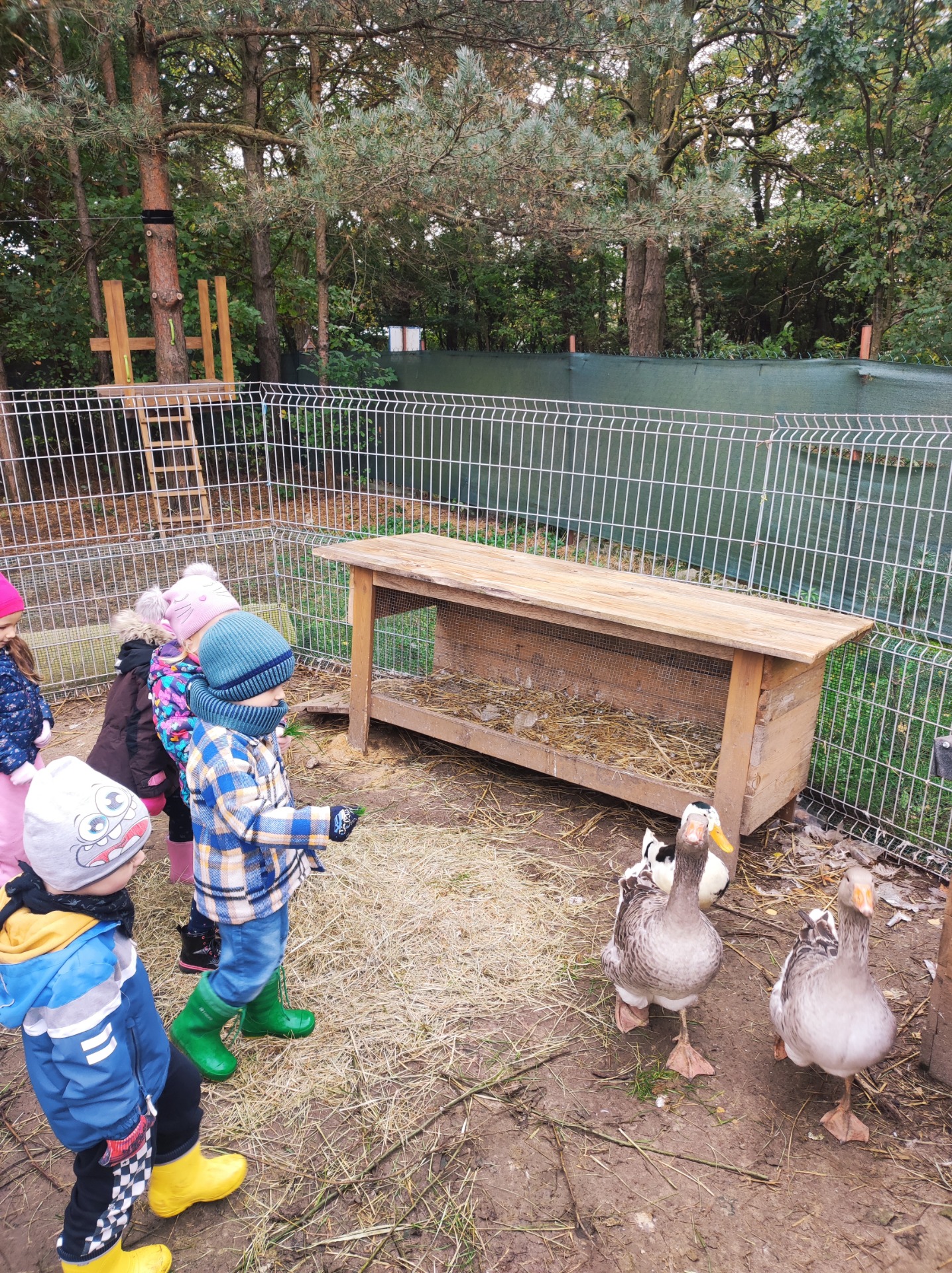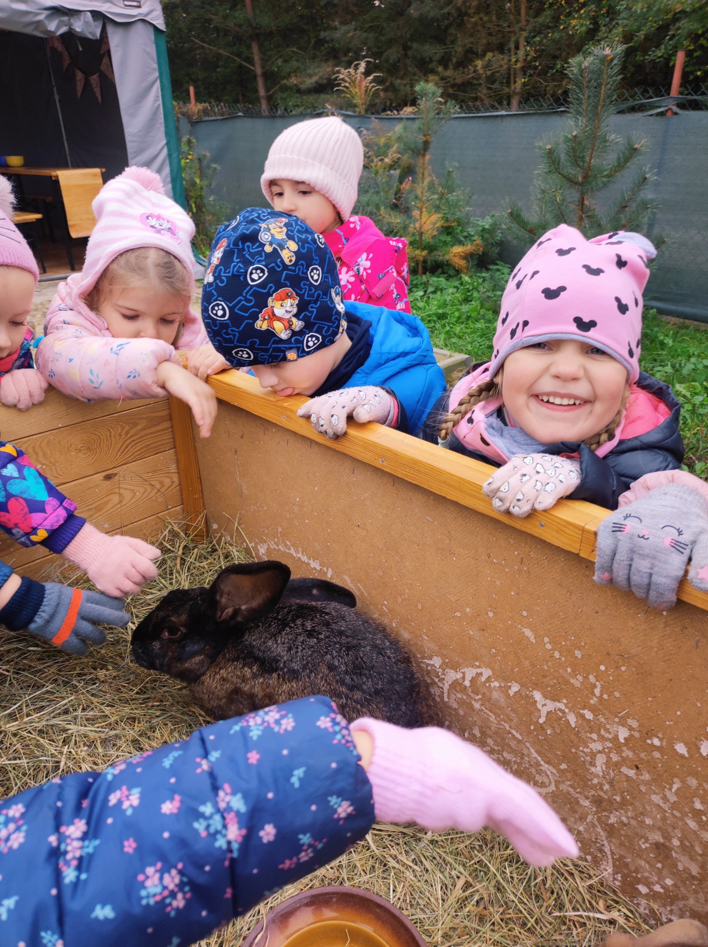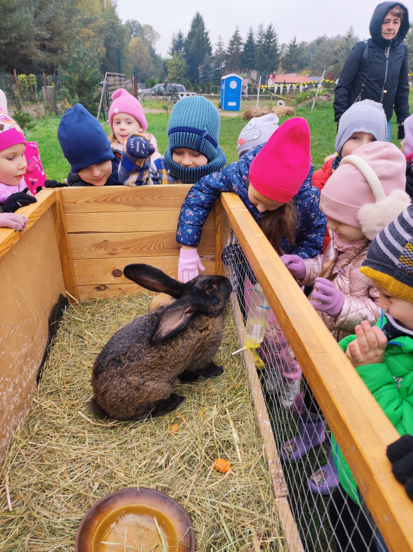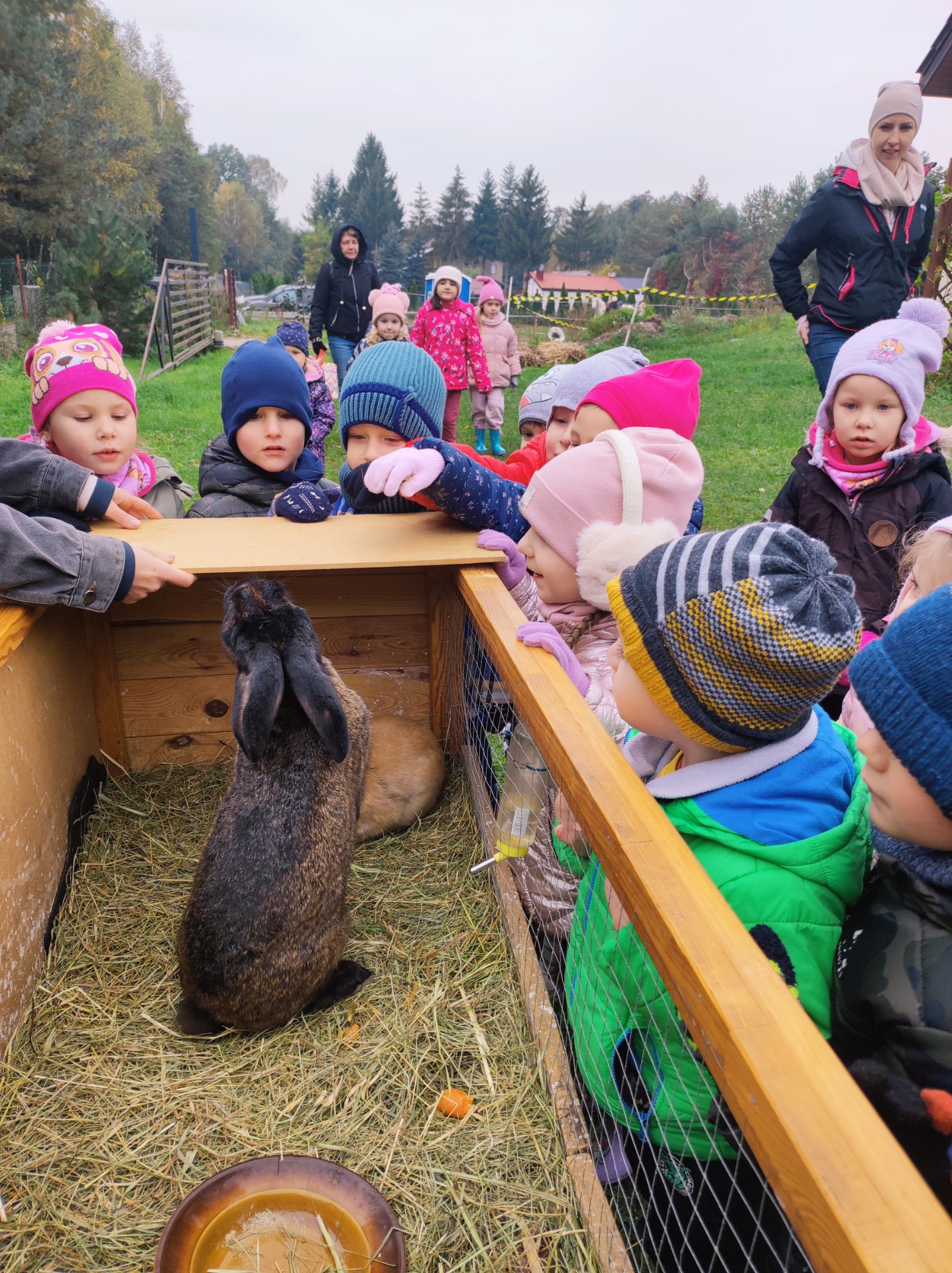19 października grupa Podróżników odwiedziła Stajnię Freedom w Dąbrówce Wielkiej. Pani Kamila serdecznie przywitała przedszkolaków i oprowadziła po stajni. Dzieci dowiedziały się co to jest kupaczka (narzędzia do zbierania końskich odchodów) , lizawka (sól którą liżą konie), poidło oraz co lubią jeść konie:)) Chętni Podróżnicy wyczesali oraz pogłaskali konia Doratkę, kucyka Basię, a niektórzy nawet odważyli się wsiąść i obejść małą rundkę na Doratce i Chmurce. Nie zabrakło również aktywności ruchowej… dzieci pokonały przygotowany tor przeszkód w ramach sportowej rywalizacji "Hobby Horse" . Na koniec dzieci wybrały się na pastwisko po trawę dla koni, do którego prowadziła krótka leśna ścieżka. Ponadto mieszkańcami gospodarstwa były króliki, kaczki oraz gęsi, które również zostały nakarmione. To była prawdziwa końska dawka przygody!!:))