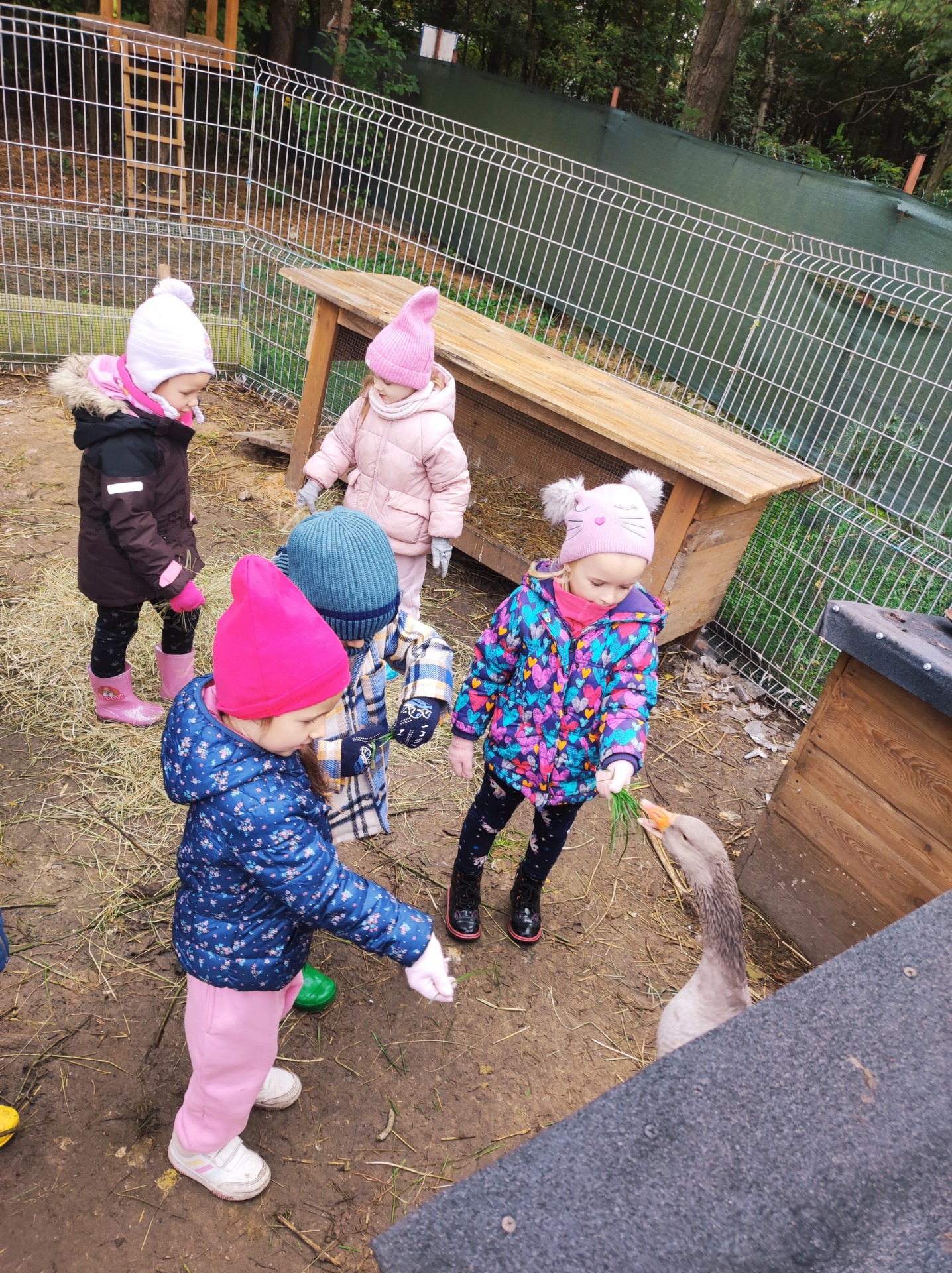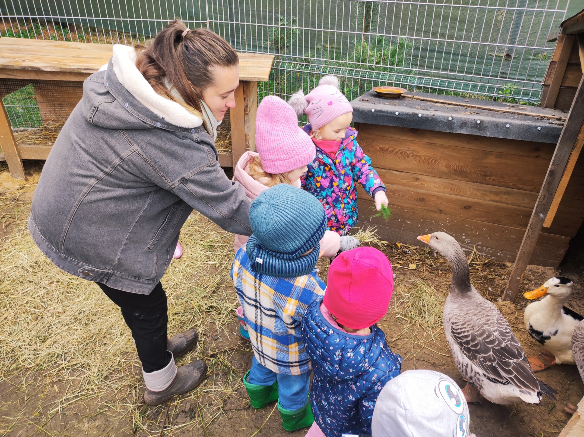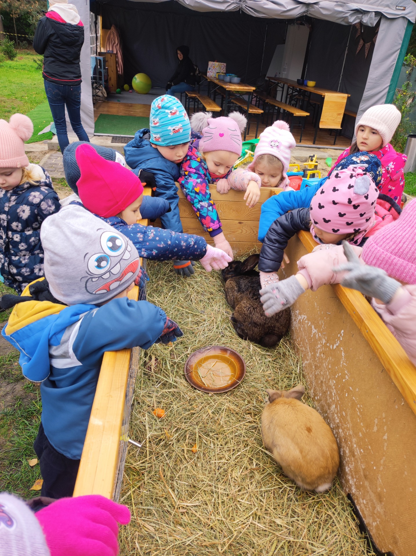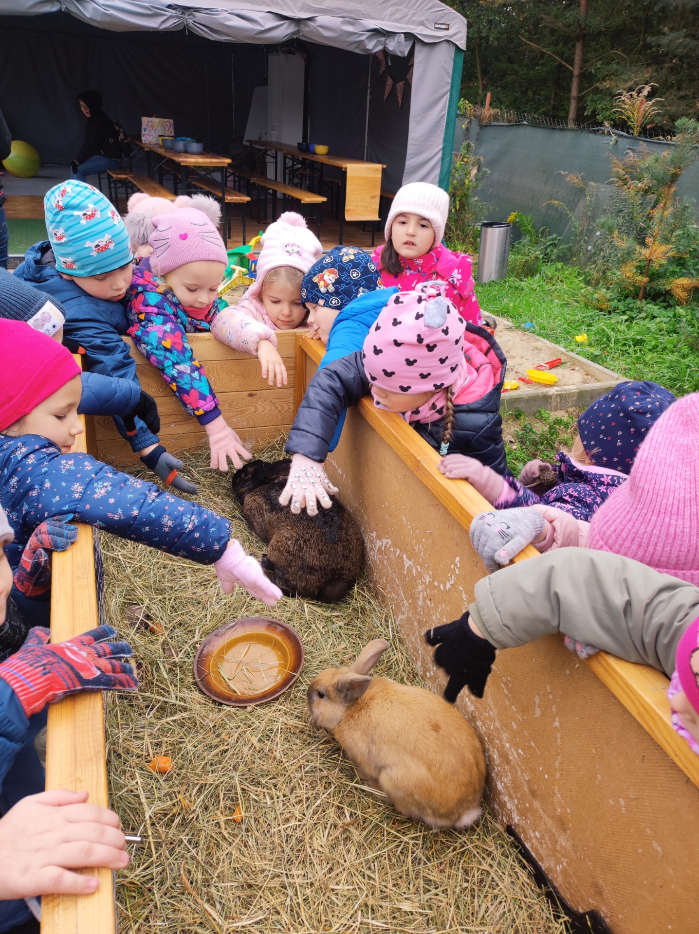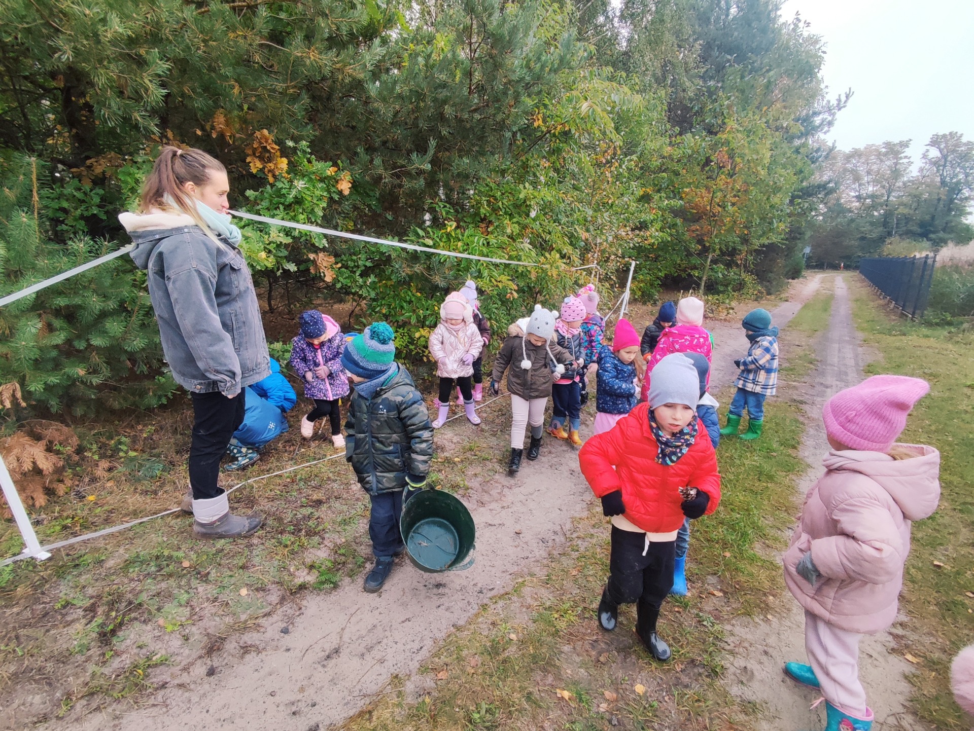 19 października grupa Podróżników odwiedziła Stajnię Freedom w Dąbrówce Wielkiej. Pani Kamila serdecznie przywitała przedszkolaków i oprowadziła po stajni. Dzieci dowiedziały się co to jest kupaczka (narzędzia do zbierania końskich odchodów) , lizawka (sól którą liżą konie), poidło oraz co lubią jeść konie:)) Chętni Podróżnicy wyczesali oraz pogłaskali konia Doratkę, kucyka Basię, a niektórzy nawet odważyli się wsiąść i obejść małą rundkę na Doratce i Chmurce. Nie zabrakło również aktywności ruchowej… dzieci pokonały przygotowany tor przeszkód w ramach sportowej rywalizacji "Hobby Horse" . Na koniec dzieci wybrały się na pastwisko po trawę dla koni, do którego prowadziła krótka leśna ścieżka. Ponadto mieszkańcami gospodarstwa były króliki, kaczki oraz gęsi, które również zostały nakarmione. To była prawdziwa końska dawka przygody!!:))