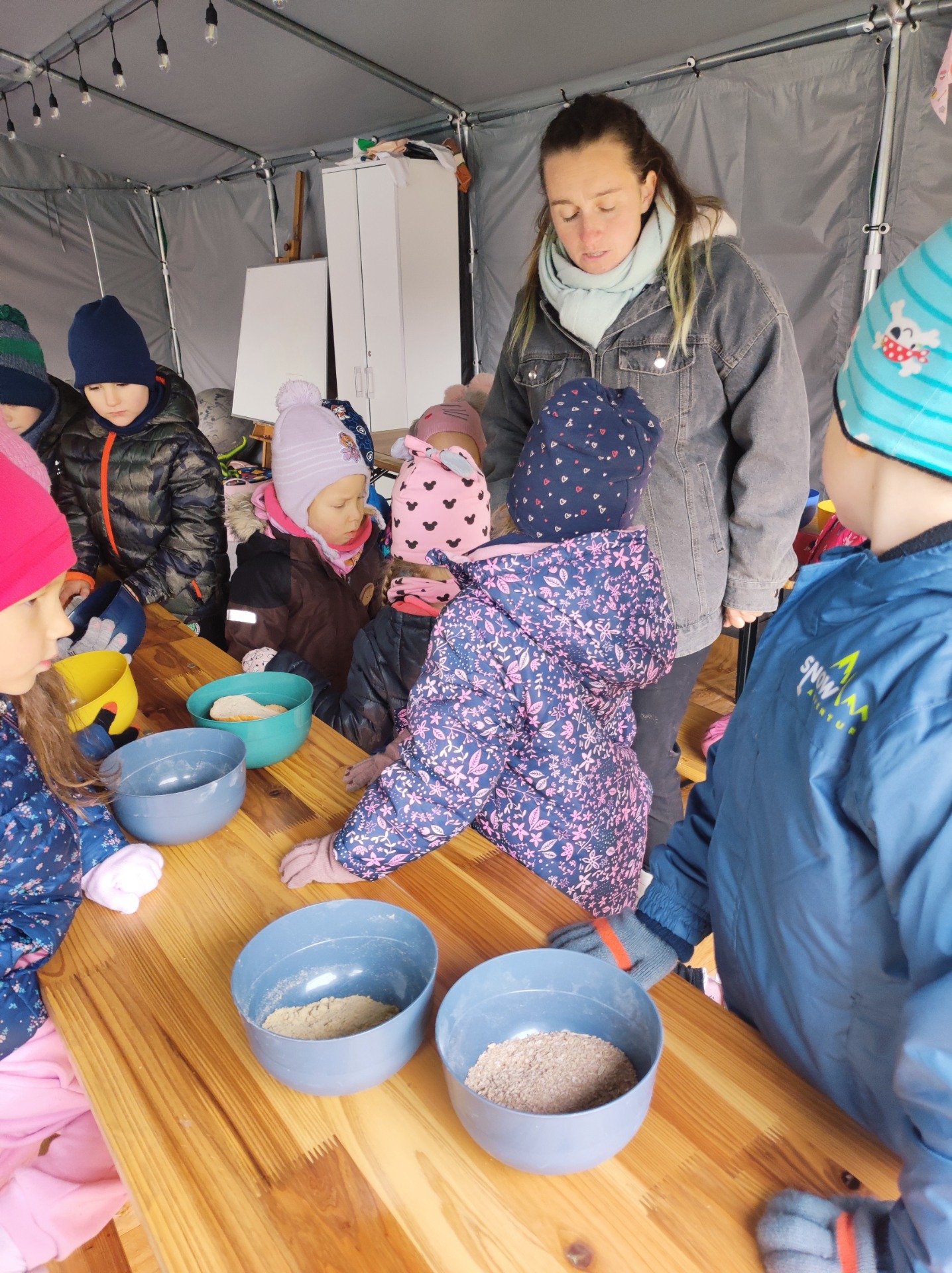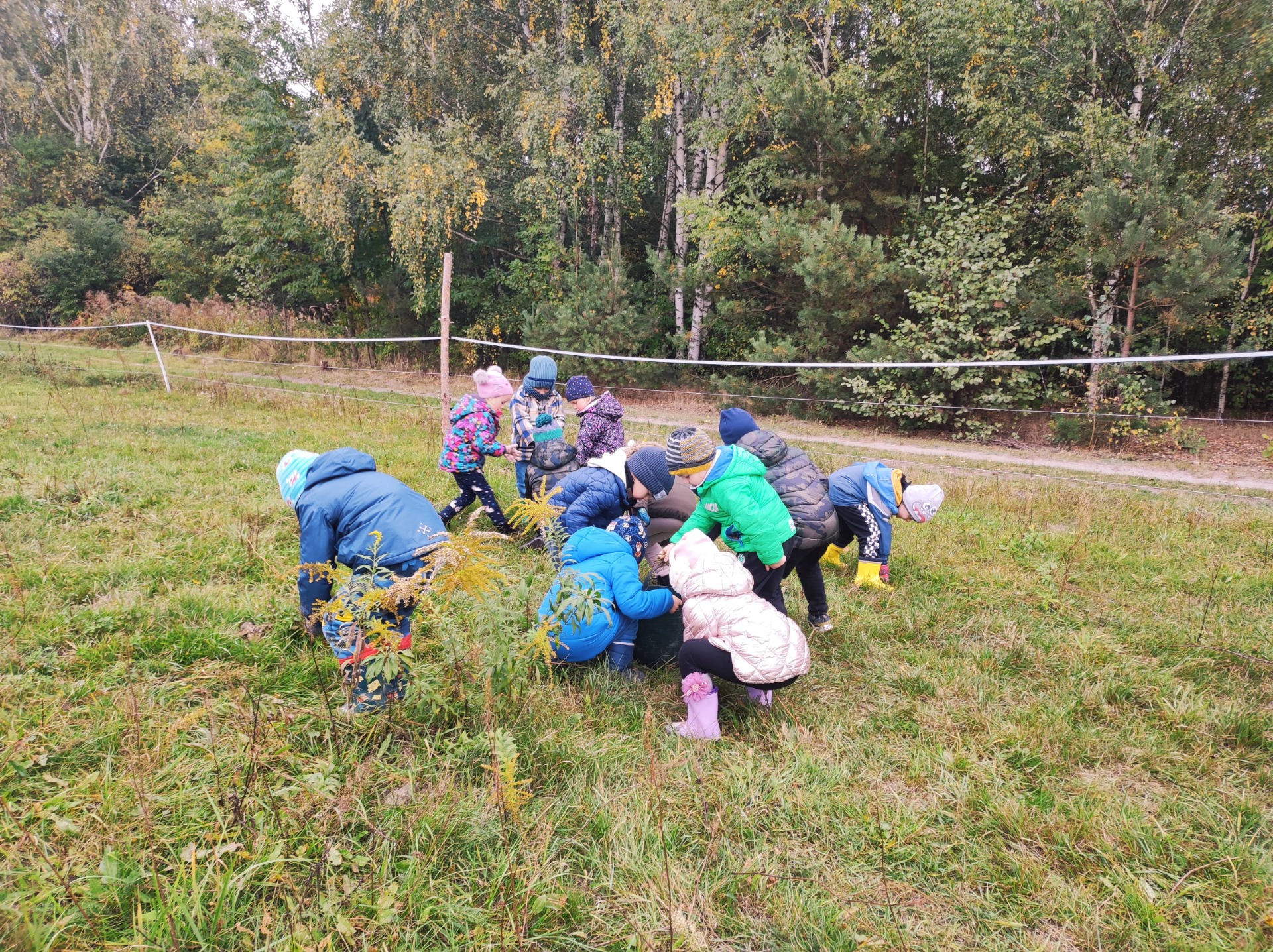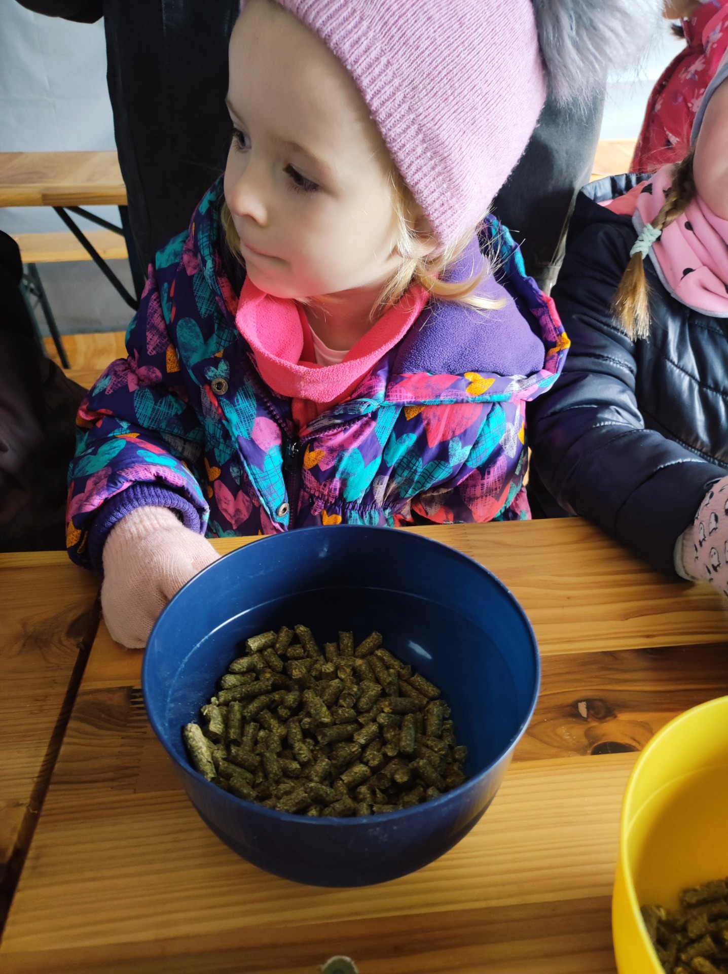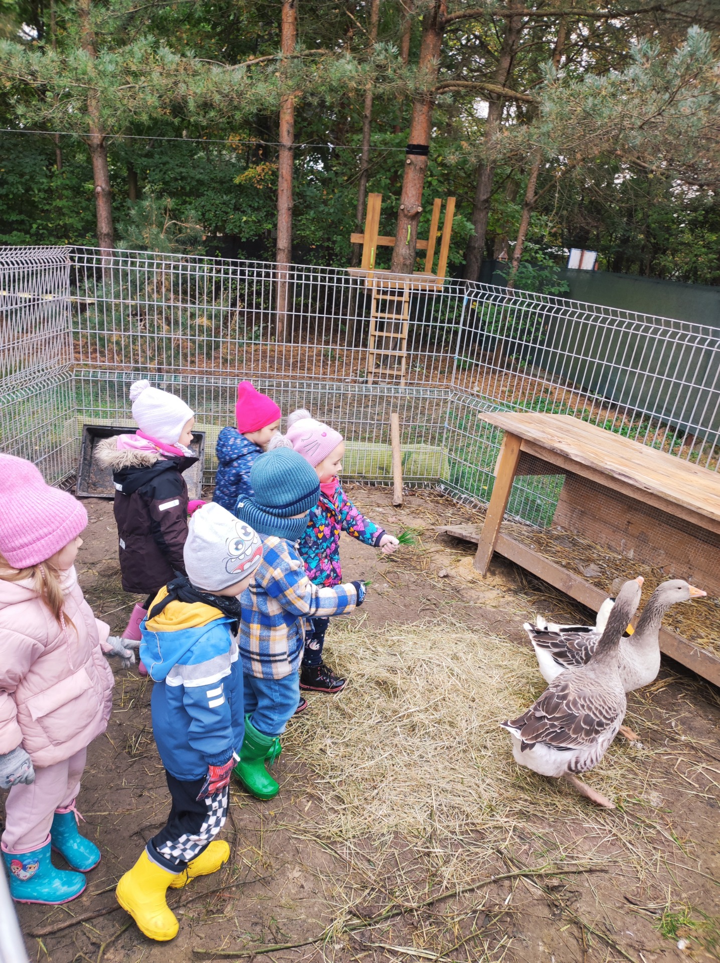 19 października grupa Podróżników odwiedziła Stajnię Freedom w Dąbrówce Wielkiej. Pani Kamila serdecznie przywitała przedszkolaków i oprowadziła po stajni. Dzieci dowiedziały się co to jest kupaczka (narzędzia do zbierania końskich odchodów) , lizawka (sól którą liżą konie), poidło oraz co lubią jeść konie:)) Chętni Podróżnicy wyczesali oraz pogłaskali konia Doratkę, kucyka Basię, a niektórzy nawet odważyli się wsiąść i obejść małą rundkę na Doratce i Chmurce. Nie zabrakło również aktywności ruchowej… dzieci pokonały przygotowany tor przeszkód w ramach sportowej rywalizacji "Hobby Horse" . Na koniec dzieci wybrały się na pastwisko po trawę dla koni, do którego prowadziła krótka leśna ścieżka. Ponadto mieszkańcami gospodarstwa były króliki, kaczki oraz gęsi, które również zostały nakarmione. To była prawdziwa końska dawka przygody!!:))