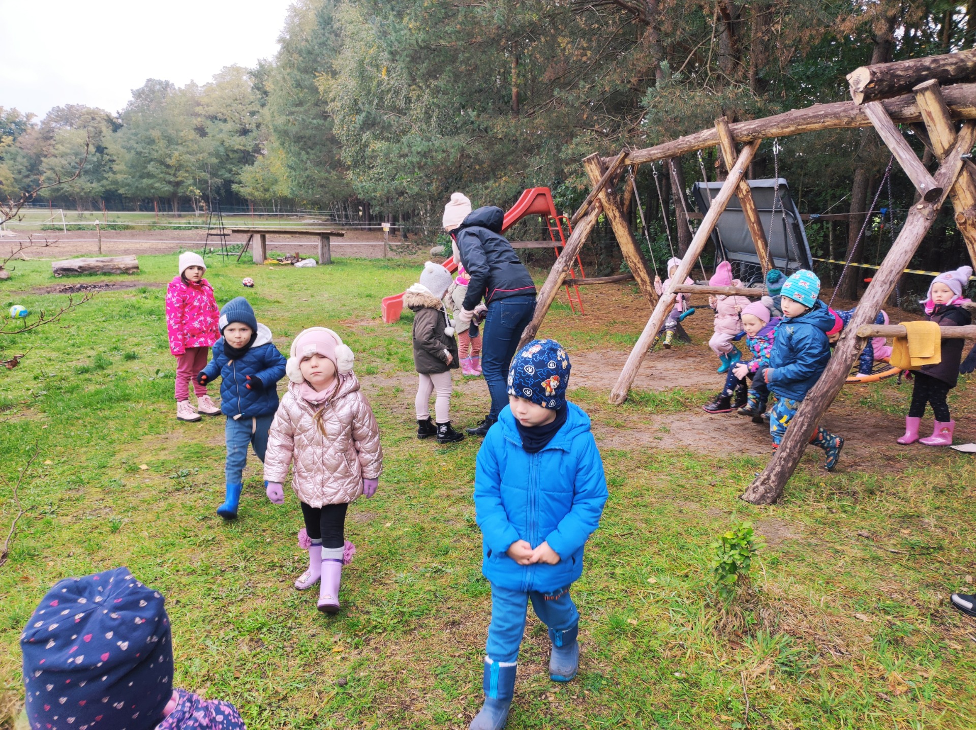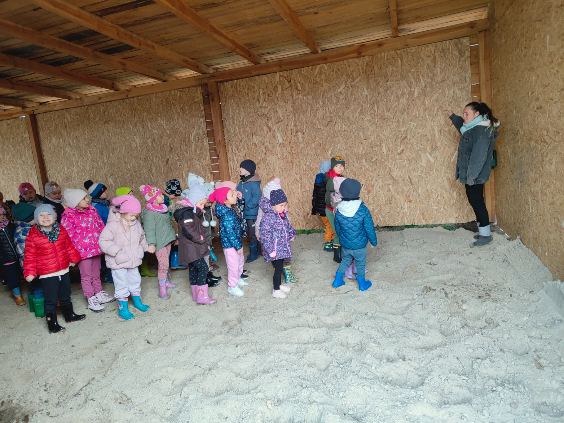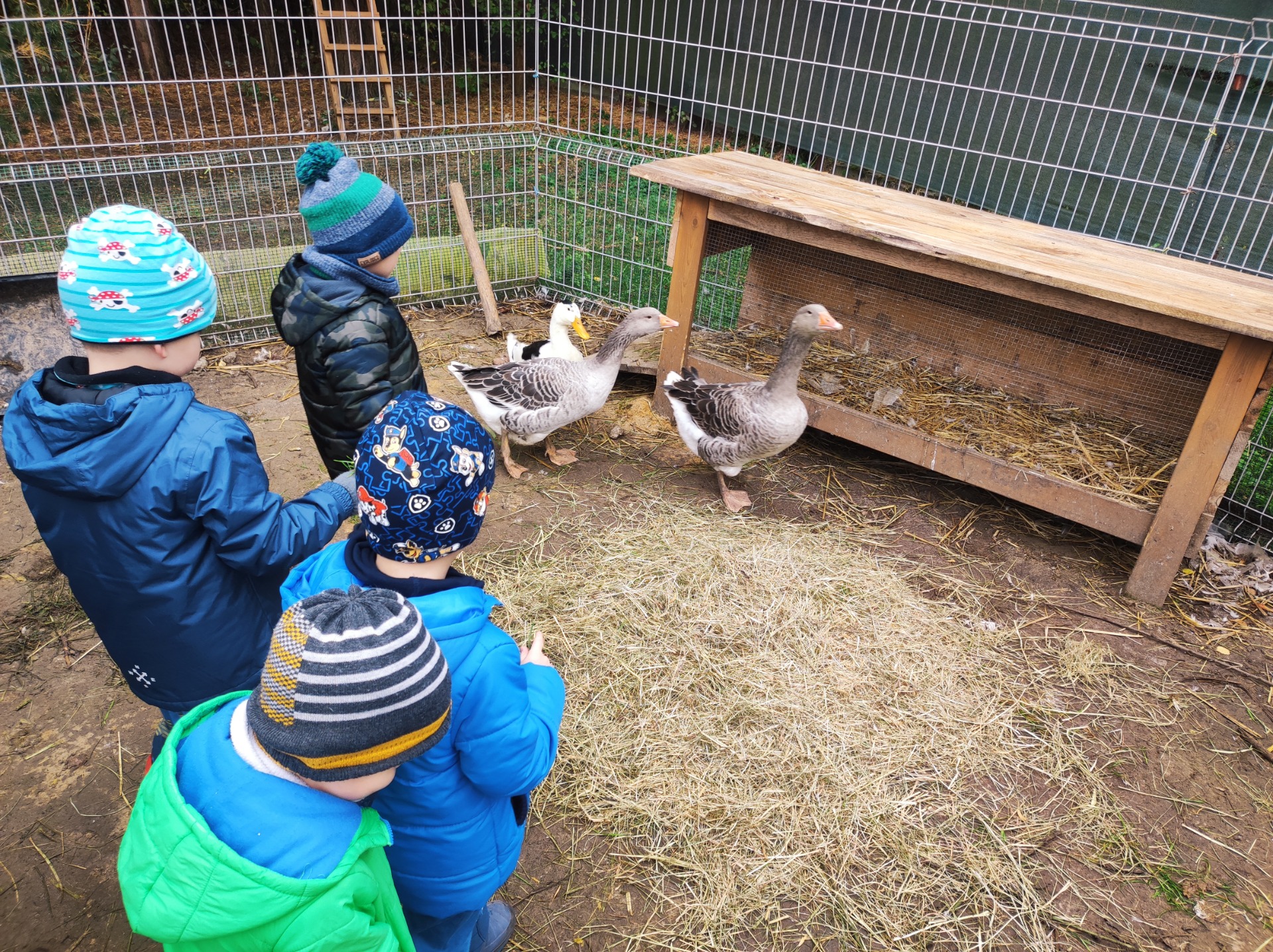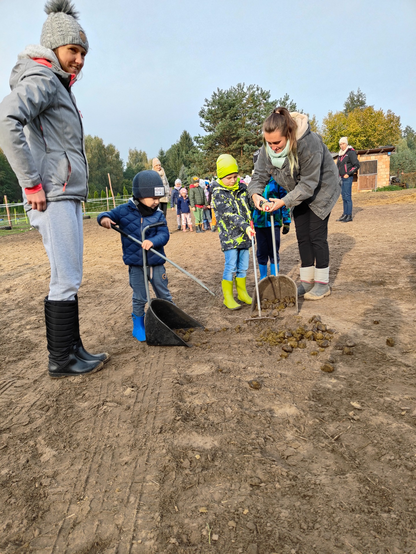 19 października grupa Podróżników odwiedziła Stajnię Freedom w Dąbrówce Wielkiej. Pani Kamila serdecznie przywitała przedszkolaków i oprowadziła po stajni. Dzieci dowiedziały się co to jest kupaczka (narzędzia do zbierania końskich odchodów) , lizawka (sól którą liżą konie), poidło oraz co lubią jeść konie:)) Chętni Podróżnicy wyczesali oraz pogłaskali konia Doratkę, kucyka Basię, a niektórzy nawet odważyli się wsiąść i obejść małą rundkę na Doratce i Chmurce. Nie zabrakło również aktywności ruchowej… dzieci pokonały przygotowany tor przeszkód w ramach sportowej rywalizacji "Hobby Horse" . Na koniec dzieci wybrały się na pastwisko po trawę dla koni, do którego prowadziła krótka leśna ścieżka. Ponadto mieszkańcami gospodarstwa były króliki, kaczki oraz gęsi, które również zostały nakarmione. To była prawdziwa końska dawka przygody!!:))