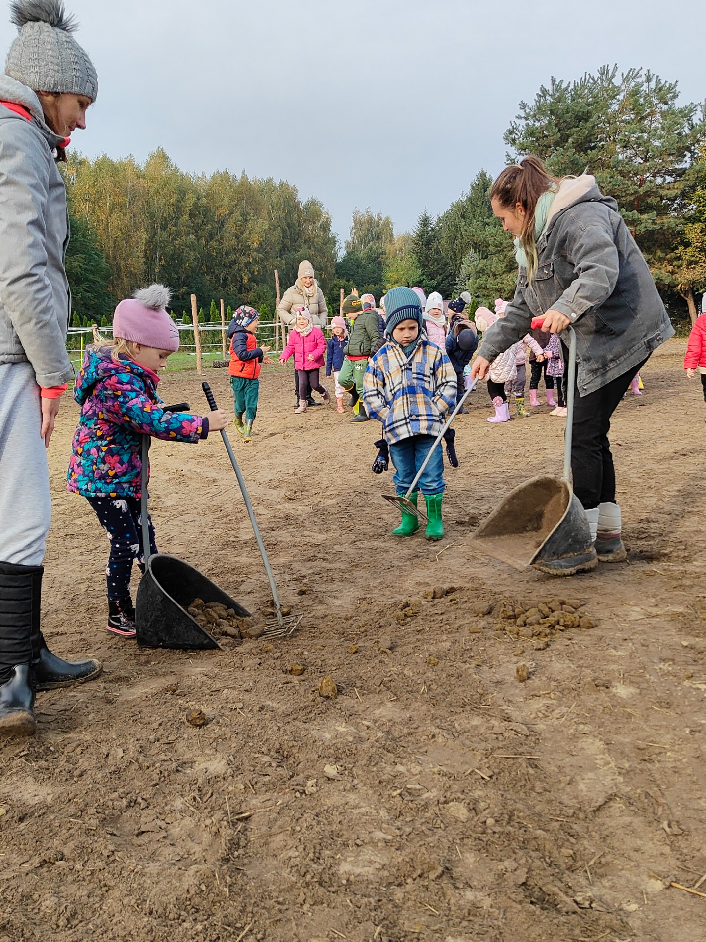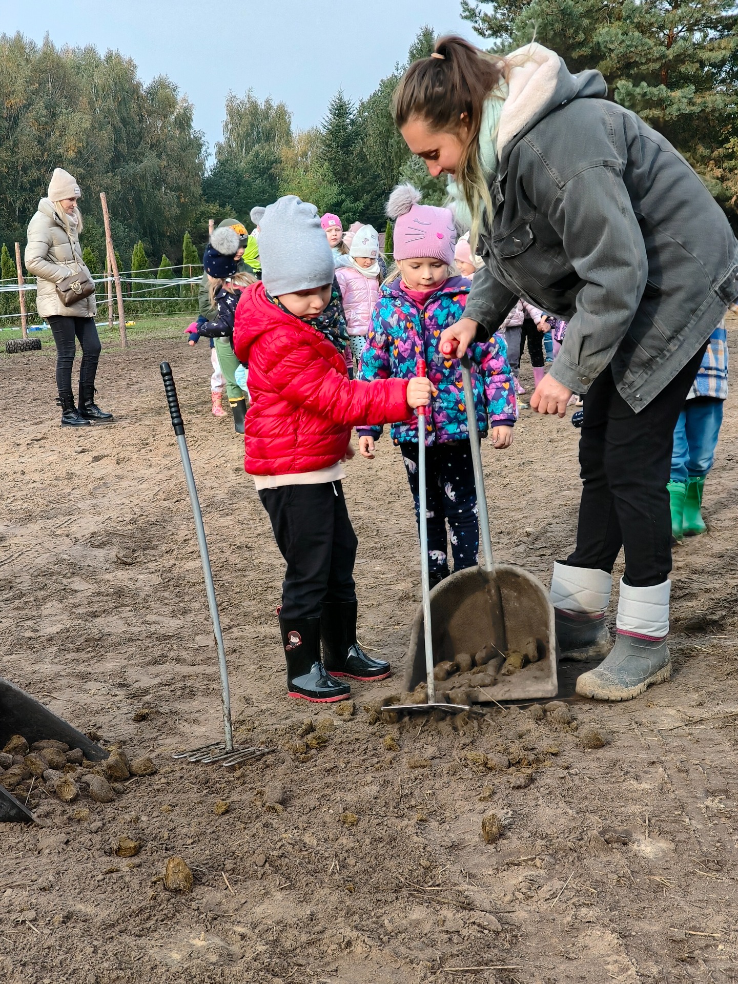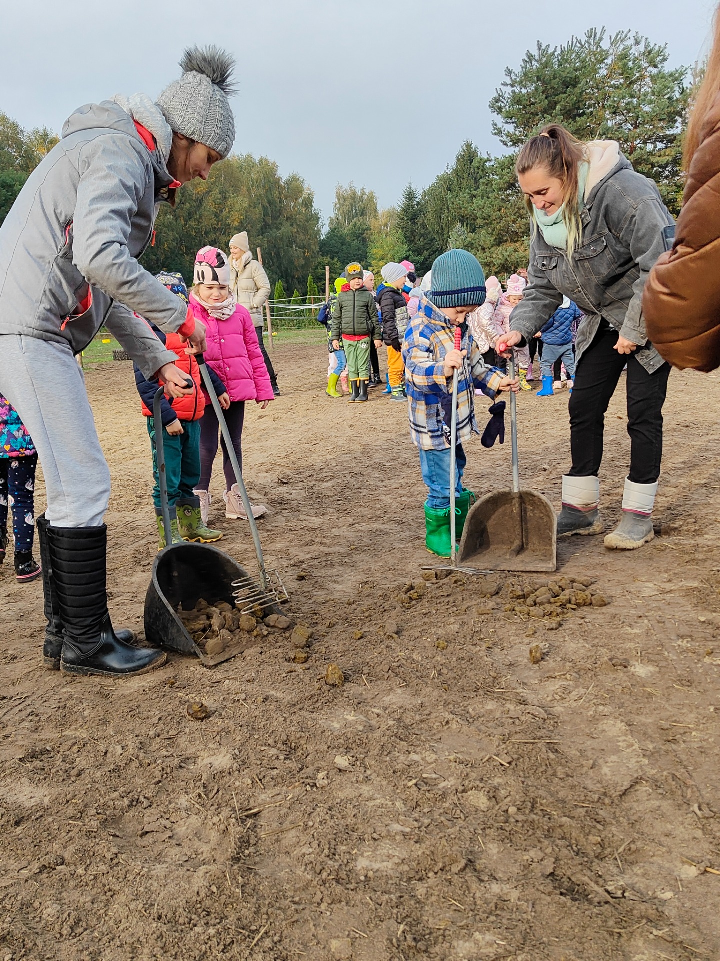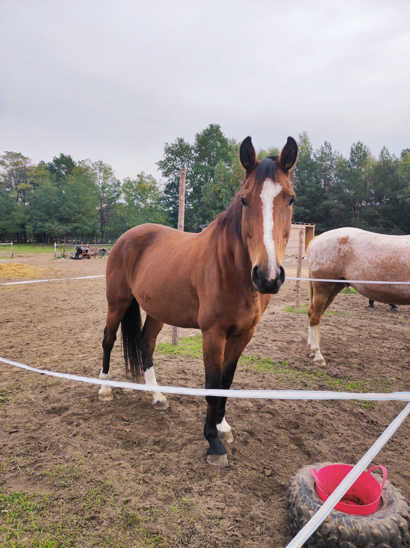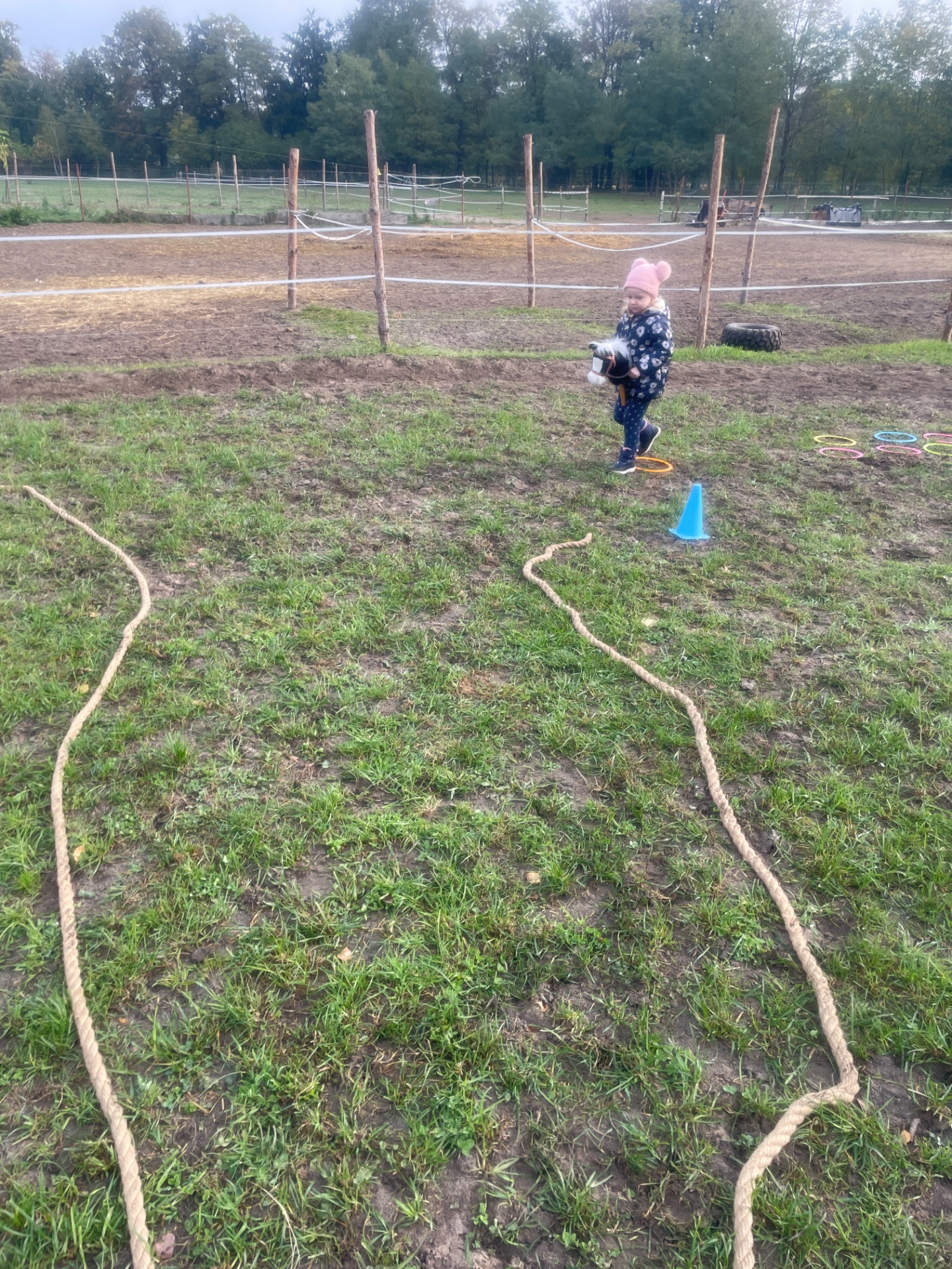 19 października grupa Podróżników odwiedziła Stajnię Freedom w Dąbrówce Wielkiej. Pani Kamila serdecznie przywitała przedszkolaków i oprowadziła po stajni. Dzieci dowiedziały się co to jest kupaczka (narzędzia do zbierania końskich odchodów) , lizawka (sól którą liżą konie), poidło oraz co lubią jeść konie:)) Chętni Podróżnicy wyczesali oraz pogłaskali konia Doratkę, kucyka Basię, a niektórzy nawet odważyli się wsiąść i obejść małą rundkę na Doratce i Chmurce. Nie zabrakło również aktywności ruchowej… dzieci pokonały przygotowany tor przeszkód w ramach sportowej rywalizacji "Hobby Horse" . Na koniec dzieci wybrały się na pastwisko po trawę dla koni, do którego prowadziła krótka leśna ścieżka. Ponadto mieszkańcami gospodarstwa były króliki, kaczki oraz gęsi, które również zostały nakarmione. To była prawdziwa końska dawka przygody!!:))