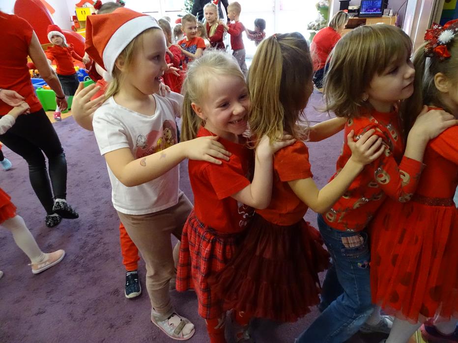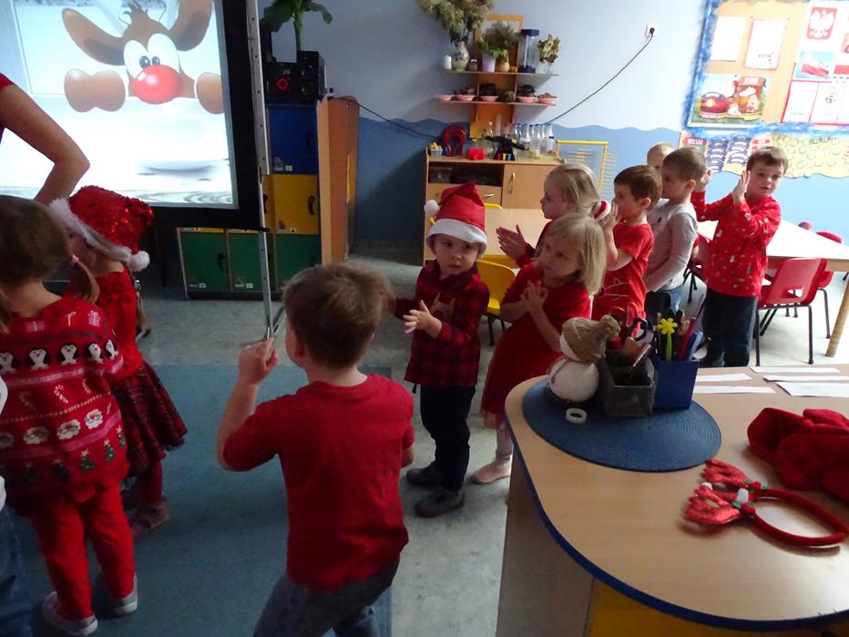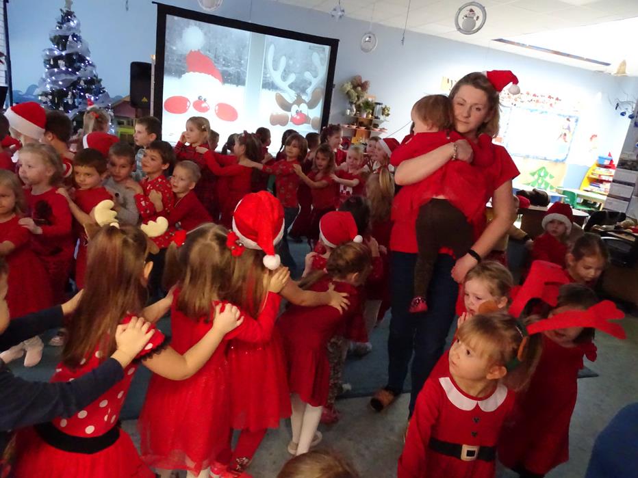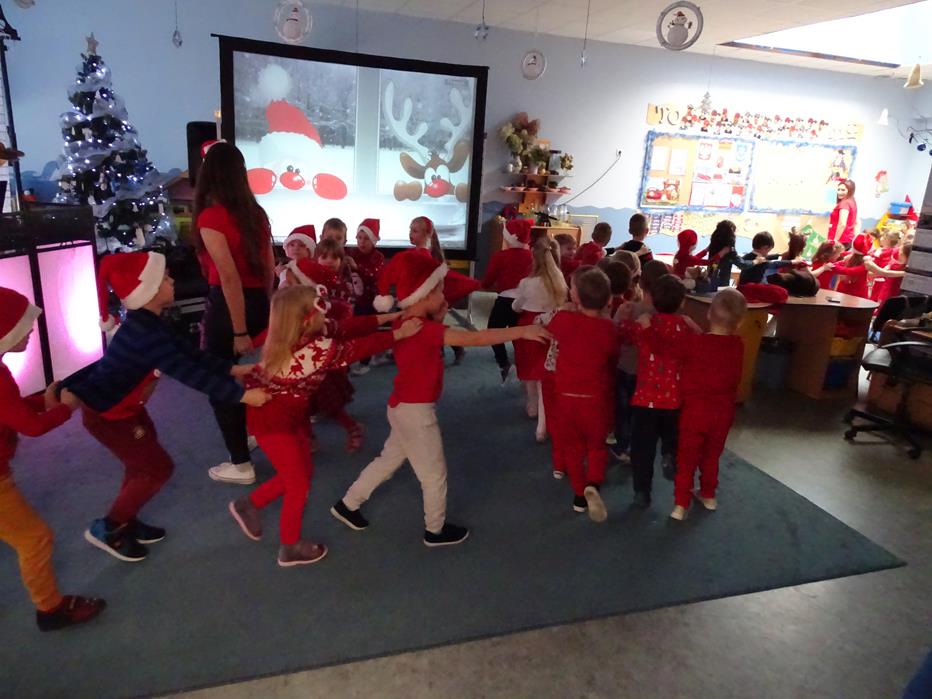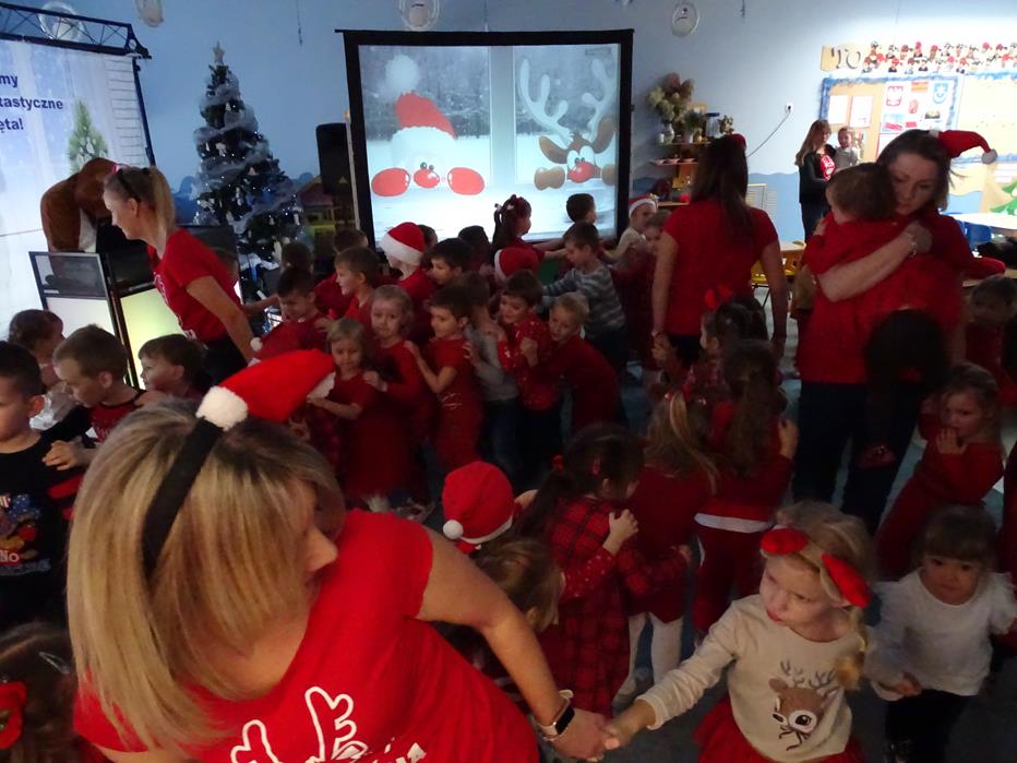 Zgodnie z tradycją 5 grudnia uroczyście obchodziliśmy w przedszkolu mikołajkowe święto. W tym dniu przedszkolaki zamieniły się w pomocników Mikołaja i przyszły do przedszkola w czerwonych czapeczkach i strojach. Już od rana zastanawiały się czy Mikołaj odwiedzi ich salę i czy przyniesie prezenty. Okazało się,że nie tylko Mikołaj odwiedził przedszkole, ale także Rudolf Czerwononosy i Miś polarny. Najpierw była super imprezka, a po przyjściu Mikołaja dzieci przywitały się z niezwykłym gościem i zaprezentowały piosenkę przygotowaną specjalnie dla Niego. Mikołaj był zachwycony i rozdał wszystkim dzieciom prezenty.