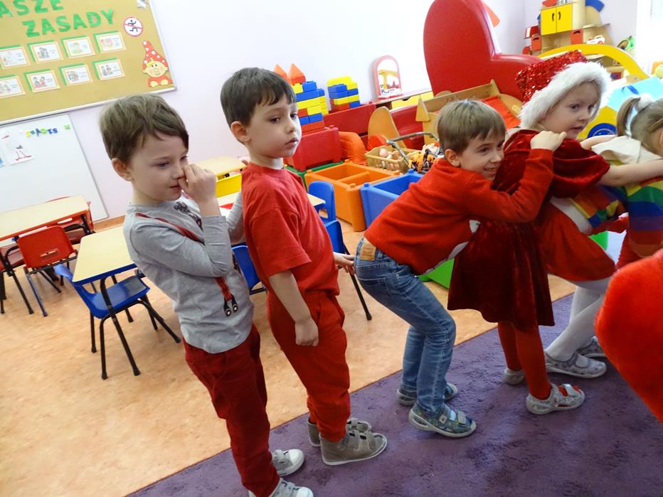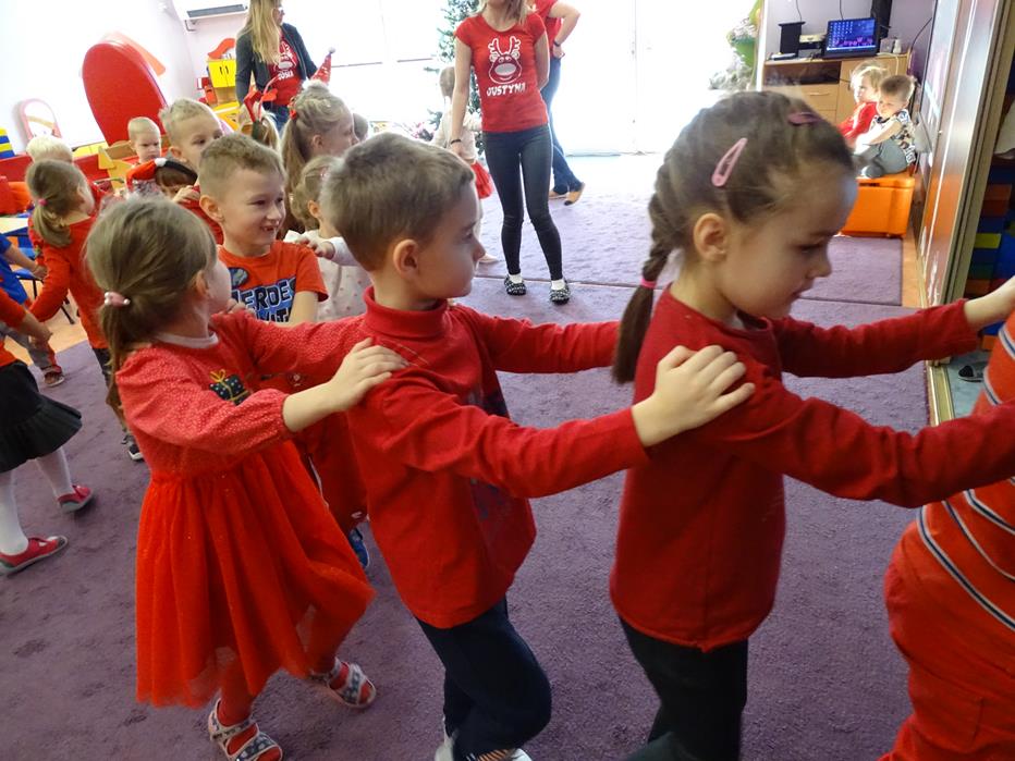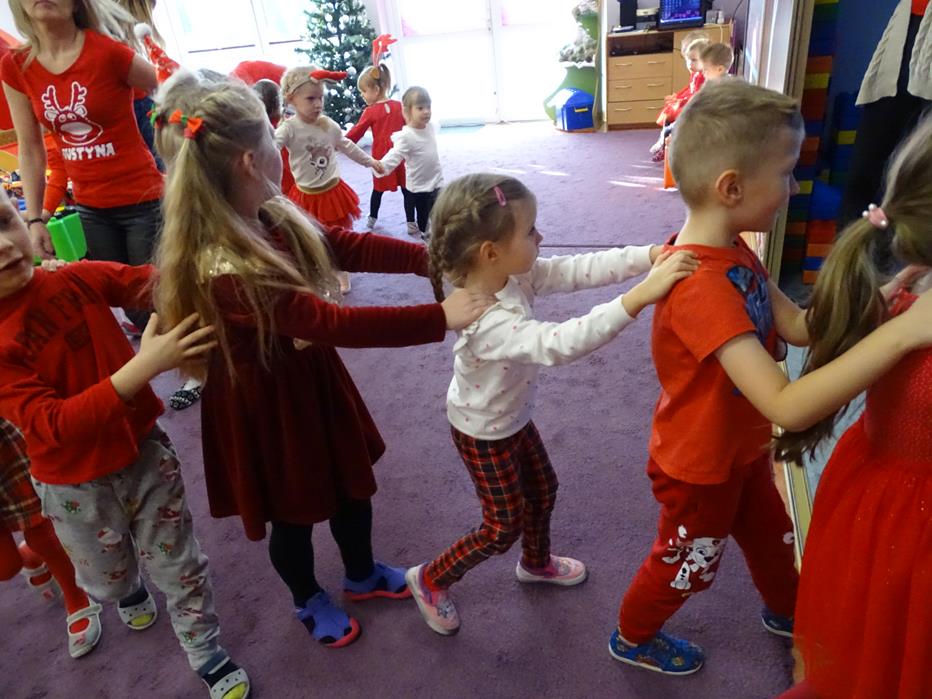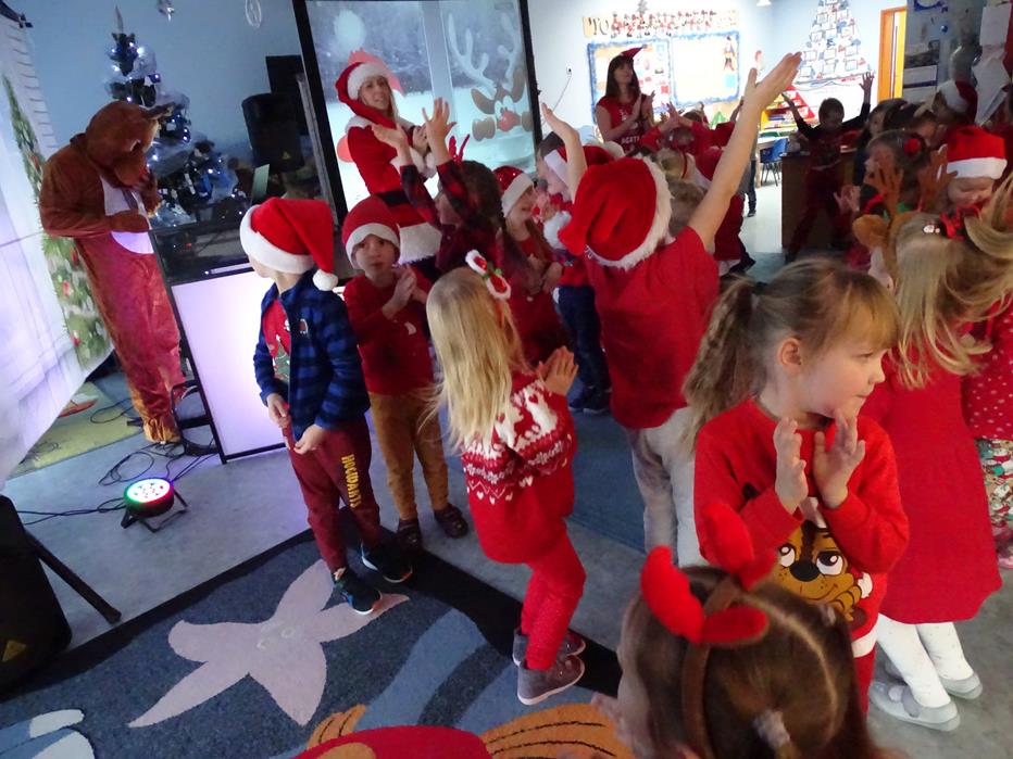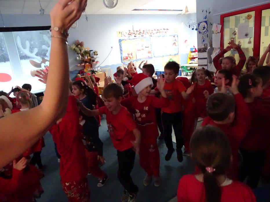 Zgodnie z tradycją 5 grudnia uroczyście obchodziliśmy w przedszkolu mikołajkowe święto. W tym dniu przedszkolaki zamieniły się w pomocników Mikołaja i przyszły do przedszkola w czerwonych czapeczkach i strojach. Już od rana zastanawiały się czy Mikołaj odwiedzi ich salę i czy przyniesie prezenty. Okazało się,że nie tylko Mikołaj odwiedził przedszkole, ale także Rudolf Czerwononosy i Miś polarny. Najpierw była super imprezka, a po przyjściu Mikołaja dzieci przywitały się z niezwykłym gościem i zaprezentowały piosenkę przygotowaną specjalnie dla Niego. Mikołaj był zachwycony i rozdał wszystkim dzieciom prezenty.