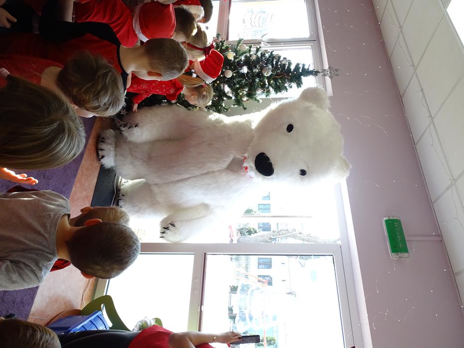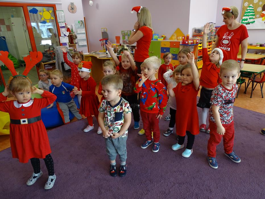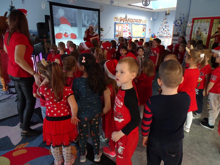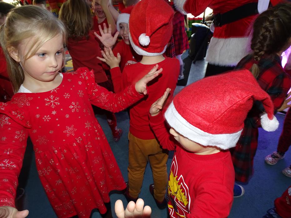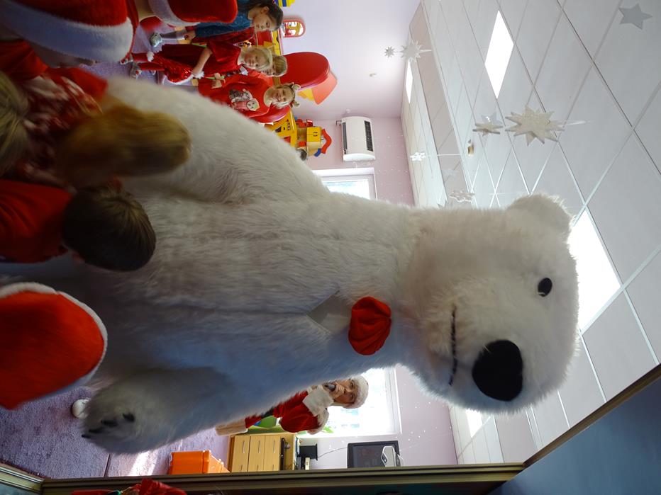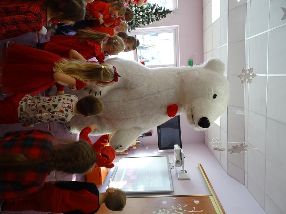 Zgodnie z tradycją 5 grudnia uroczyście obchodziliśmy w przedszkolu mikołajkowe święto. W tym dniu przedszkolaki zamieniły się w pomocników Mikołaja i przyszły do przedszkola w czerwonych czapeczkach i strojach. Już od rana zastanawiały się czy Mikołaj odwiedzi ich salę i czy przyniesie prezenty. Okazało się,że nie tylko Mikołaj odwiedził przedszkole, ale także Rudolf Czerwononosy i Miś polarny. Najpierw była super imprezka, a po przyjściu Mikołaja dzieci przywitały się z niezwykłym gościem i zaprezentowały piosenkę przygotowaną specjalnie dla Niego. Mikołaj był zachwycony i rozdał wszystkim dzieciom prezenty.