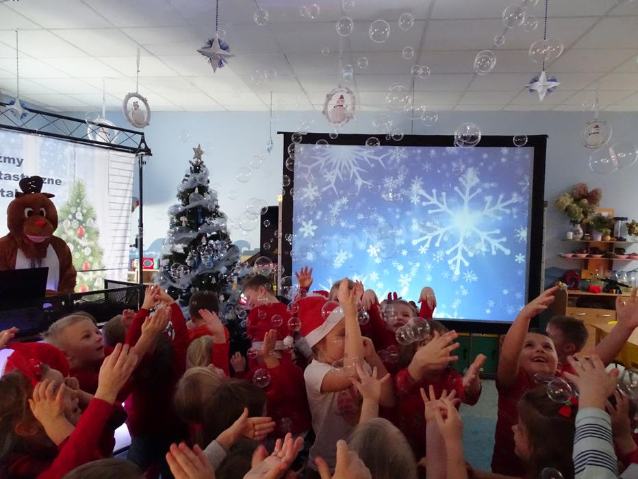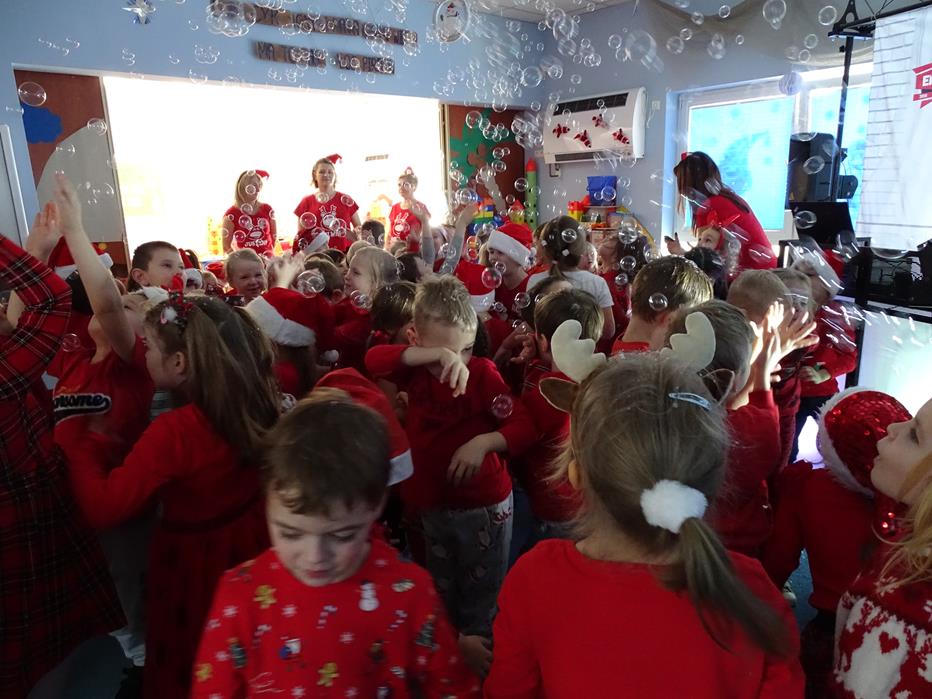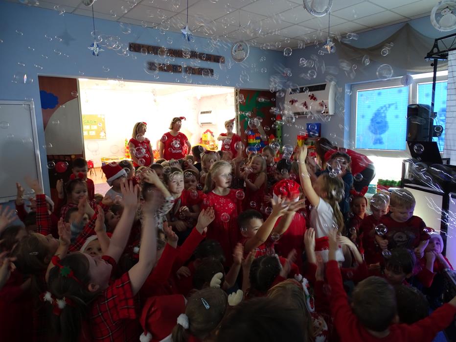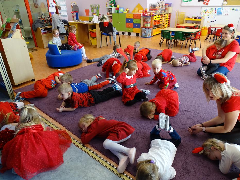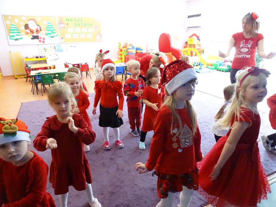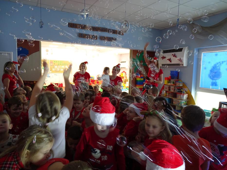 Zgodnie z tradycją 5 grudnia uroczyście obchodziliśmy w przedszkolu mikołajkowe święto. W tym dniu przedszkolaki zamieniły się w pomocników Mikołaja i przyszły do przedszkola w czerwonych czapeczkach i strojach. Już od rana zastanawiały się czy Mikołaj odwiedzi ich salę i czy przyniesie prezenty. Okazało się,że nie tylko Mikołaj odwiedził przedszkole, ale także Rudolf Czerwononosy i Miś polarny. Najpierw była super imprezka, a po przyjściu Mikołaja dzieci przywitały się z niezwykłym gościem i zaprezentowały piosenkę przygotowaną specjalnie dla Niego. Mikołaj był zachwycony i rozdał wszystkim dzieciom prezenty.
