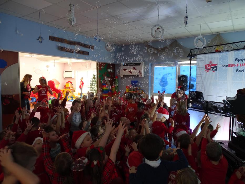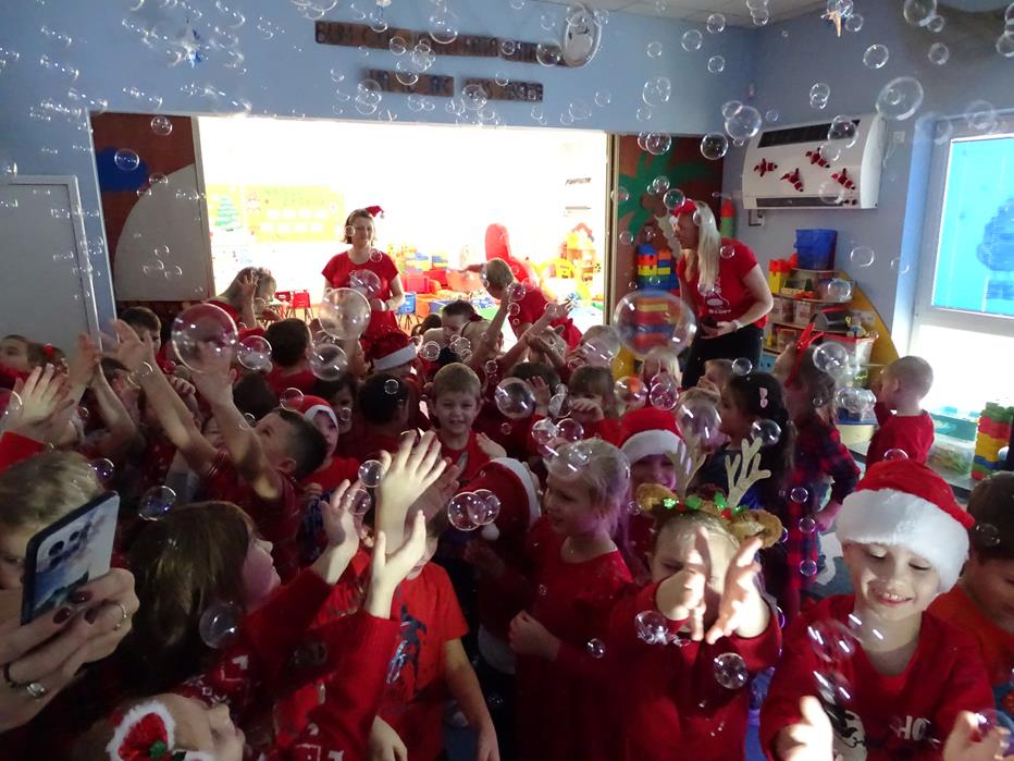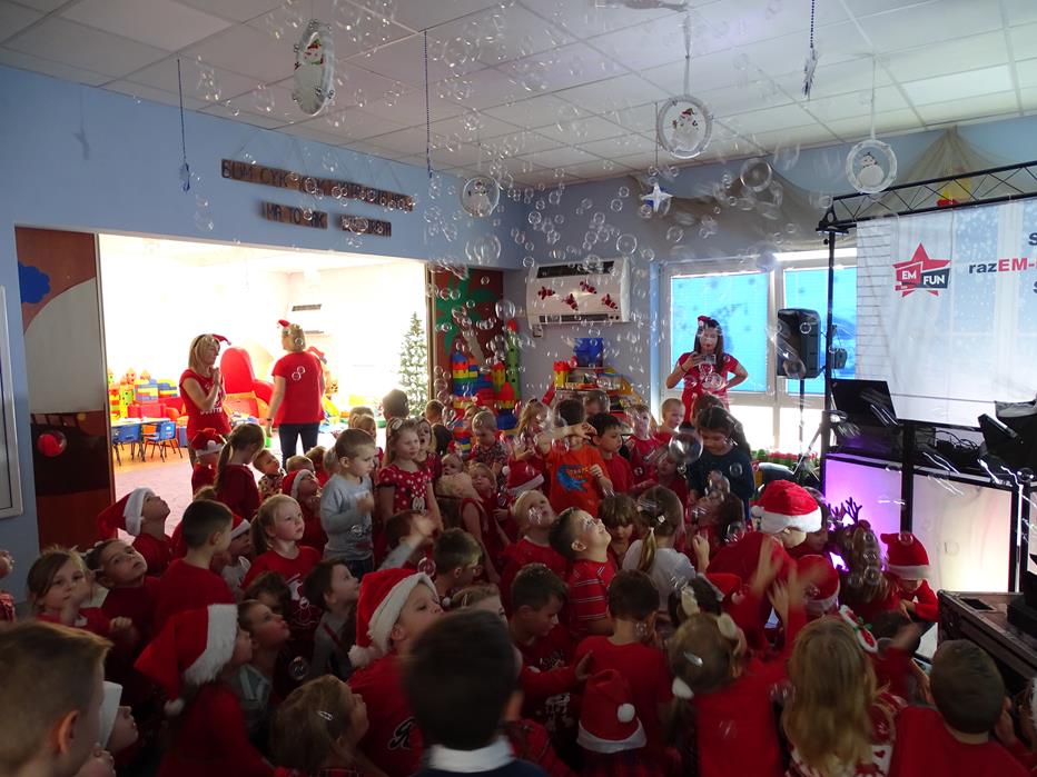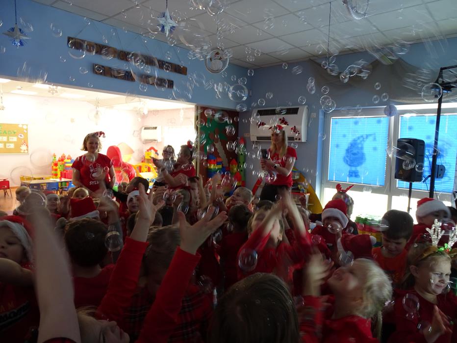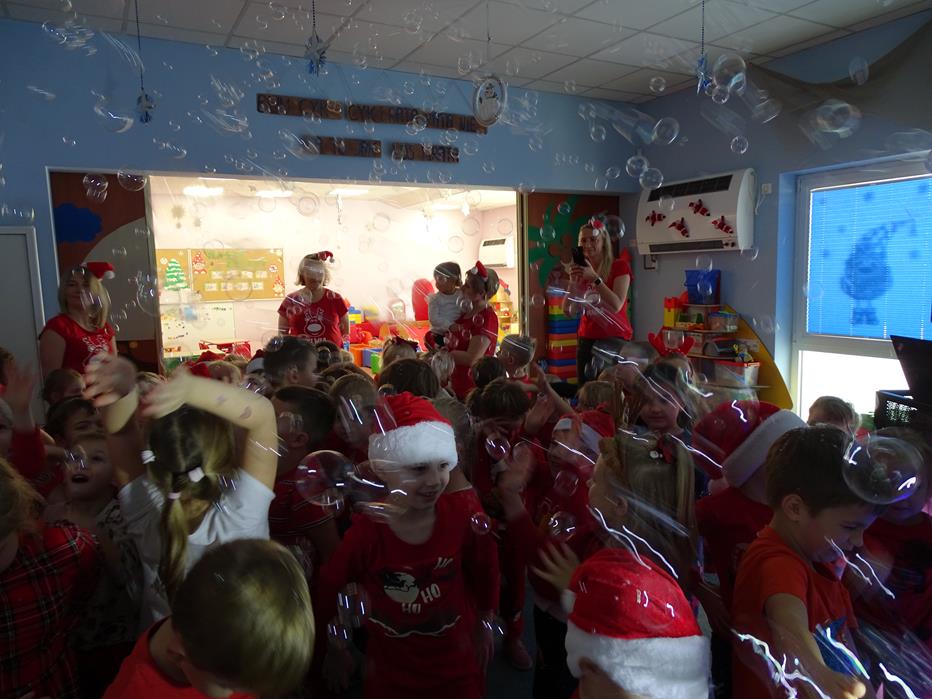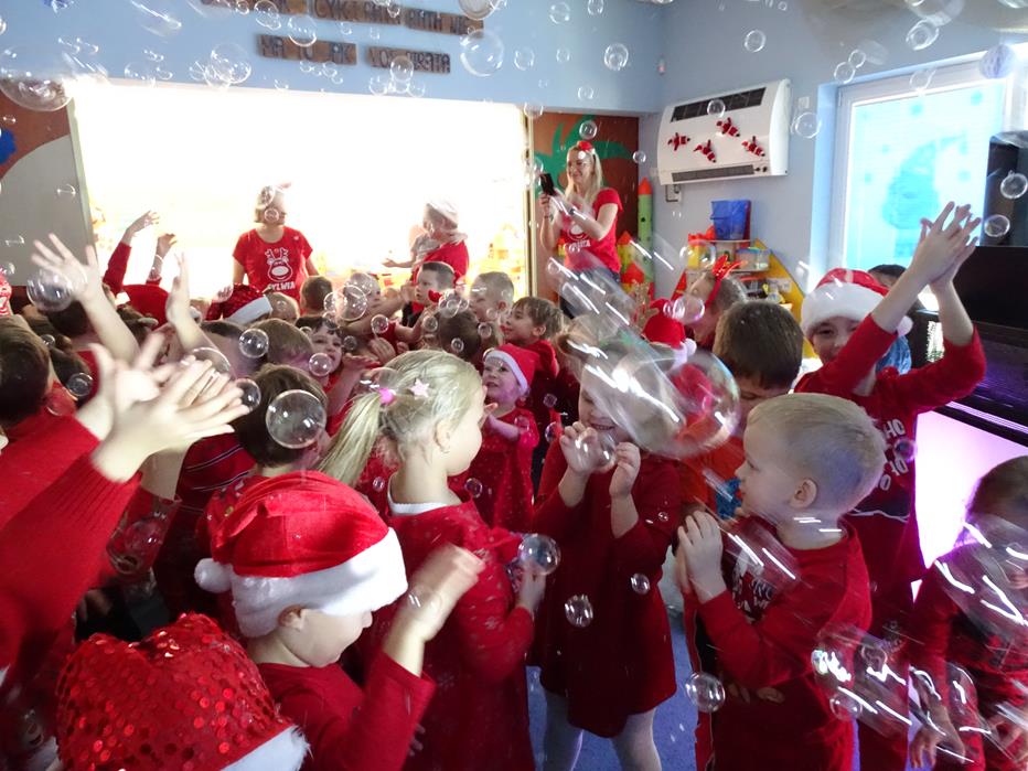 Zgodnie z tradycją 5 grudnia uroczyście obchodziliśmy w przedszkolu mikołajkowe święto. W tym dniu przedszkolaki zamieniły się w pomocników Mikołaja i przyszły do przedszkola w czerwonych czapeczkach i strojach. Już od rana zastanawiały się czy Mikołaj odwiedzi ich salę i czy przyniesie prezenty. Okazało się,że nie tylko Mikołaj odwiedził przedszkole, ale także Rudolf Czerwononosy i Miś polarny. Najpierw była super imprezka, a po przyjściu Mikołaja dzieci przywitały się z niezwykłym gościem i zaprezentowały piosenkę przygotowaną specjalnie dla Niego. Mikołaj był zachwycony i rozdał wszystkim dzieciom prezenty.