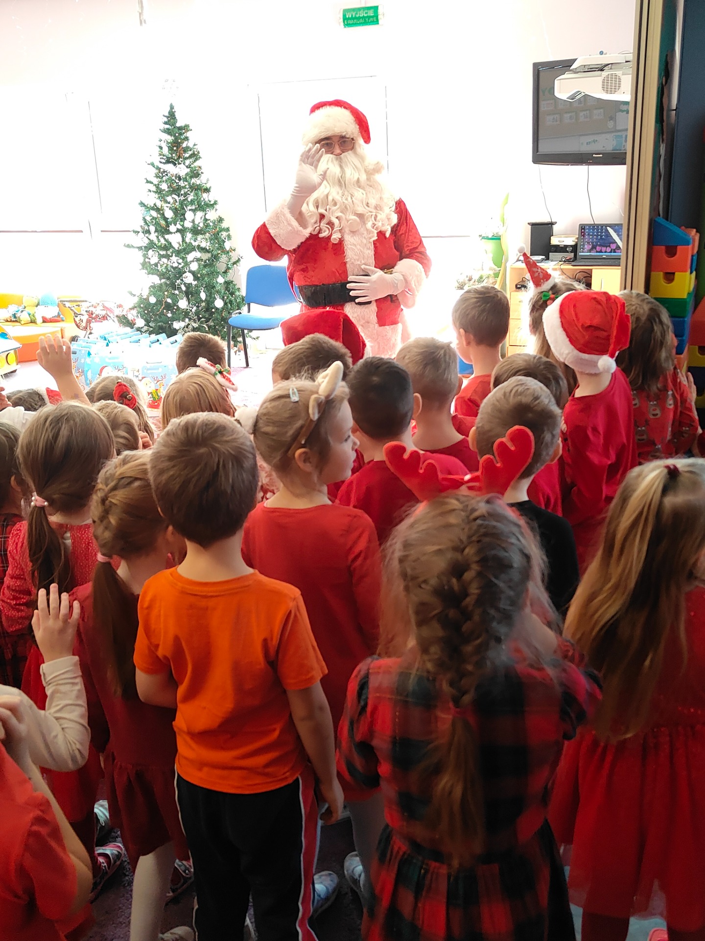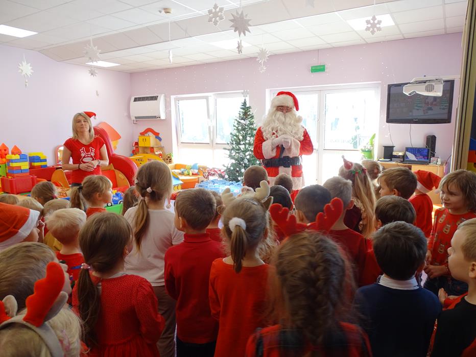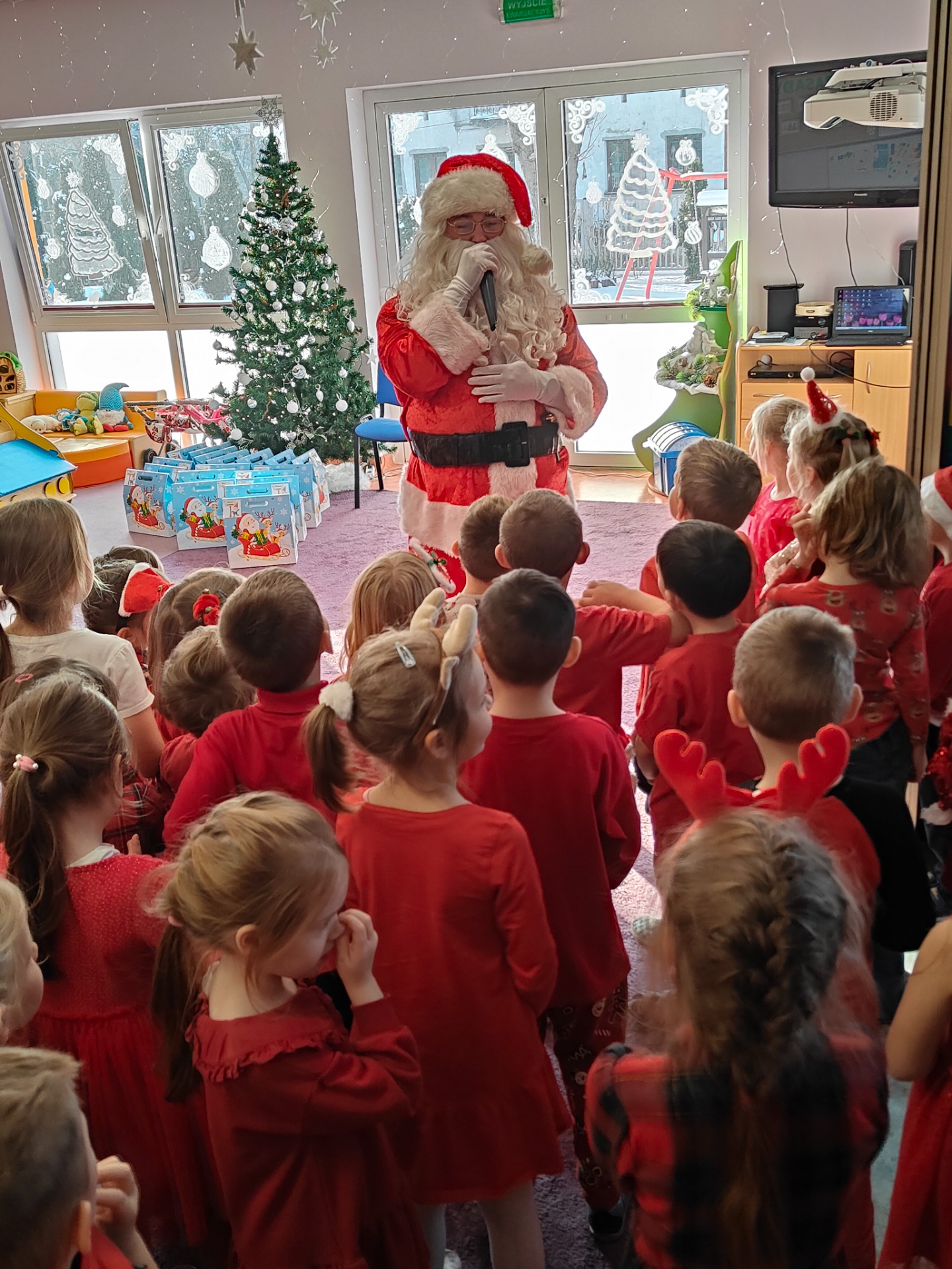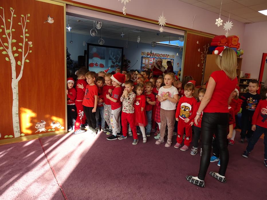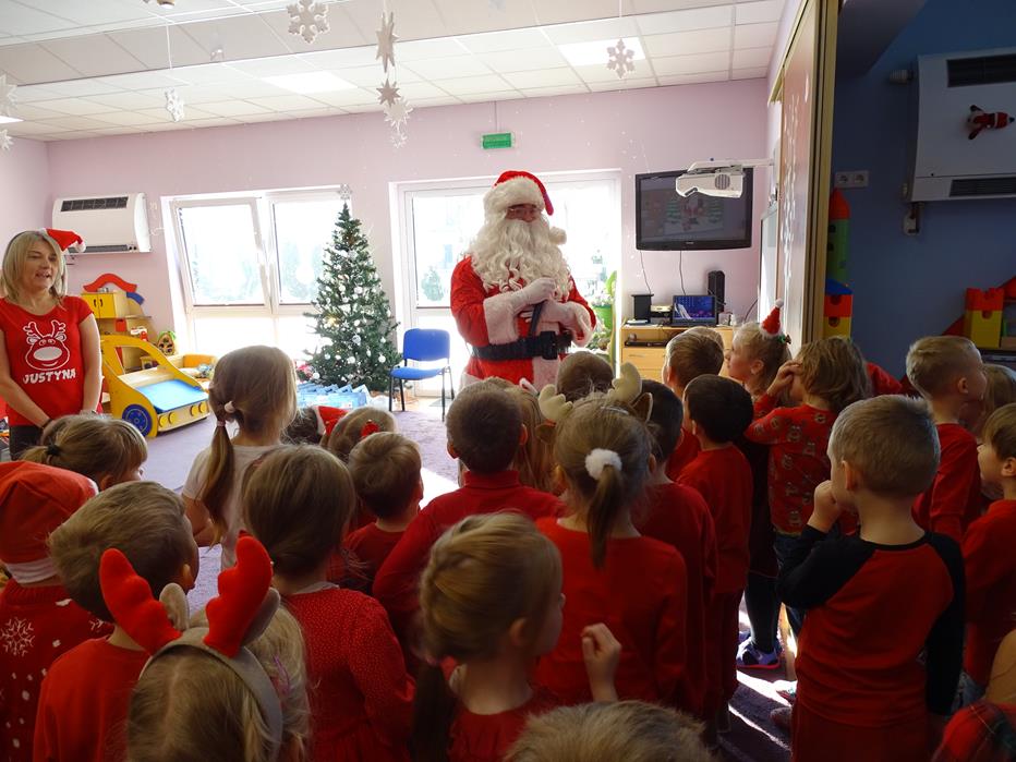 Zgodnie z tradycją 5 grudnia uroczyście obchodziliśmy w przedszkolu mikołajkowe święto. W tym dniu przedszkolaki zamieniły się w pomocników Mikołaja i przyszły do przedszkola w czerwonych czapeczkach i strojach. Już od rana zastanawiały się czy Mikołaj odwiedzi ich salę i czy przyniesie prezenty. Okazało się,że nie tylko Mikołaj odwiedził przedszkole, ale także Rudolf Czerwononosy i Miś polarny. Najpierw była super imprezka, a po przyjściu Mikołaja dzieci przywitały się z niezwykłym gościem i zaprezentowały piosenkę przygotowaną specjalnie dla Niego. Mikołaj był zachwycony i rozdał wszystkim dzieciom prezenty.