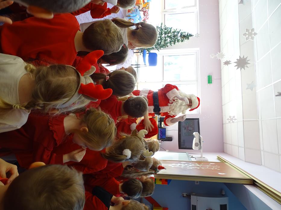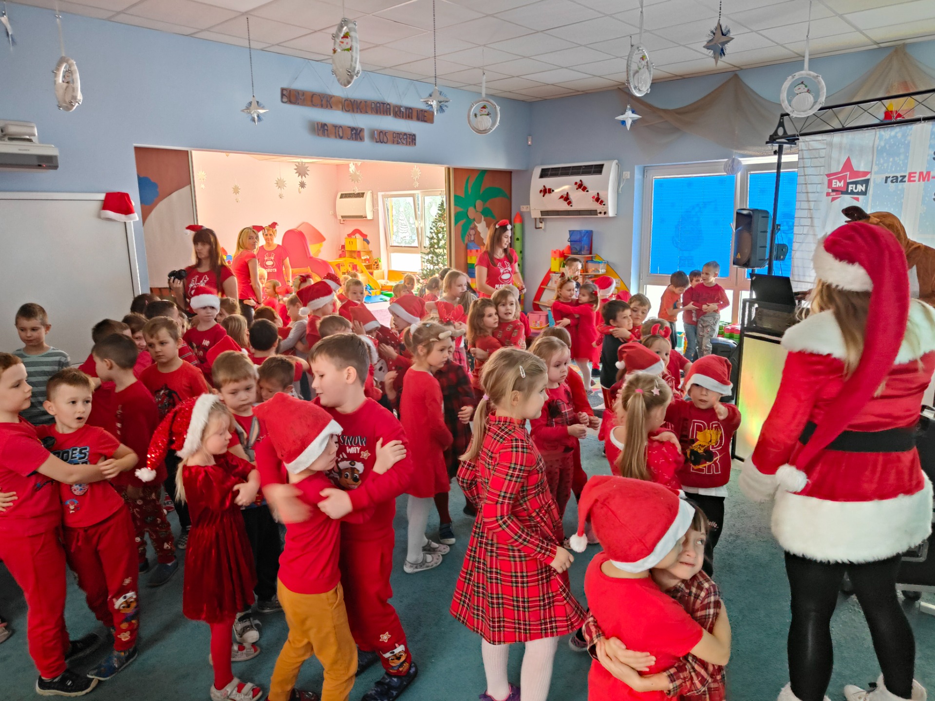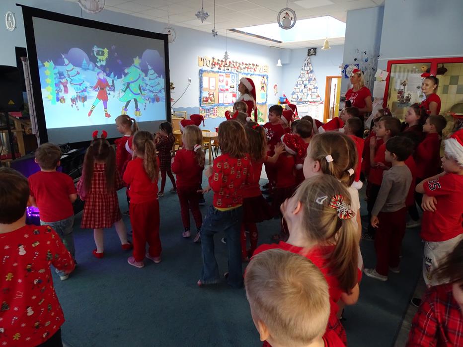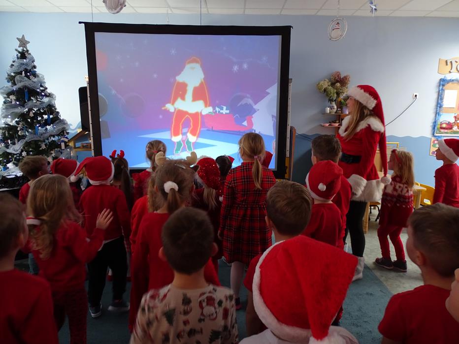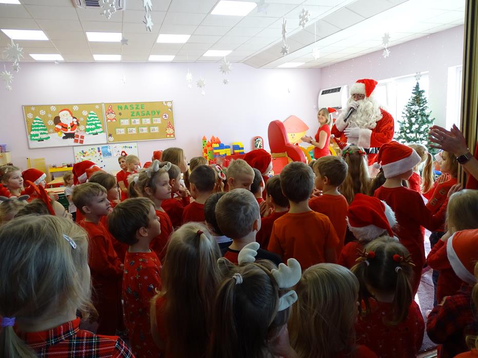 Zgodnie z tradycją 5 grudnia uroczyście obchodziliśmy w przedszkolu mikołajkowe święto. W tym dniu przedszkolaki zamieniły się w pomocników Mikołaja i przyszły do przedszkola w czerwonych czapeczkach i strojach. Już od rana zastanawiały się czy Mikołaj odwiedzi ich salę i czy przyniesie prezenty. Okazało się,że nie tylko Mikołaj odwiedził przedszkole, ale także Rudolf Czerwononosy i Miś polarny. Najpierw była super imprezka, a po przyjściu Mikołaja dzieci przywitały się z niezwykłym gościem i zaprezentowały piosenkę przygotowaną specjalnie dla Niego. Mikołaj był zachwycony i rozdał wszystkim dzieciom prezenty.