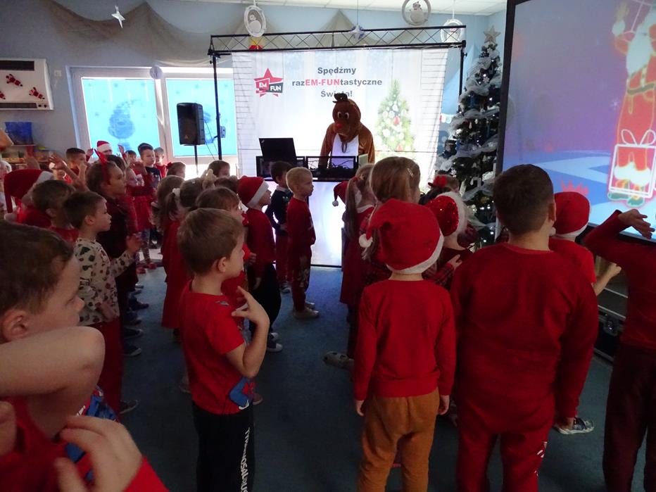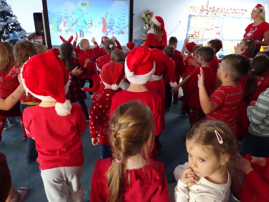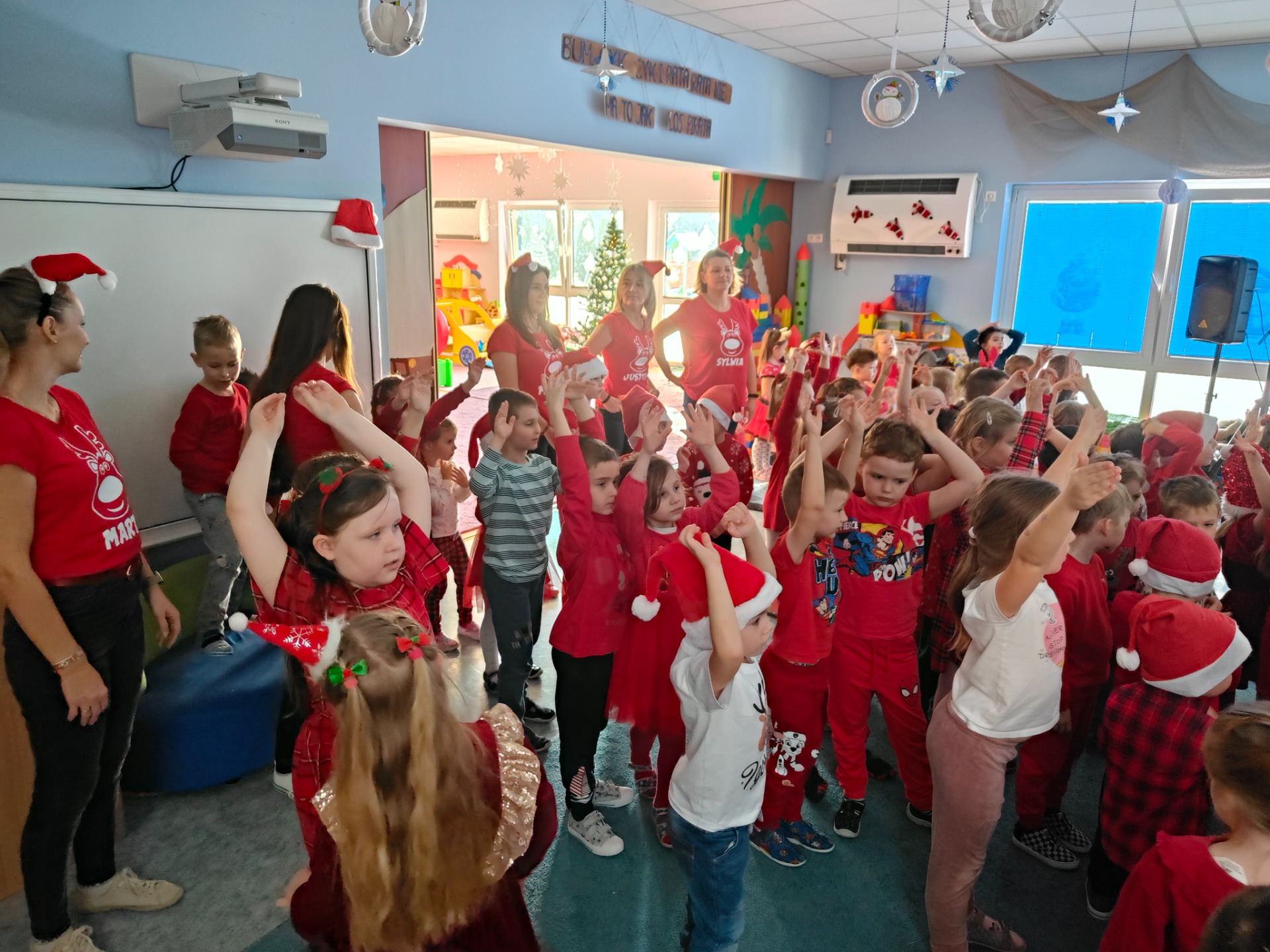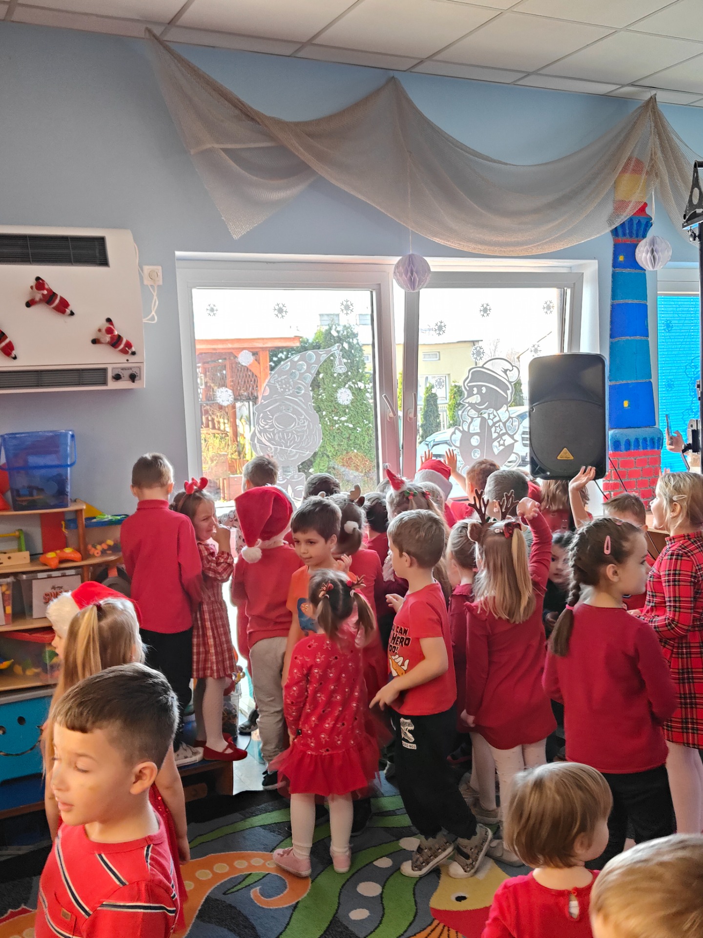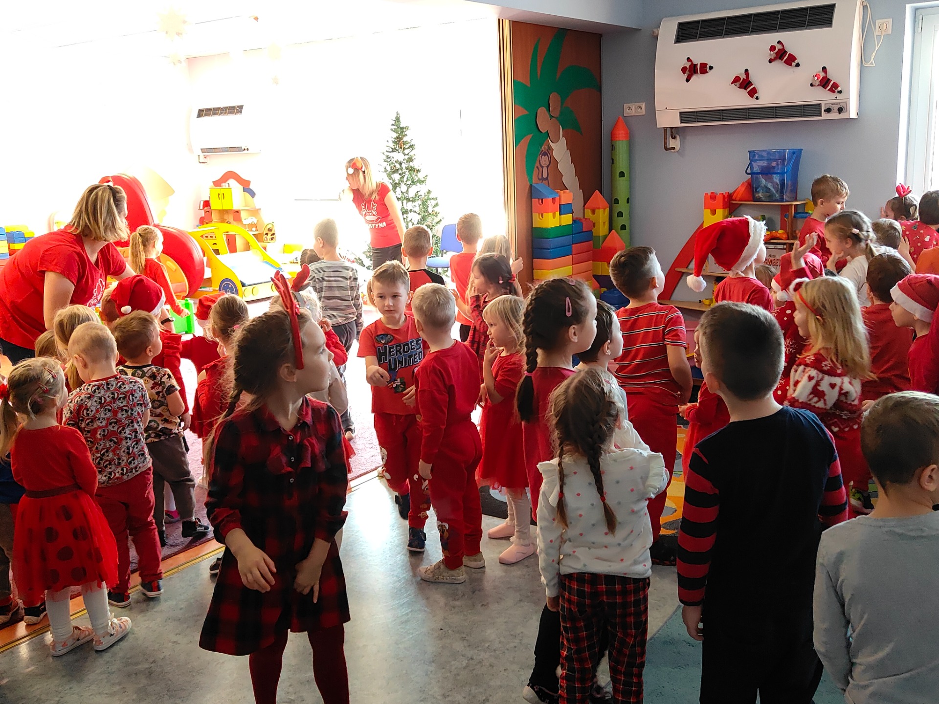 Zgodnie z tradycją 5 grudnia uroczyście obchodziliśmy w przedszkolu mikołajkowe święto. W tym dniu przedszkolaki zamieniły się w pomocników Mikołaja i przyszły do przedszkola w czerwonych czapeczkach i strojach. Już od rana zastanawiały się czy Mikołaj odwiedzi ich salę i czy przyniesie prezenty. Okazało się,że nie tylko Mikołaj odwiedził przedszkole, ale także Rudolf Czerwononosy i Miś polarny. Najpierw była super imprezka, a po przyjściu Mikołaja dzieci przywitały się z niezwykłym gościem i zaprezentowały piosenkę przygotowaną specjalnie dla Niego. Mikołaj był zachwycony i rozdał wszystkim dzieciom prezenty.