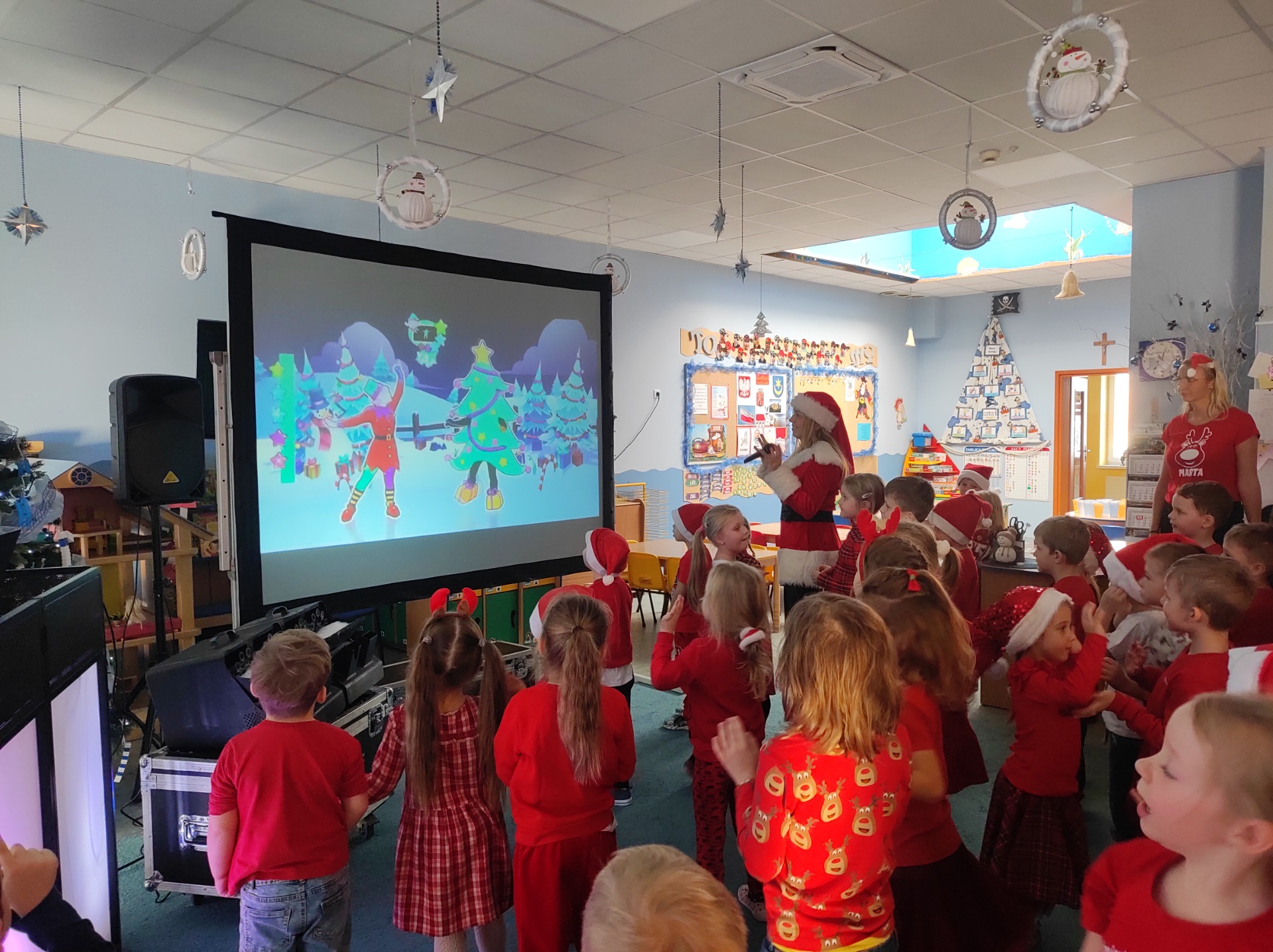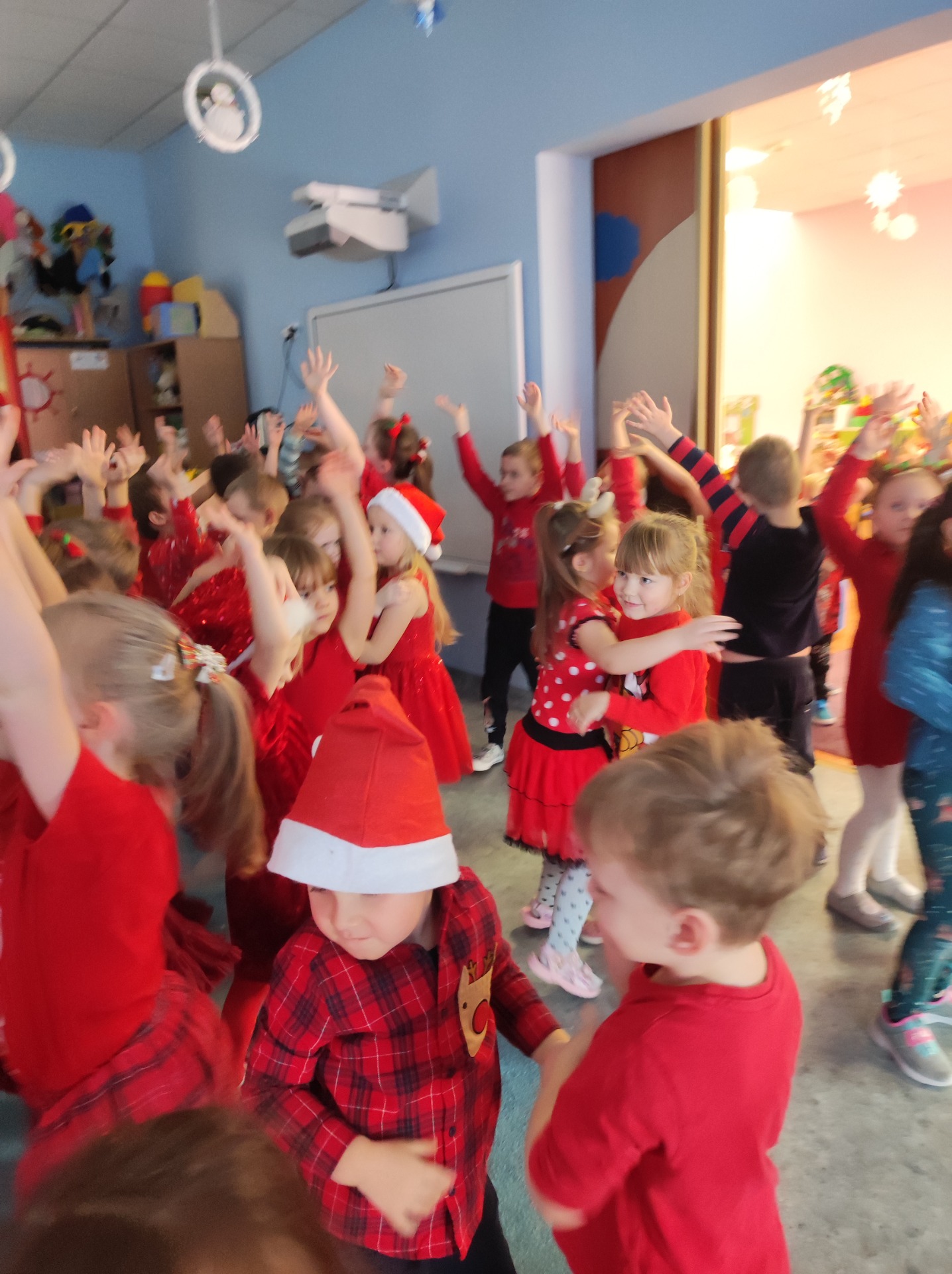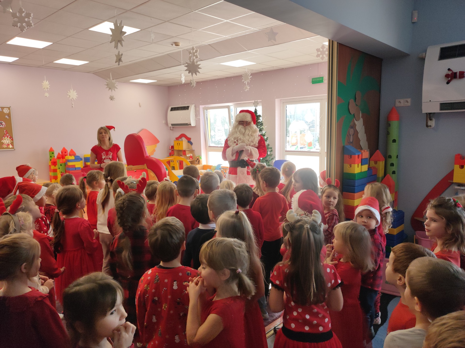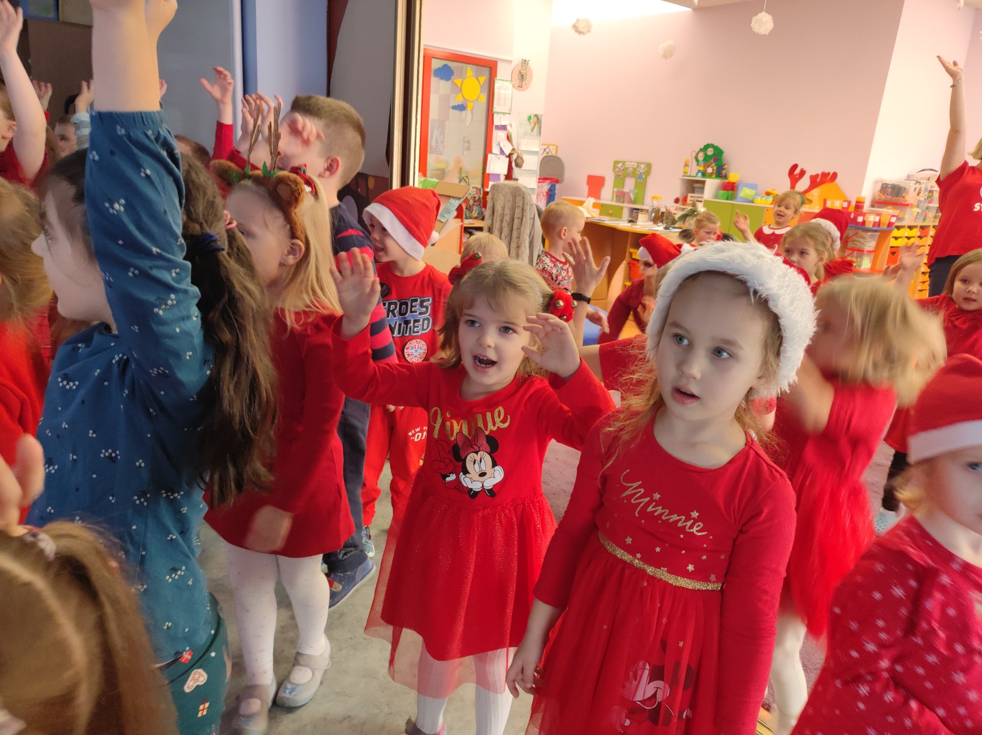 Zgodnie z tradycją 5 grudnia uroczyście obchodziliśmy w przedszkolu mikołajkowe święto. W tym dniu przedszkolaki zamieniły się w pomocników Mikołaja i przyszły do przedszkola w czerwonych czapeczkach i strojach. Już od rana zastanawiały się czy Mikołaj odwiedzi ich salę i czy przyniesie prezenty. Okazało się,że nie tylko Mikołaj odwiedził przedszkole, ale także Rudolf Czerwononosy i Miś polarny. Najpierw była super imprezka, a po przyjściu Mikołaja dzieci przywitały się z niezwykłym gościem i zaprezentowały piosenkę przygotowaną specjalnie dla Niego. Mikołaj był zachwycony i rozdał wszystkim dzieciom prezenty.