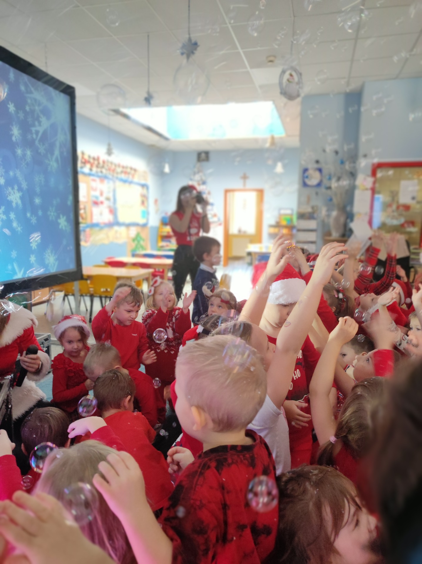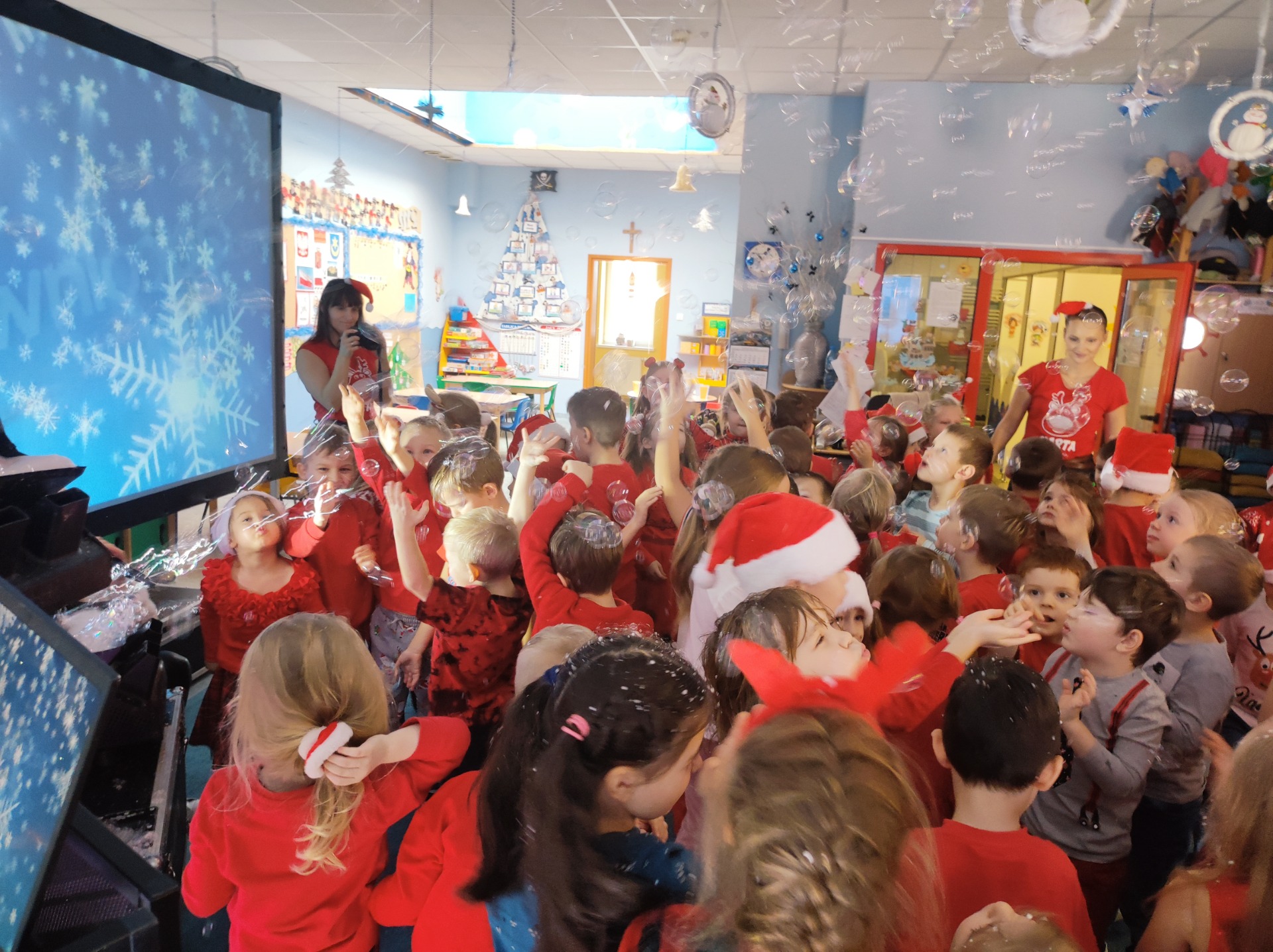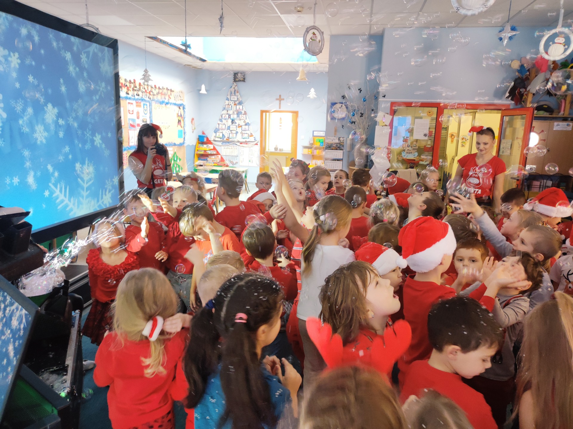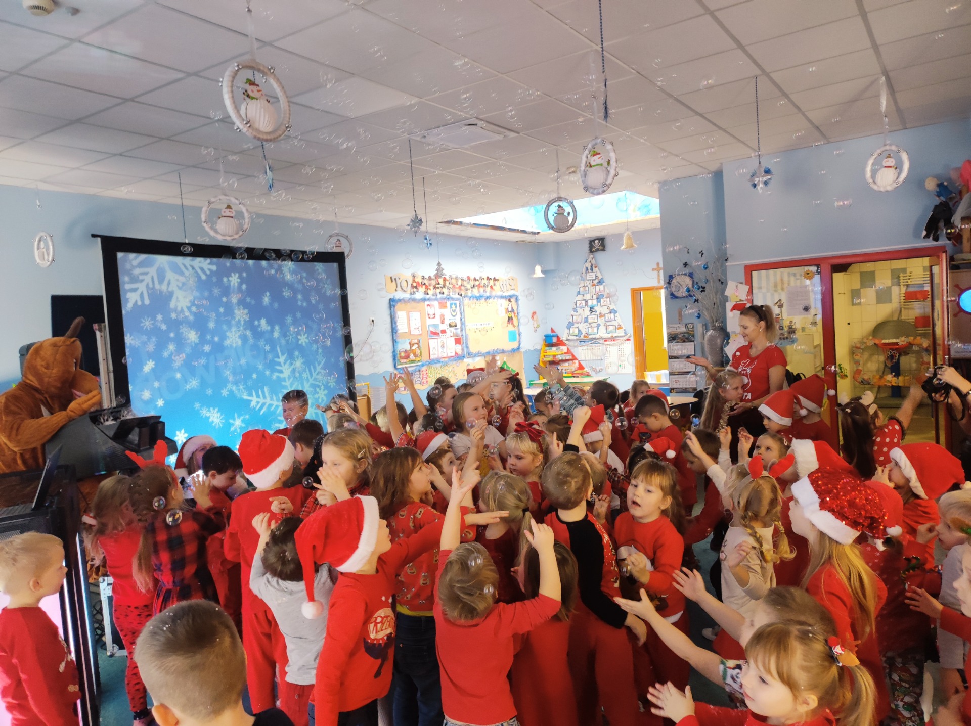 Zgodnie z tradycją 5 grudnia uroczyście obchodziliśmy w przedszkolu mikołajkowe święto. W tym dniu przedszkolaki zamieniły się w pomocników Mikołaja i przyszły do przedszkola w czerwonych czapeczkach i strojach. Już od rana zastanawiały się czy Mikołaj odwiedzi ich salę i czy przyniesie prezenty. Okazało się,że nie tylko Mikołaj odwiedził przedszkole, ale także Rudolf Czerwononosy i Miś polarny. Najpierw była super imprezka, a po przyjściu Mikołaja dzieci przywitały się z niezwykłym gościem i zaprezentowały piosenkę przygotowaną specjalnie dla Niego. Mikołaj był zachwycony i rozdał wszystkim dzieciom prezenty.