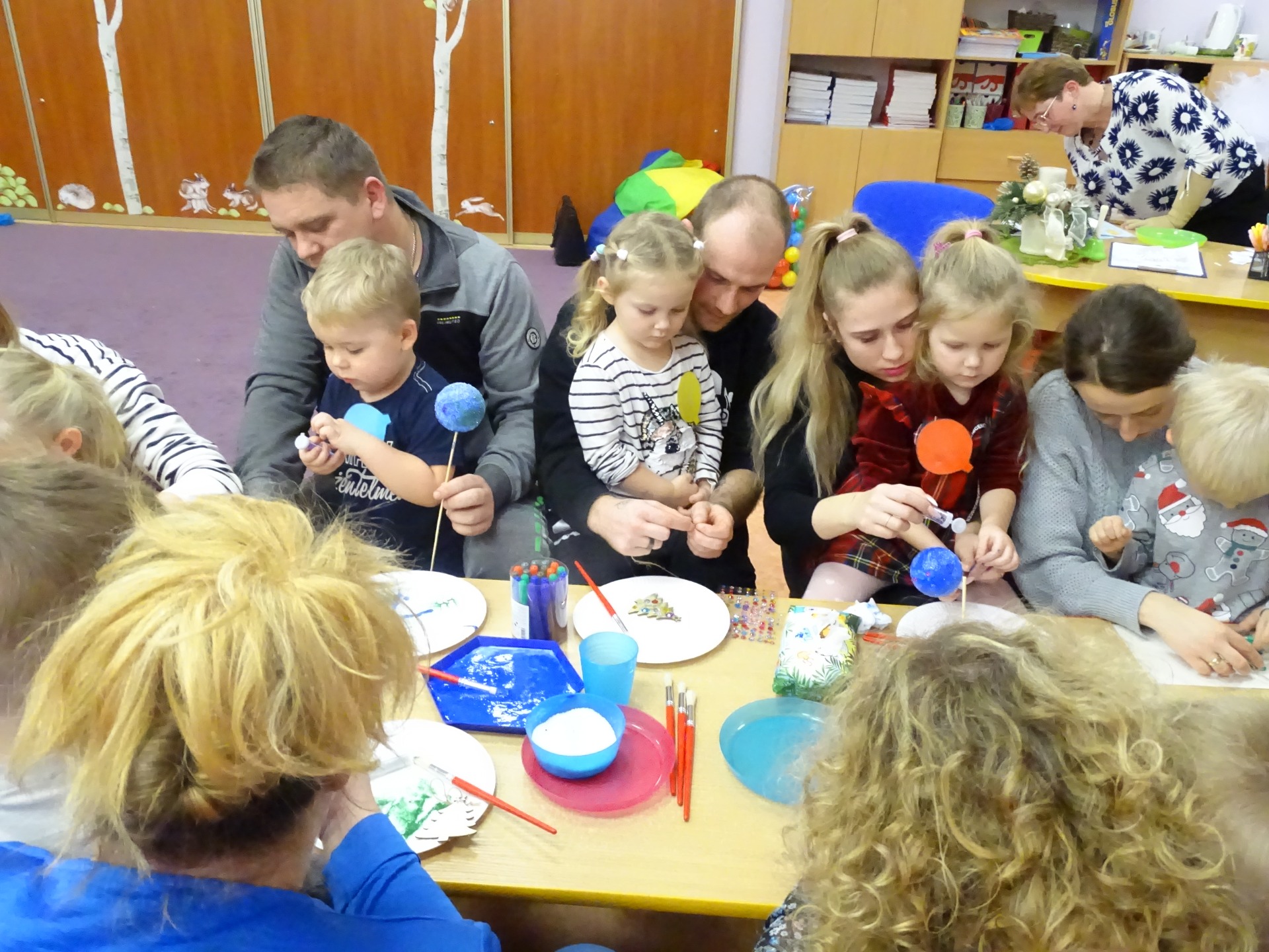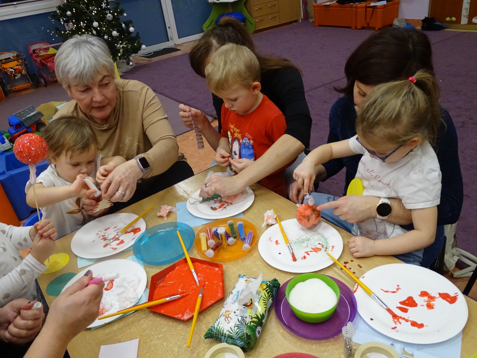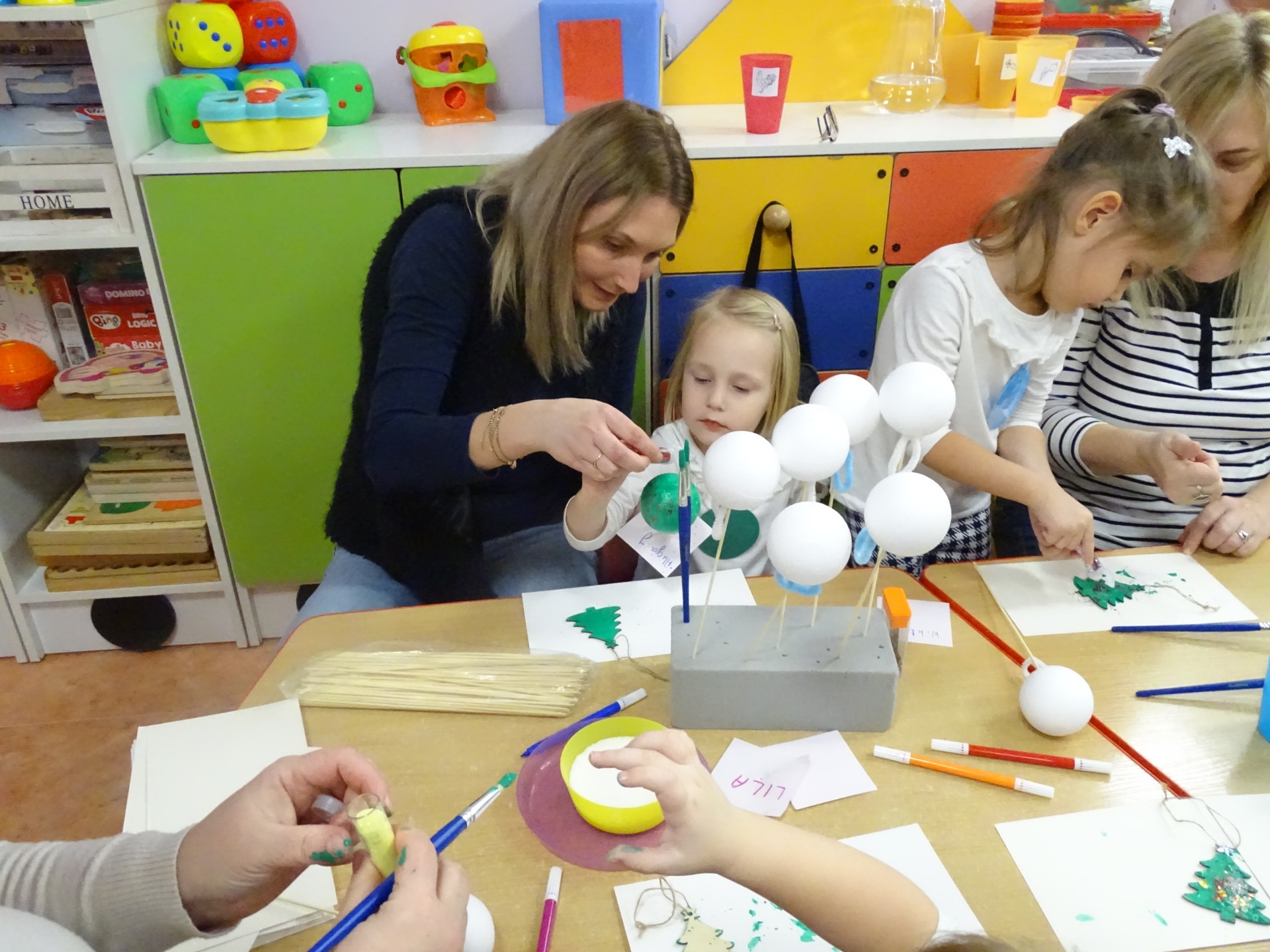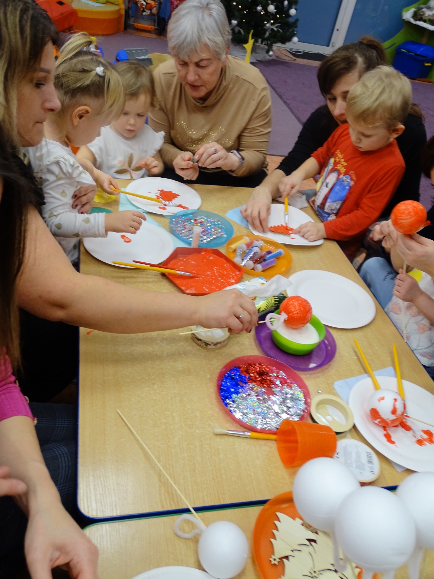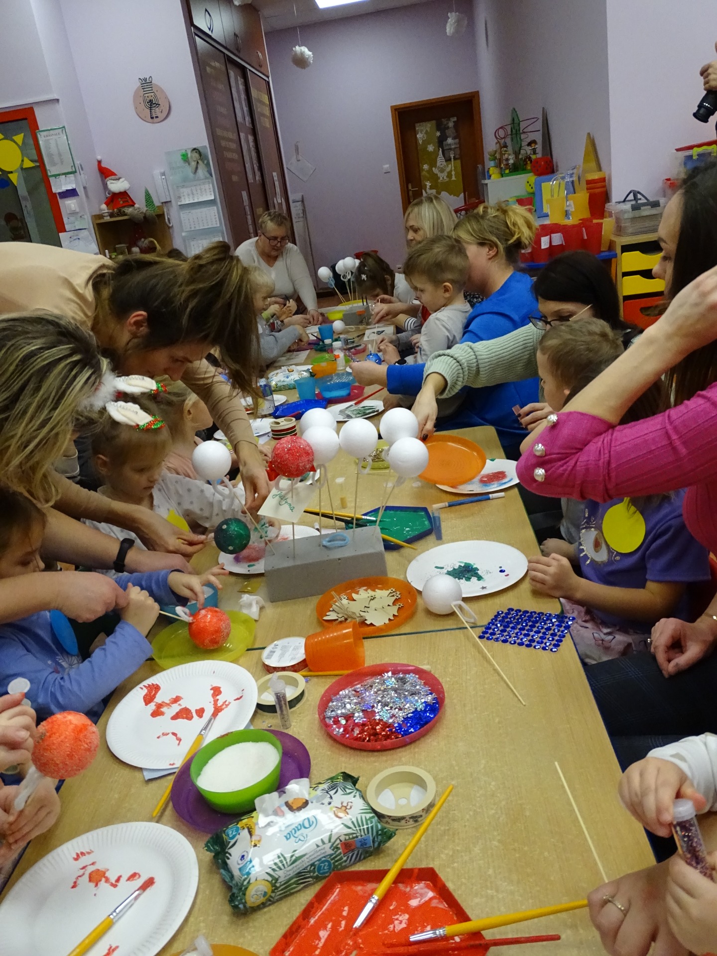 W dniu 13 grudnia dzieci i rodzice z grupy Krasnale spotkali się, by wspólnie bawić się w świątecznej atmosferze. Częścią zajęć były warsztaty plastyczne. Każde dziecko wykonało z pomocą rodzica choinkowe ozdoby. Był to bardzo miło spędzony czas.