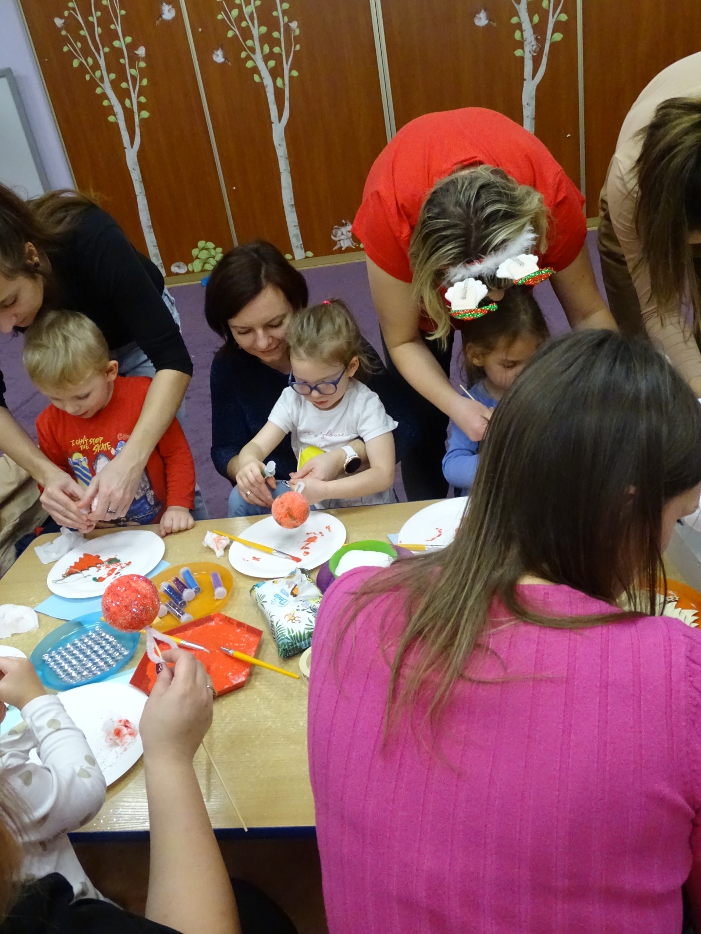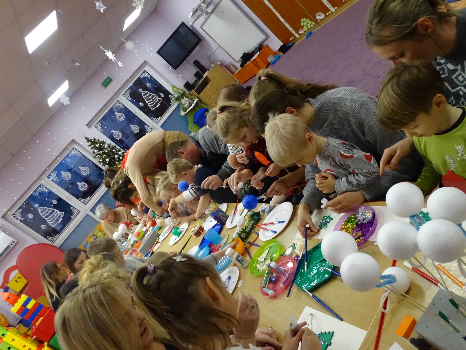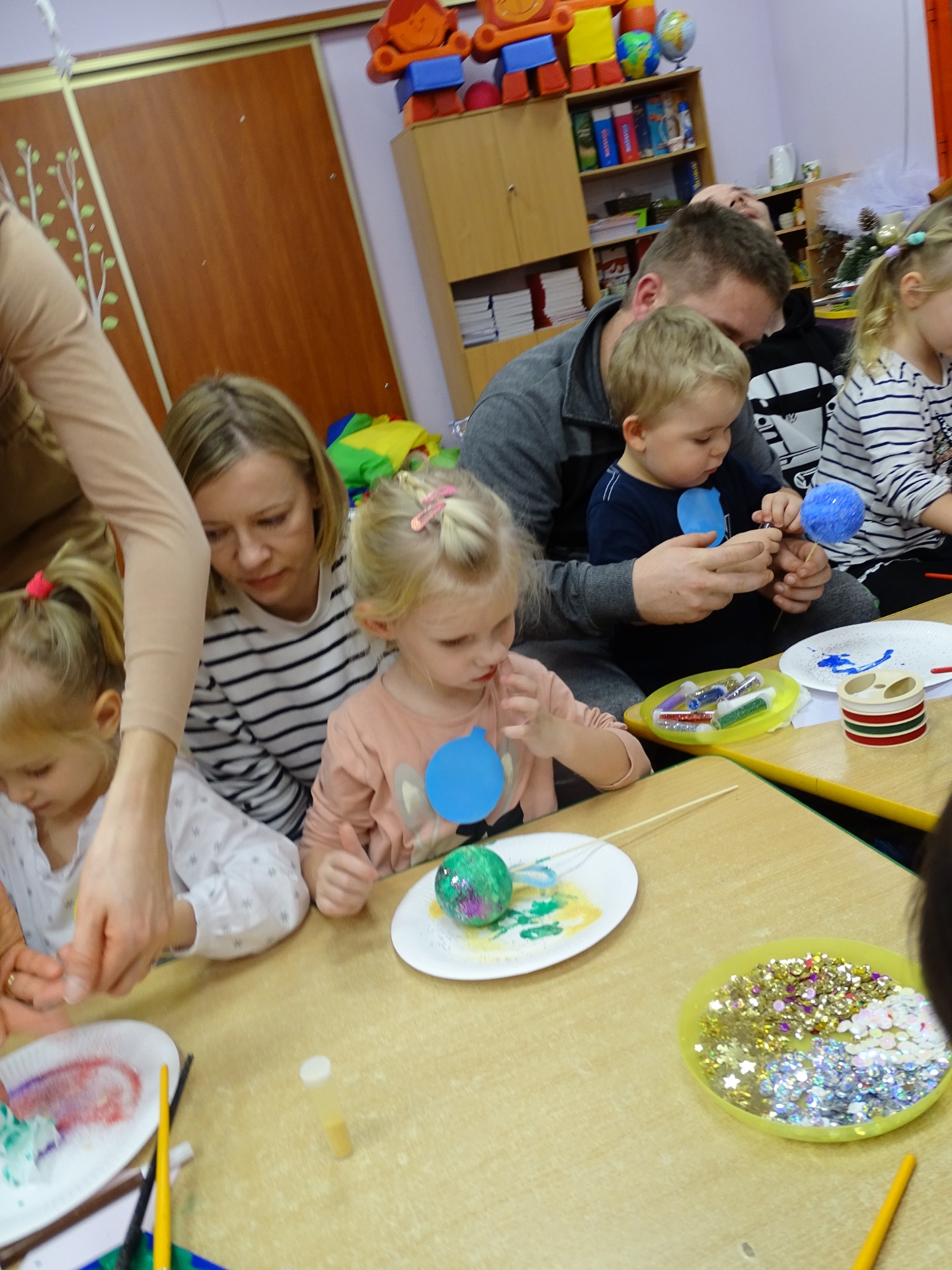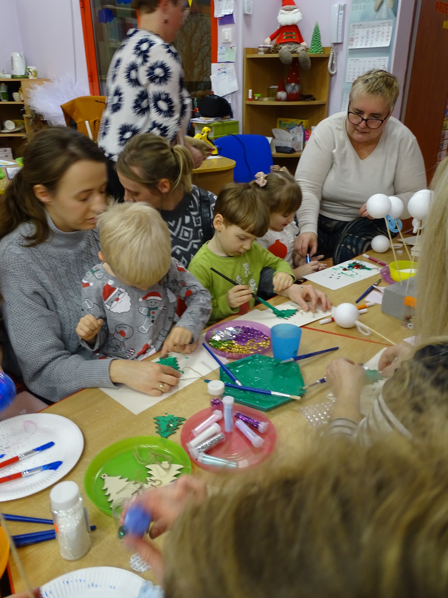 W dniu 13 grudnia dzieci i rodzice z grupy Krasnale spotkali się, by wspólnie bawić się w świątecznej atmosferze. Częścią zajęć były warsztaty plastyczne. Każde dziecko wykonało z pomocą rodzica choinkowe ozdoby. Był to bardzo miło spędzony czas.