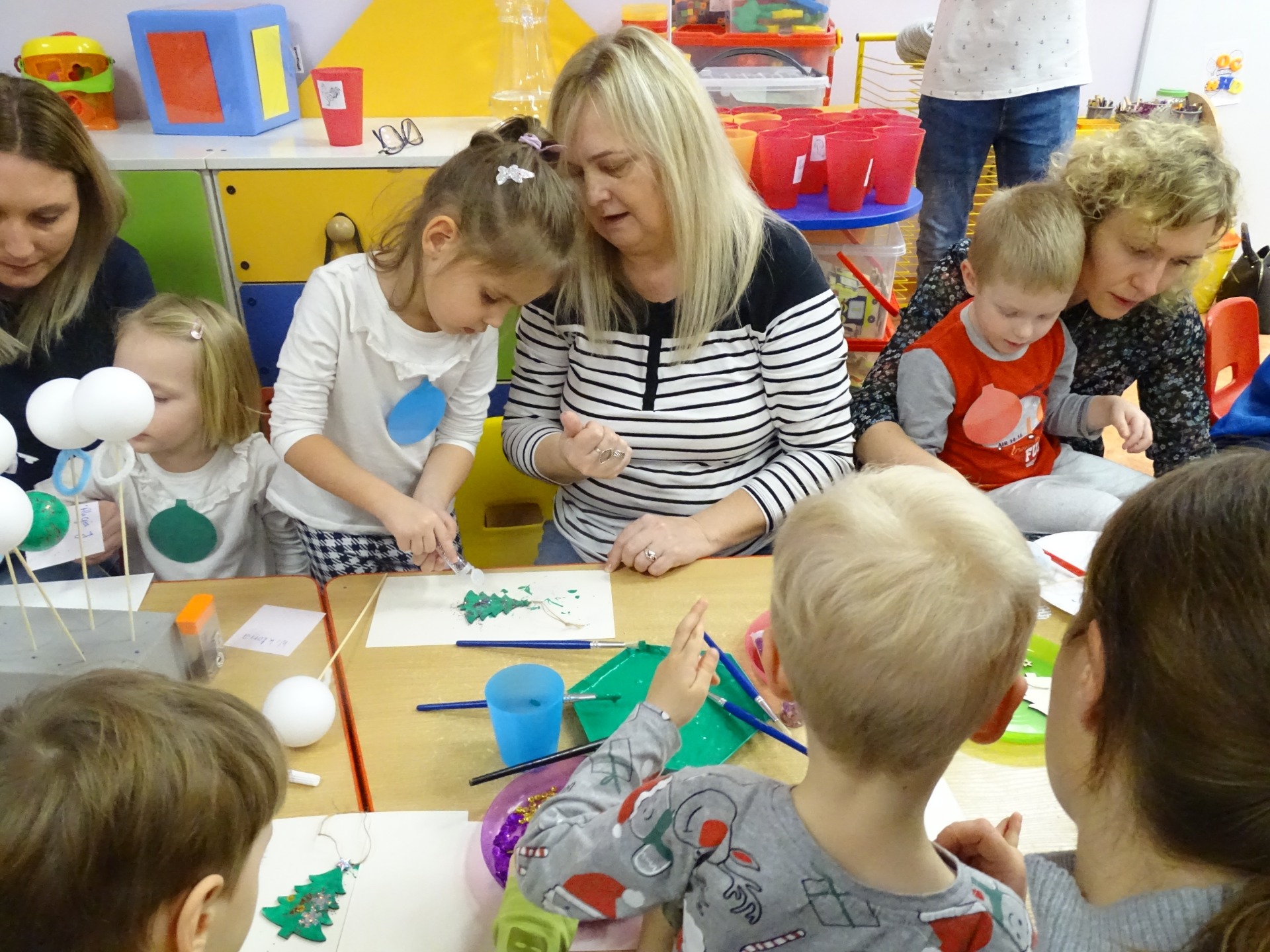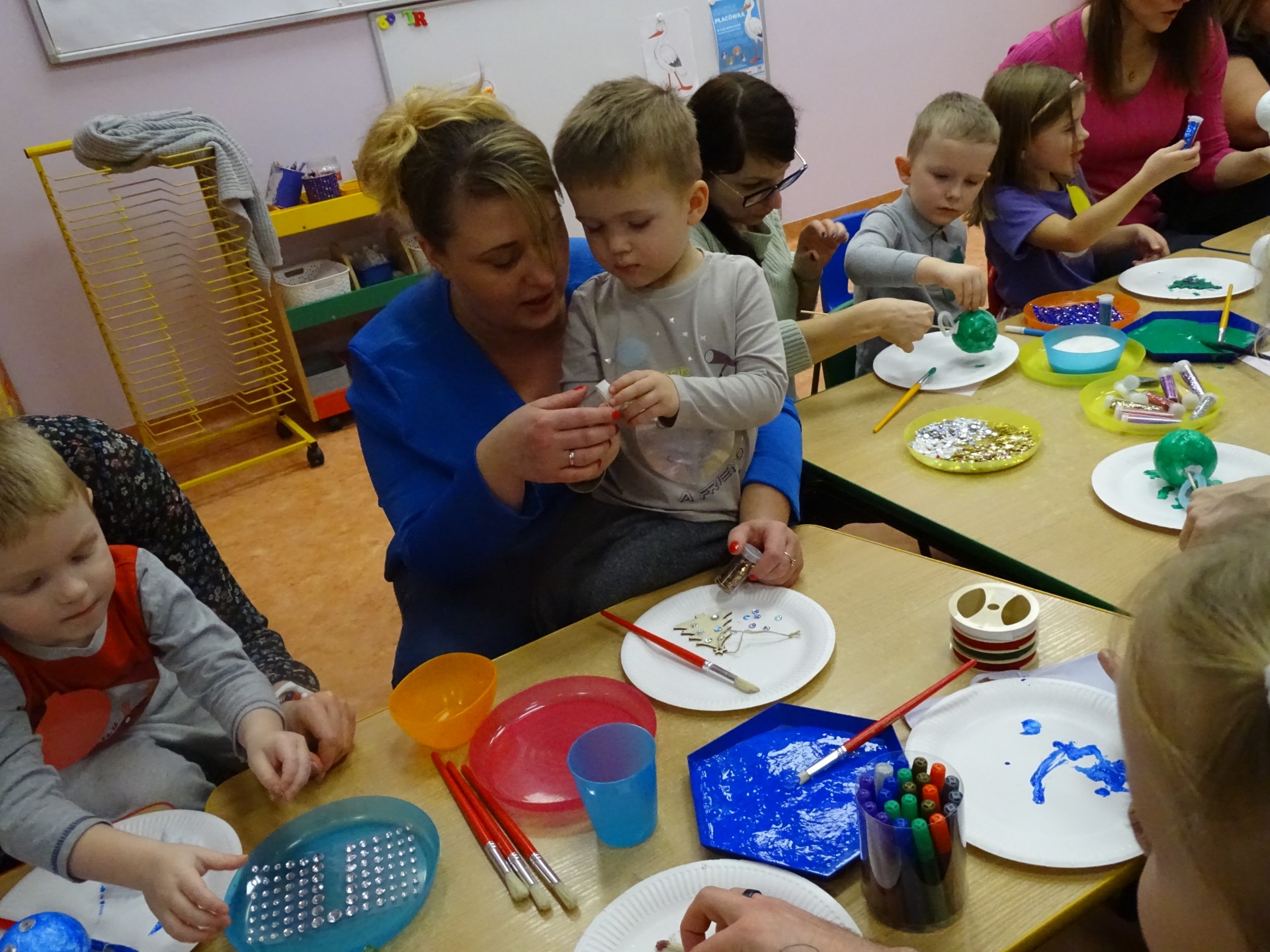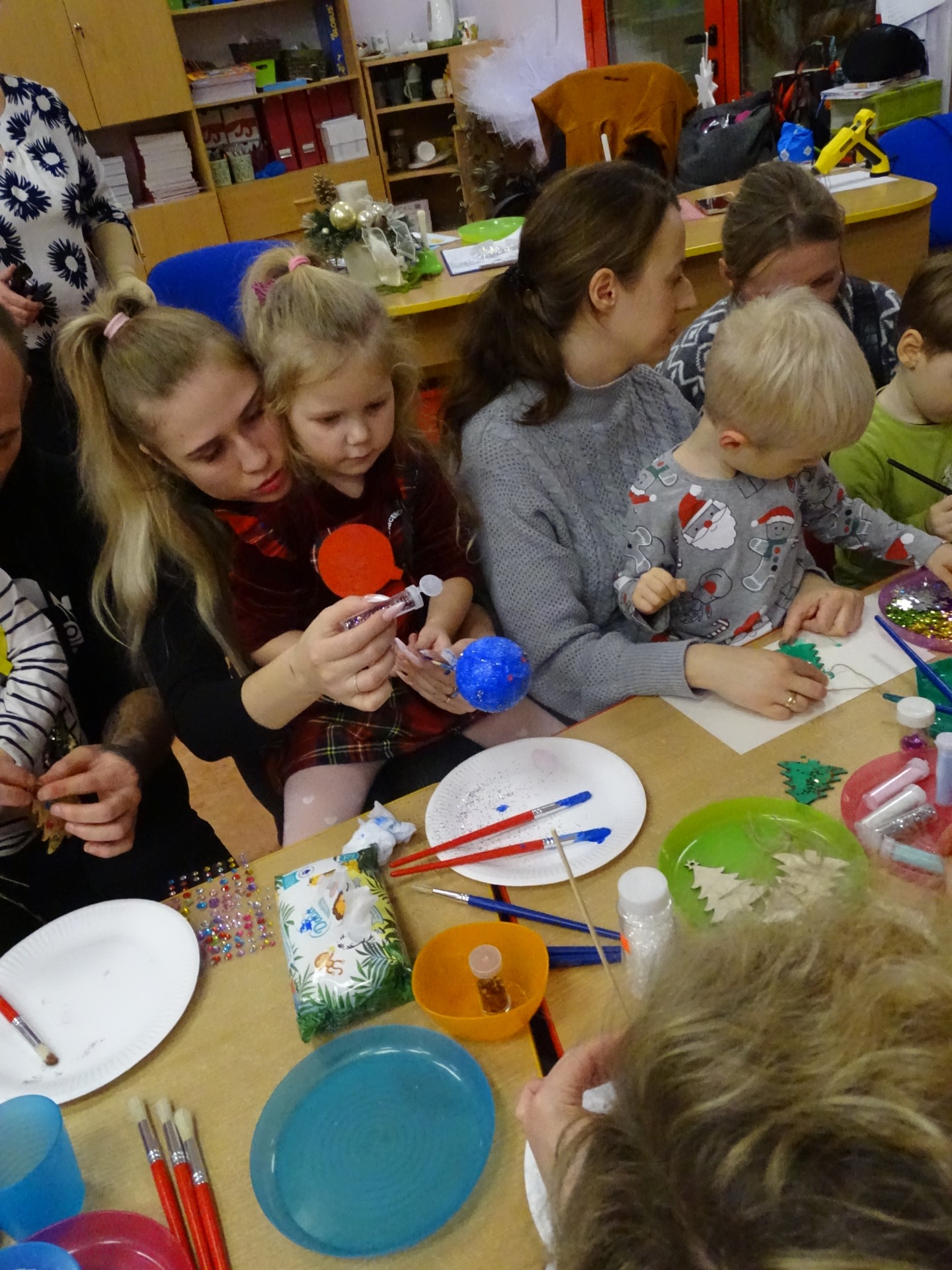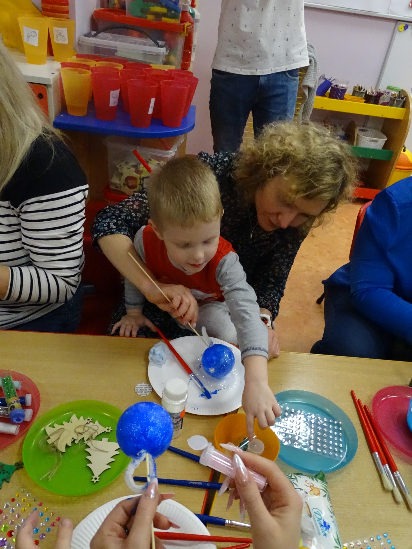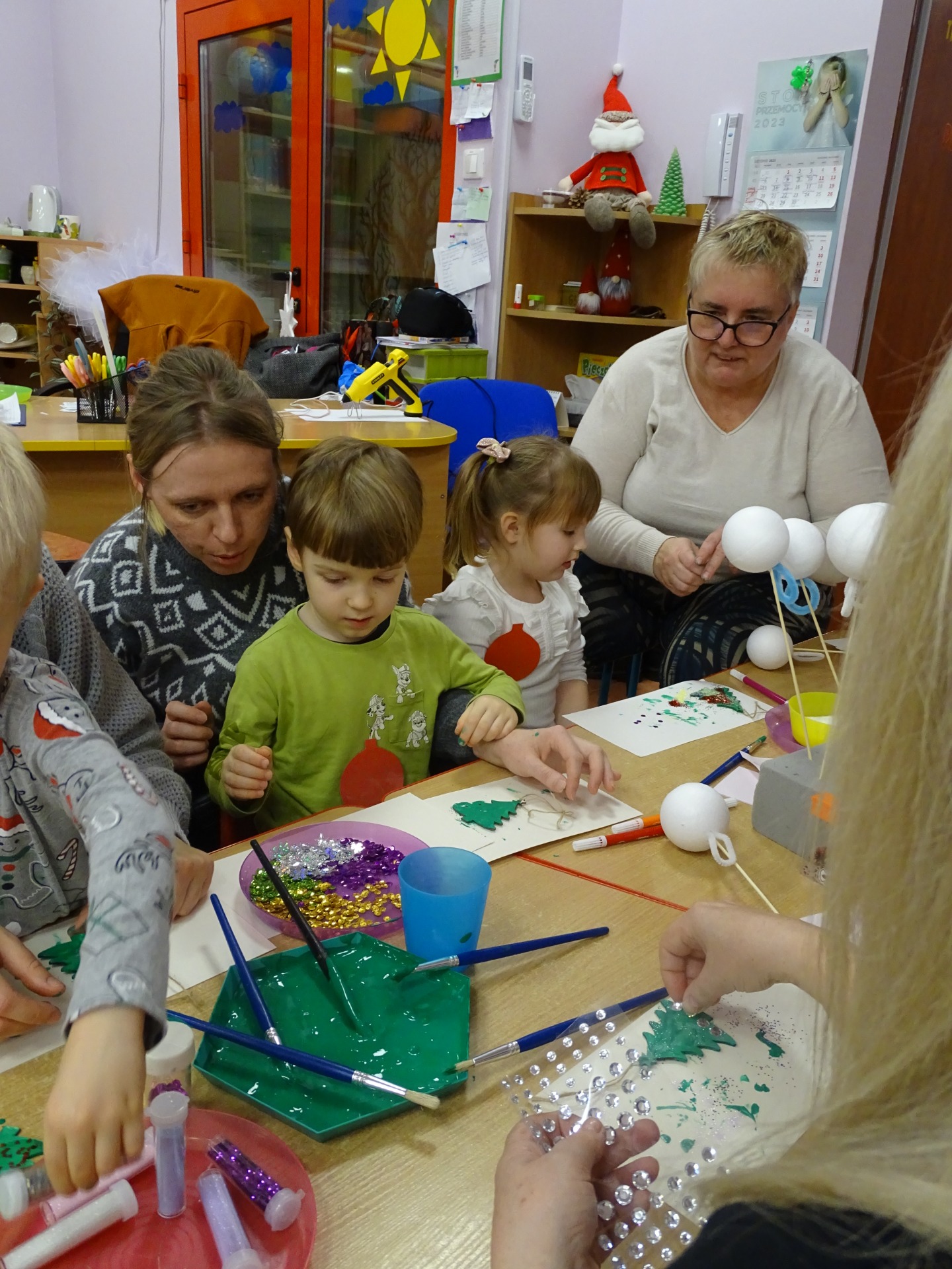W dniu 13 grudnia dzieci i rodzice z grupy Krasnale spotkali się, by wspólnie bawić się w świątecznej atmosferze. Częścią zajęć były warsztaty plastyczne. Każde dziecko wykonało z pomocą rodzica choinkowe ozdoby. Był to bardzo miło spędzony czas.