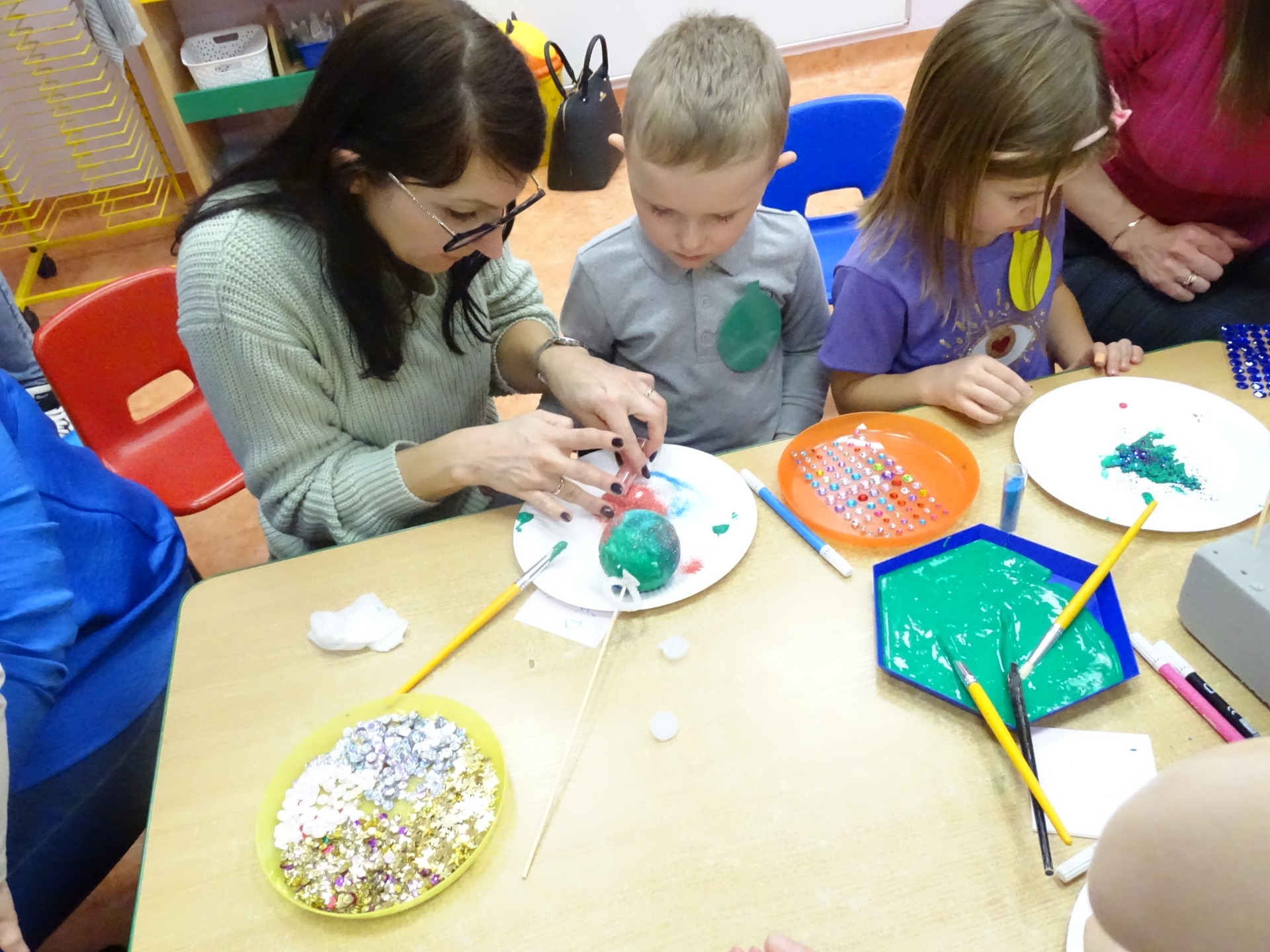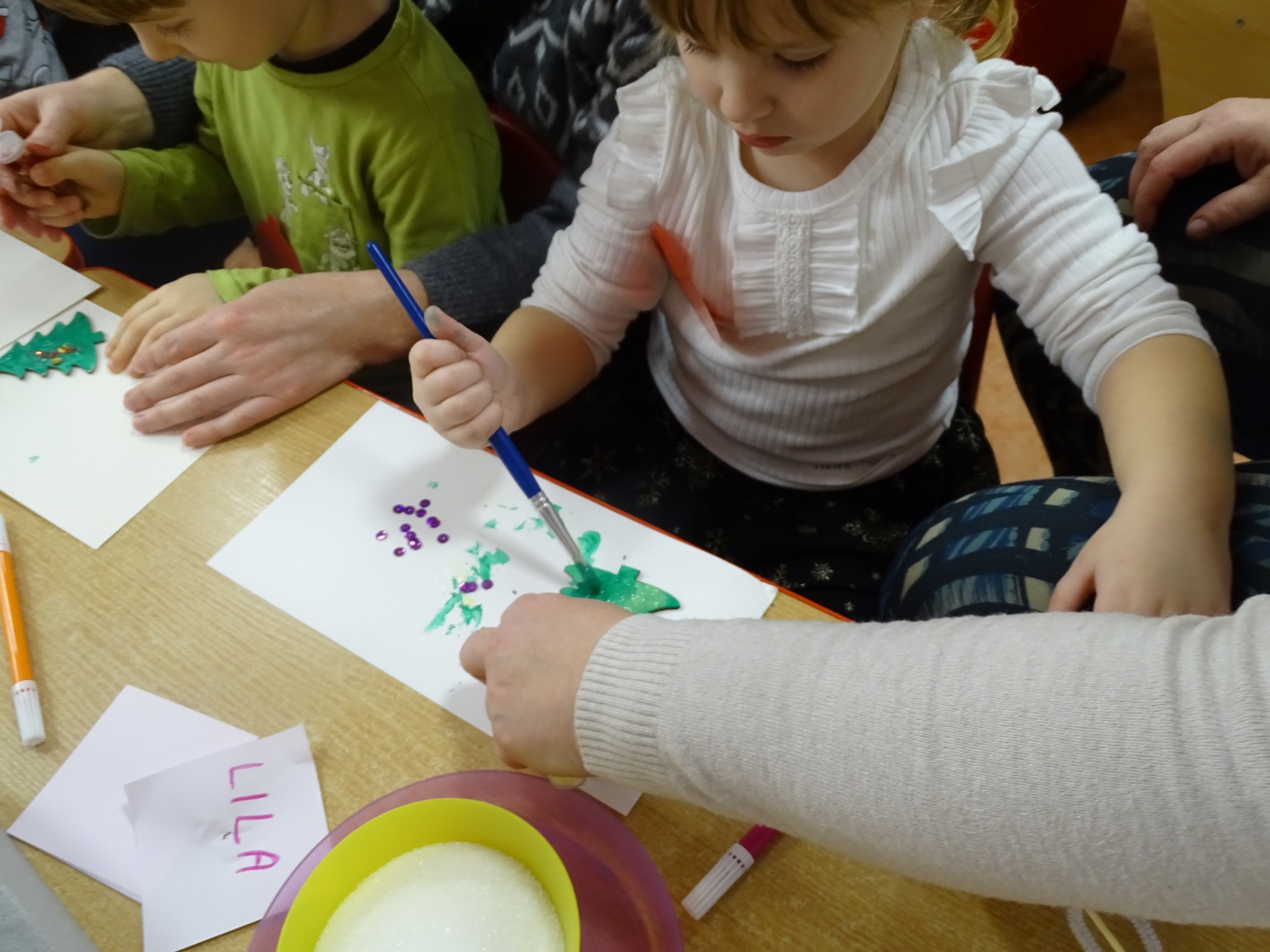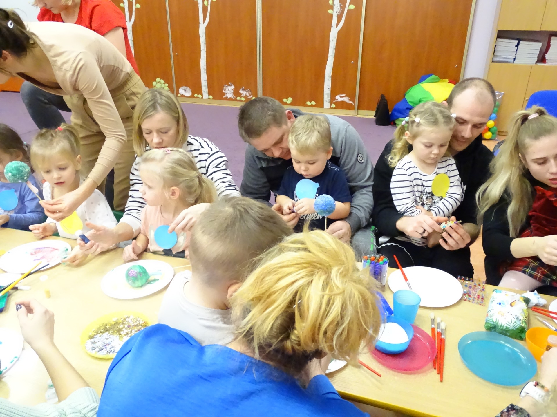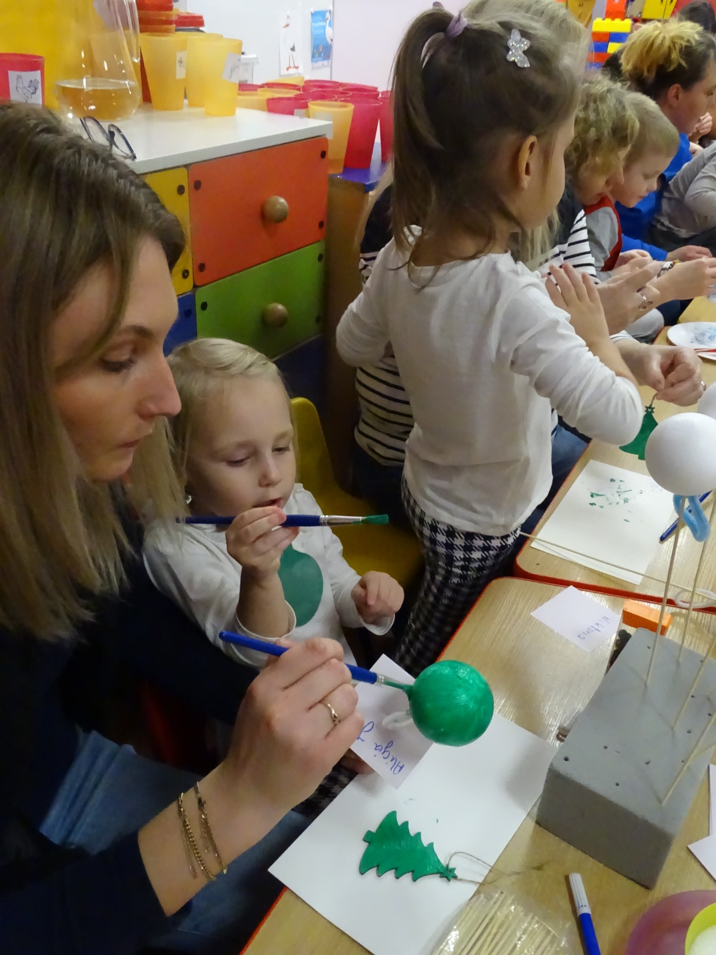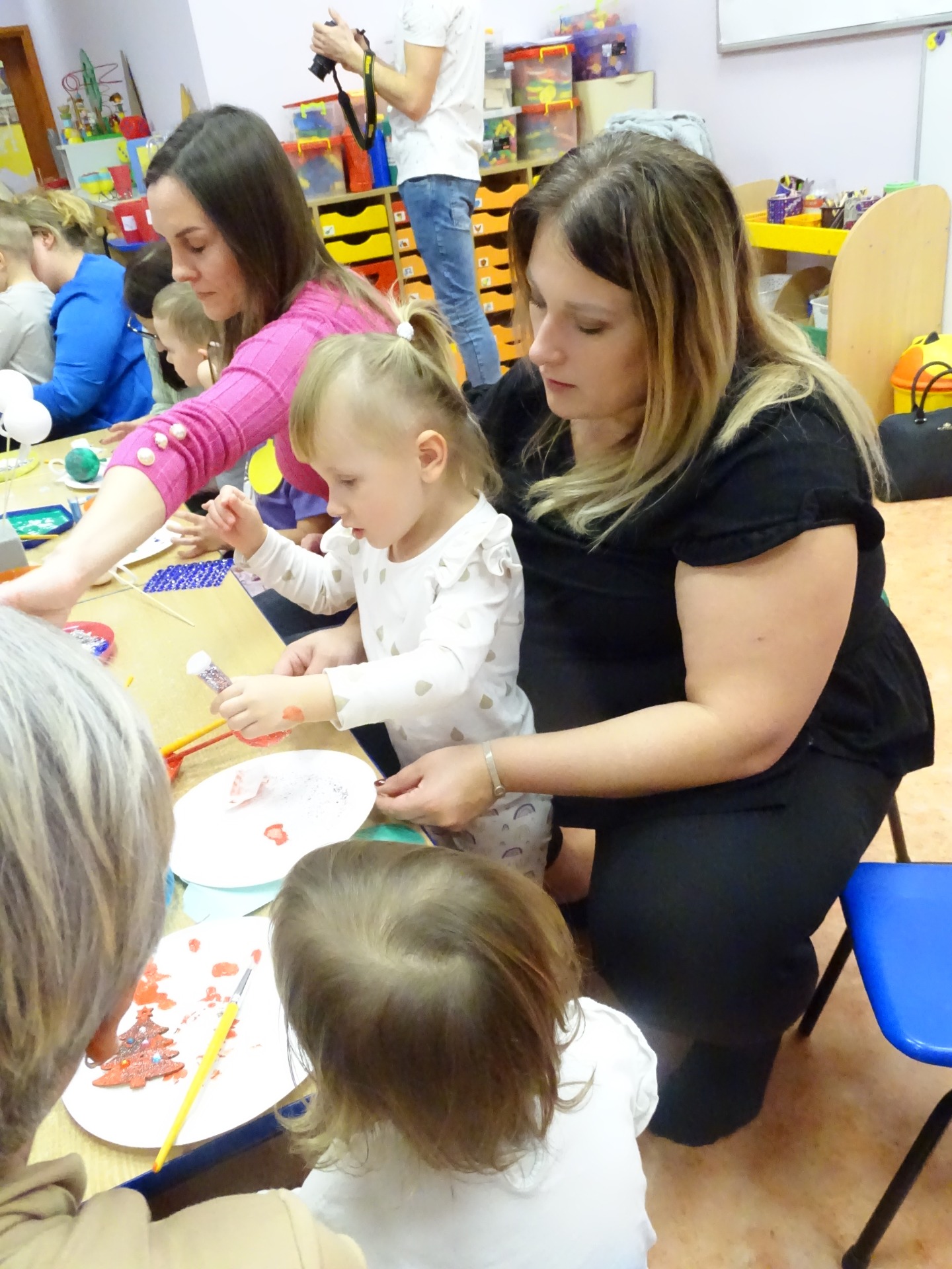 W dniu 13 grudnia dzieci i rodzice z grupy Krasnale spotkali się, by wspólnie bawić się w świątecznej atmosferze. Częścią zajęć były warsztaty plastyczne. Każde dziecko wykonało z pomocą rodzica choinkowe ozdoby. Był to bardzo miło spędzony czas.