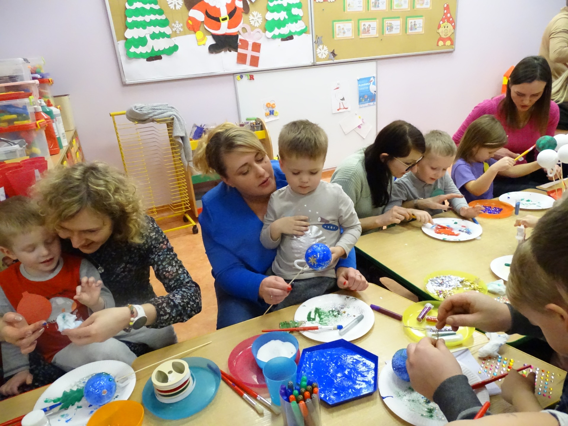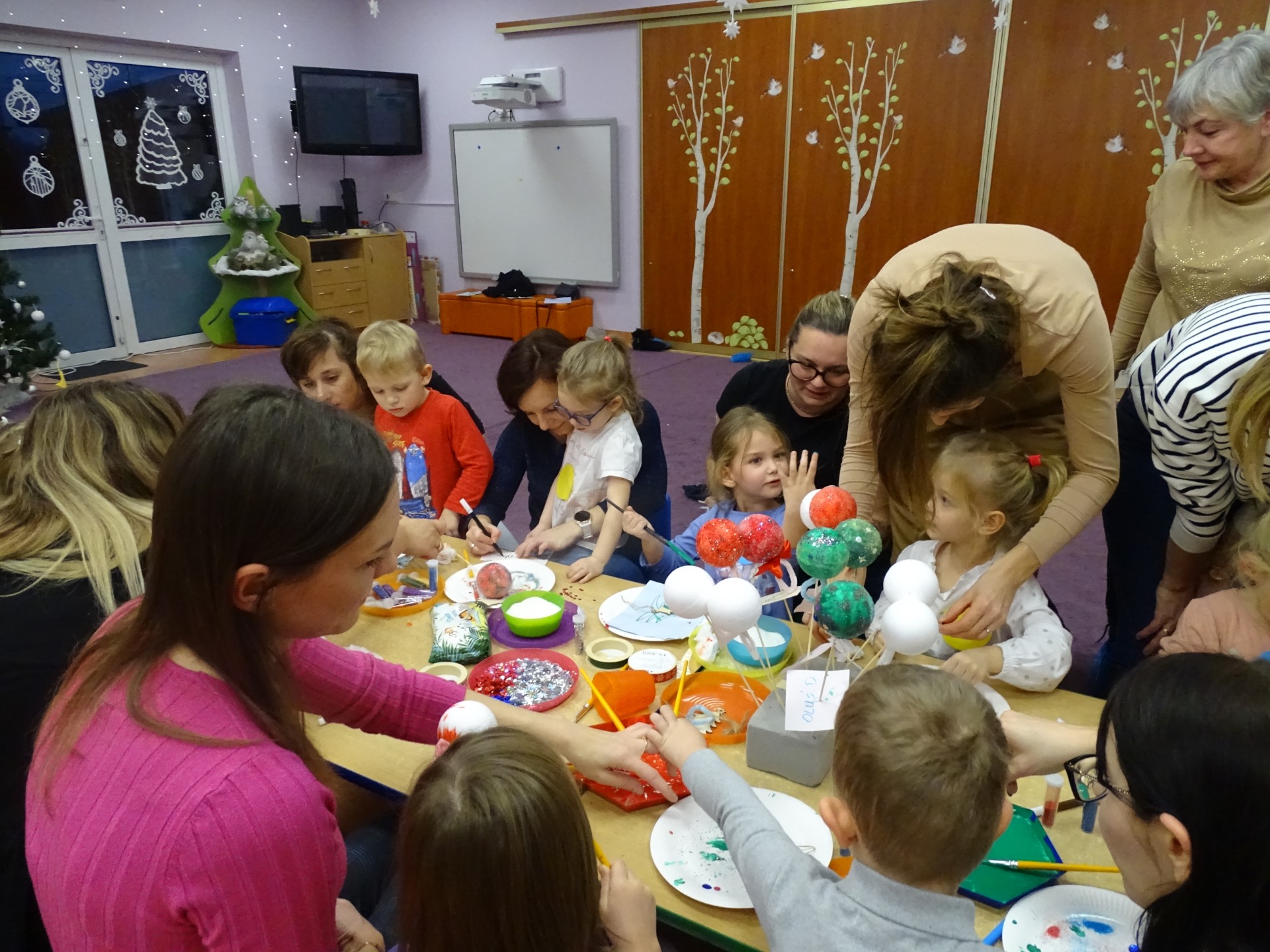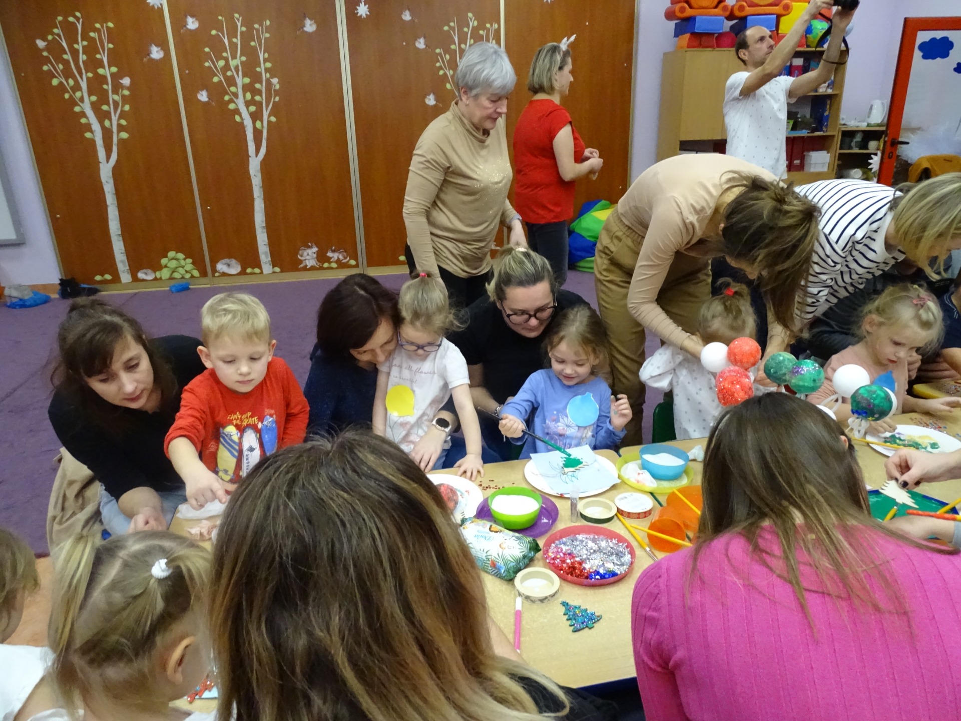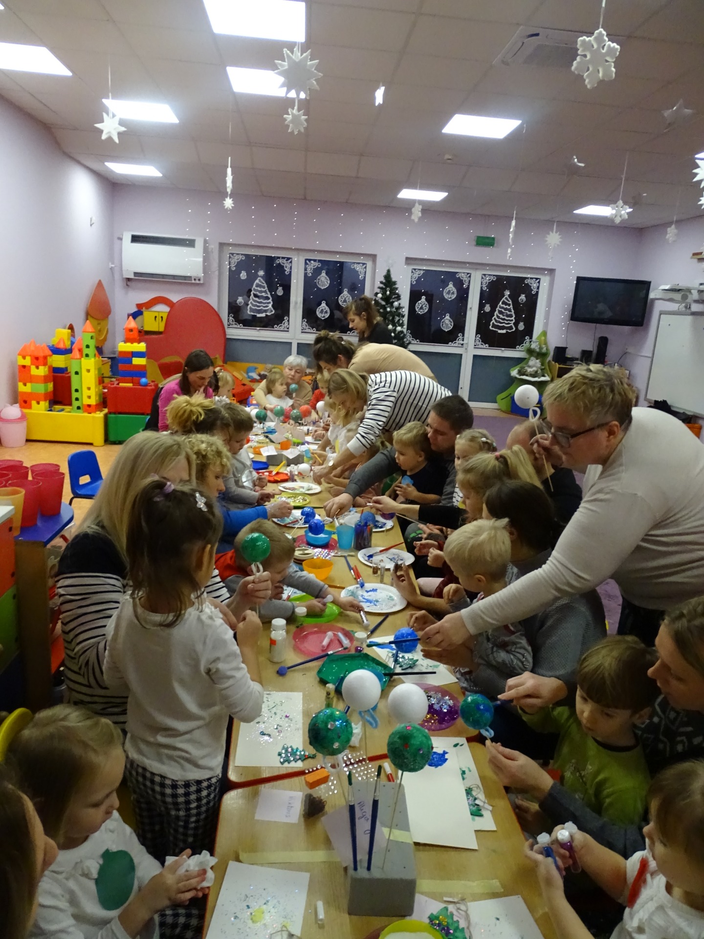 W dniu 13 grudnia dzieci i rodzice z grupy Krasnale spotkali się, by wspólnie bawić się w świątecznej atmosferze. Częścią zajęć były warsztaty plastyczne. Każde dziecko wykonało z pomocą rodzica choinkowe ozdoby. Był to bardzo miło spędzony czas.