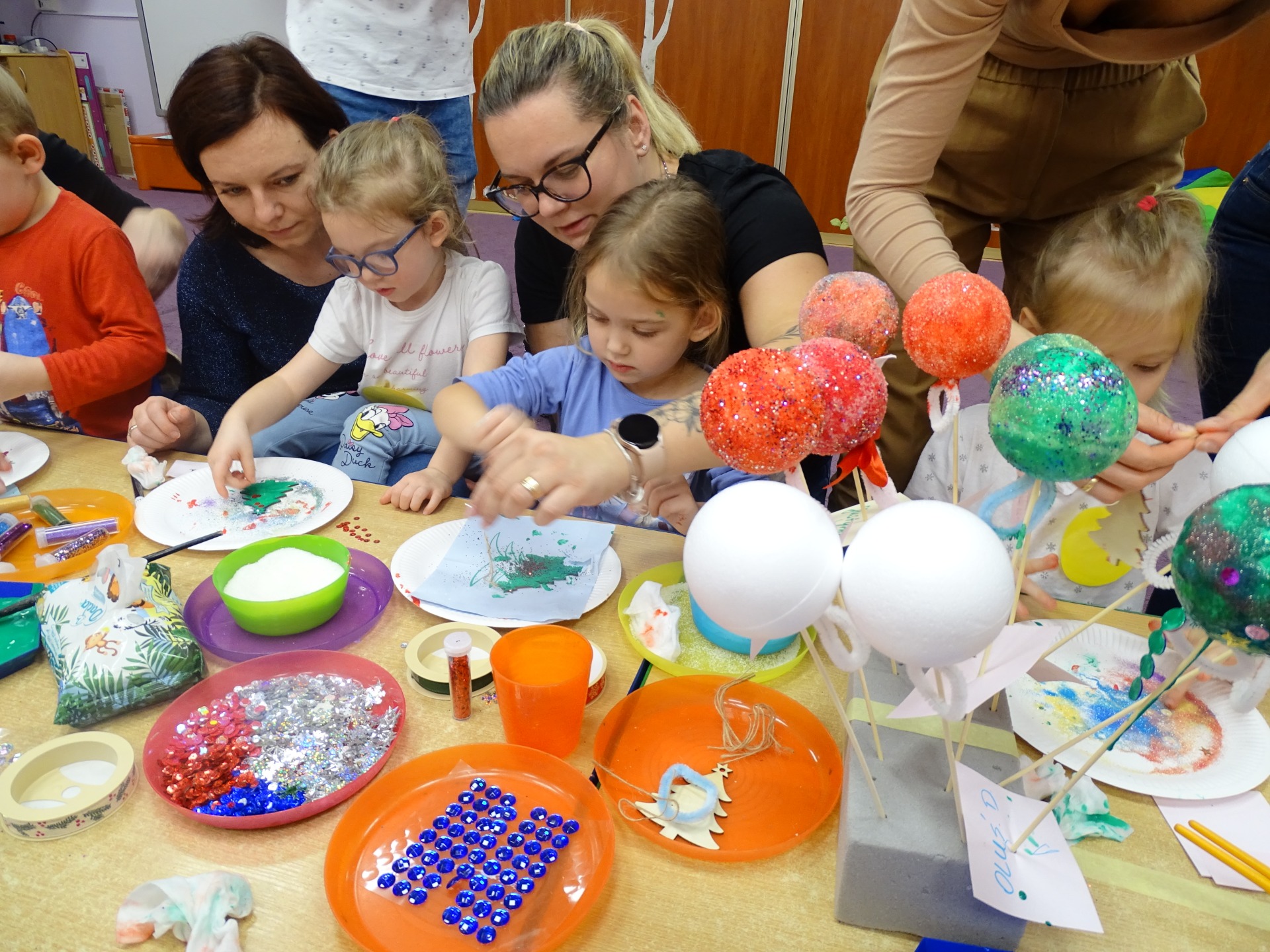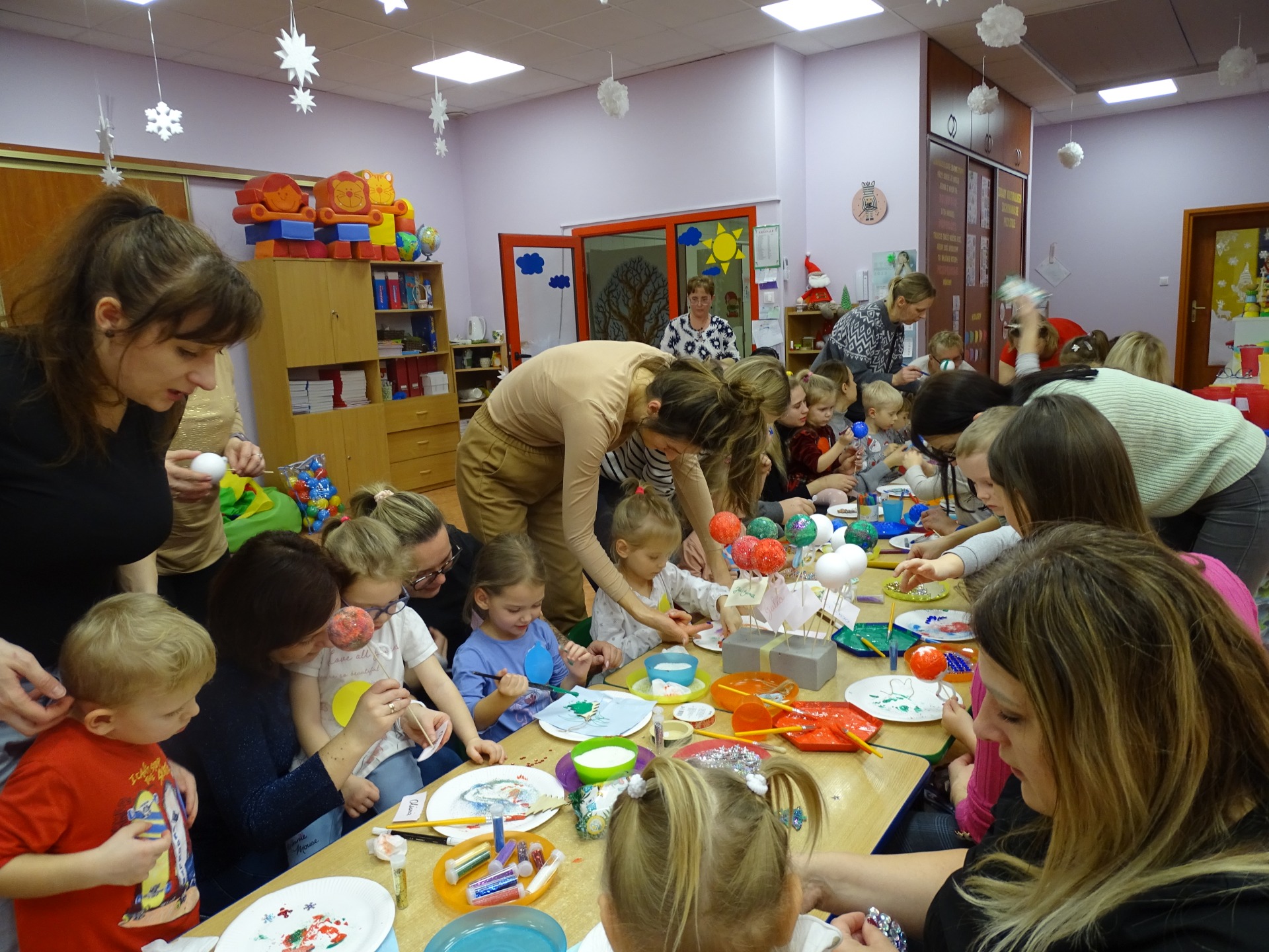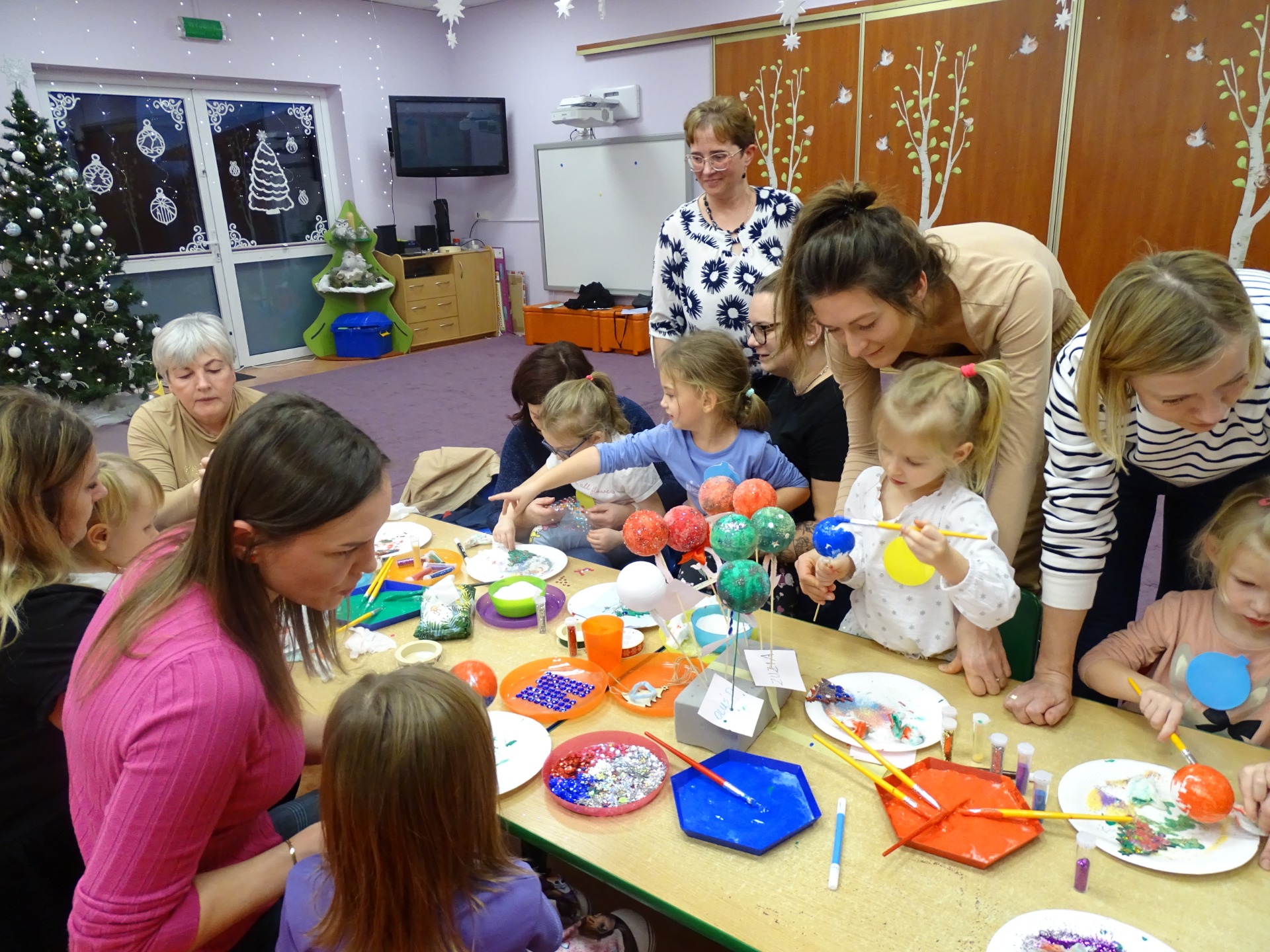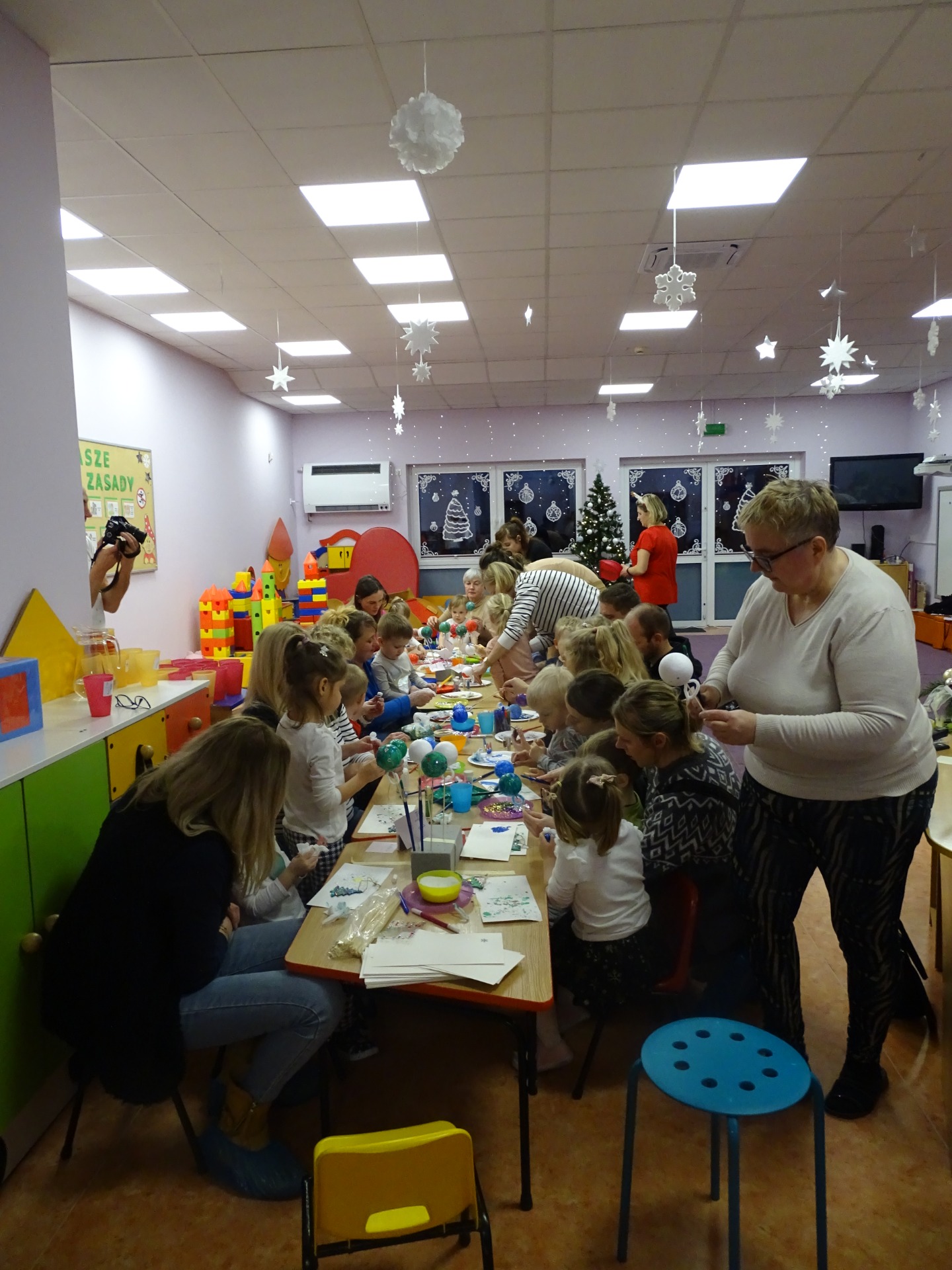 W dniu 13 grudnia dzieci i rodzice z grupy Krasnale spotkali się, by wspólnie bawić się w świątecznej atmosferze. Częścią zajęć były warsztaty plastyczne. Każde dziecko wykonało z pomocą rodzica choinkowe ozdoby. Był to bardzo miło spędzony czas.