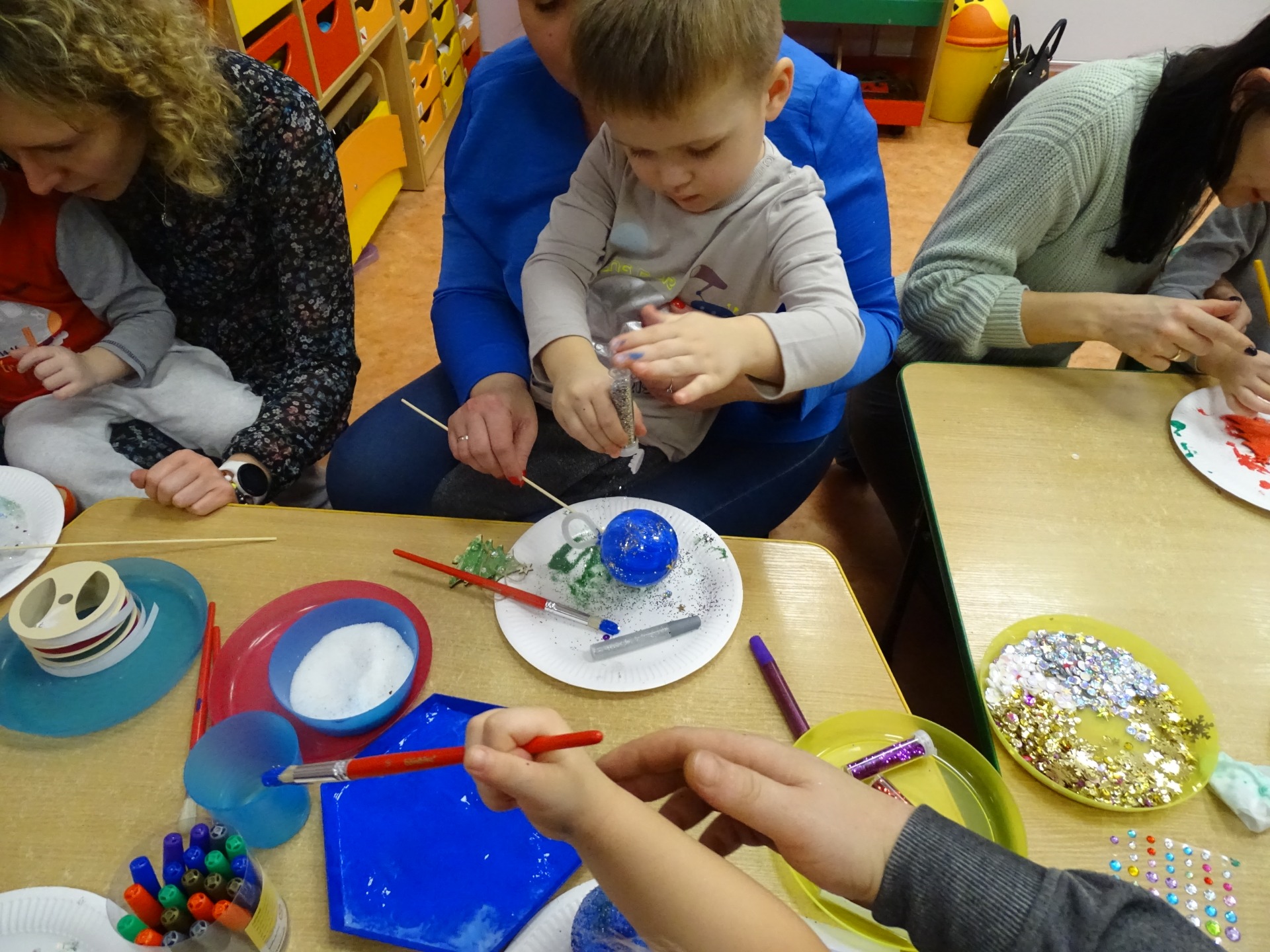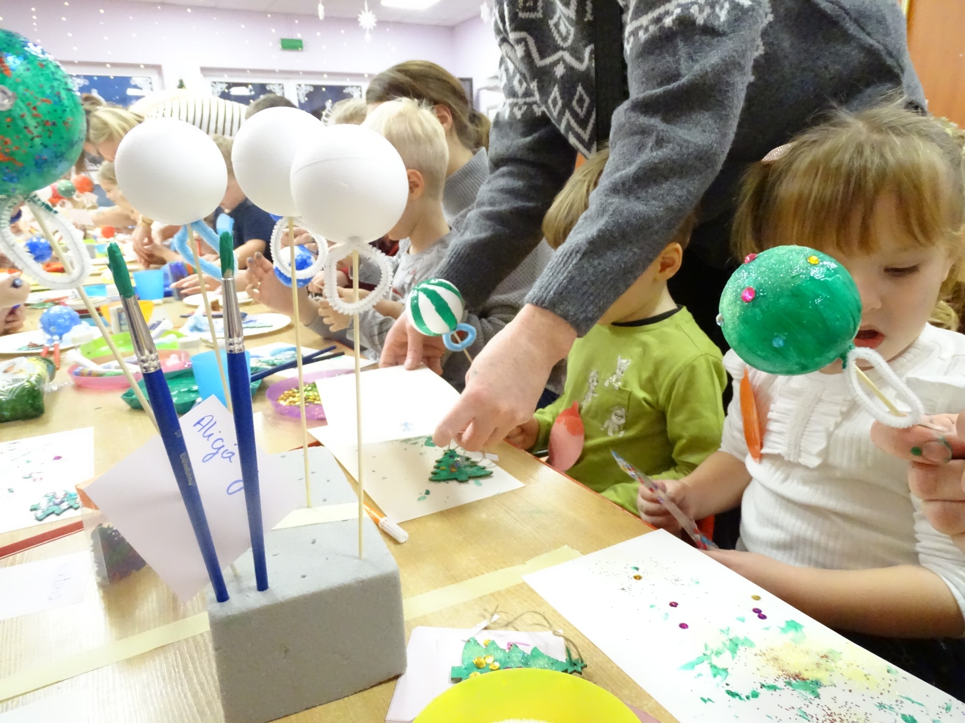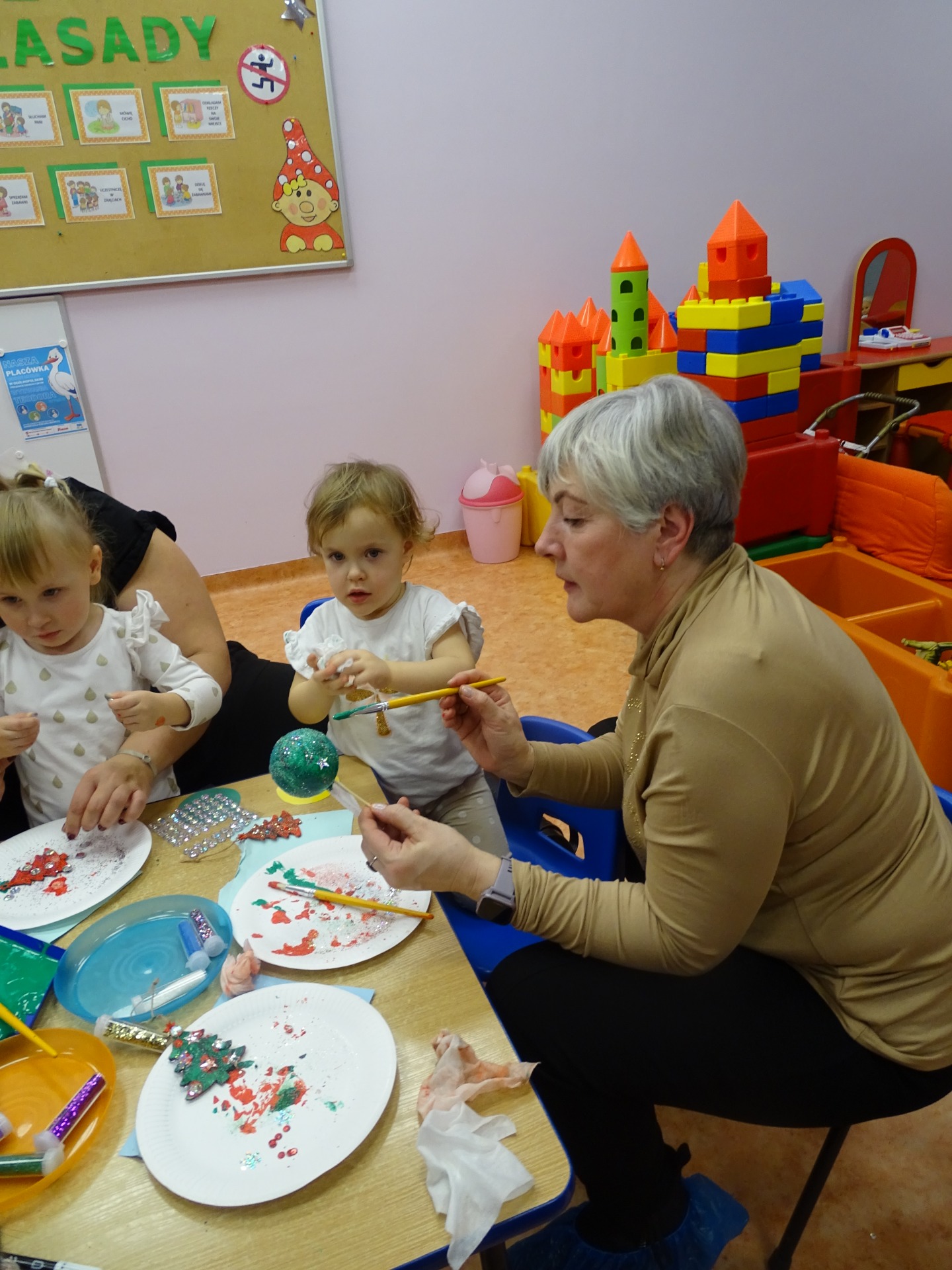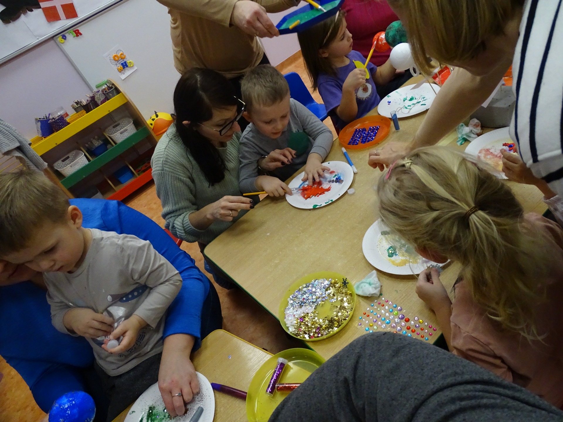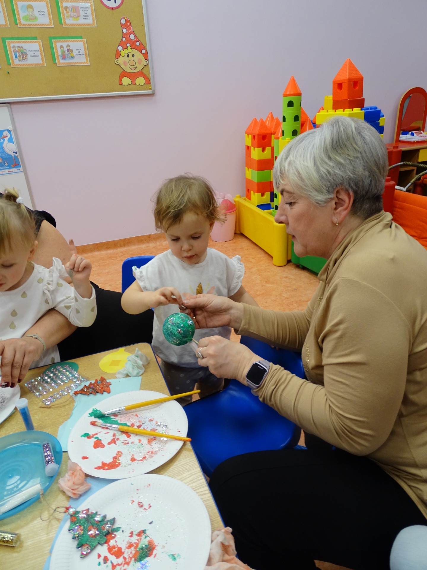 W dniu 13 grudnia dzieci i rodzice z grupy Krasnale spotkali się, by wspólnie bawić się w świątecznej atmosferze. Częścią zajęć były warsztaty plastyczne. Każde dziecko wykonało z pomocą rodzica choinkowe ozdoby. Był to bardzo miło spędzony czas.