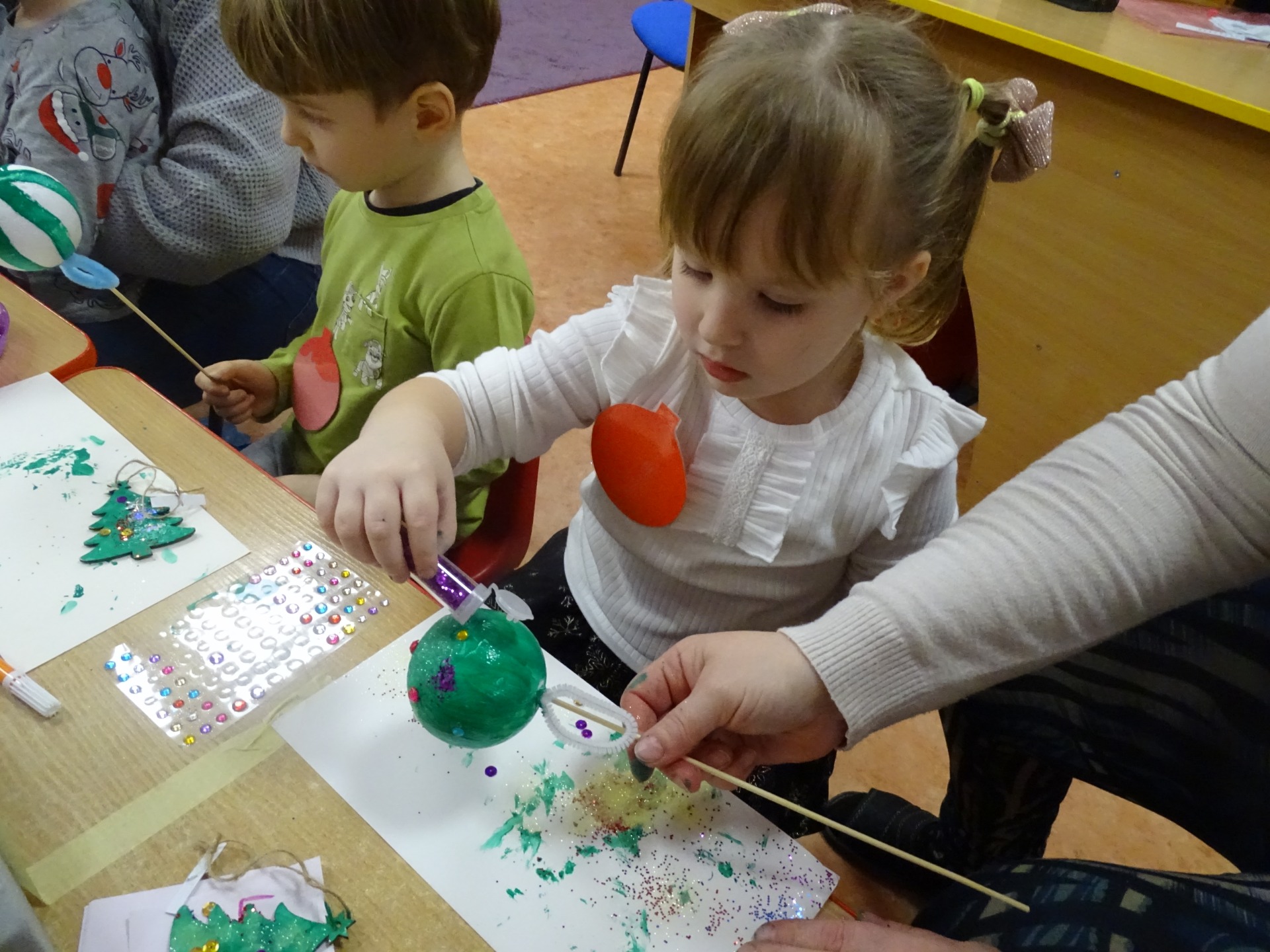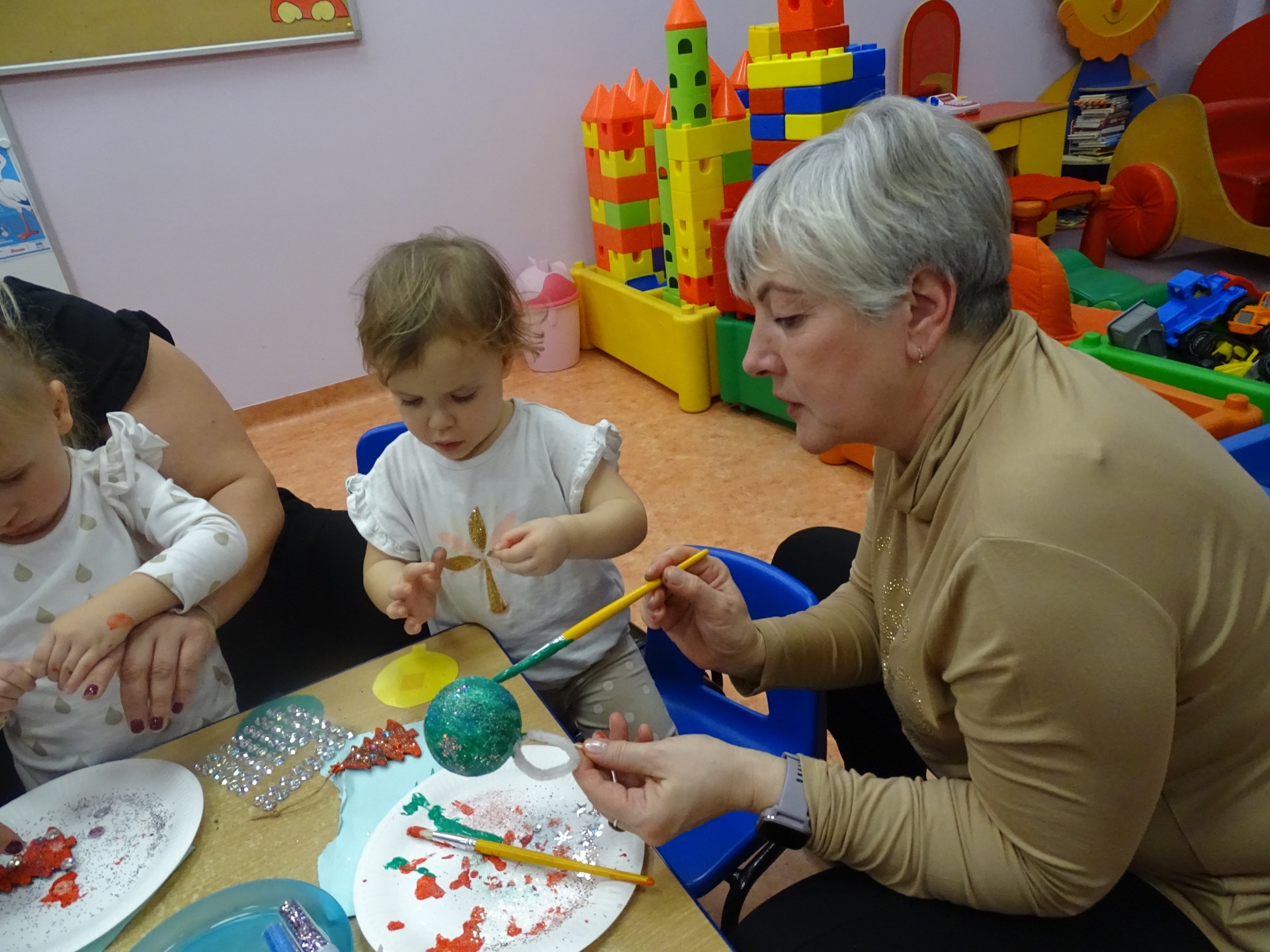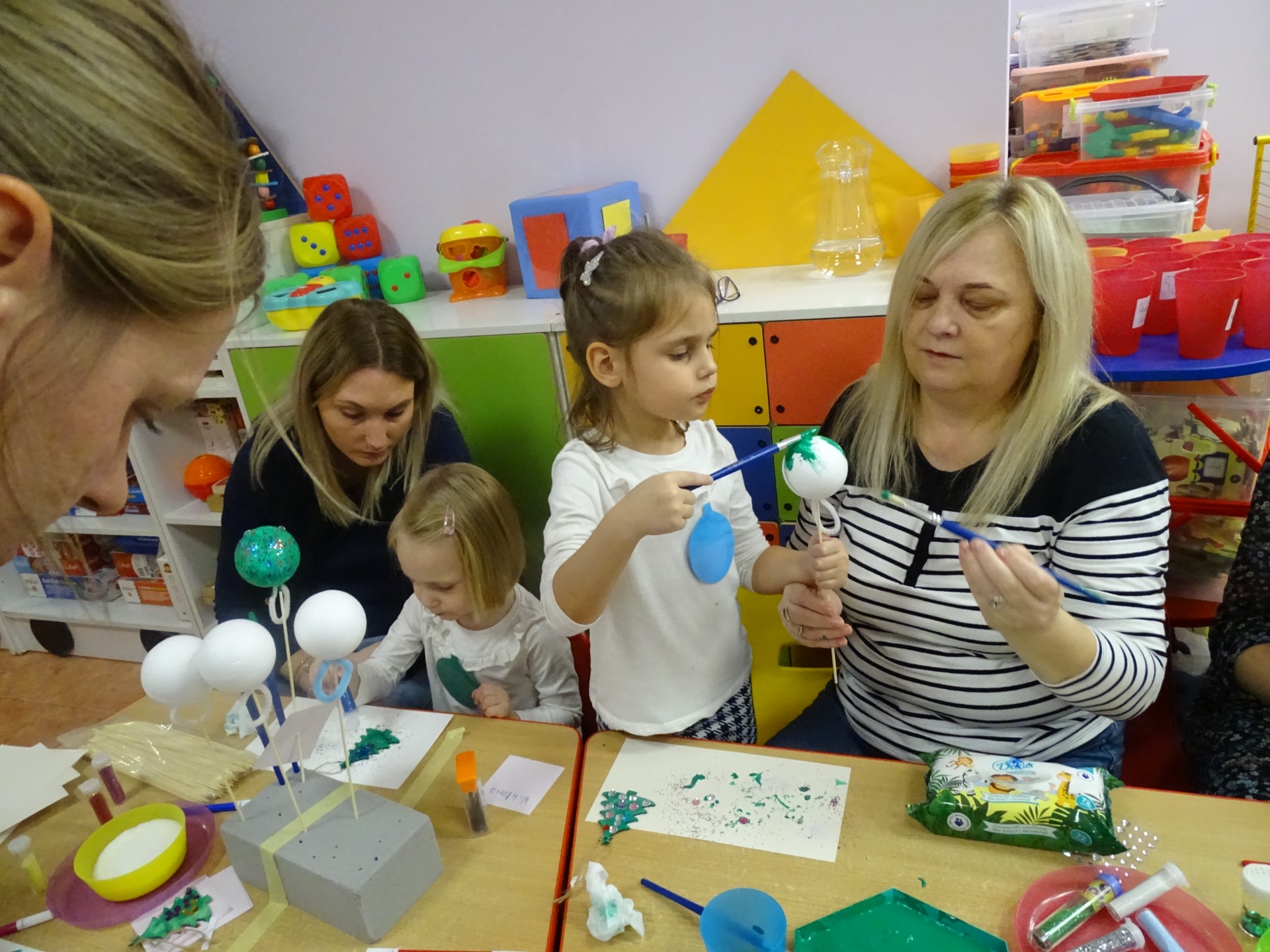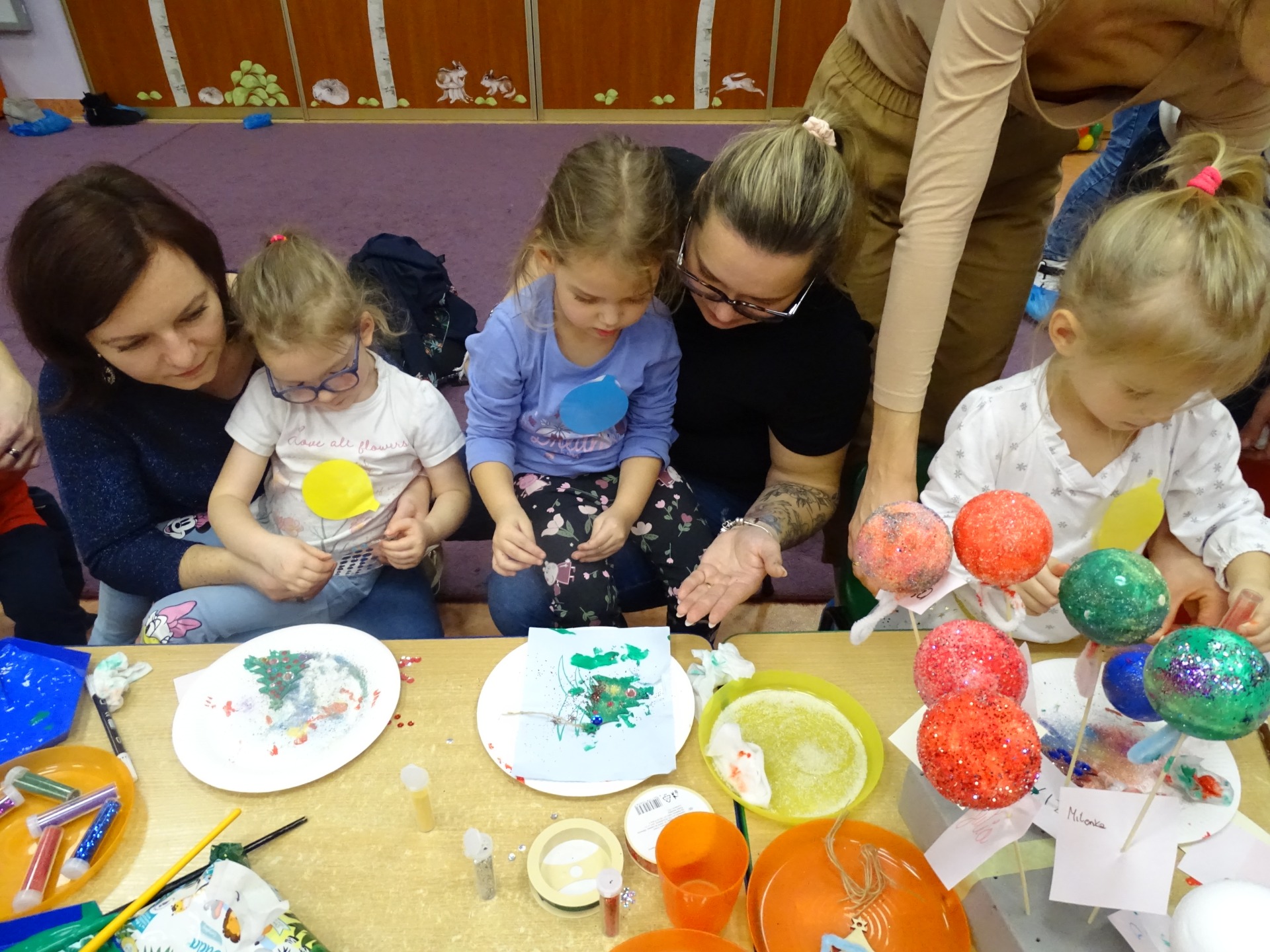 W dniu 13 grudnia dzieci i rodzice z grupy Krasnale spotkali się, by wspólnie bawić się w świątecznej atmosferze. Częścią zajęć były warsztaty plastyczne. Każde dziecko wykonało z pomocą rodzica choinkowe ozdoby. Był to bardzo miło spędzony czas.